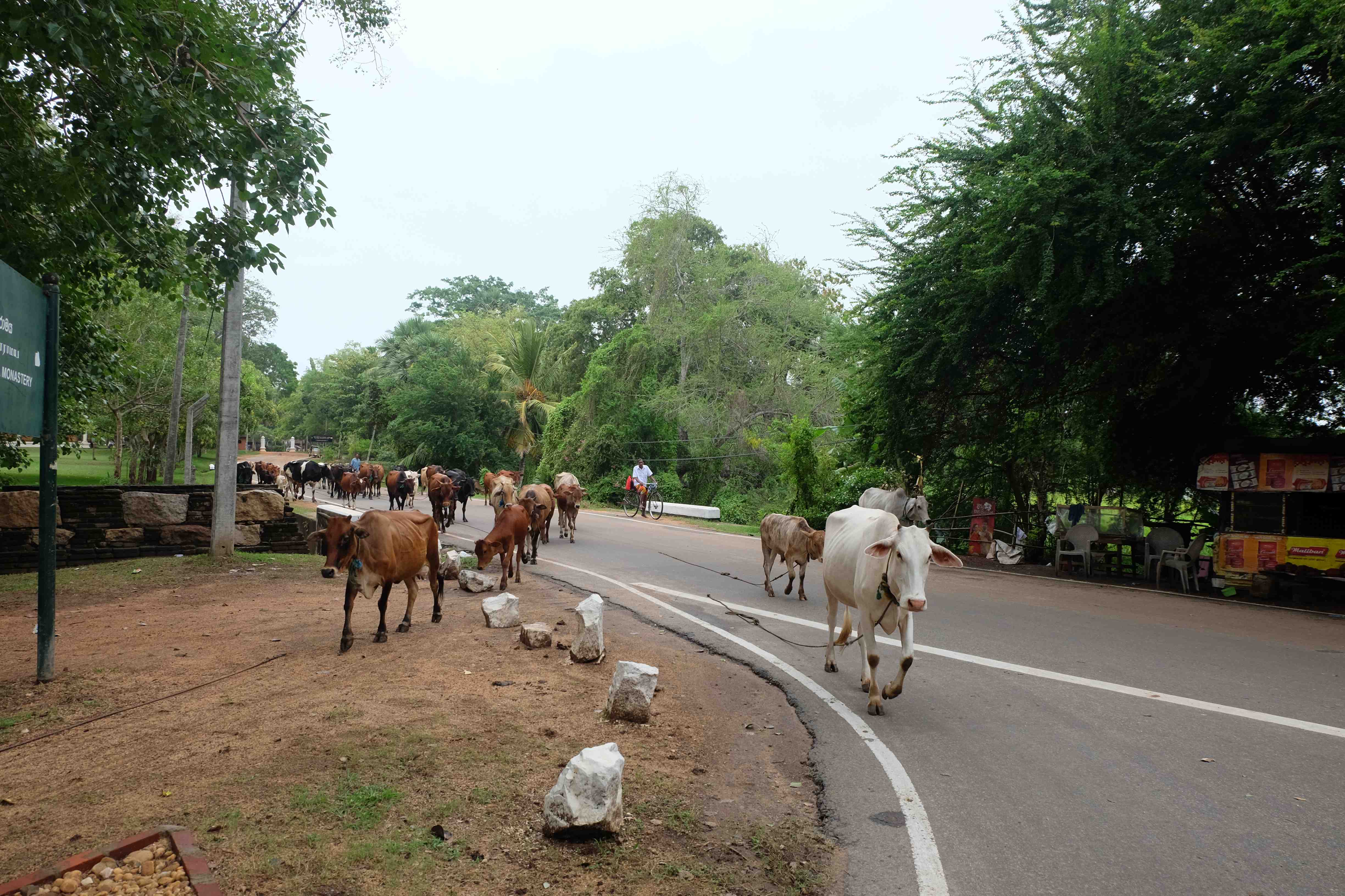 Nach Anuradhapura wären wir eigentlich gar nicht gegangen, hätten uns einige Leute hier nicht davon geschwärmt, wie alt und sehenswürdig das sei. Falsch! Der einzige Pluspunkt von Anuradhapura ist, dass sie das Tor zum Wilpattu Nationalpark ist. Abgesehen davon hat man nichts verpasst, wenn man die Stadt nicht gesehen hat. Eigentlich sollte es sich dabei um eine sehr alte Siedlung handeln, ehemalige Königsresidenz und Hauptstadt Sri Lankas, voller alten Ruinen und Tempelanlagen. Diesem Ruf wird die Stadt aber keinesfalls gerecht. Die Realität sieht ganz anders aus: Abfallberge neben den heiligen Stätten, kaputte Bauten überall, die Stadt sieht eher wie nach einem Krieg aus, als wäre alles abreissbereit und alteisen-würdig. Dieses Problem haben eigentlich (leider) viele Städte in Sri Lanka: Gebäude, die mal schön waren, aber an denen nichts erneuert wurde und somit dem Verfall ausgesetzt sind, Dreckberge, die nicht wirklich verschwinden, weil die Mehrheit der Bevölkerung noch keine Abfallentsorgungsmentalität hat und alles einfach auf die Strasse oder aus dem Bus heraus schmeisst. Der Verkehr trägt auch nicht zu einem besseren Bild hiesiger Orte bei: lauter Verkehrsteilnehmer, die die Regel nicht befolgen, Chaos auf den Strassen, Busse die nicht losfahren bevor sie nicht vor lauter Passagiere aus allen Nähten platzen, usw. Bisher bereits viele solche Orte hier gesehen, aber Anuradhapura ekelte uns wirklich an. Die landesweit gepriesenen vielen antiken Sehenswürdigkeiten dort sind fast unsichtbar oder erblassen im Schatten der viel offensichtlicheren schlechten Sachen, die einem hier gerade ins Auge stechen. Unsere Fotografier-Lust hielt sich da in Grenzen: