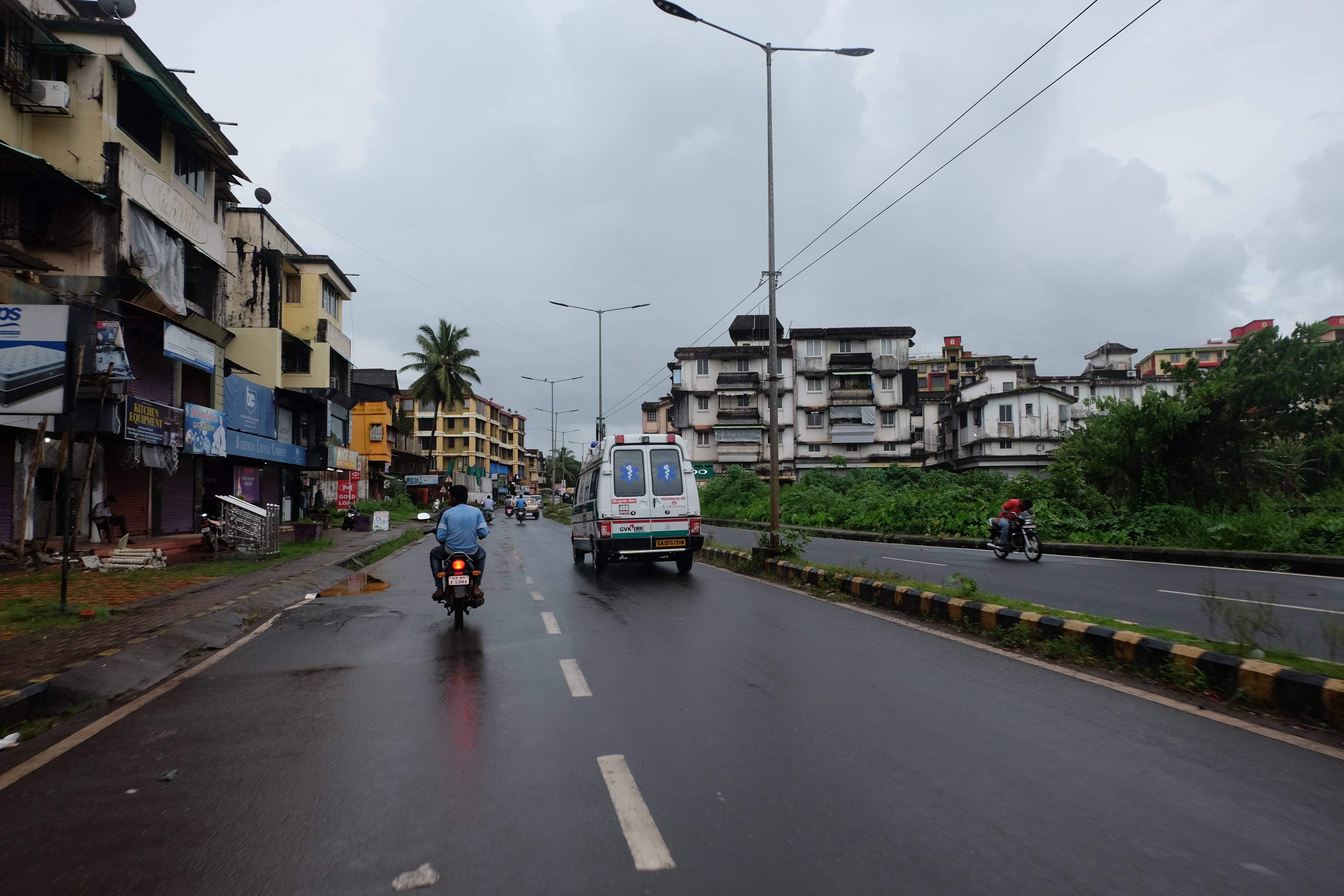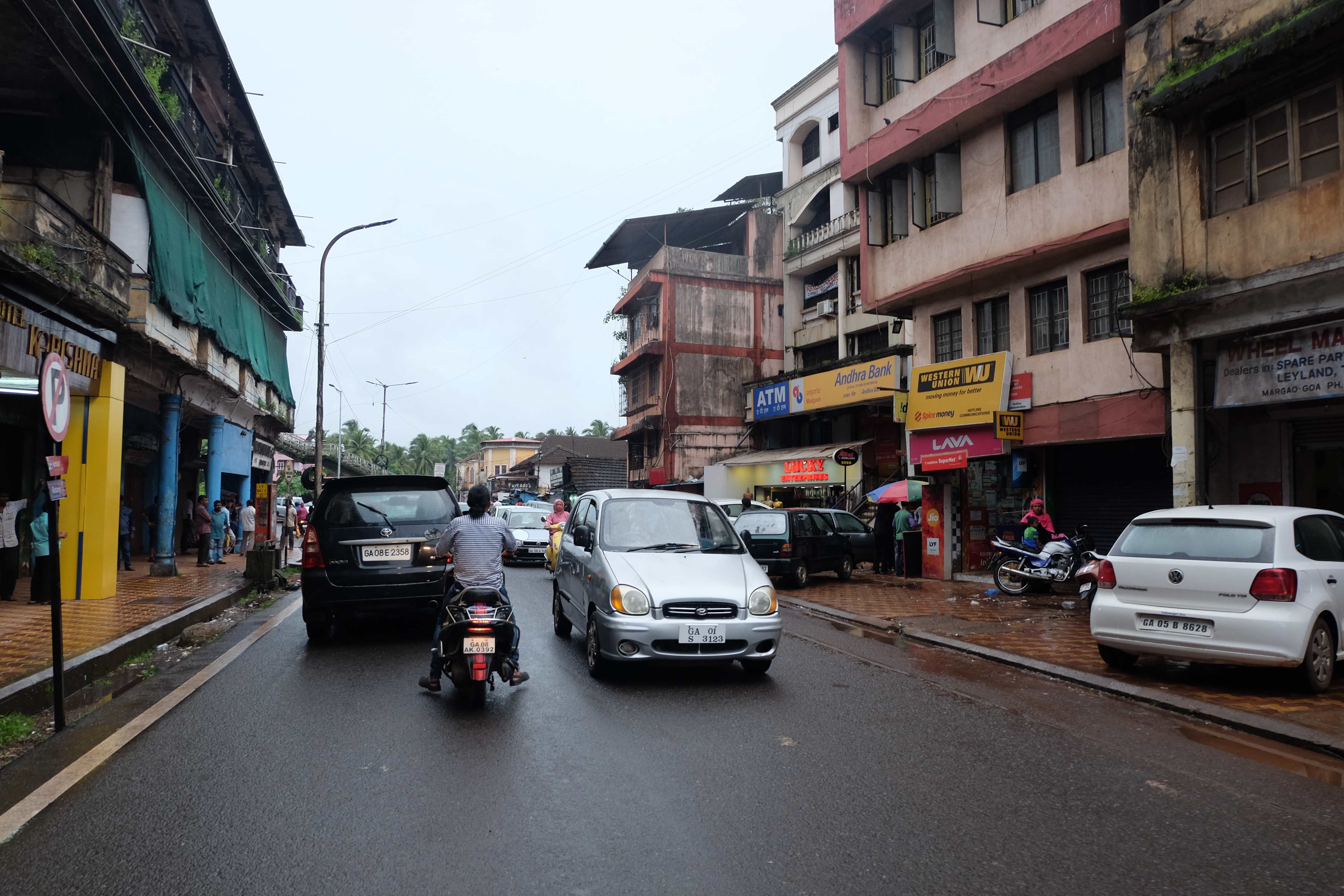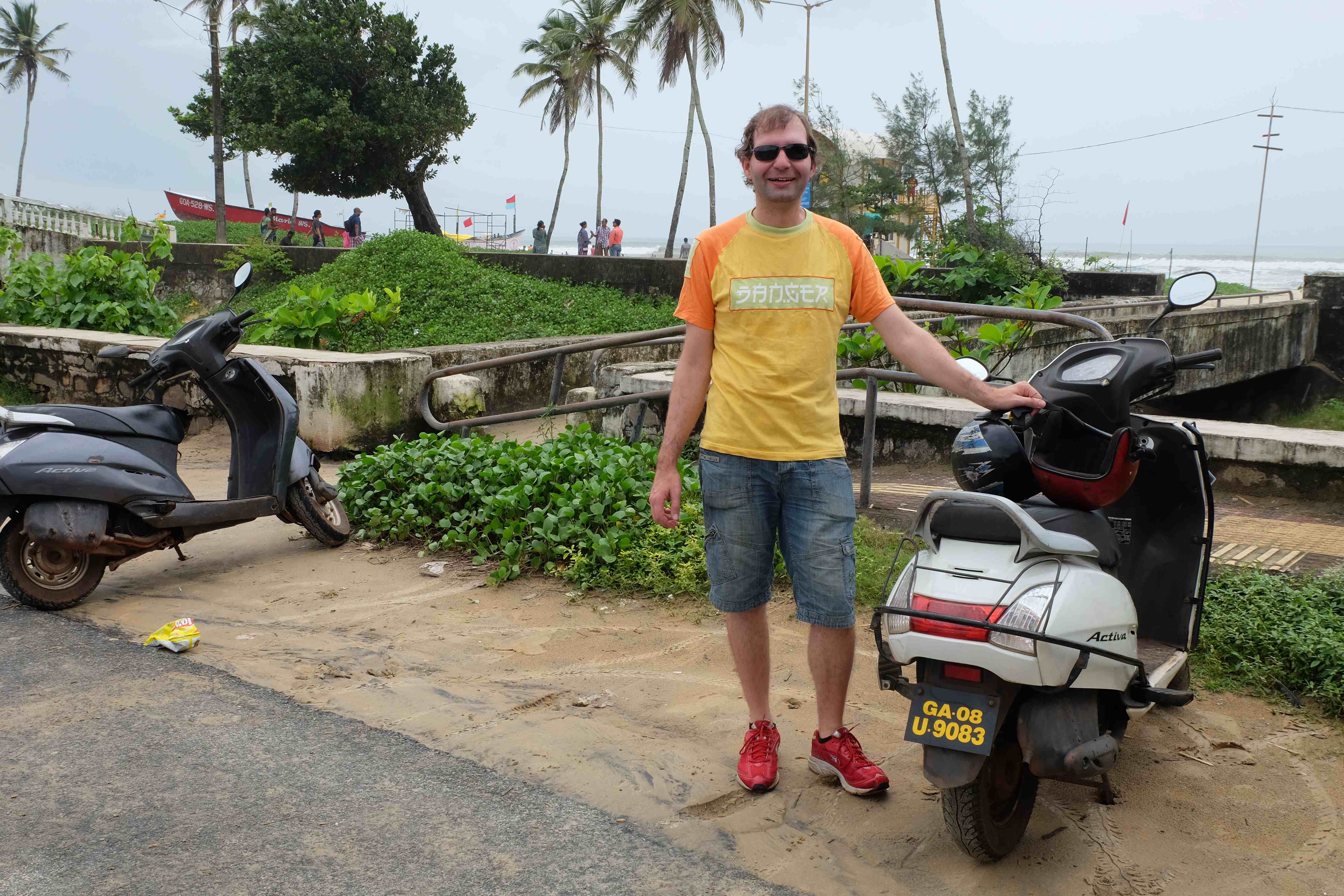 Goa… die Natur ist schön – das muss man zugeben. Sehr grün, sehr viel Wald und wenn man ausserhalb der Stadt ist auch sehr viel Ruhe und Gemütlichkeit. Die Städte und Dörfer sind dreckig. Nicht gerade so wie in der Provinz Tamil Nadu (Tiruchirappalli und Kanyakumari), aber trotzdem weit weg von zufriedenstellend. Die Strände sind…. Strände. Vermutlich ziemlich schön wenn es nicht gerade Regenzeit ist wie jetzt, aber sicher nichts Weltbewegendes! Die Leute sind… unterschiedlich, teilweise komisch –  eben, in Indien weiss man ja nie, was einen erwartet. Einige Leute laufen nackt durchs Haus herum (wie unser Gastgeber), und tragen zur Erhöhung meines Alkoholkonsums bei, damit der Anblick überhaupt auszuhalten ist, andere haben eine Obsession: „Sir, Foto“… und wirken so unhöflich dabei, dass einem gerade die lustigen Chinesen in den Sinn kommen, die aber wussten wie danach fragen und deswegen ihr Selfie mit uns sehr oft auch bekamen. Die einen wissen nichts von wegen Händler sein und Geschäfte machen, warten auf den grossen Deal und wollen uns abzocken indem sie 2 Tage Miete für einen Scooter verlangen wenn wir diesen um 21 statt um 18 Uhr am Abend abgeben wollen, die anderen warten auf uns an der Strassenecke, machen uns ein unschlagbares Preisangebot und wollen Geld verdienen, sind aber der Meinung ein Helm sei bloss Dekorationssache und nur für den Fahrer nötig. Der Passagier hinten brauche so etwas nicht, da der Stauraum unter dem Sitz nicht gross genug sei für zwei Helme und das Tragen dessen somit sinnlos werde. Goa ist auch abenteuerlich und abwechslungsreich: mal trifft man Kühe auf der Strasse, die einem den Weg versperren, mal begegnet man einer spazierenden und sich satt fressenden Schweinefamilie mitten in der Stadt. Aber lassen wir diesmal die Bilder den Ort beschreiben…
