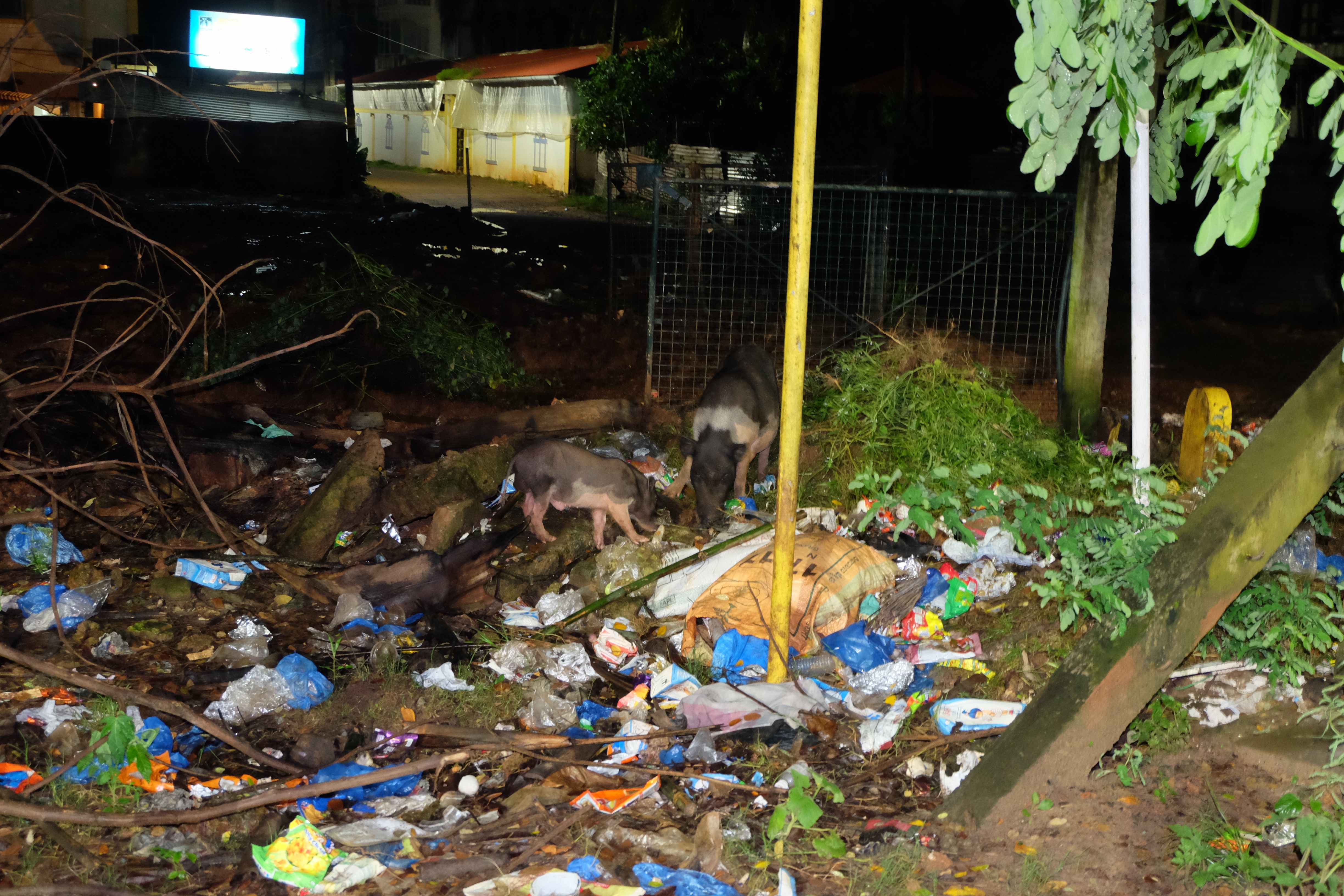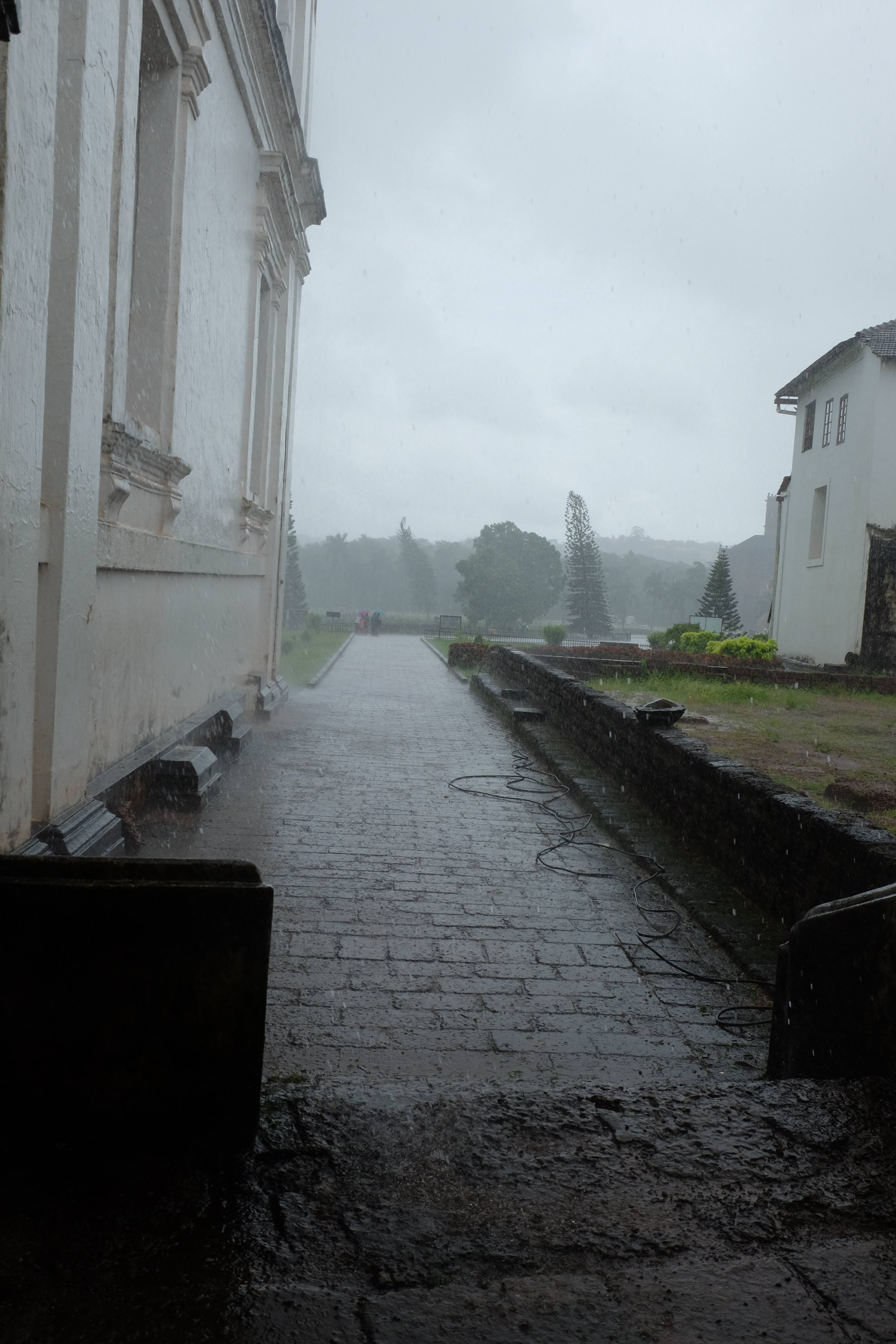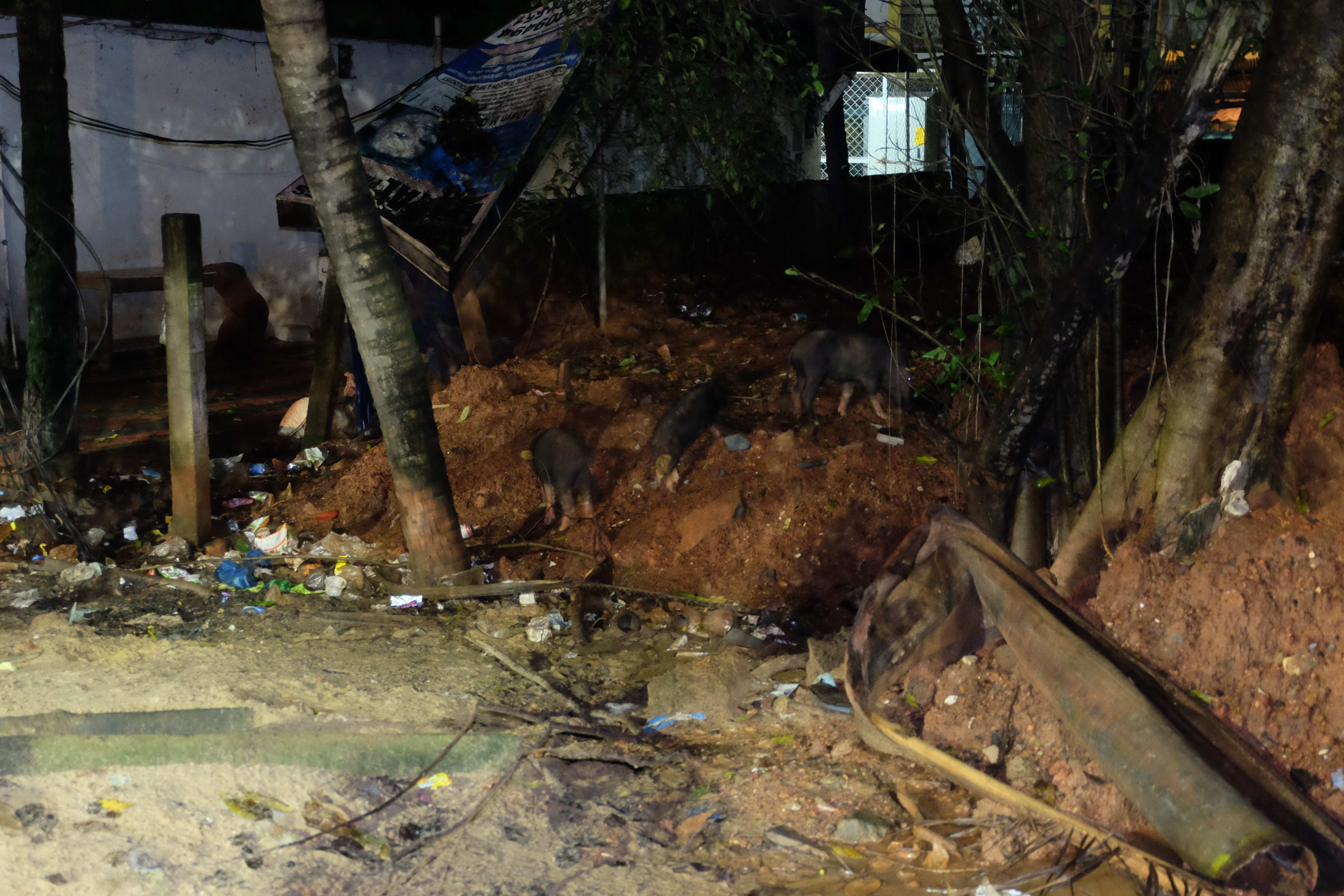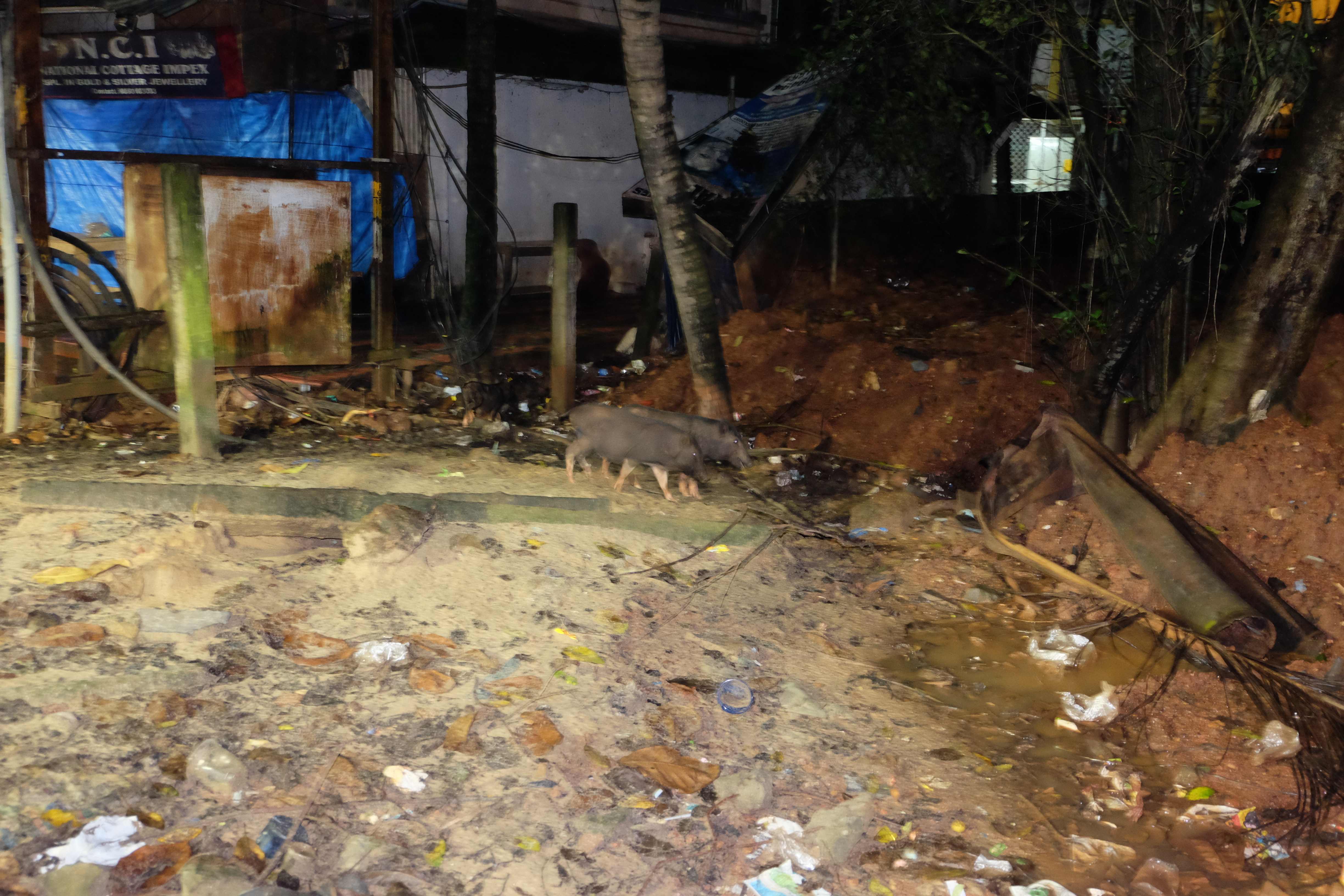 Goa… die Natur ist schön – das muss man zugeben. Sehr grün, sehr viel Wald und wenn man ausserhalb der Stadt ist auch sehr viel Ruhe und Gemütlichkeit. Die Städte und Dörfer sind dreckig. Nicht gerade so wie in der Provinz Tamil Nadu (Tiruchirappalli und Kanyakumari), aber trotzdem weit weg von zufriedenstellend. Die Strände sind…. Strände. Vermutlich ziemlich schön wenn es nicht gerade Regenzeit ist wie jetzt, aber sicher nichts Weltbewegendes! Die Leute sind… unterschiedlich, teilweise komisch –  eben, in Indien weiss man ja nie, was einen erwartet. Einige Leute laufen nackt durchs Haus herum (wie unser Gastgeber), und tragen zur Erhöhung meines Alkoholkonsums bei, damit der Anblick überhaupt auszuhalten ist, andere haben eine Obsession: „Sir, Foto“… und wirken so unhöflich dabei, dass einem gerade die lustigen Chinesen in den Sinn kommen, die aber wussten wie danach fragen und deswegen ihr Selfie mit uns sehr oft auch bekamen. Die einen wissen nichts von wegen Händler sein und Geschäfte machen, warten auf den grossen Deal und wollen uns abzocken indem sie 2 Tage Miete für einen Scooter verlangen wenn wir diesen um 21 statt um 18 Uhr am Abend abgeben wollen, die anderen warten auf uns an der Strassenecke, machen uns ein unschlagbares Preisangebot und wollen Geld verdienen, sind aber der Meinung ein Helm sei bloss Dekorationssache und nur für den Fahrer nötig. Der Passagier hinten brauche so etwas nicht, da der Stauraum unter dem Sitz nicht gross genug sei für zwei Helme und das Tragen dessen somit sinnlos werde. Goa ist auch abenteuerlich und abwechslungsreich: mal trifft man Kühe auf der Strasse, die einem den Weg versperren, mal begegnet man einer spazierenden und sich satt fressenden Schweinefamilie mitten in der Stadt. Aber lassen wir diesmal die Bilder den Ort beschreiben…