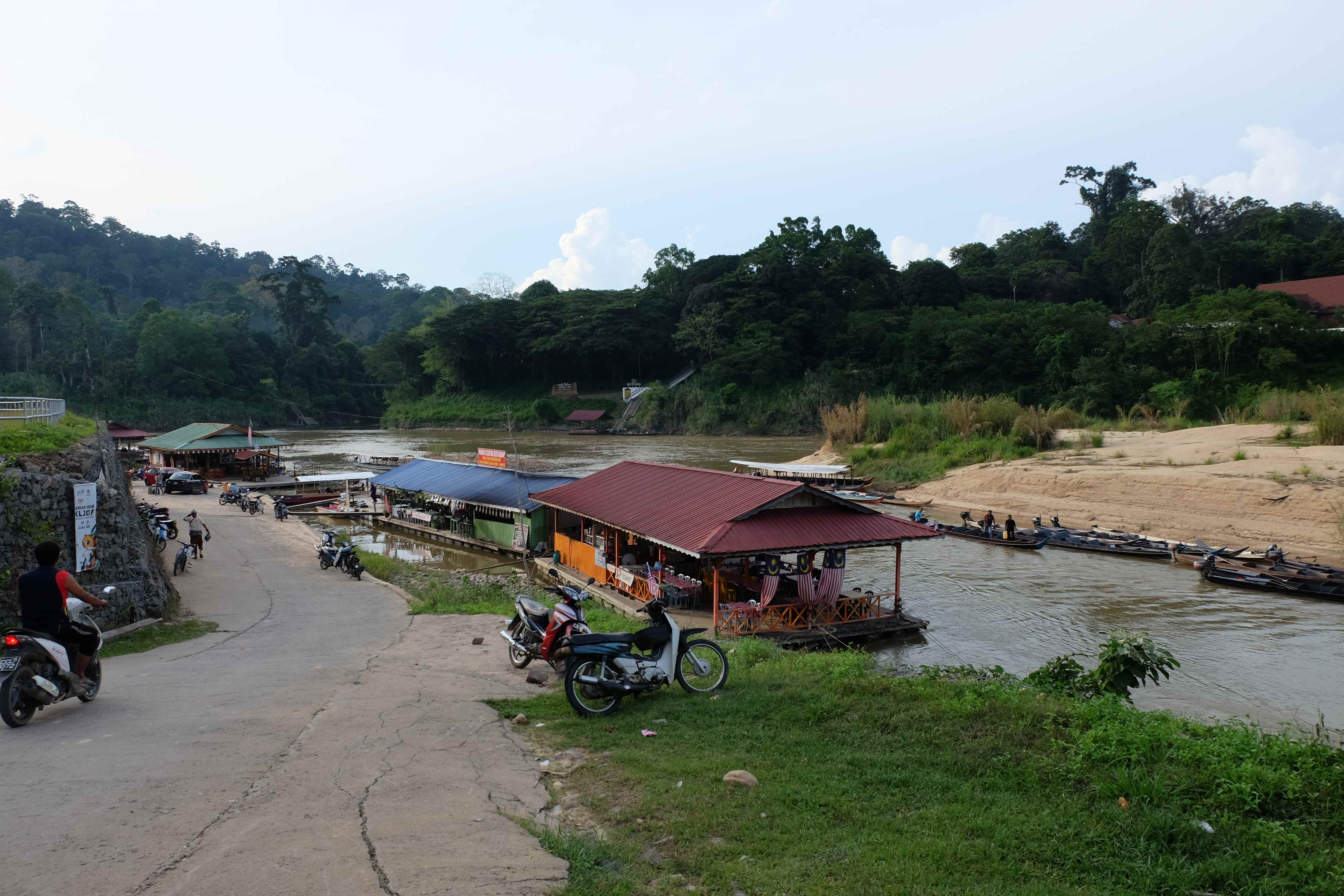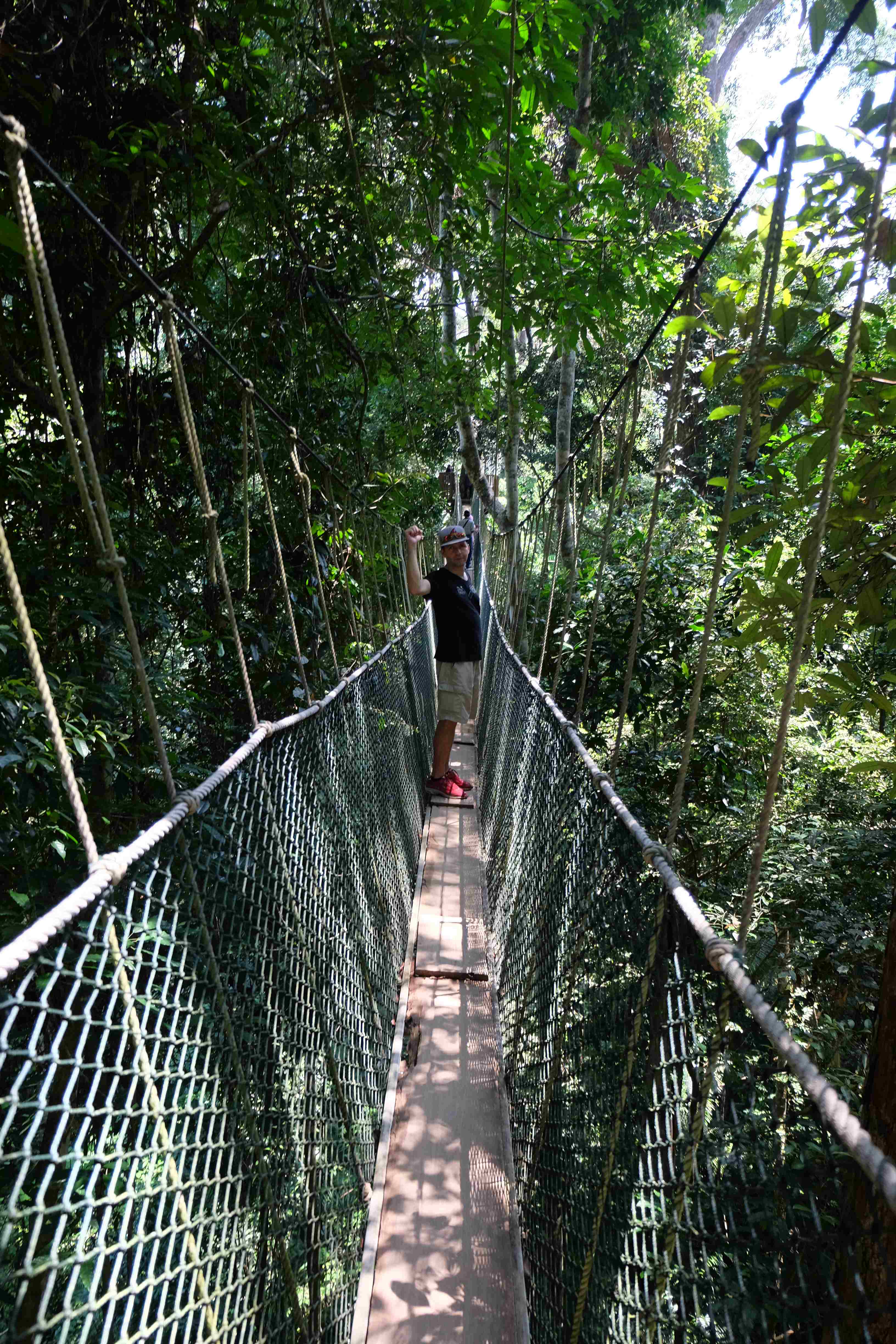 Der Taman Negara Nationalparkt liegt auf der malaiischen Halbinsel und beheimatet das älteste Waldgebiet der Erde. Die Landschaft entzückt einen mit sehr dichten Tropenwäldern und exotischen Anblicken. Was kann man denn hier tun? Natürlich gibt es die Touristensachen, wie Panorama-Punkte, kurze (und längere) Laufrouten, die – je nach Fitness und Lust – zwischen einer halben Stunde und 7 Stunden lang sein können, die höchste und dafür berühmte Hängebrücken-Lauftour der Welt… und natürlich jede Menge sog. „floating restaurants“ die dafür sorgen, dass man nicht verhungert. Dies genossen wir am ersten und am 2. Tag unseres dortigen Aufenthaltes. Dabei mussten wir Eines feststellen: das Wort „schwitzen“ ist im hiesigen Wortschatz überflüssig, da es nie dazu kommt, dass man schwitzt. Man wird regelrecht unter eine tropische Dusche gestellt und gänzlich gebadet sobald man sich hier lächerliche 5 Minuten bewegt. Wir lassen die Fotos für uns sprechen: