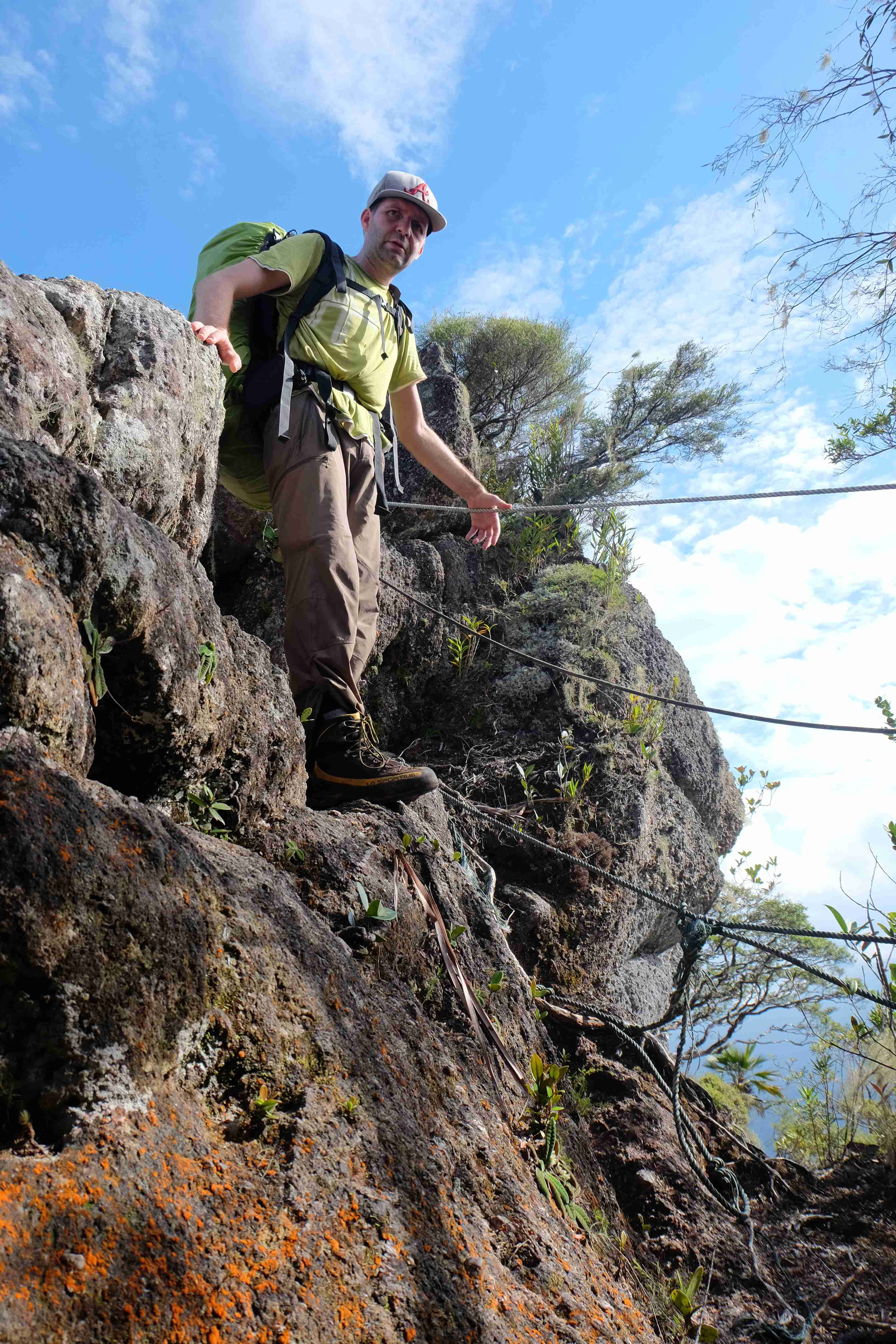 Pornim la drum! In dimineata urmatoare am lasat micul sat la poalele junglei pe nume Kuala Tahan in urma si am pornit spre culme. Ce ridicol suna: culmea unui doimiar… Dupa prima ora deja a fost clar pentru noi: am fost niste idioti! Culmea si muntele in sine poate ca sunt de o dificultate ridicola, altitudinea floare la ureche, insa jungla pe care trebuia sa o traversam in toata splendoarea si lungimea ei pentru a ajunge la acest munte: ucigatoare! Afirmatia anterioara cum ca dupa nici macar 5 minute in miscare esti pus sub un dus tropical si imbaiat nu este valabila pentru acest traseu. Aici sunt alte practici: esti pus sub o cascada si udat cu apa fierbinte si sarata in timp ce se sufla pe tine cu aer fiert cu o umiditate de 90%. Intre timp ti se ataseaza niste ventuze la incheieturile picioarelor care iti iau sange pe gratis: asa numitele lipitori (engl. Leech) care ti se strecoara neobservate in sosete si pantofi si iti sug sangele pana explodeaza de pline ce sunt. Aceasta este insa abia incalzirea. Acum abia treaba devine serioasa: cand esti mai usor si nu mai ai de carat atatia litri de sange cu tine pentru ca lipitorile te-au ajutat, incepi sa te antrenezi pentru urmatoarele jocuri olimpice la disciplina de obstacole. Antrenamentul insa intotdeauna trebuie sa fie mai dur si mai solicitant decat proba in sine. Cum reusesti acest lucru in jungla? Iata reteta: se iau trunchiuri de copaci cu toate diametrele posibile, se plaseaza diagonal pe carare, se aduc doi idioti precum Rafi si Ina care se cred Rambo 2 si au dorit sa parcurga acest traseu si se observa cum acestia trebuie sa sara la fiecare 10 metri peste copaci. Datorita diametrelor adesea enorm de mari ale trunchiurilor, antrenamentul a fost unul combinat: nu doar pentru proba de obstacole ci si pentru cea de gimnastica la sol, exercitiul cel mai des efectuat fiind sfoara.:-) Dupa ce s-au absolvit aceste exercitii de incepatori trebuie ridicata dificultatea antrenamentului, la urma urmelor doar vrem sa devenim Rambo, nu? Deci apare “ceva” noroi. Cand spun „ceva” ma refer de fapt la o cantitate suficienta pentru a face fericita intreaga populatie de elefanti de pe continentul asiatic si a-i oferi zilnic ocazia de a se imbaia si tavali prin noroi. Ca sa nu te poti plange ca trebuie sa ai pe tine tot timpul haine murdare de namol ti se ofera posibilitatea de a le spala in traversarile de rau care te asteapta pe traseu. Aspiranti naivi la titlul de Rambo ca si mine, care au fost de parere ca este floare la ureche sa treci raurile din jungla descult aveau sa afle ca s-au inselat amarnic: cu rucsacul plin, cu apa pana in talie si cu niste curenti infernali este un calvar sa atingi malul opus. Mai mult decat atat, esti plin de basici la picioare pentru ca bocancii nu ti s-au uscat niciodata pe parcursul traseului si in toate aceste zile i-ai incaltat uzi, acestia frecandu-se de pielea calcaielor si a talpilor. Credeti ca aici s-a terminat totul? Atunci ati uitat de hainele ude care nu reuseau sa se usuce niciodata peste noapte din cauza umiditatii excesive, astfel incat dimineata te asteptau ude leoarca. Ah da, si putoarea pe care noi o emanam deja, care se pare ca a inceput sa functioneze pe post de substanta anti-tantari… pana si pentru ei a fost prea mult! 🙂 Si bineinteles, cireasa de pe tort: partea de catarat si escaladat! Doar trebuie sa ajungi cumva la cei 2000m din jungla de la nivelul marii. Din pacate nu pe o poteca de drumetie, asa cum ne-am imaginat noi, ci practic intr-o singura zi si intr-o bucata, totul deodata pe stanci aproape verticale, tragandu-te in sus si ajutandu-te de sfori fixate pe peretii muntelui, de data aceasta facand sfoara – nu doar o data – pe vertical si bineinteles repetand toate acestea la nesfarsit pentru ca inainte de a ajunge pe culme ai urcat si coborat enspe dealuri si alte culmi. Pe scurt: am escaladat un doimiar insa cu vreo 5000m diferenta de nivel. Probabil l-am escaladat pe cel mai greu din lume, indiferent de cat de ridicol suna. Am vazut si experimentat pe piele proprie suficienta jungla incat sa nu ne fie dor de aceasta pentru o buuuuuuna bucata de timp, nu am devenit Rambo ci niste fiinte chinuite de basici si rani la picioare si la spate care abia mai pot sa mearga de durere… insa am reusit sa ne parcurgem traseul in timpul record si eroic de 5 zile. Prima si ultima data! 7 zile sunt probabil un timp suportabil pentru acest traseu, insa daca vrei sa savurezi totul, sa ai timp sa faci pauze, sa faci poze si din cand in cand sa iti usuci hainele in soare trebuie sa ai 9-10 zile la dispozitie. Aici va lasam pozele care ne-au documentat chinul. Nu va lasati furati sau inselati de zamabetul nostru sau frumusetea peisajului: a fost o tortura in adevaratul sens al cuvantului! 🙂
