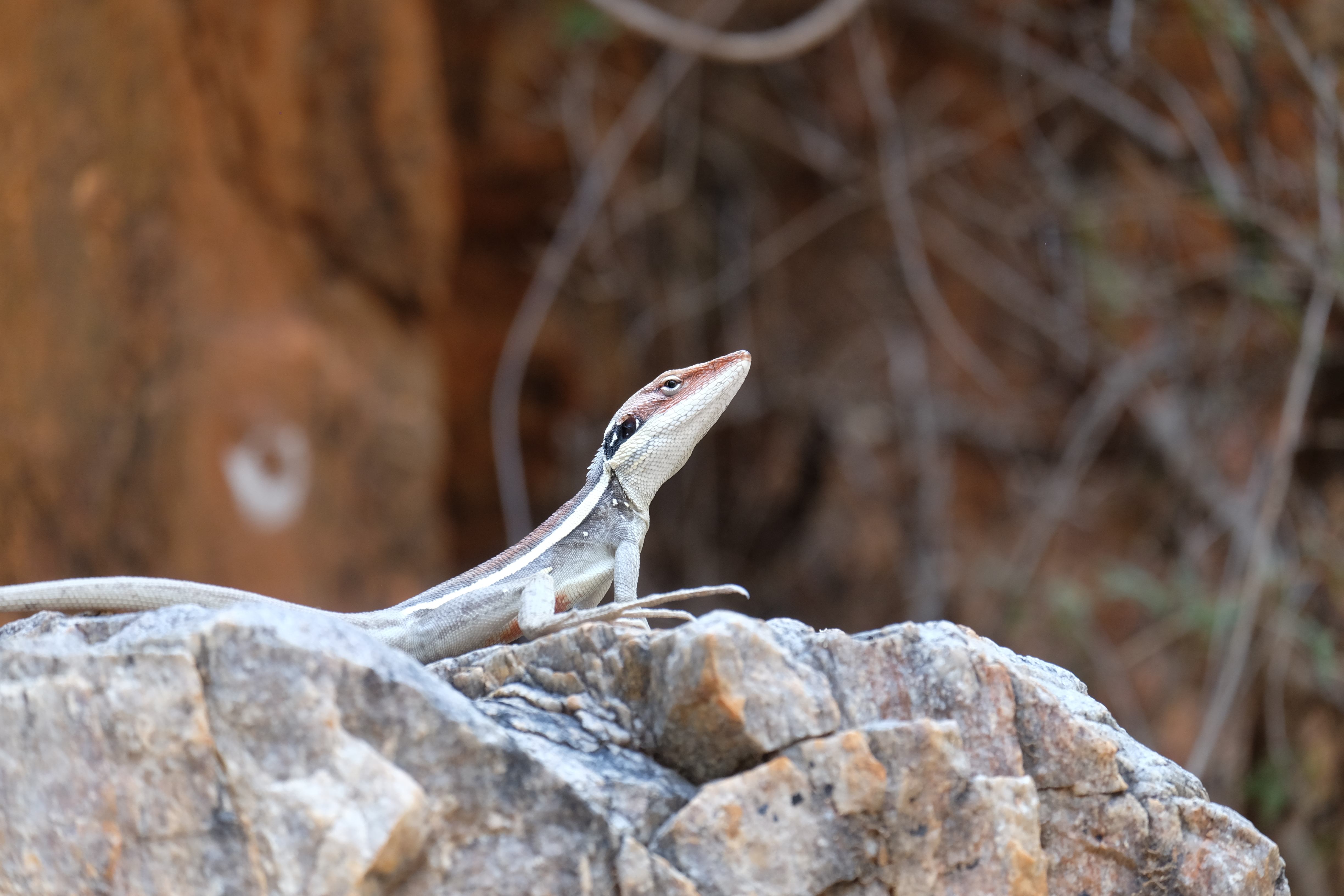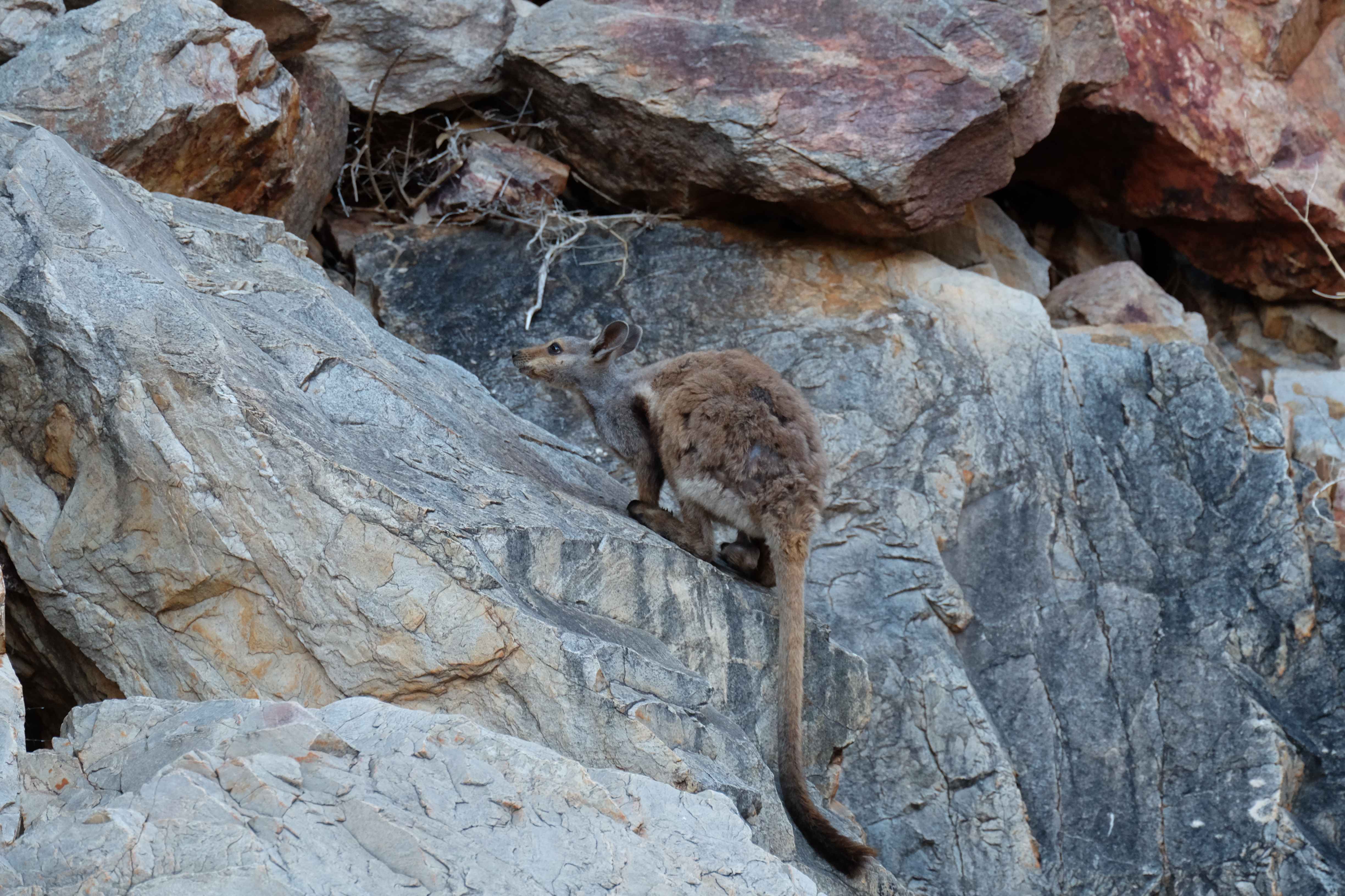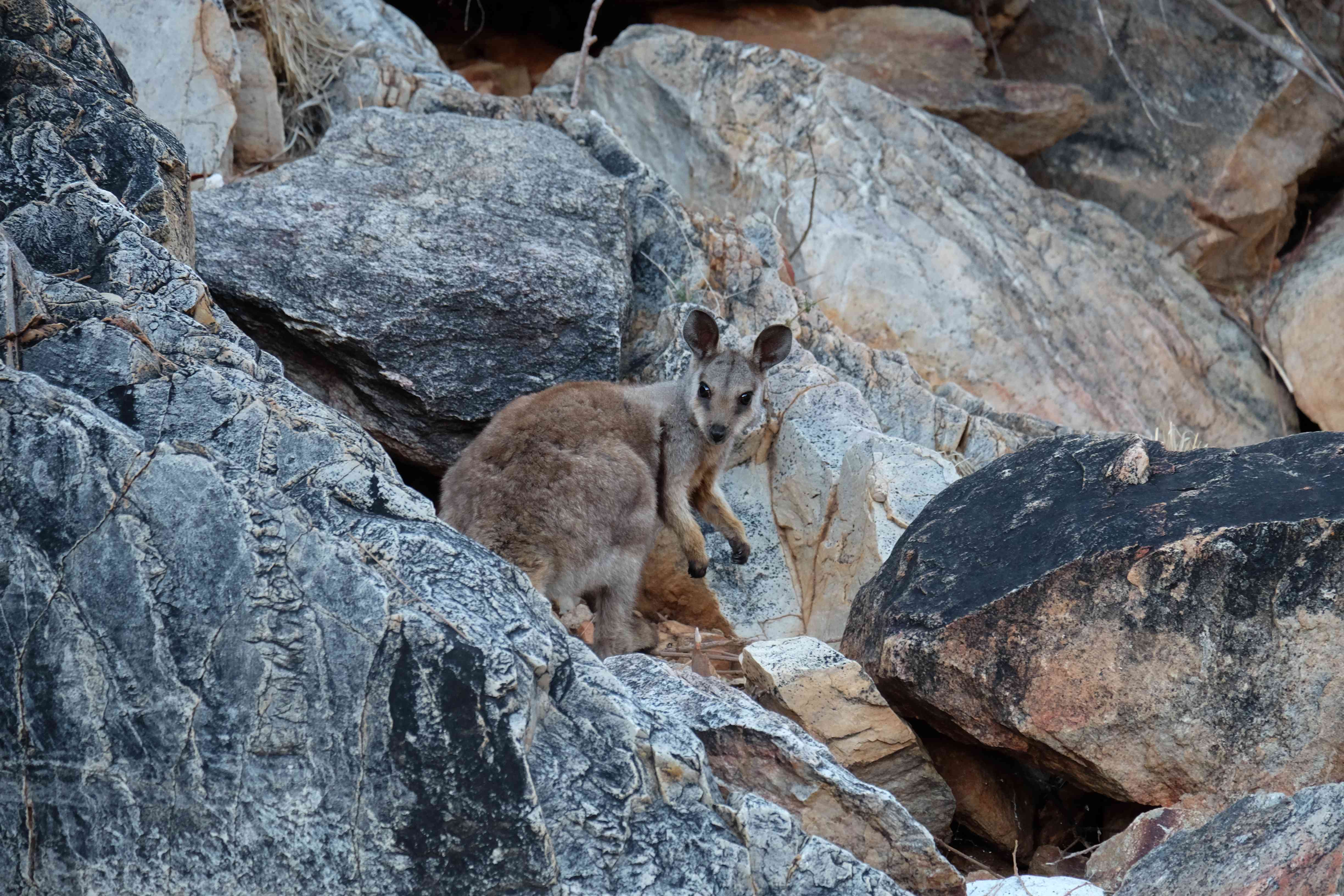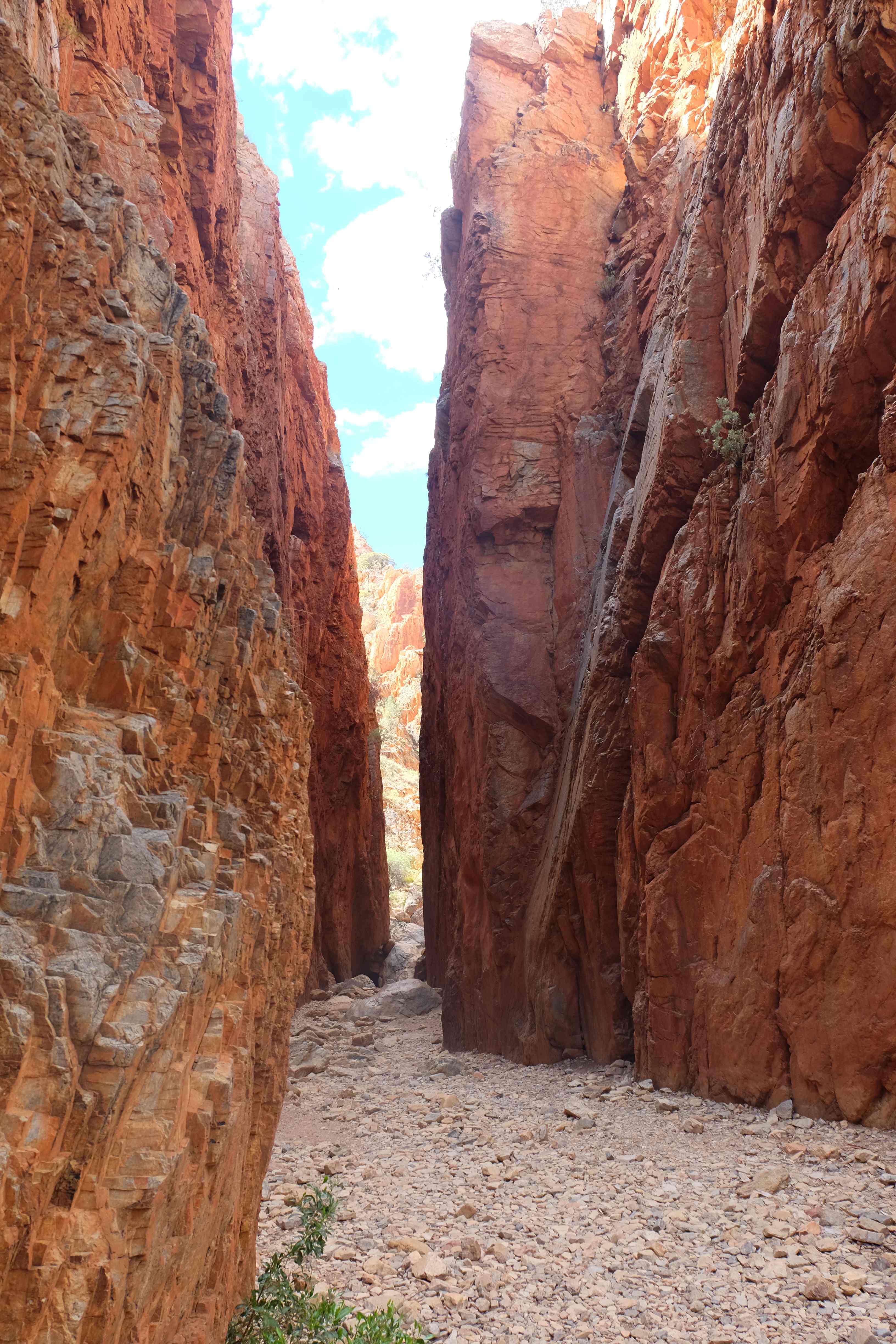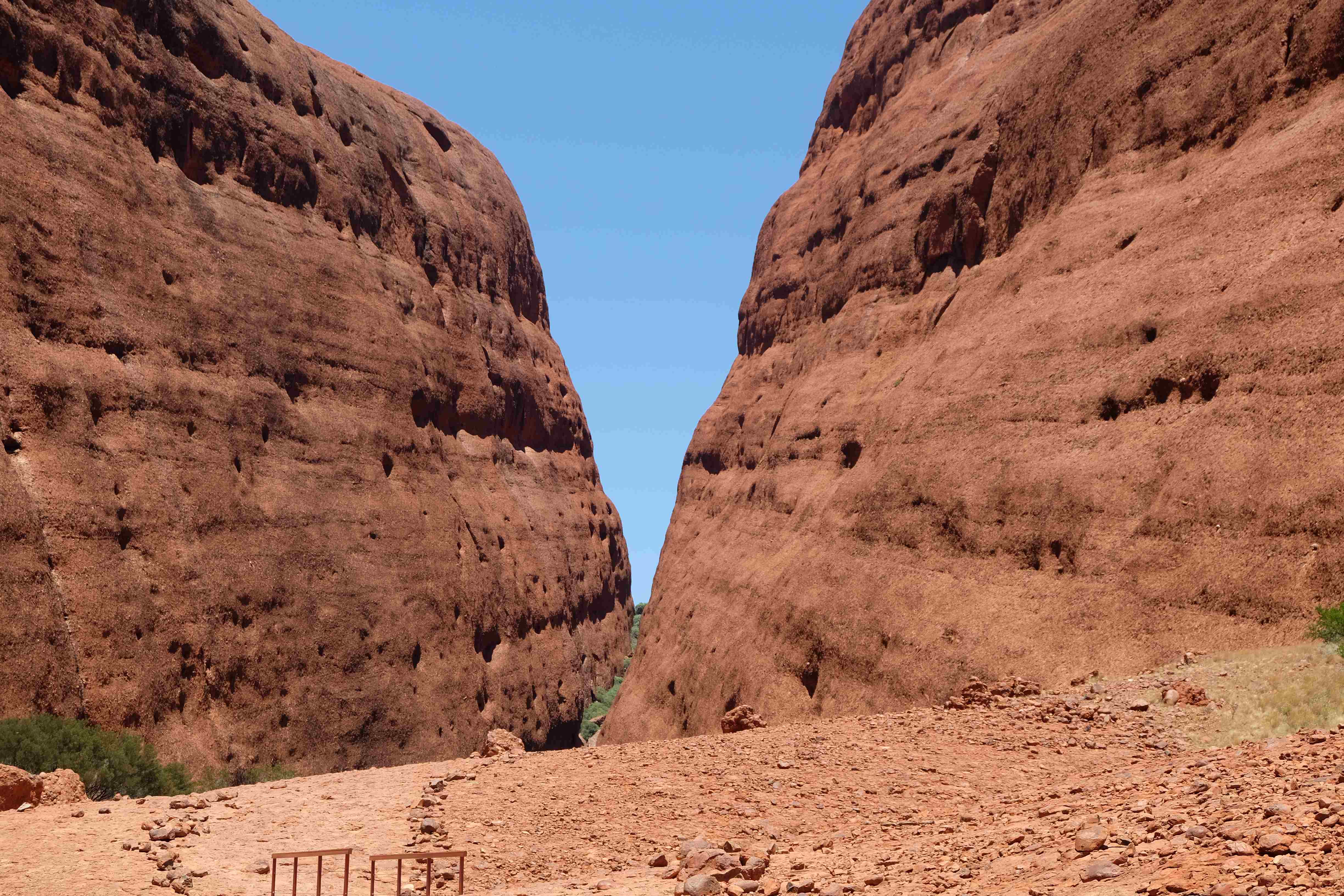 Nach der ersten im Auto verbrachten und mit einem unglaublichen Sonnenaufgang belohnten Nacht ging es morgens früh los – sehr früh, da die Wanderrouten hier aufgrund der lebensbedrohlichen Hitze und Dürre bereits um 9 Uhr morgens geschlossen werden. Wir unterschätzten ein wenig den Kampf gegen die aggressiven australischen Fliegen – die einem scharenweise beim Nasen- , Augen- und Ohrenputzen helfen wollen und sich somit in jedes Loch den Weg bahnen – sowie die vorgegebenen Flüssigkeitsmengen pro Stunden – 1 Liter Wasser pro Stunde ist doch nur normal wenn man der Gattung Kamel angehört! – Erschöpft und erschlagen erreichten wir nach guten 4 Stunden unsere Luxus-Residenz: unser neon-grünes Toyota, welches überhitzt auf uns auf dem Parkplatz wartete. Die Situation schrie einfach nur noch nach einer kalten Dusche, welche wir uns auch gönnten! Wo, fragt ihr euch? In einer der Duschanlagen der überteuerten Ressorts auf der Strecke, welche ebenfalls Mehrbetten-Zimmer mit geteilter Dusche anboten und wo wir uns einbrechermässig hereinschlichen – als seien wir zahlende Gäste – und uns erfrischten. 🙂 Da wir ja wussten, dass zwei weitere nächtliche Luxus-Aufenthalte in unserem Toyota folgten, mussten wir doch einen Weg finden unsere Geruchssinne zu schonen und – sei es auch nur einbrechermässig – zu duschen! 🙂 Frisch, sauber und als hätten wir nichts Unerlaubtes getan stolzierten wir aus den Duschanlagen heraus, begaben uns – als wären wir dortige Gäste – zu unserer schön im Schatten parkierten Luxus-Residenz und setzten unsere Reise fort. 🙂