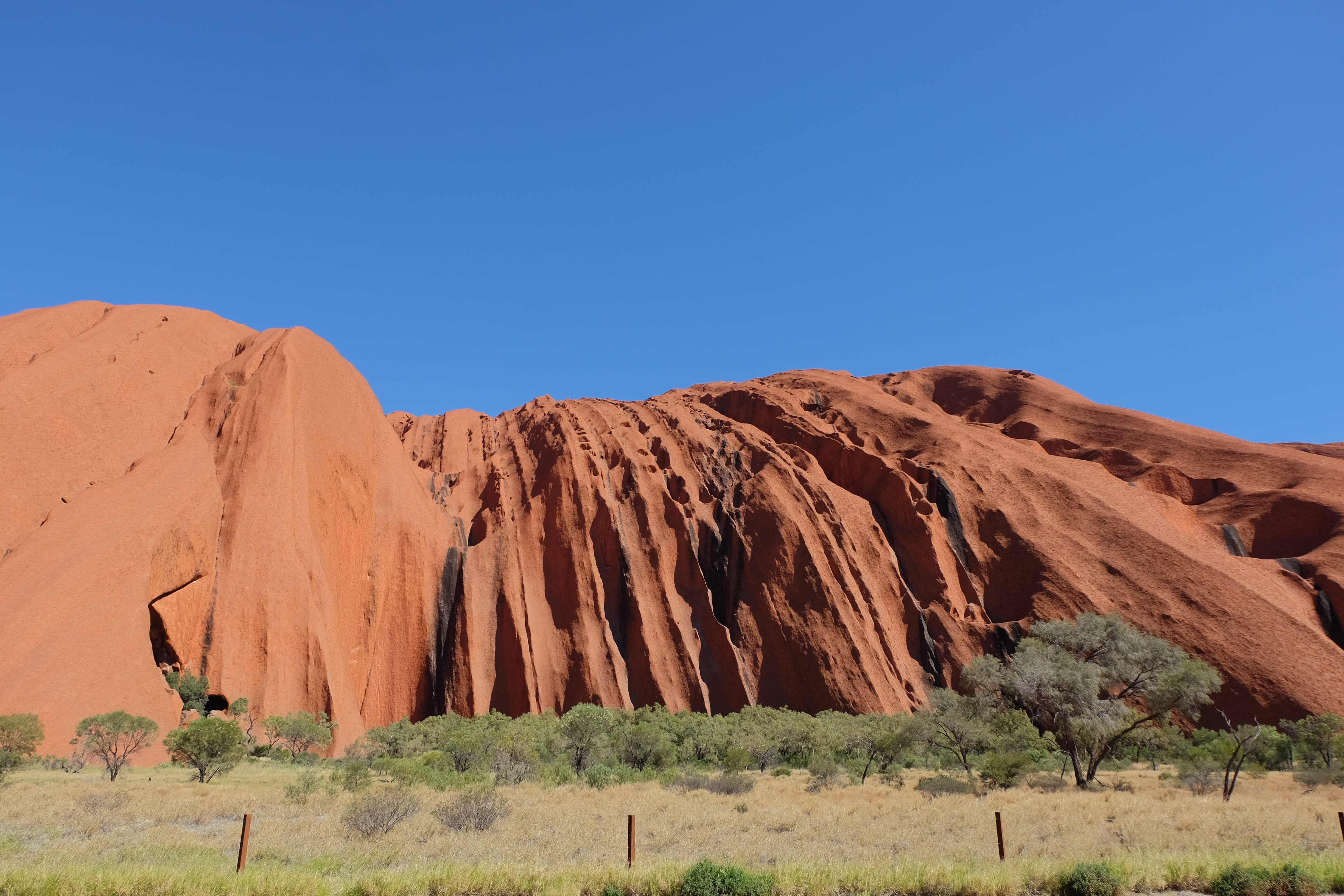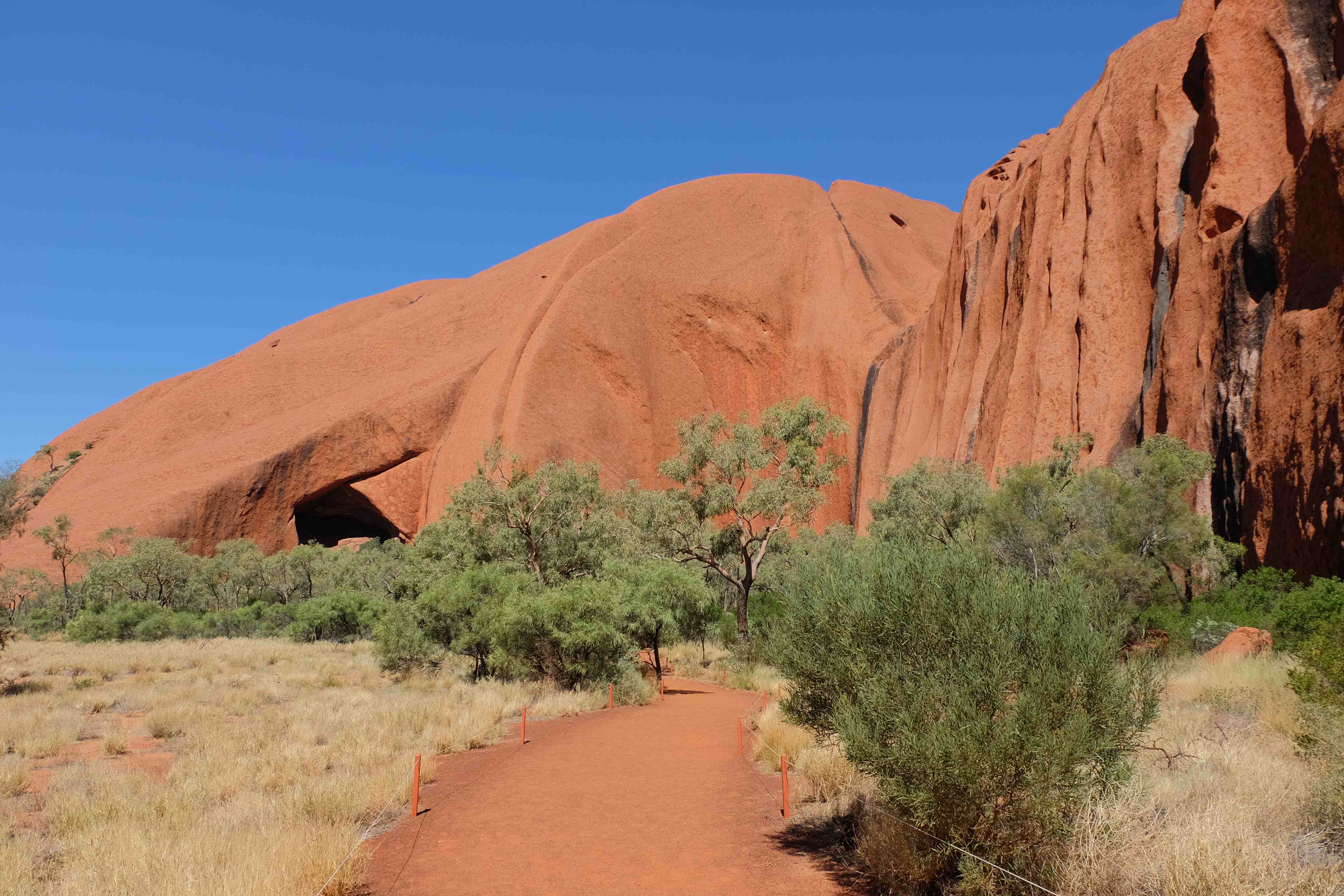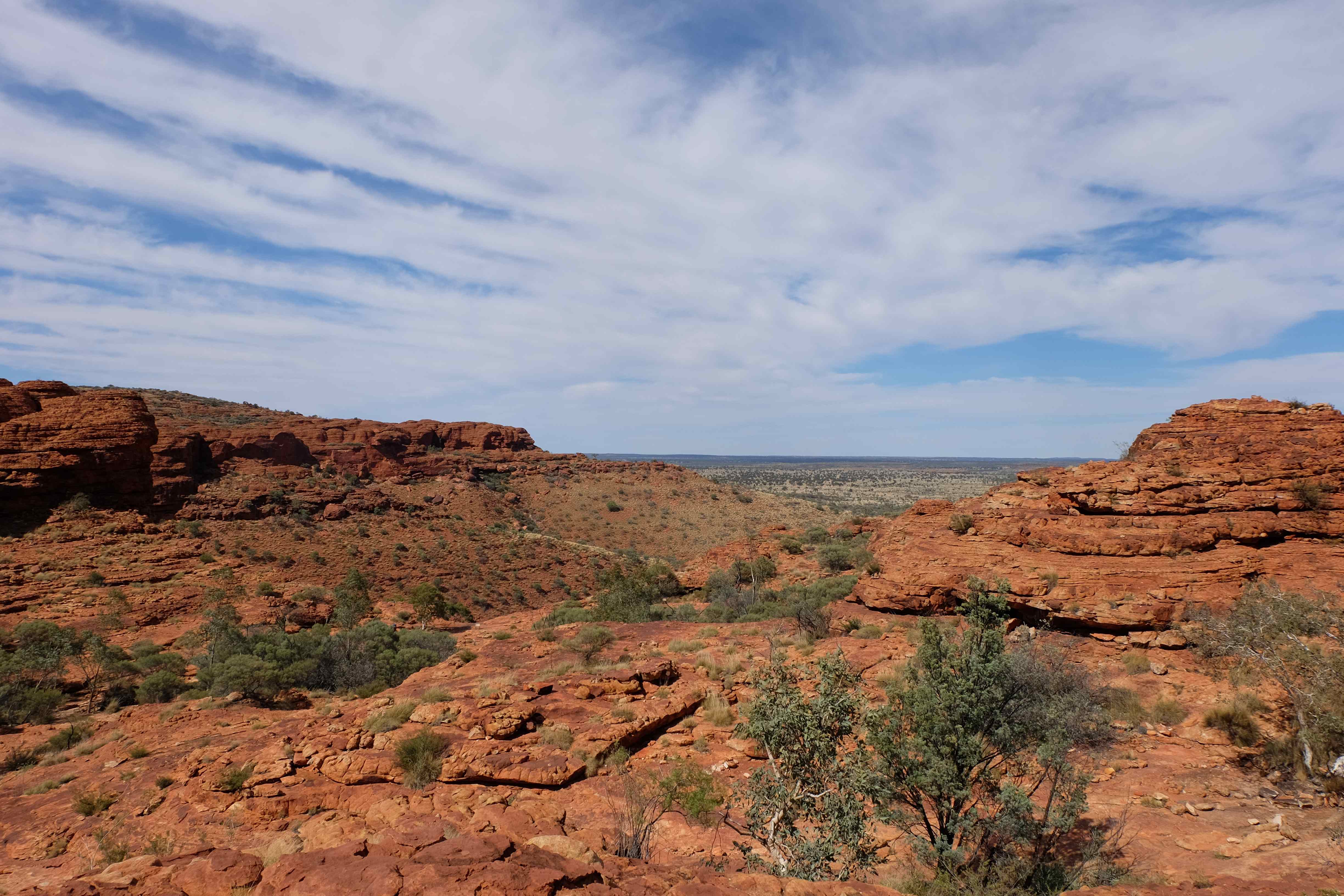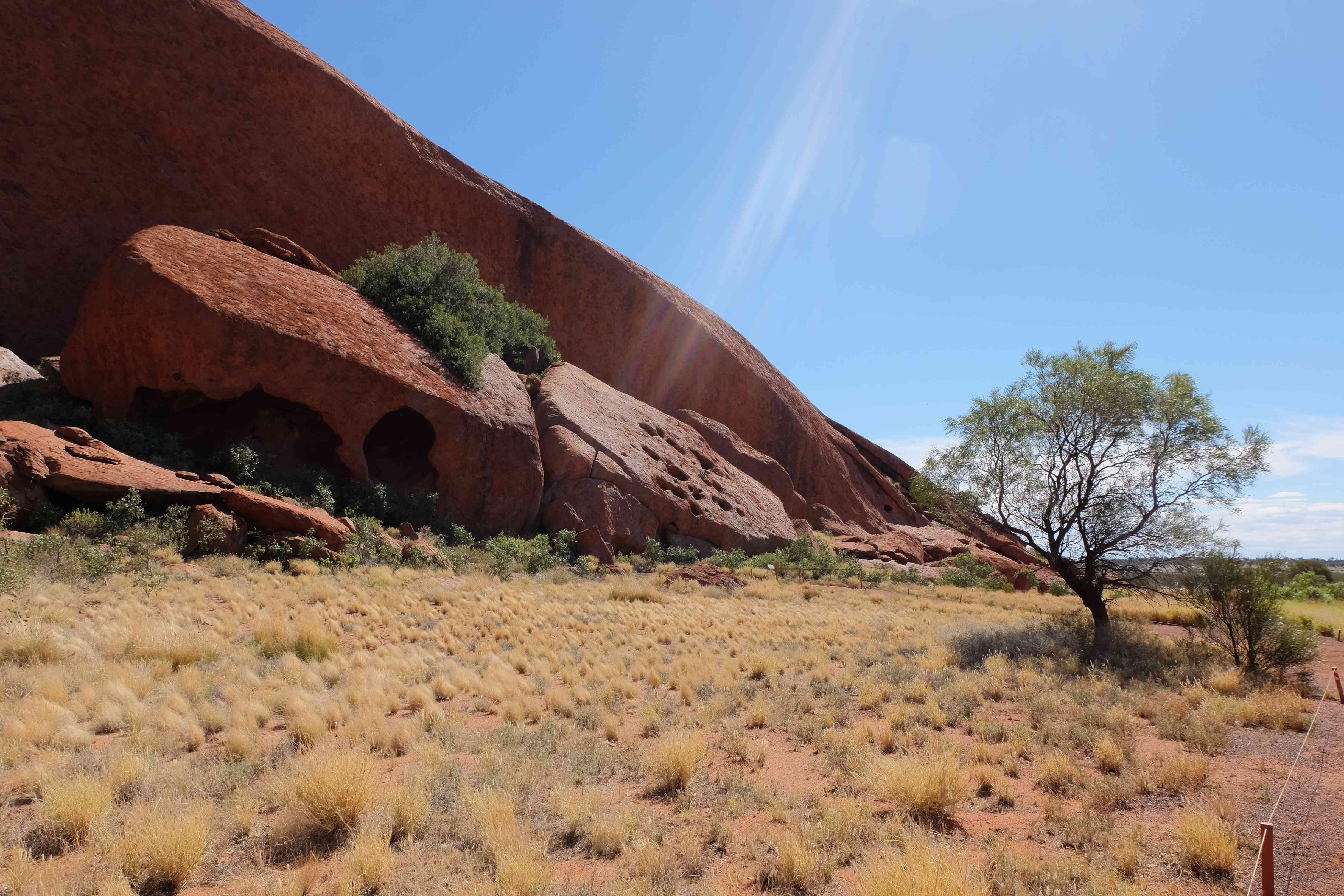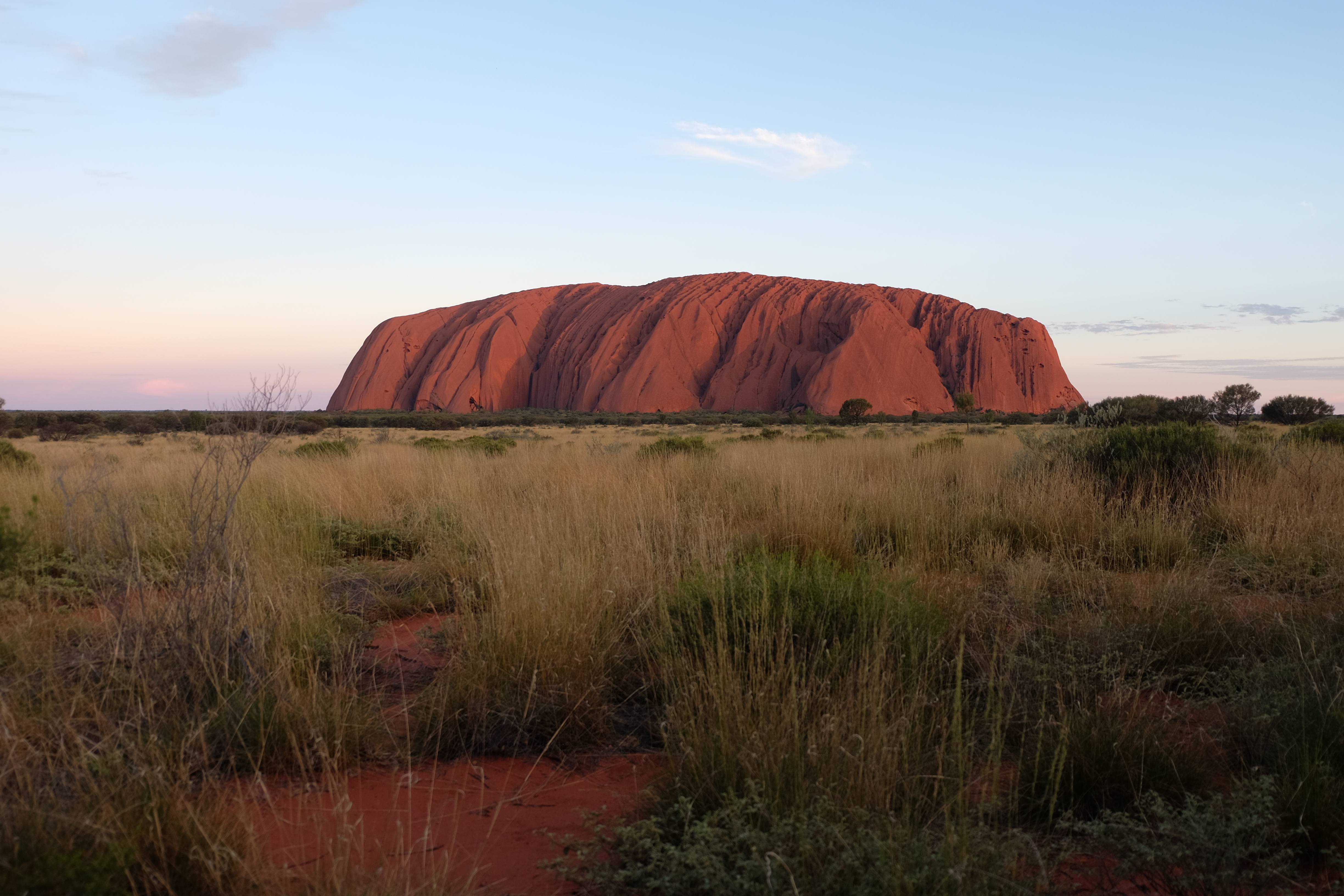 Kurz nachdem die erlösende Nachricht kam, ich müsse doch nicht in Papua Neu-Guinea Asyl beantragen, sondern dürfe in Australien einreisen, taten wir dies auch. Nach einem kurzen Halt in Sydney um bei einem Bekannten aus den schönen Manaslu-Besteigungs-Zeiten die Hälfte des Gepäckes loszuwerden, ging es schnurstracks weiter ins feurige Zentrum: das trockene, wüstenhafte Ayers-Rock. Nun, stellt euch mal folgendes Szenario vor: 2 homo europaeicus schauen sich die Australien-Karte an, sehen dort mitten in Nirgendwo einen Flughafen und eine Stadt: Yulara – und buchen überglücklich zwei Flugtickets dorthin statt ins 600 km weitergelegene Alice Springs, meinend sie hätten somit viel Geld und Zeit gespart: Ayers Rock und die schönen Nationalparks unterwegs seien schlussendlich der Grund des dortigen Aufenthaltes, was gibt es also Besseres als direkt dort zu landen? So würde man schön ein Auto mieten können, die gewünschten Sehenswürdigkeiten erkunden und budget-schonend die Strecke bis Alice Springs nur in eine Richtung zurücklegen. Ach, klingt das doch gut! Ach, war das so anders als wir dort ankamen! Der Flughafen: lediglich eine Landebahn in der Wüste mit einem modern ausgestatteten Gebäude. Anzahl dort anwesender Autovermietungen: 3, Anzahl verfügbarer Autos zu normalen Preisen: 0. Ok, klar doch, wer kommt doch auf die Idee das direkt am Flughafen zu mieten? In der Stadt ist es sicher um Welten billiger! Anzahl verfügbarer Shuttle-Busse Flughafen-Stadt: 3 pro Tag, Anzahl zu wartender Stunden bis zur nächsten Fahrt: ebenfalls 3, da es doch so schön ist! 🙂