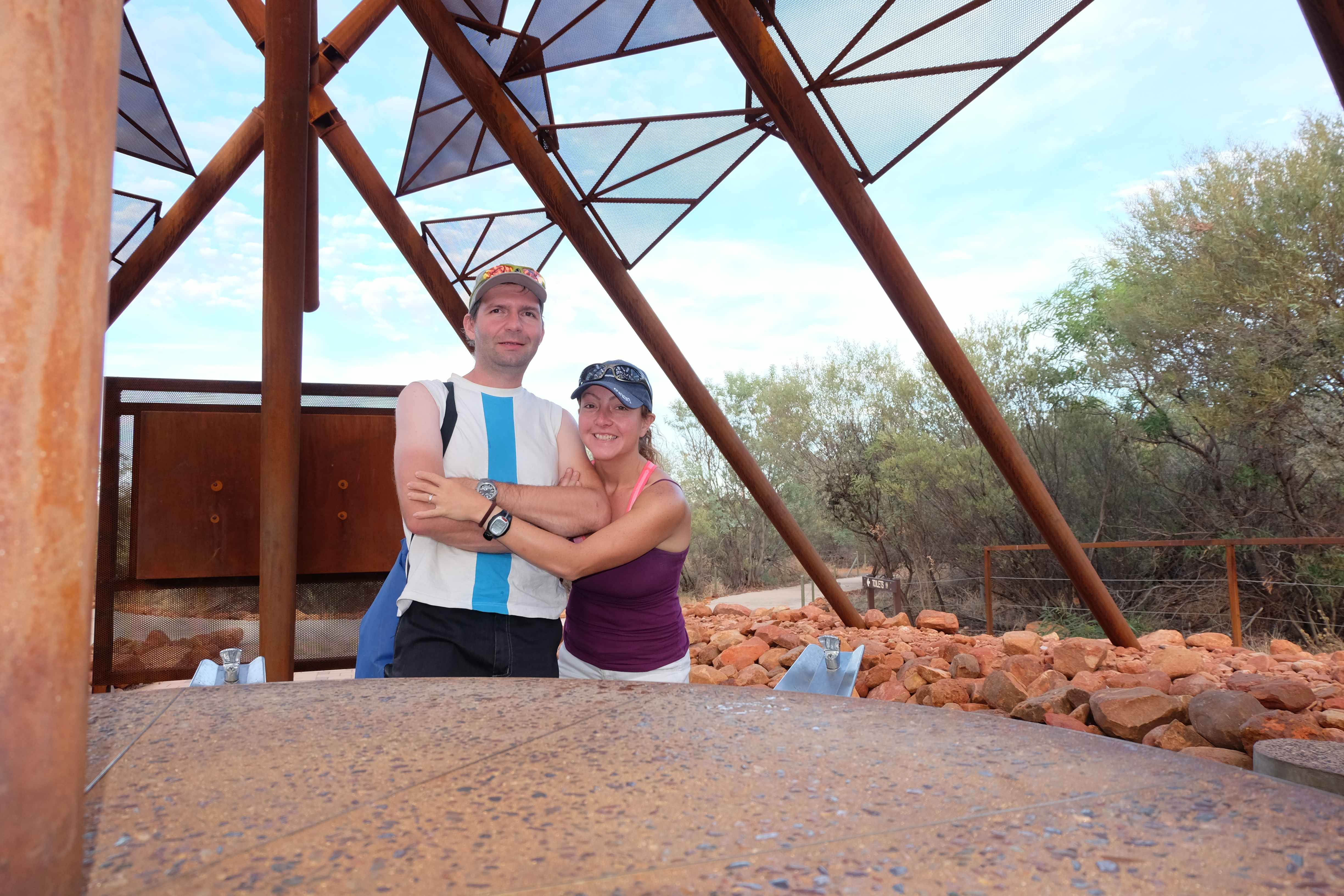 Schlussendlich kamen wir in der Stadt an: man stelle sich ein künstlich gebautes Luxus-Dörfchen mitten in der Wüste vor, wo 1.2 Liter Wasser 4.5 CHF kosten, der Begriff homo rucksackus traegerus eher ein Fremdwort ist und die billigsten Übernachtungsmöglichkeiten problemlos mit den teuren Schweizer Hotels in angesagten Skigebieten mithalten können. Das was Yulara, die sog. Stadt, über die wir uns auf der Karte dermassen freuten! Sch….eibe! Da müssen wir nun das Auto mieten und so schnell wie möglich hier weg! Naiv und unschuldig wie wir waren, dachten wir, das sei schnell erledigt. Abgesehen von der Tatsache, dass dies an dem besagten Tag nicht mehr möglich war, da sämtliche Autovermieter bereits zu hatten und wir am Tag darauf wieder zurück zu unserem beliebten Wüsten-Flughafen mussten um das gemietete Fahrzeug abzuholen – wir scheinen Flughäfen in Australien zu lieben und den Drang zu verspüren, diese mehrmals zu besuchen! – mussten wir uns wie stinkreiche Idioten auch noch mit der Kilometerbeschränkung von 100 im Preis inbegriffenen Kilometern am Tag zufrieden geben und einwilligen jeden zusätzlichen schön und brav extra zu bezahlen – und von denen waren es nicht weniger als 4-500! Was soll’s… wir landeten freiwillig an einem Ort wo das Wasser ein halbes Vermögen kostet, da kann man doch sehr wohl die andere Hälfte fürs Autofahren ausgeben! 🙂