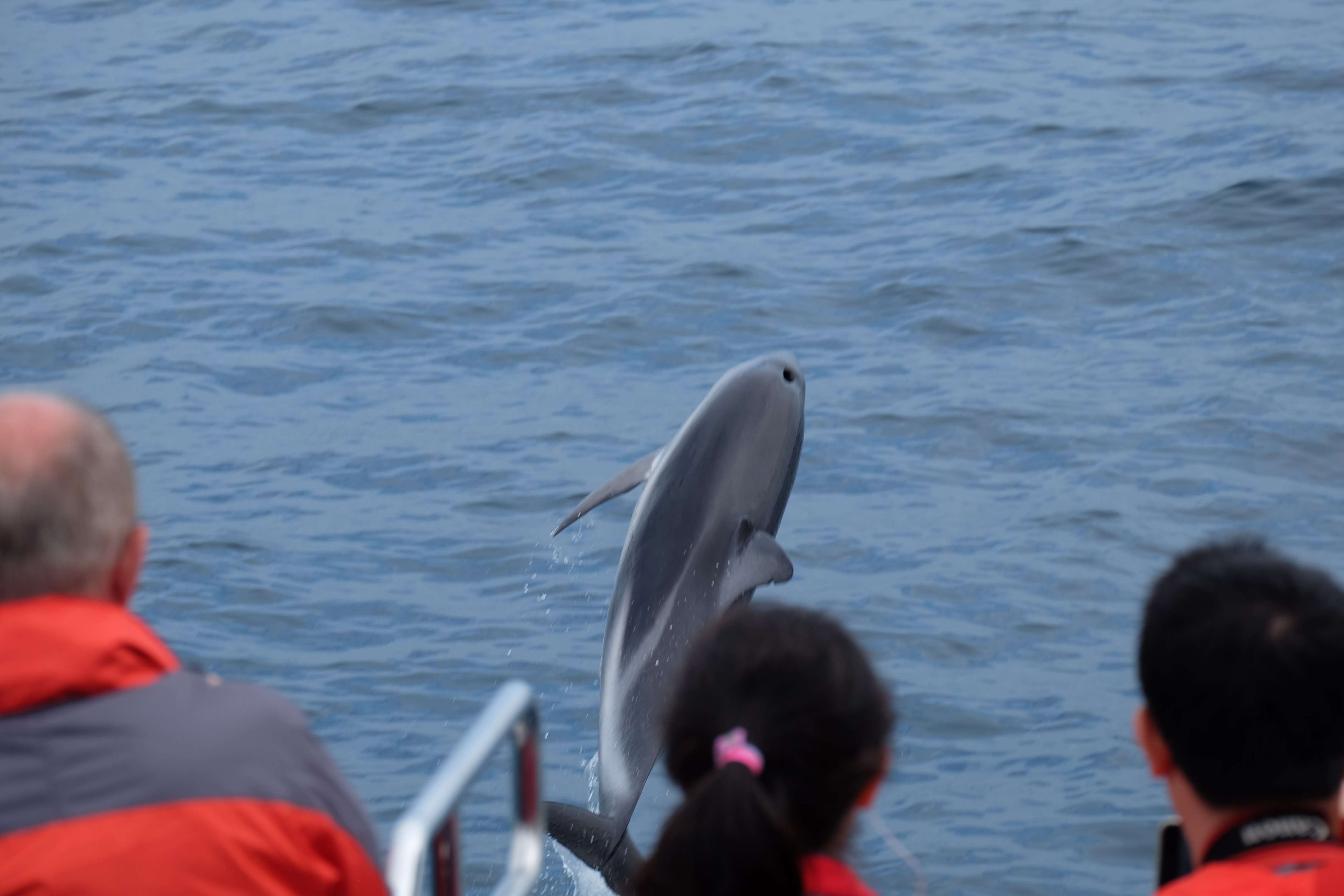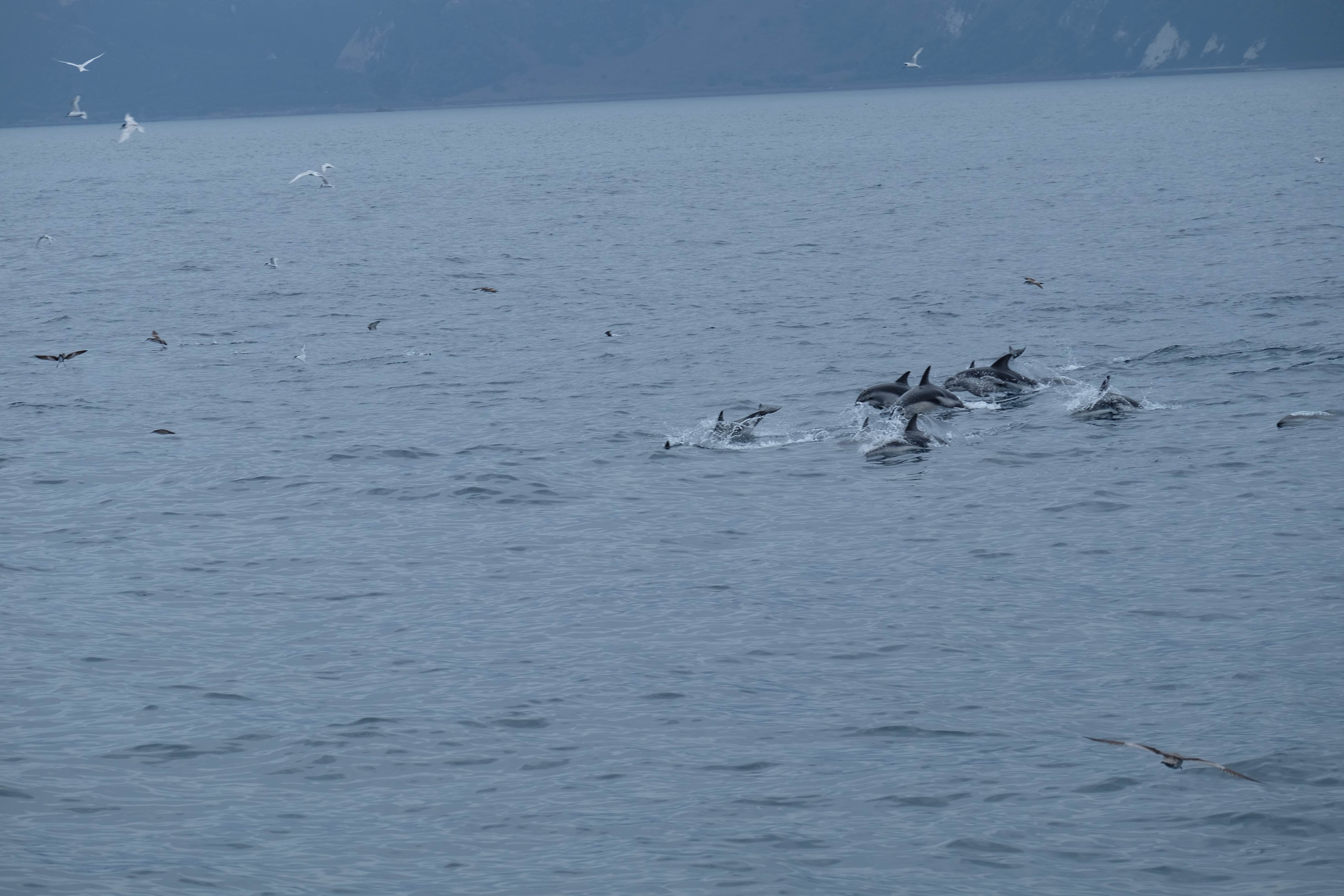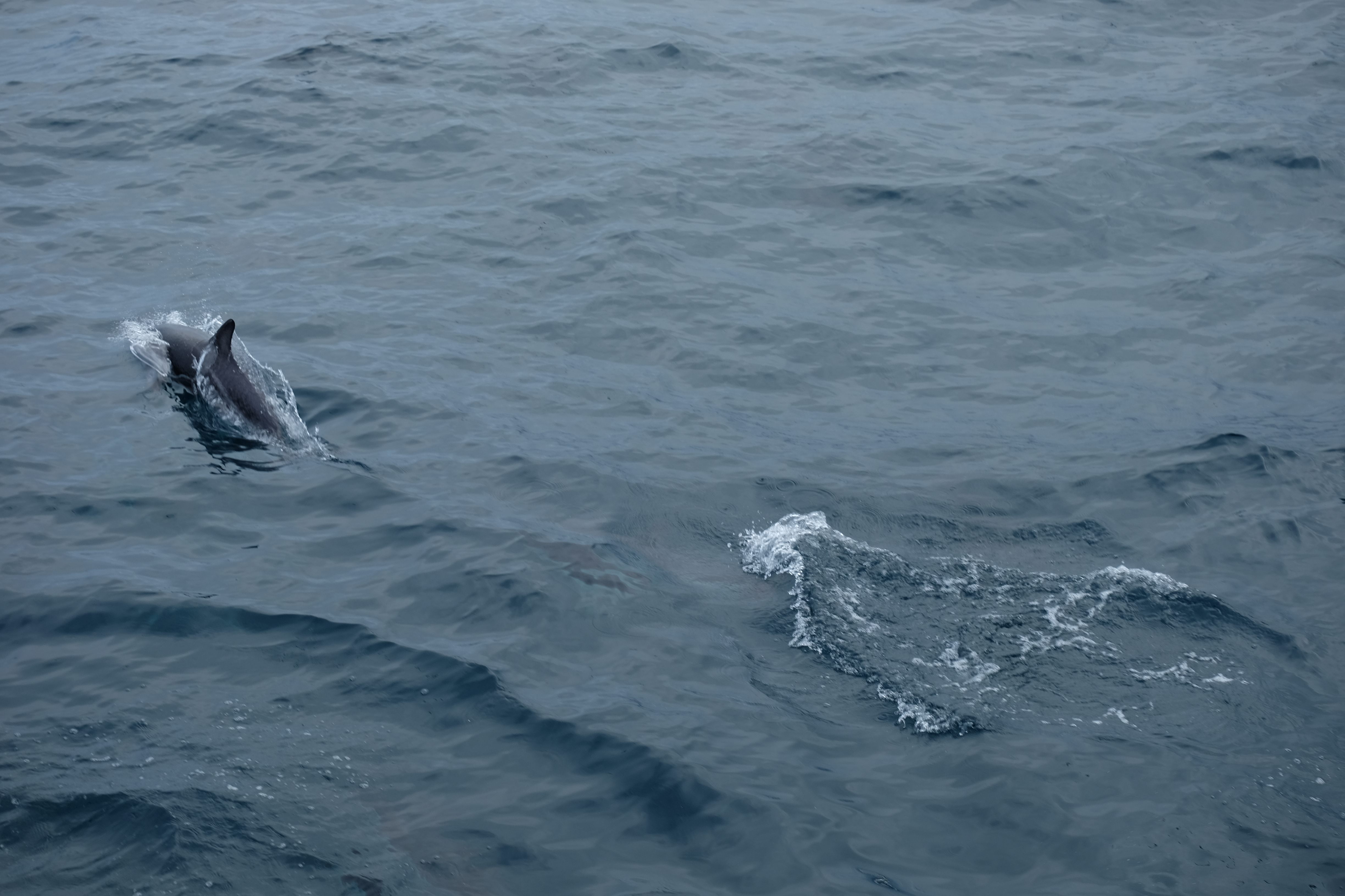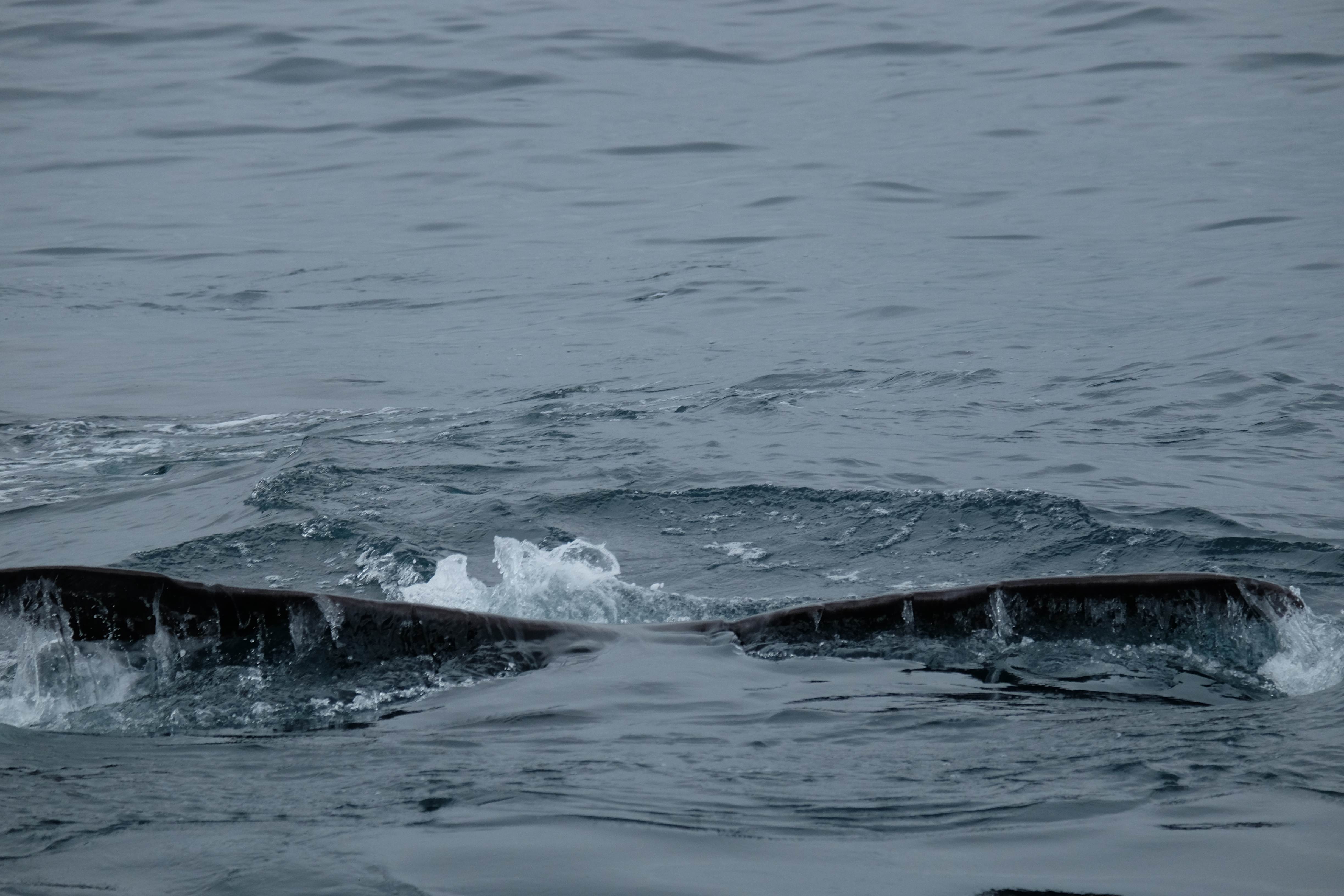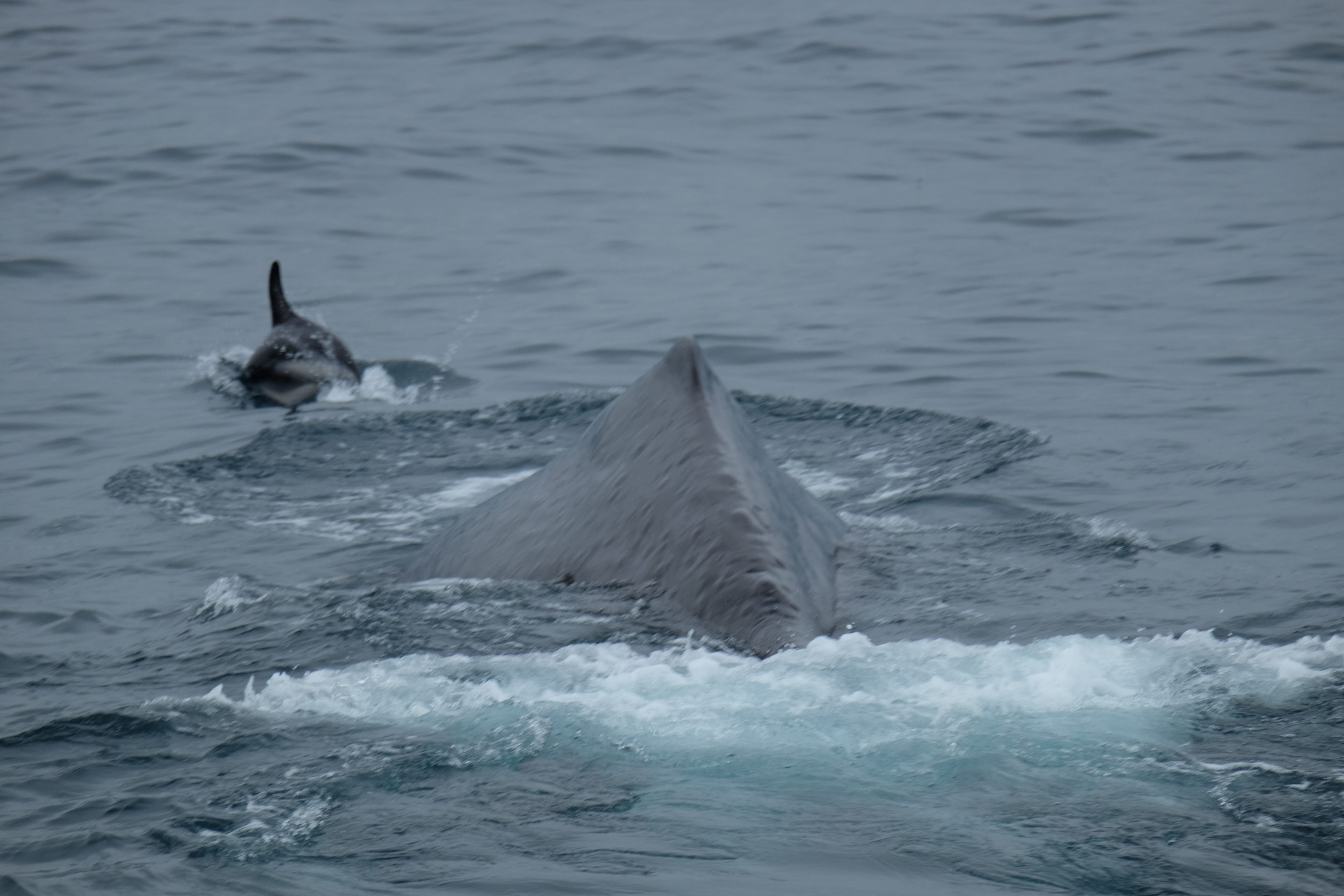 Es ist wie eine stimmlose Symphonie in Bildern und Bewegungen, bei der die hunderten Delfine die Musik jede Sekunde aufs Neue komponieren und mit ihren flinken, fröhlichen Sprüngen den Rhythmus jedes Mal aufs Neue beschleunigen während der Koloss in aller Ruhe wartet, da er eh weiss, dass die Hauptarie ihm vorbehalten ist. Ab und zu gibt er einen Ton aus, ein Atemzug der dem Chor der tanzenden Delfine den Leitfaden gibt und alles auf das grosse Finale vorbereitet. Mit einer gemütlichen, eleganten und schwungvollen Bewegung verabschiedet sich der Koloss von seinem Publikum, gelangweilt von der Oberflächlichkeit solch ephemeren Gestalten begibt er sich wieder in ewige Tiefen.