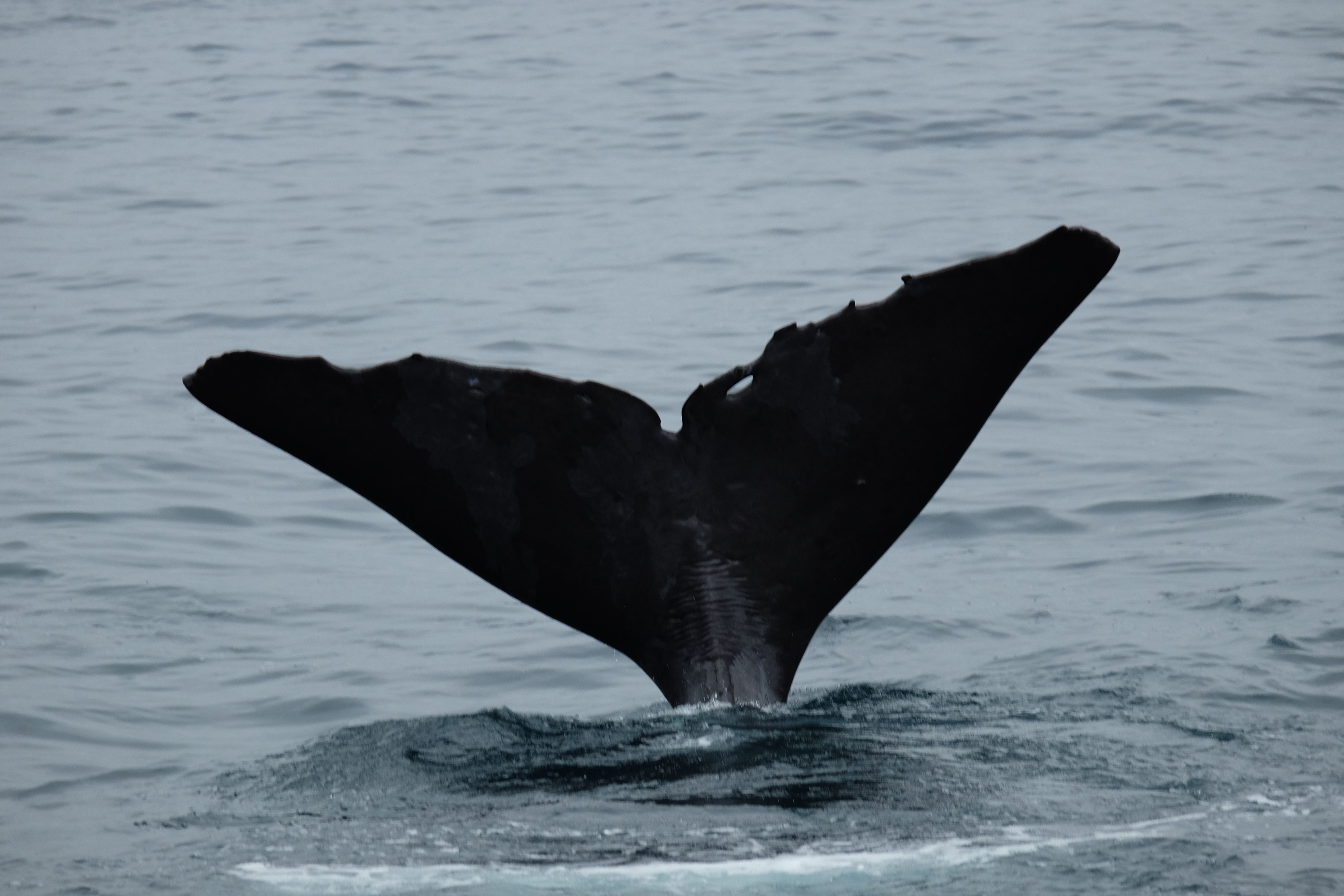 Also fuhren wir ins offene Meer hinaus, schauten voller Interesse dem Kapitän zu, wie er mit einem schlauchartigen, riesigen Hörgerät unter Wasser nach dem Atem der Wale suchte und hofften nur, dass die Wale nicht gleich wie die Safari-Tiere sich zu einem Ausflug ins benachbarte Australien entschieden als sie davon Wind bekamen, dass wir sie sehen kamen. 🙂 Anscheinend war es nicht der Fall und wir durften einem einmaligen, einzigartigen, aussergewöhnlichen, atemberaubenden, geheimnisvollen, faszinierenden, unglaublichen – ach was soll’s… denkt euch sämtliche Adjektive aus dem Superlativ-Bereich dazu – beiwohnen. Vor diesem Blog-Eintrag hatte ich am meisten Angst, da ich mir der Tatsache nämlich bewusst war, dass ich dem Erlebten mit Worten und Beschreibungsversuchen nicht gerecht werde.