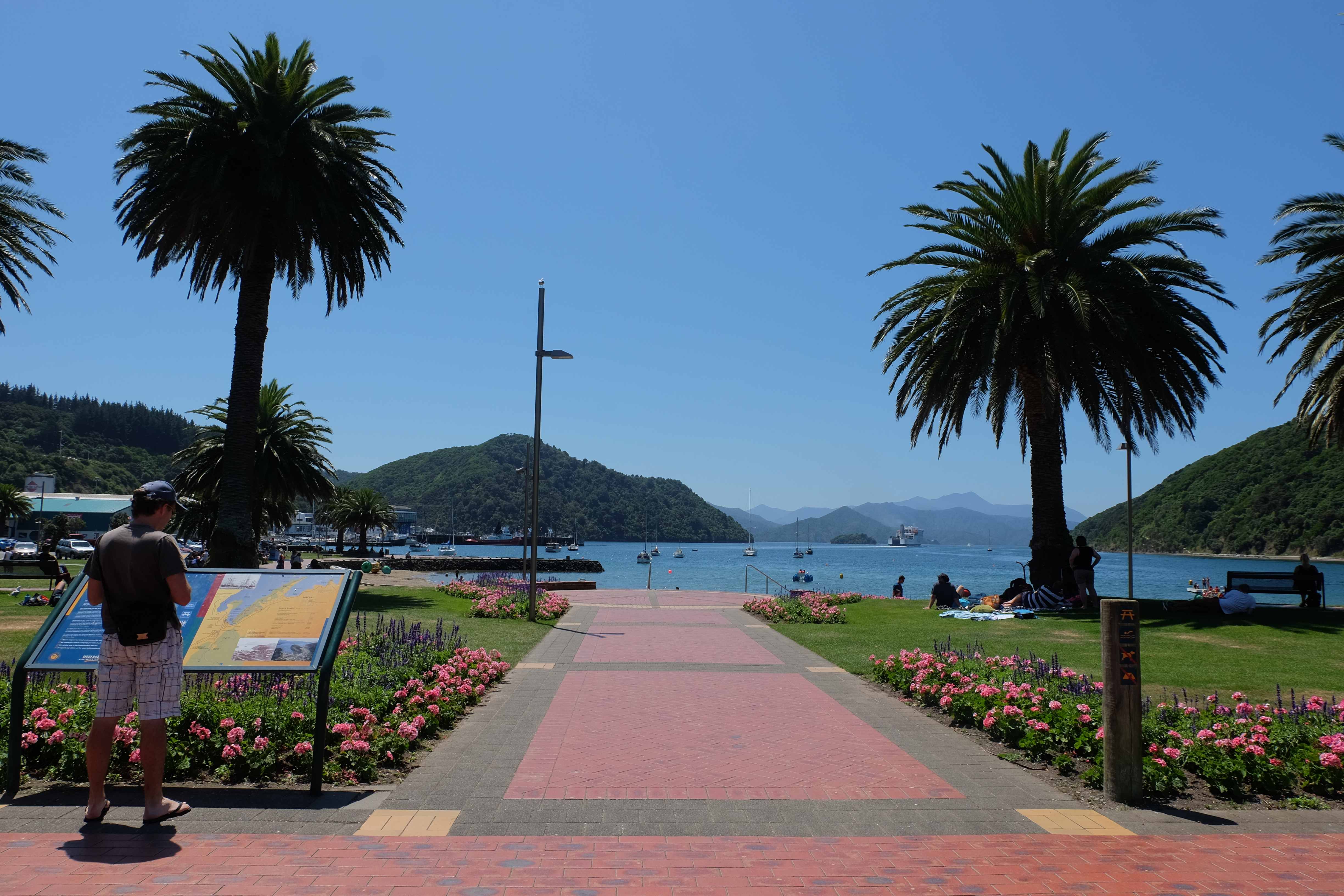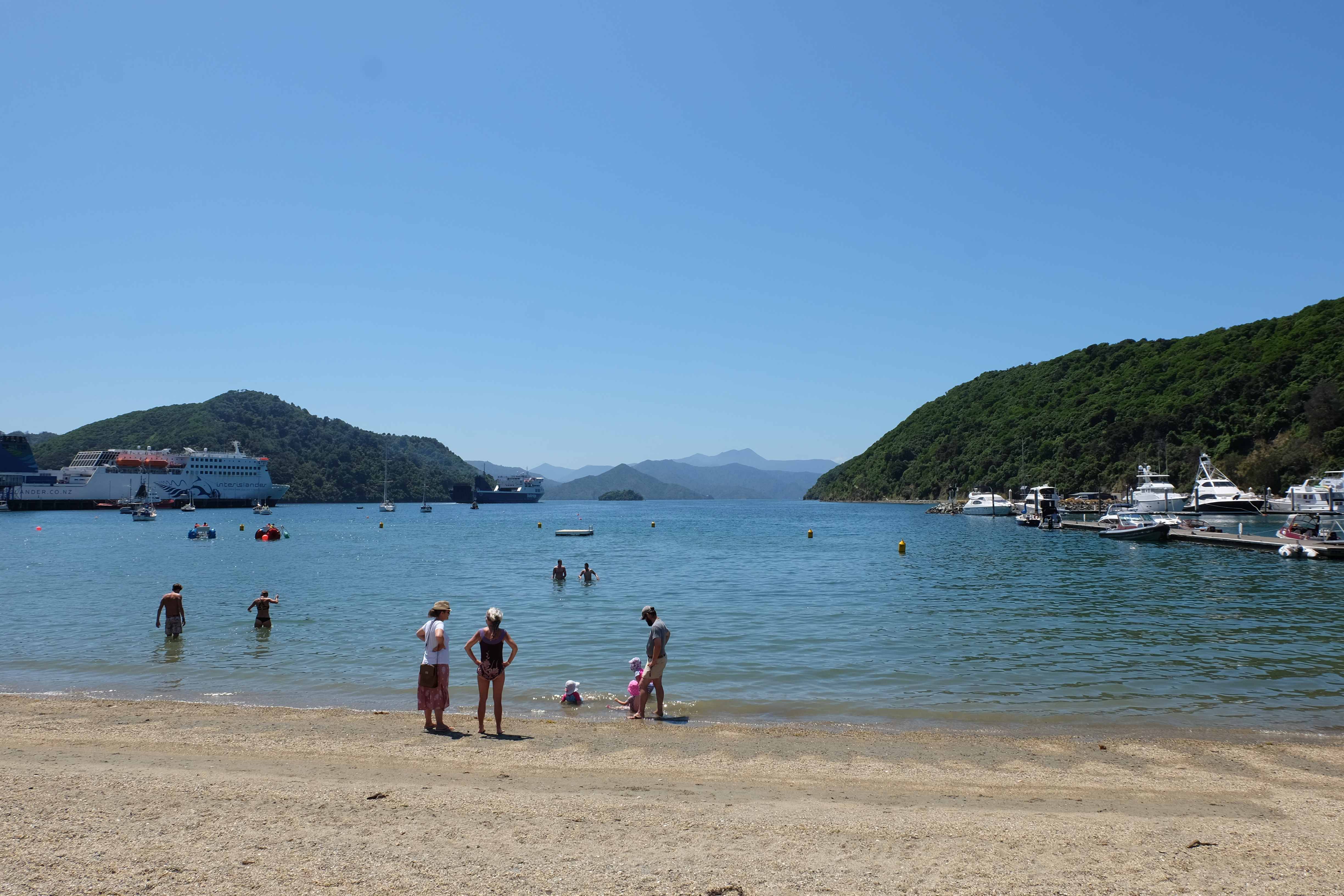 Dieser Eintrag wird euch enttäuschen… es ist vermutlich der einzige Blog-Eintrag in welchem nichts Aussergewöhnliches vorkommt. Es ist ja sogar langweilig, ich überlege es mir, ob ich den veröffentlichen oder lieber sein lassen soll! Ich meine: weder über die Strasse laufende Kühe, die zu sozial-existentiellen Kuhverhaltensmusteranalysen anregen, noch kriminell fahrende und andauernd hupende Buschauffeure; weder Wildleben, das verschwindet wenn es von unserer Ankunft Wind bekommt, noch Lastwagen als Transportmittel von A nach B; weder Melonen- oder sonst welche Früchtetests, noch Hotels auf vier Rädern mit integrierter Küche… für einmal Rafi und Ina als ganz normale Touristen, welche in Picton ankamen, in einem tatsächlichen Bett (ok, Sofa halt!) schliefen, dort ausruhten, sich ein paar Drinks gönnten, die Sonne genossen, dreckige Kleider wuschen (nein, sorry für die Enttäuschung: nicht im Meer, Bach oder Fluss mit drohenden Krokodilen um die Ecke, sondern tatsächlich in einer Waschmaschine – abenteuertödlich, ich weiss!) und (unerhört langweilig!) nicht hinüberschwammen, sondern die Fähre bis auf die Nordinsel nahmen. Seid ihr noch am Lesen, oder bereits am Gähnen vor Langeweile?