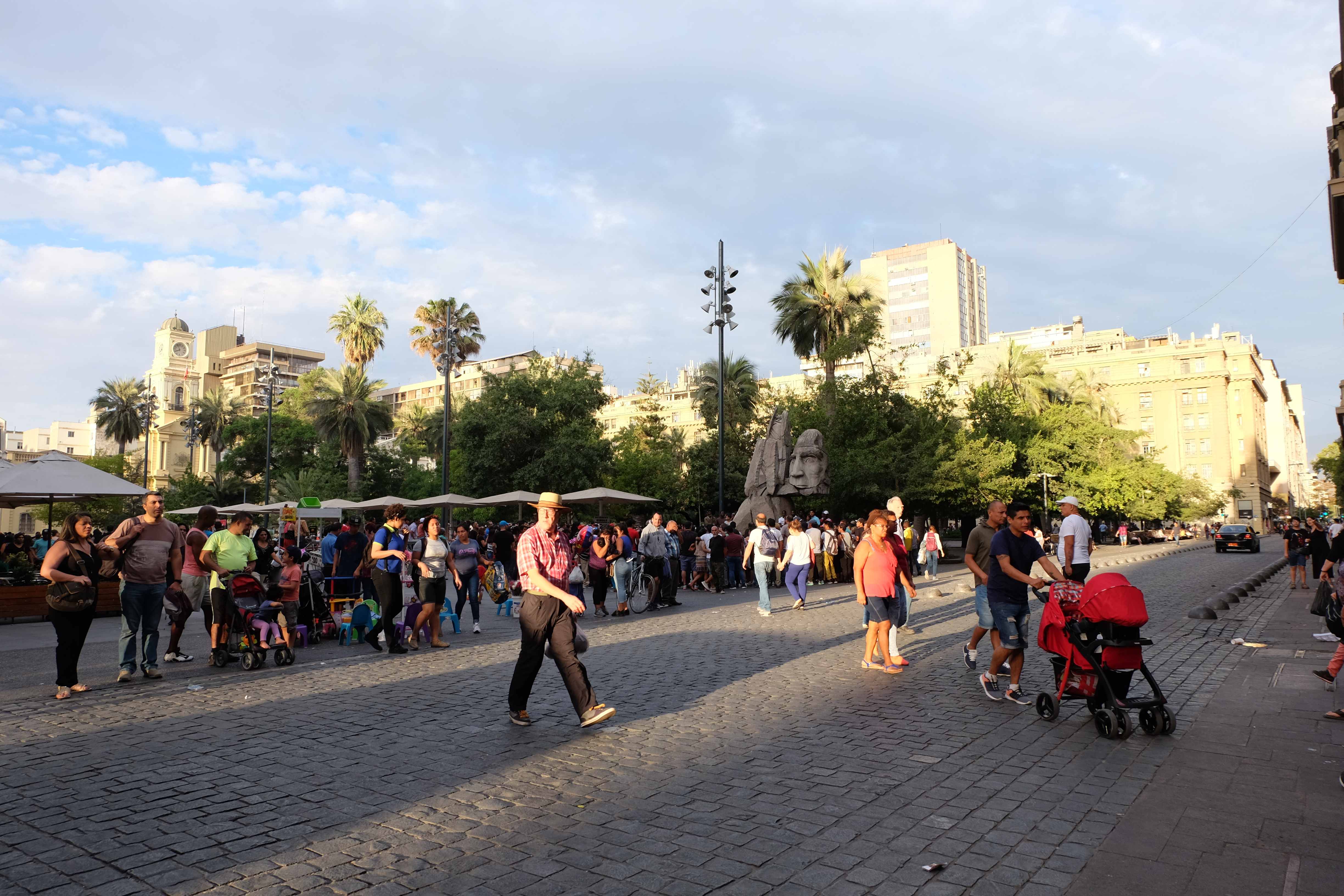 Santiago ist eine sehr lebendige, sehr südamerikanisch behaftete und sehr laute Stadt: Strassenshows an jeder Ecke, Strassenstände überall – vom Essen bis hin zu Unterhosen wird alles angeboten, alles auf der Strasse verkauft. Was für viele eine etwas zigeuner-ähnliche Stimmung scheinen mag, war für mich eher Eindruck einer gewissen Freiheit: ja, die Chilenen sind nicht so gebildet, geht man hier zu einem Mobil-Telefonie-Anbieter und fragt nach Angeboten stolpern hiesige Angestellten über technische Hürden und Fragen, welche in unserer Welt sogar ein Kind beantworten könnte. Dass man hierzulande lesen kann ist vielenorts bereits ein Garant für eine Arbeitsstelle, das Denken der Leute ist einfach, die Mehrheit verzichtet auf Abstraktes und Komplexes – es ist schlussendlich eine Welt, welche Jahrzehnte, ja vielleicht sogar mehr hintendrein ist: die Moderne und die Technik ist da, tangiert jedoch nur das Leben und ist nicht Teil dessen, es wurde von der hiesigen Bevölkerung nicht verinnerlicht und verstanden sondern lediglich nachahmungsmässig übernommen. Was mich allerdings beeindruckte war diese Freiheit beispielsweise auf der Strasse eine Show auszuführen: zu tanzen, zu springen, Gymnastik, Akrobatik, Tricks zu zeigen – was auch immer es war, was man leidenschaftlich und gut machte und konnte… und zwar ohne sich dabei eine Sekunde lang zu überlegen, dass man sich dadurch zum Clown machen würde. Rafi und ich tanzen gerne, viele unserer Bekannten und Freunde haben eine Leidenschaft… wie viele von uns würden diese auf die Strasse bringen und vorführen ohne sich dabei lächerlich zu fühlen? Wenige… fast niemand! Warum sollte ich mich eigentlich lächerlich fühlen, wenn ich tanze? Abgesehen von den Verboten und Regeln welche in Europa seitens der Polizei herrschen geht es um die persönliche Einstellung: wir Europäer haben viel mehr Hemmungen… vielleicht deswegen liebe ich Südamerika, da ich weiss, ich selber muss und habe diesbezüglich noch viel von ihnen zu lernen!