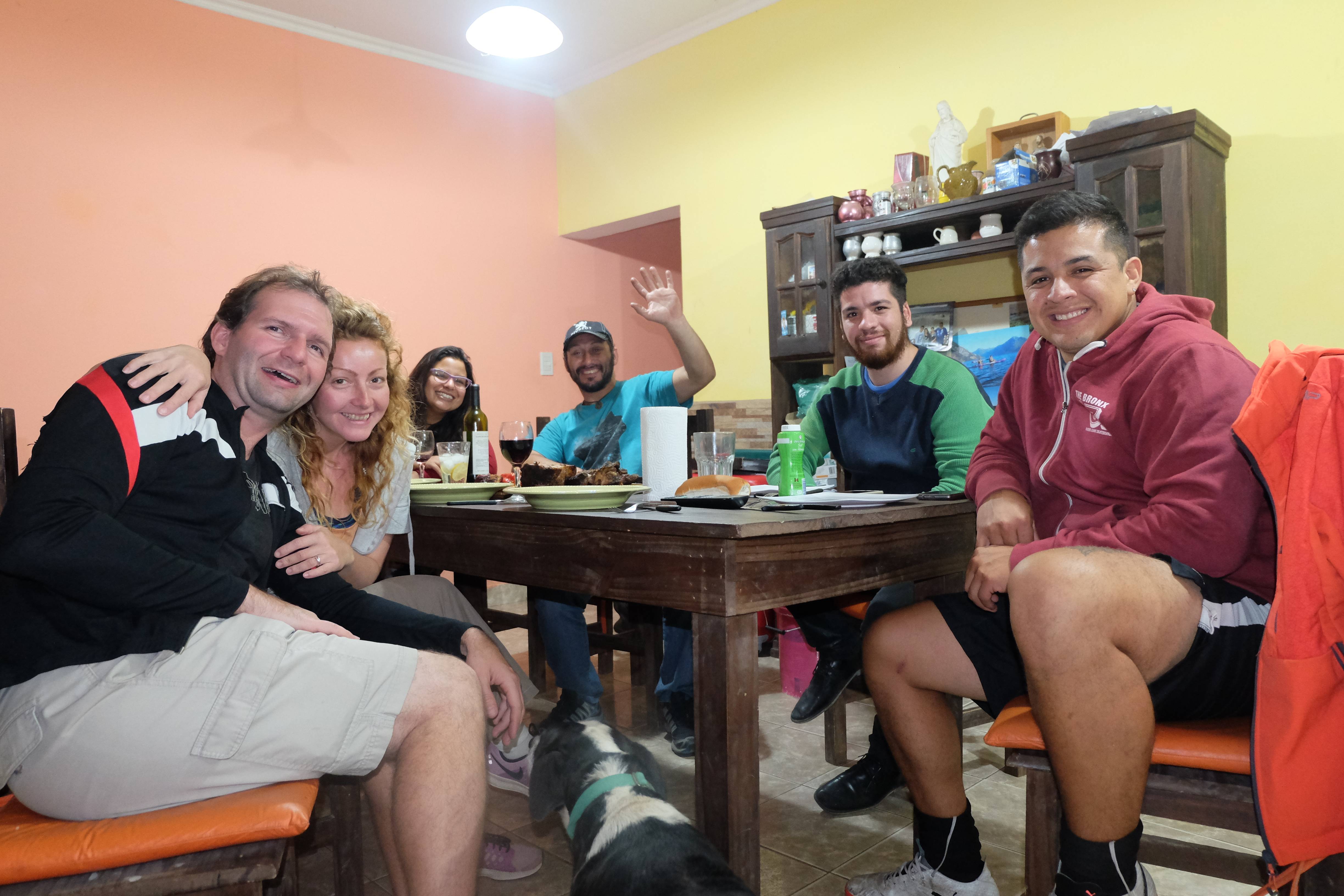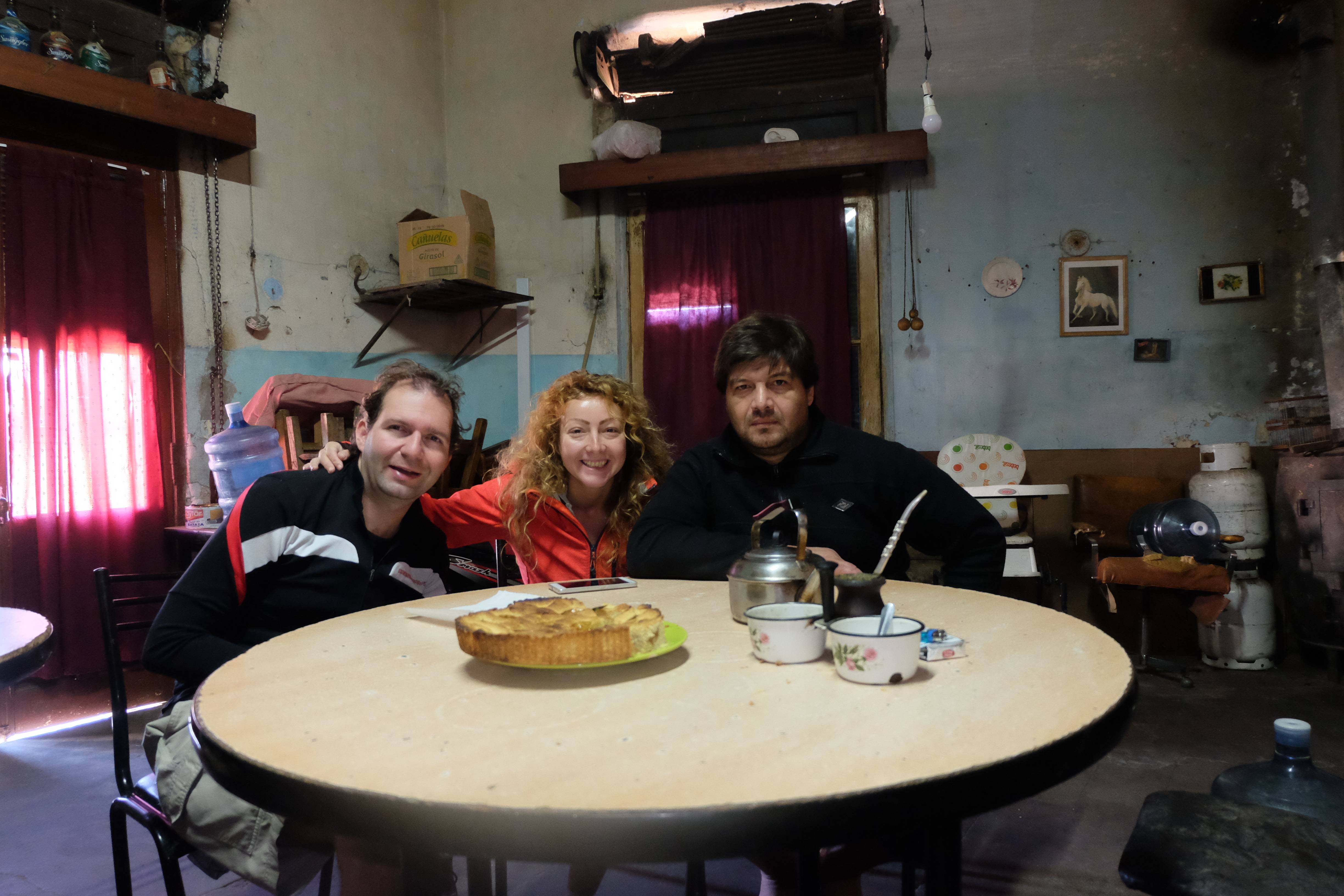 Wir feierten meinen Geburtstag die ganze Nacht durch, assen Fleisch und noch mehr Fleisch in allen möglichen Formen: von den täglichen Picadas (Apero) mit Salami und Würsten über Milanesas a la Suiza (Schnitzel mit Käse obendrauf – und ja, wir haben ihnen gesagt, dass das nicht so wirklich Schweizerisch sei! :-)) bis hin zu den traditionellen, weltberühmten und leckeren Asados (Grillfleisch) … und genossen ziemlich viel guten argentinischen Wein. Da wäre noch was… ach ja, wir trafen Leute! Viele Leute! Dermassen viele, dass wir jeden Tag unterwegs waren und den einen oder anderen besuchten. Wir trafen Leute, die in der Stadt wohnen, wir trafen Leute, die auf dem Land wohnen und die Einsamkeit genossen, ja wir trafen Leute, die in einer anderen Welt wohnten, eine Welt, die es in unserer Zeit nicht mehr gibt… ein 200 Seelendorf in welchem die Pensionierten dem einheimischen Busfahrer die Bankkarte und den Code dazu geben, damit dieser während seiner einmaligen täglichen Fahrt in die Stadt ihre Rente beziehen kann, eine Welt in der das Vertrauen, die Gegenliebe und das Gemeinschaftsgefühl irgendwo in der Zeit erstarrt blieben, so dass sie von der Moderne, von der Angst und dem Misstrauen der heutigen Gesellschaft nichts mitbekamen. Und… wir wollten Luis Melon besuchen, einen Gaucho der – anscheinend – in der Zwischenzeit umgezogen war, den wir jedoch in den meistgesuchten Gaucho Argentiniens verwandelten, indem wir ihn mithilfe von Nachbarn, offiziellen Ämtern und Tierärzten aufsuchten und schlussendlich auch wieder aufspürten! 🙂 An Detektivarbeit mangelte es also ebenfalls nicht, ihr könnt euch aber vorstellen, wie lustig und einmalig es jeweils war, wenn 2 Europäer in kleinen Dörfern aufkreuzten um nach einem dortigen Bauer zu fragen… Fast so, als würden 2 Ausserirdische in Ziefen landen und nach Hansjörg vom Bauernhof auf dem Hügel fragen. 🙂 Luis Melon sorgte also im Dorf nicht nur für Gesprächsstoff, sondern wird sicherlich auch Einiges erklären müssen wenn er die von uns befragten Personen wieder trifft. 🙂 Abgesehen davon ist sein Name auch nicht gerade der imposanteste von allen… man fragt nach einem Gaucho, einem coolen Cowboy-ähnlichen Typen mit hunderten von Kühen und x Pferden, dessen Nachname jedoch Melone bedeutet! 🙂 Das erklärt wieso all die von uns befragten Personen uns mit einem weiten Grinsen antworteten! 🙂