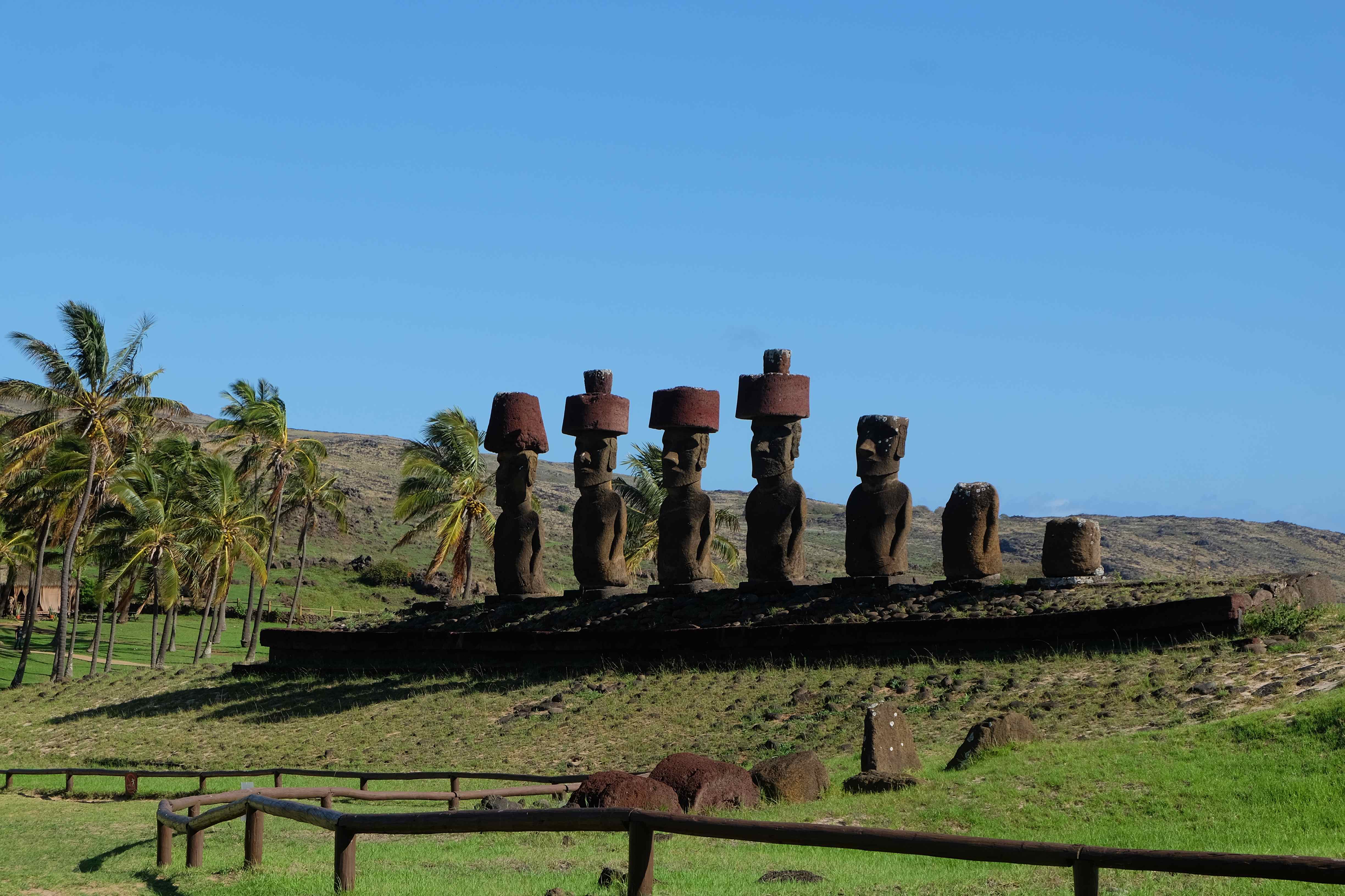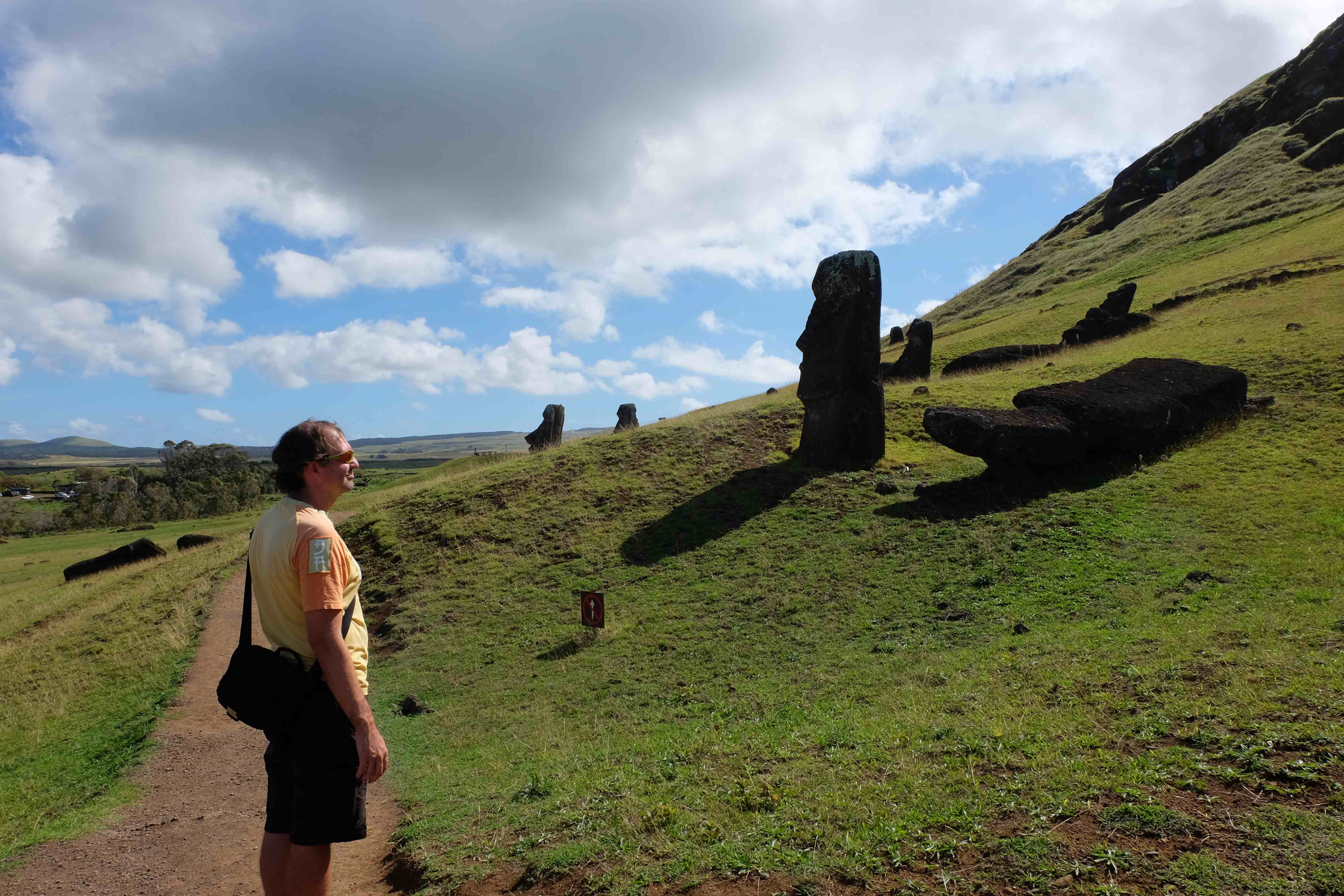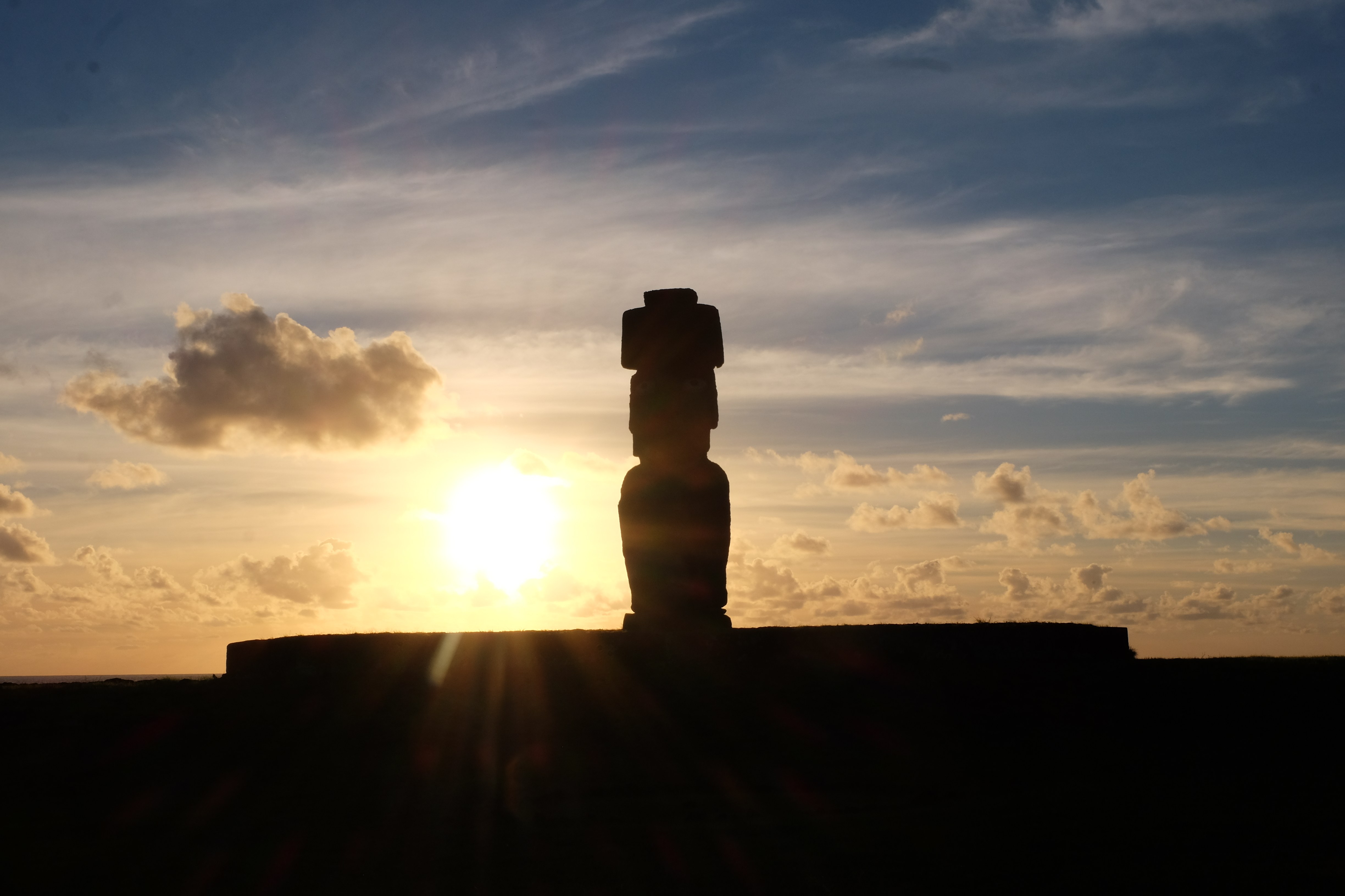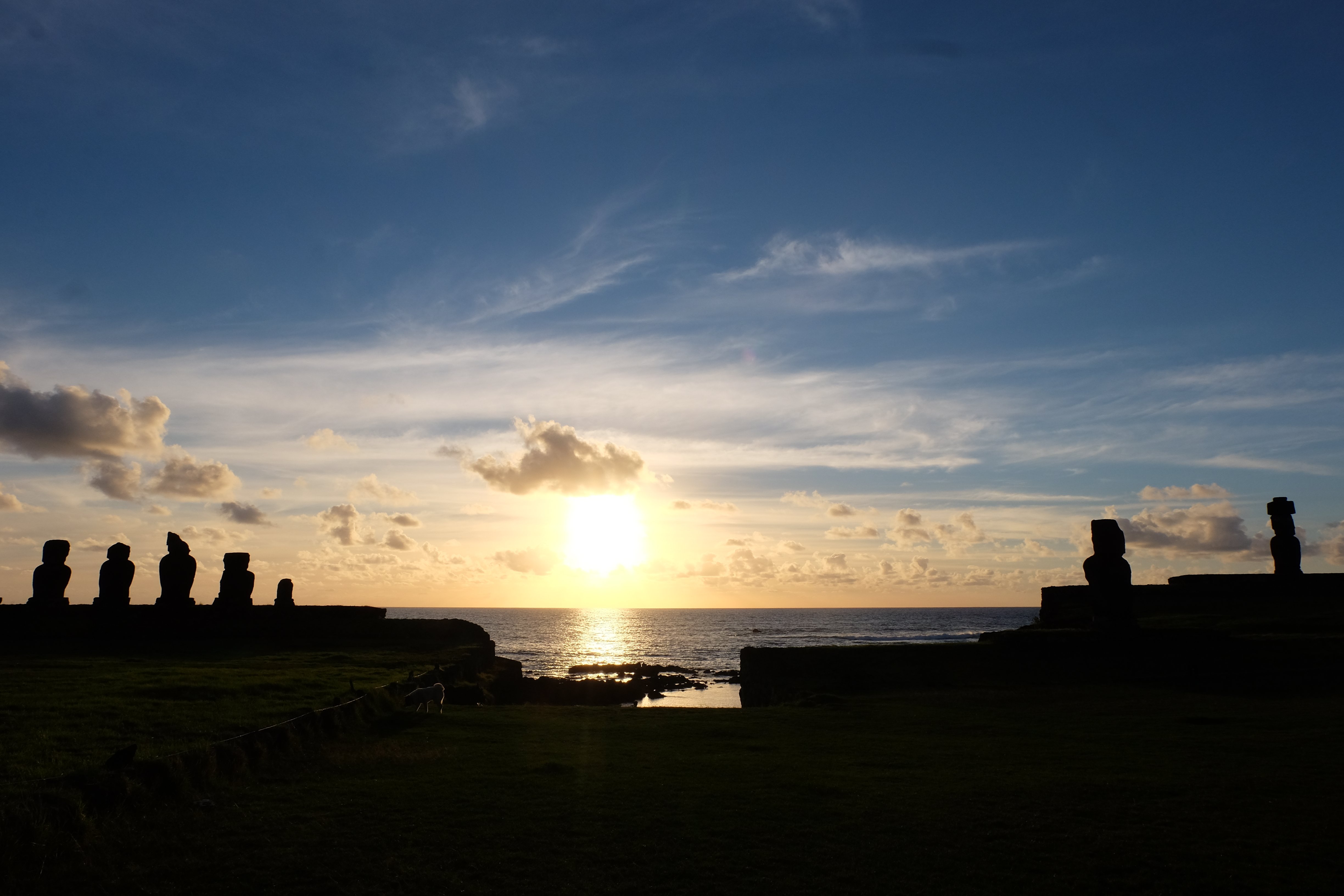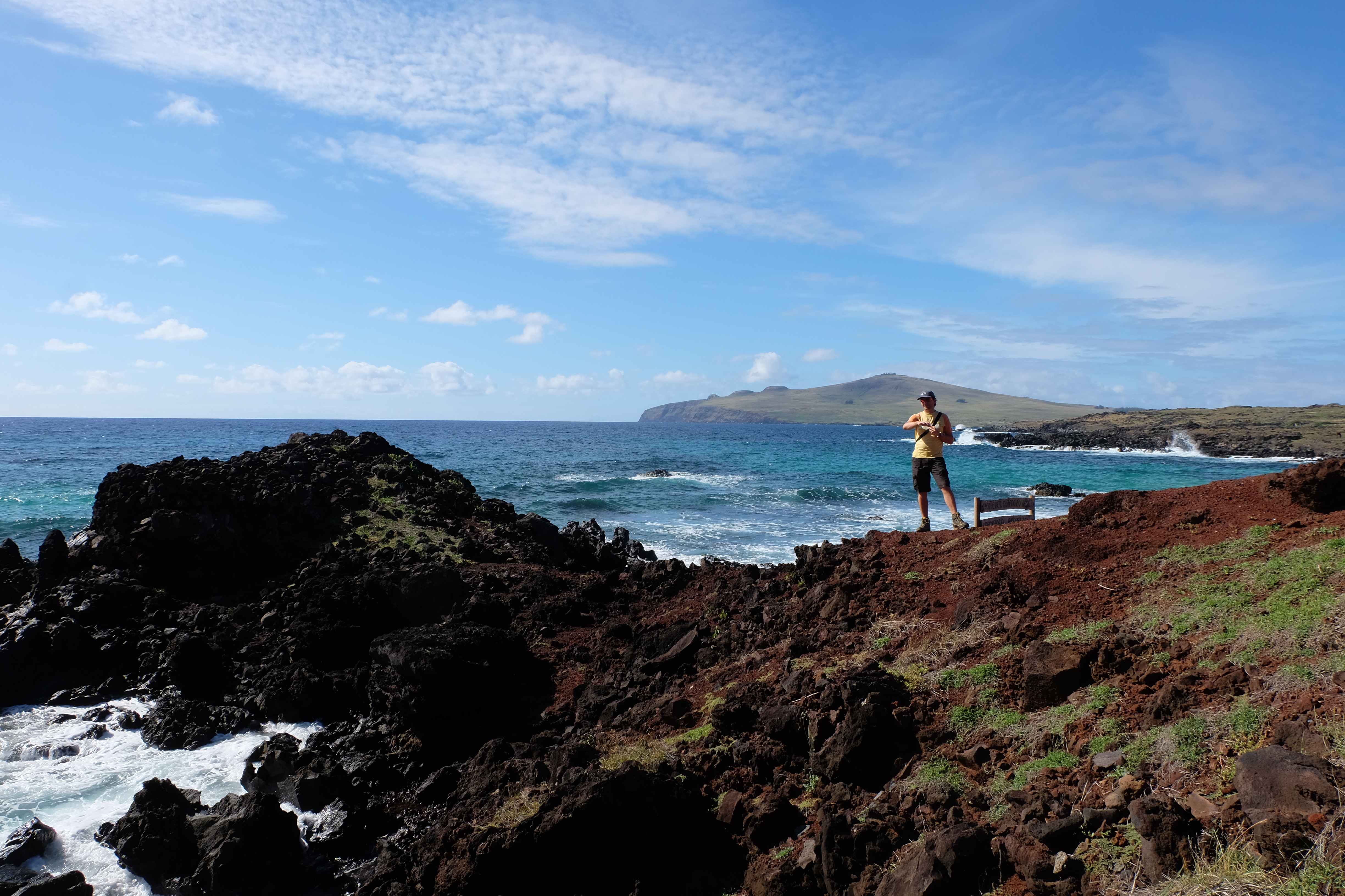 Auf der Osterinsel gibt es vieles zu erkunden sobald man die Hauptsiedlung verlässt. Spuren einer alten Kultur warten auf einen um ihm die Geschichte der ersten Segler zu erzählen, welche auf einem Boot hierhin gekommen waren und die Rapa Nui Kultur auf diesen Landfleck mitten im Ozean mit sich brachten. Riesige, imposante Steinstrukturen zu Männern, legendären Vorfahren und für die Einheimischen nicht nur interessanten, sondern auch bedeutungstragenden Gesichtern geformt weisen von einer mystischen und mythischen Zeit zugleich, welche hierzulande, weit weg vom Rest der Welt – während die Inkas, Mayas und Azteken dem südamerikanischen Kontinenten zu einer Blütezeit verhalfen – die Wiege einer eigenen Kultur schuf: die Rapa Nui. Es war ein unglaublich schönes, gewaltiges jedoch unerklärbar mystisches Gefühl diesen riesigen Steinen in menschlicher Gestalt gegenüberzustehen, ihre Präsenz lediglich als unaufgeklärte Nichtkenner wahrzunehmen und dabei trotzdem den Hauch einer gewissen zeitüberdauernden Hinterlassenschaft zu spüren. Riesige Zeremonie-Anlagen, ganze Hügel voller alten steinigen Gestalten, aus dem Nichts herausragende und geheimnisvolle „Männlein mit Hut“… und das überall, an allen Seiten einschränkende Wasser, welches einen ständig erinnerte, dass man sich lediglich auf einem Fleck Land befindet… die Kombination all dieser Gegebenheiten verwandelten die Osterinsel in einen speziellen Ort, an welchem man sich fremd und wohl zugleich fühlte.