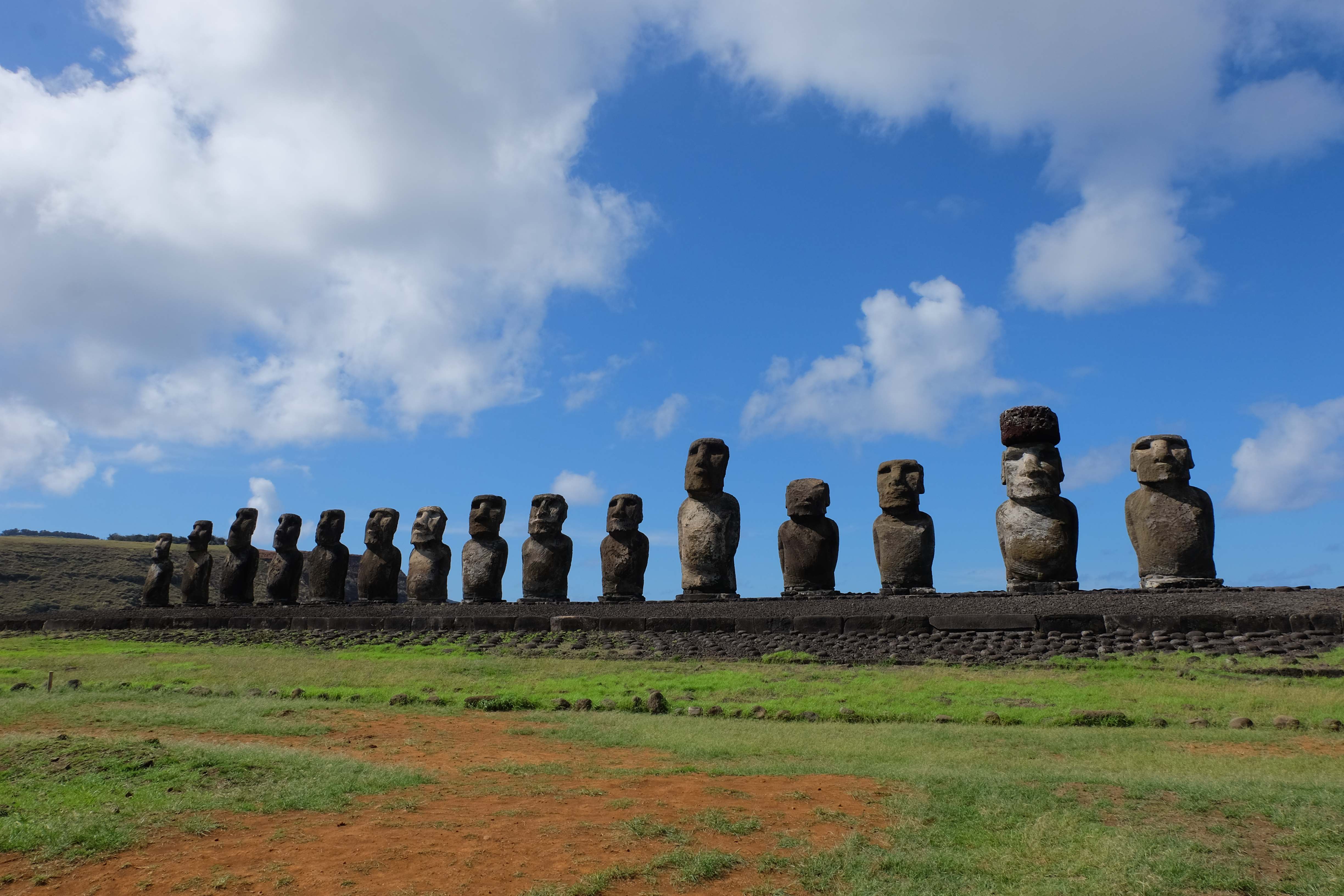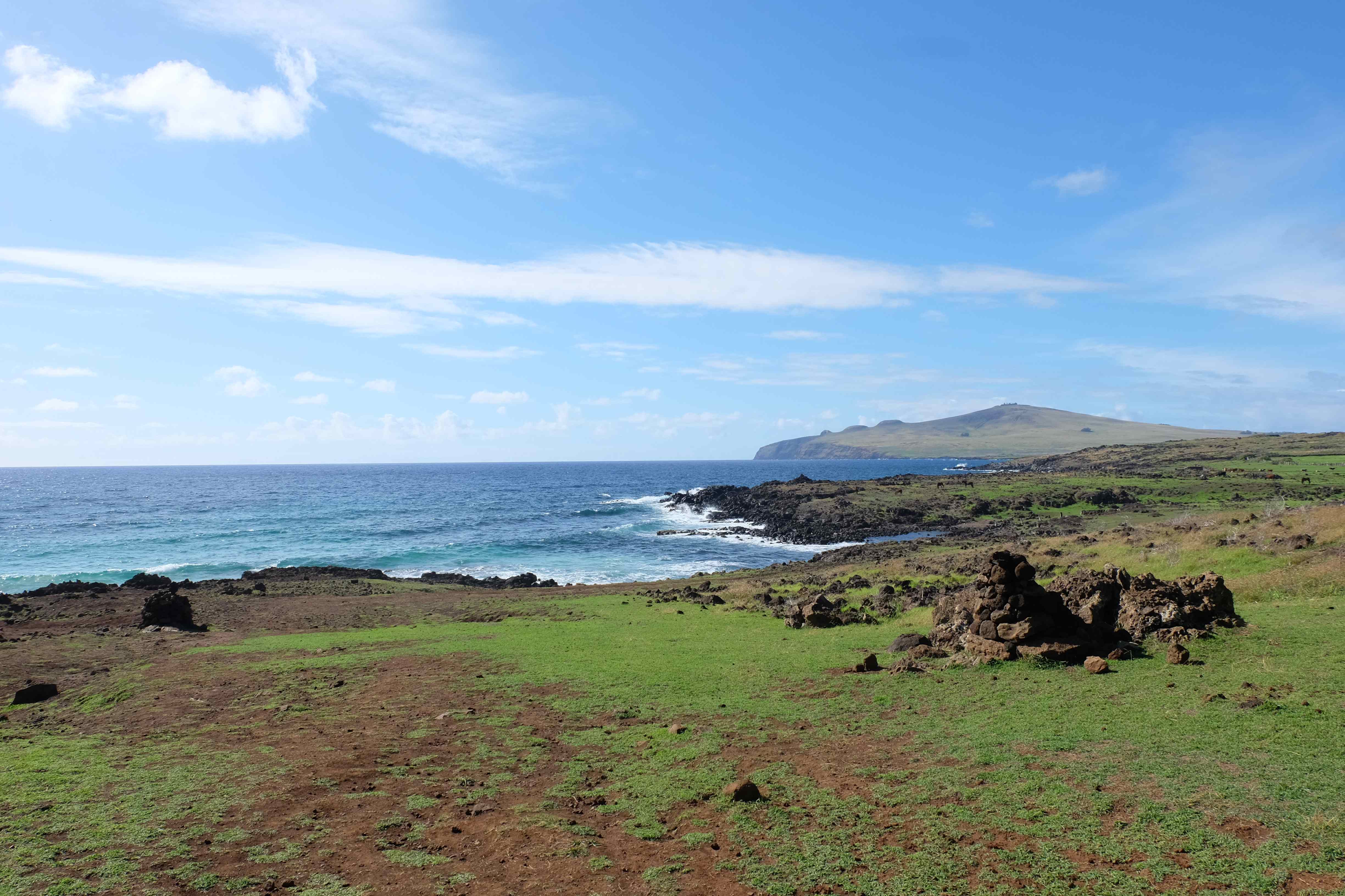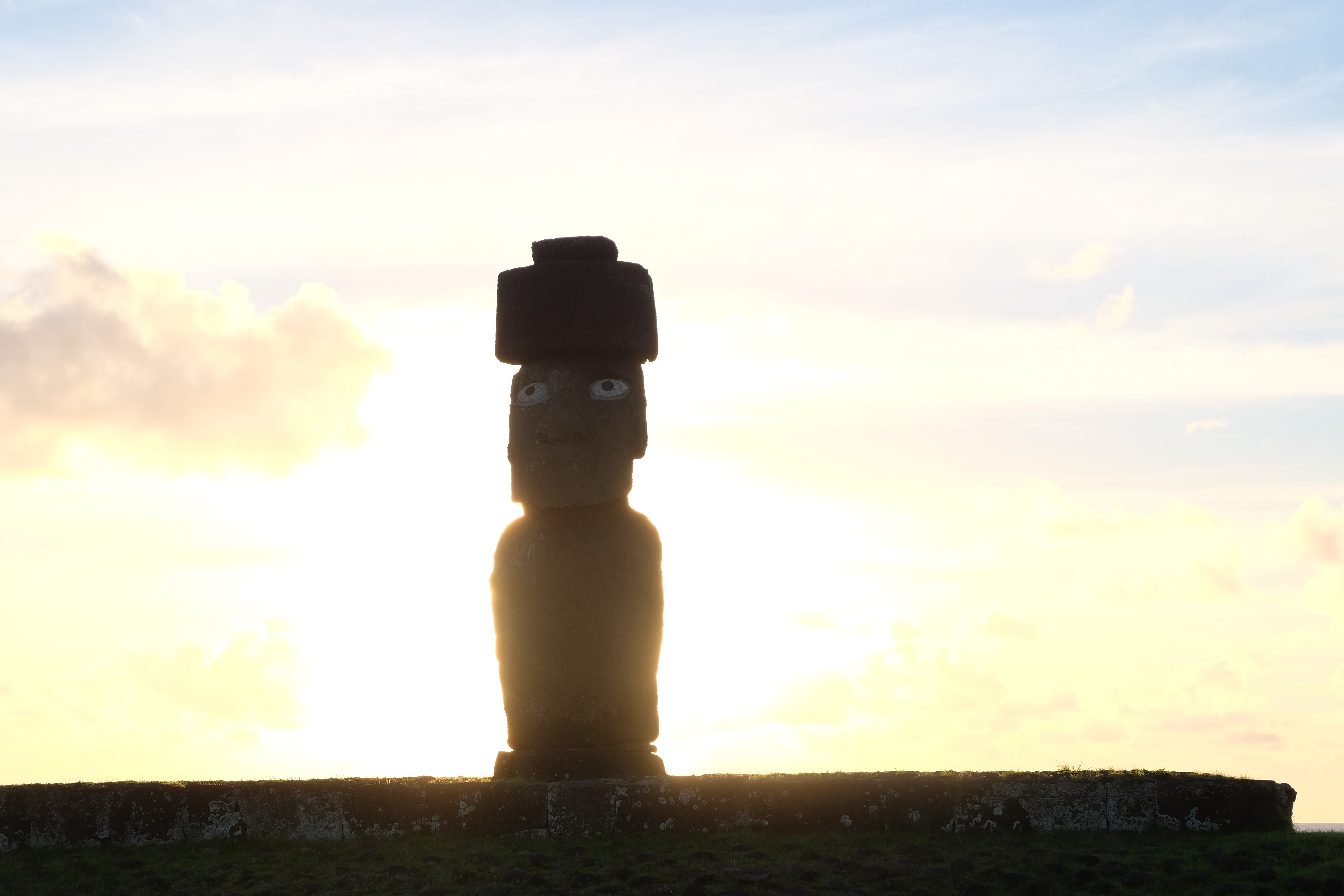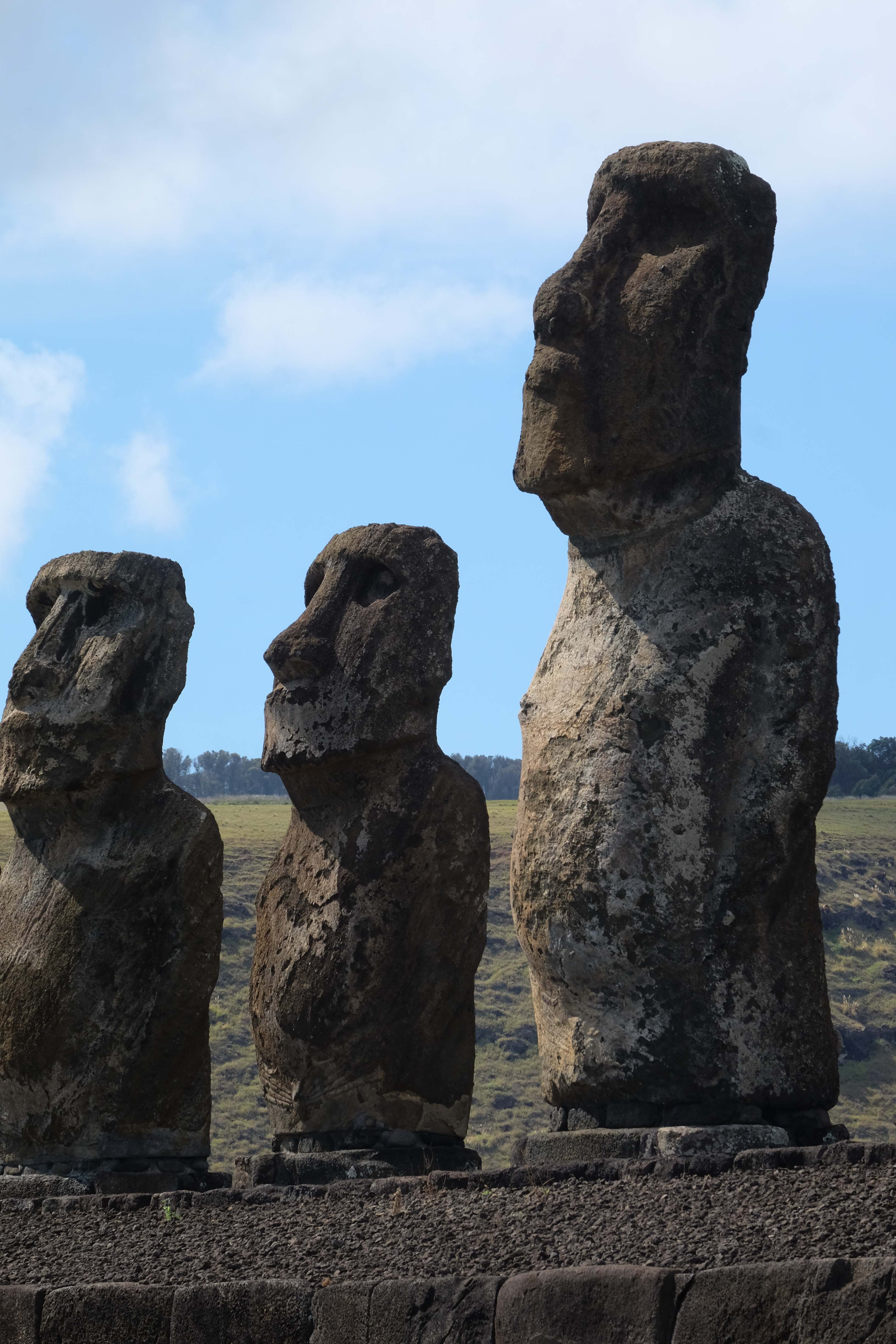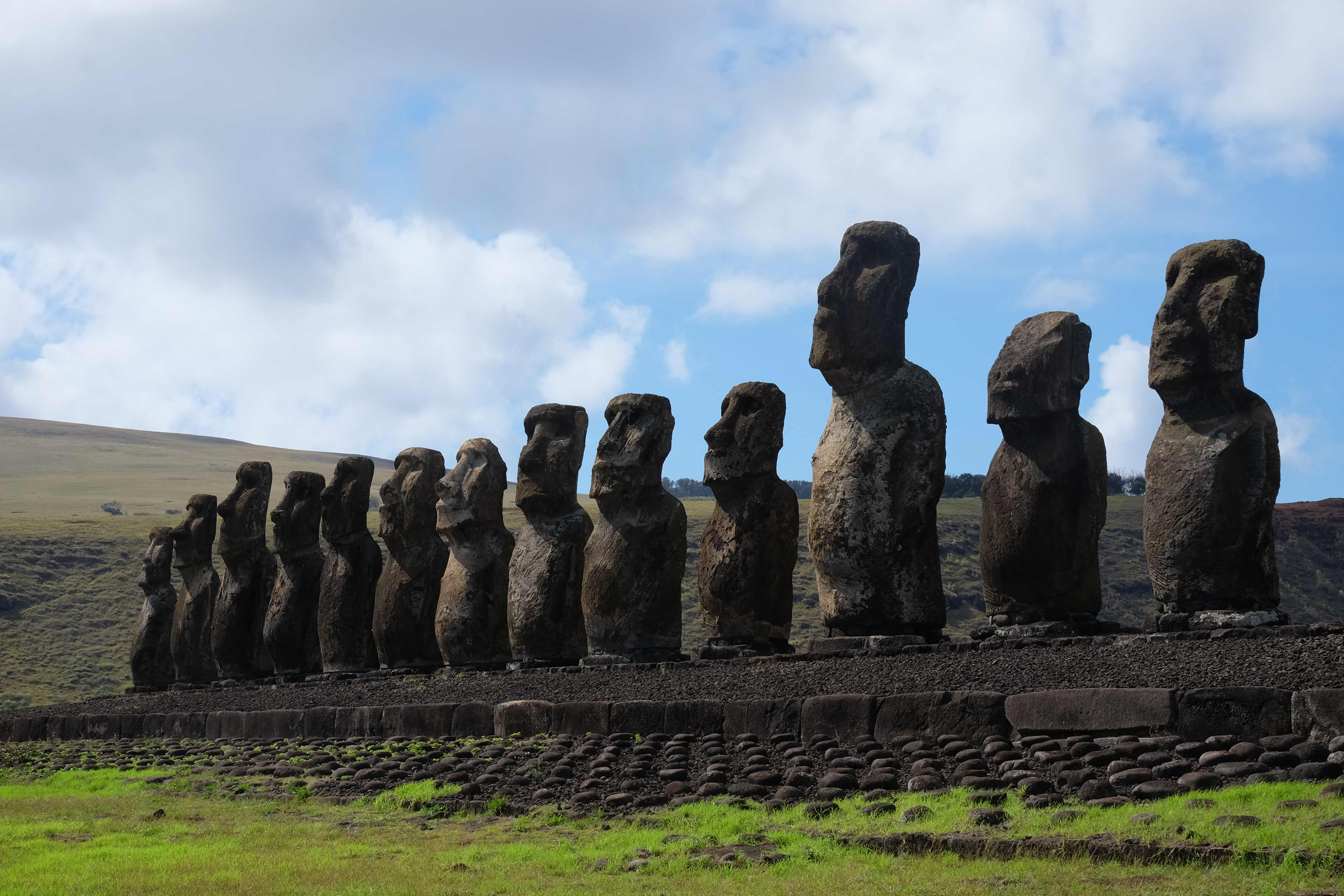 Auf der Osterinsel gibt es vieles zu erkunden sobald man die Hauptsiedlung verlässt. Spuren einer alten Kultur warten auf einen um ihm die Geschichte der ersten Segler zu erzählen, welche auf einem Boot hierhin gekommen waren und die Rapa Nui Kultur auf diesen Landfleck mitten im Ozean mit sich brachten. Riesige, imposante Steinstrukturen zu Männern, legendären Vorfahren und für die Einheimischen nicht nur interessanten, sondern auch bedeutungstragenden Gesichtern geformt weisen von einer mystischen und mythischen Zeit zugleich, welche hierzulande, weit weg vom Rest der Welt – während die Inkas, Mayas und Azteken dem südamerikanischen Kontinenten zu einer Blütezeit verhalfen – die Wiege einer eigenen Kultur schuf: die Rapa Nui. Es war ein unglaublich schönes, gewaltiges jedoch unerklärbar mystisches Gefühl diesen riesigen Steinen in menschlicher Gestalt gegenüberzustehen, ihre Präsenz lediglich als unaufgeklärte Nichtkenner wahrzunehmen und dabei trotzdem den Hauch einer gewissen zeitüberdauernden Hinterlassenschaft zu spüren. Riesige Zeremonie-Anlagen, ganze Hügel voller alten steinigen Gestalten, aus dem Nichts herausragende und geheimnisvolle „Männlein mit Hut“… und das überall, an allen Seiten einschränkende Wasser, welches einen ständig erinnerte, dass man sich lediglich auf einem Fleck Land befindet… die Kombination all dieser Gegebenheiten verwandelten die Osterinsel in einen speziellen Ort, an welchem man sich fremd und wohl zugleich fühlte.