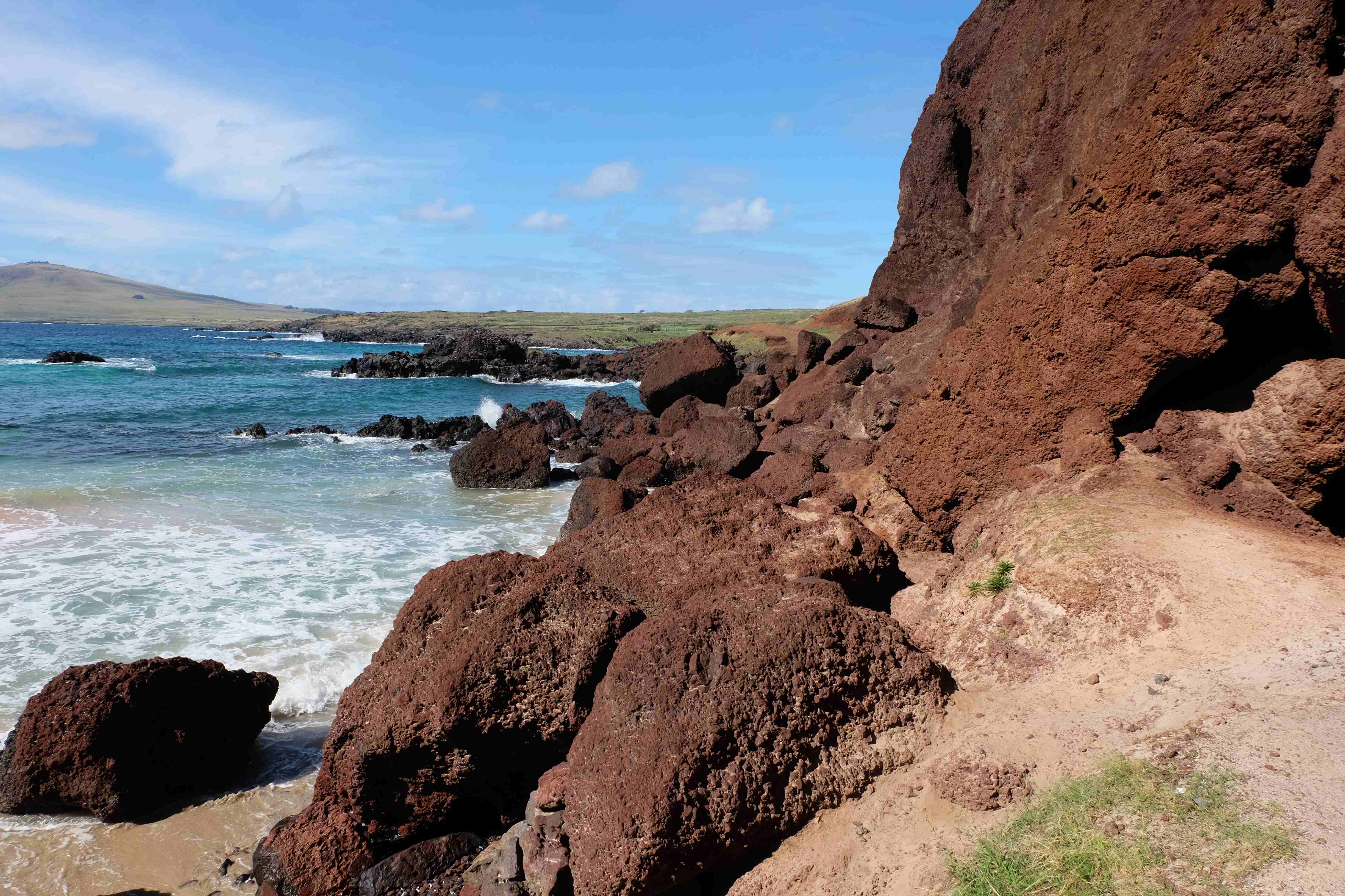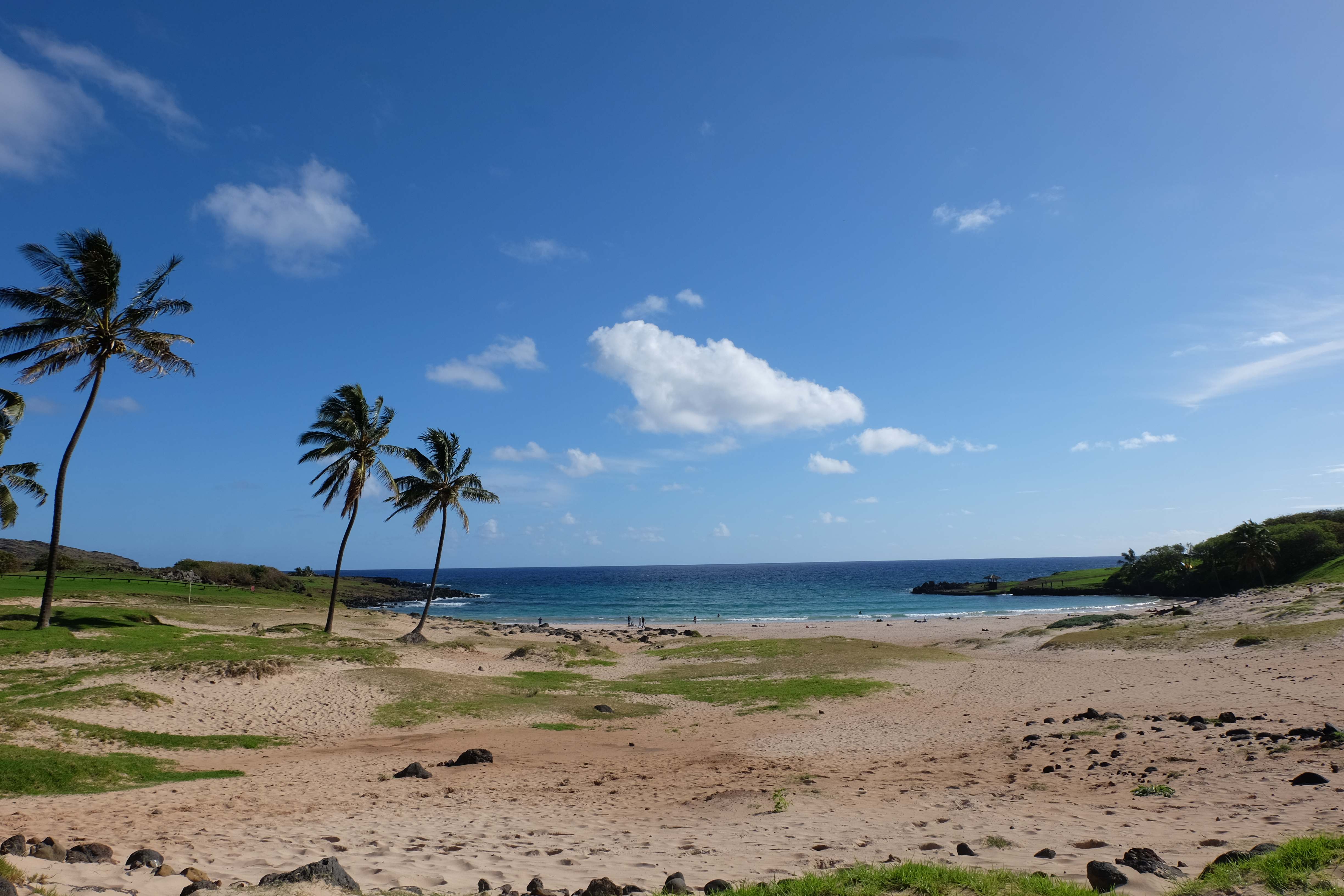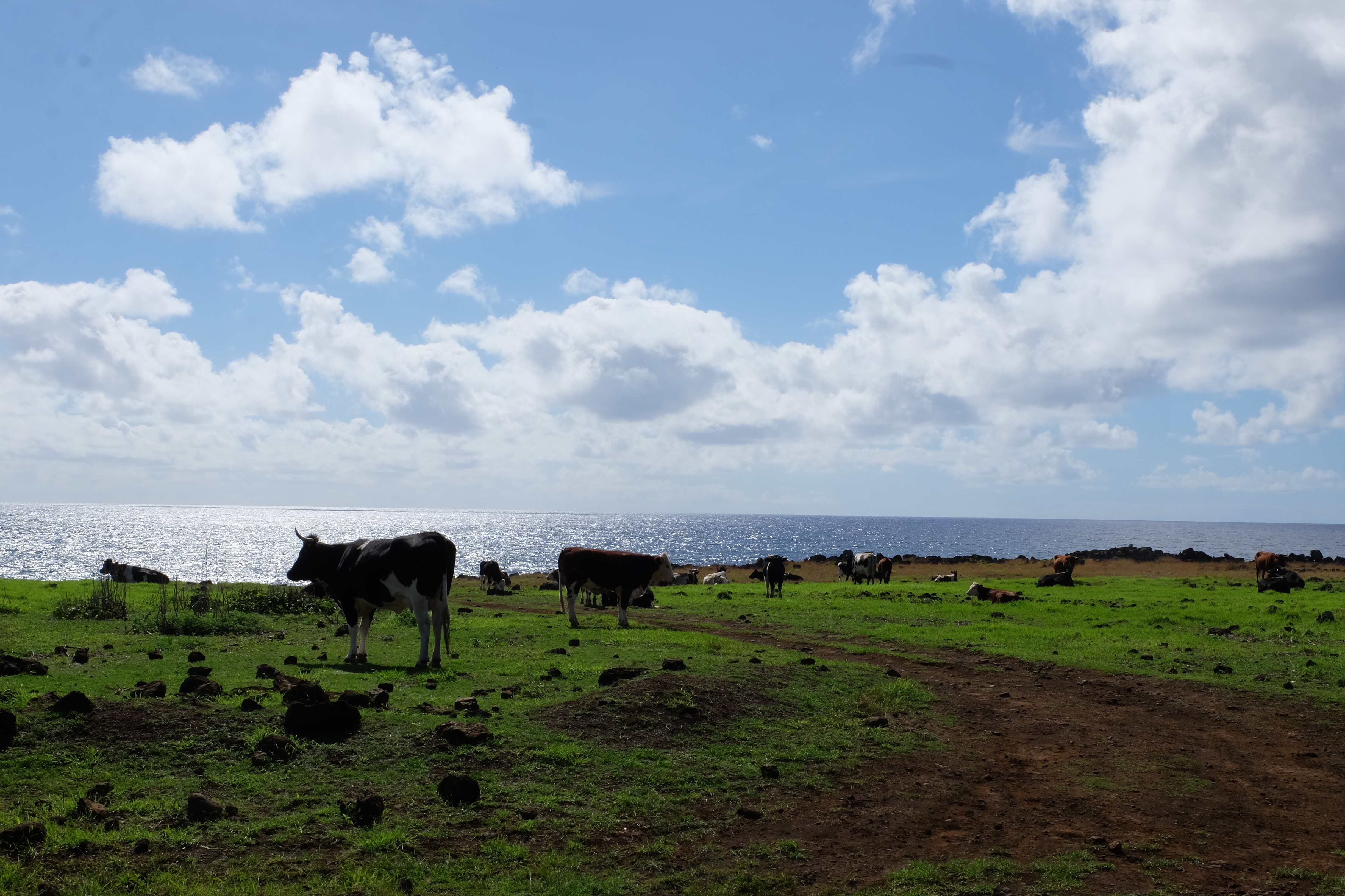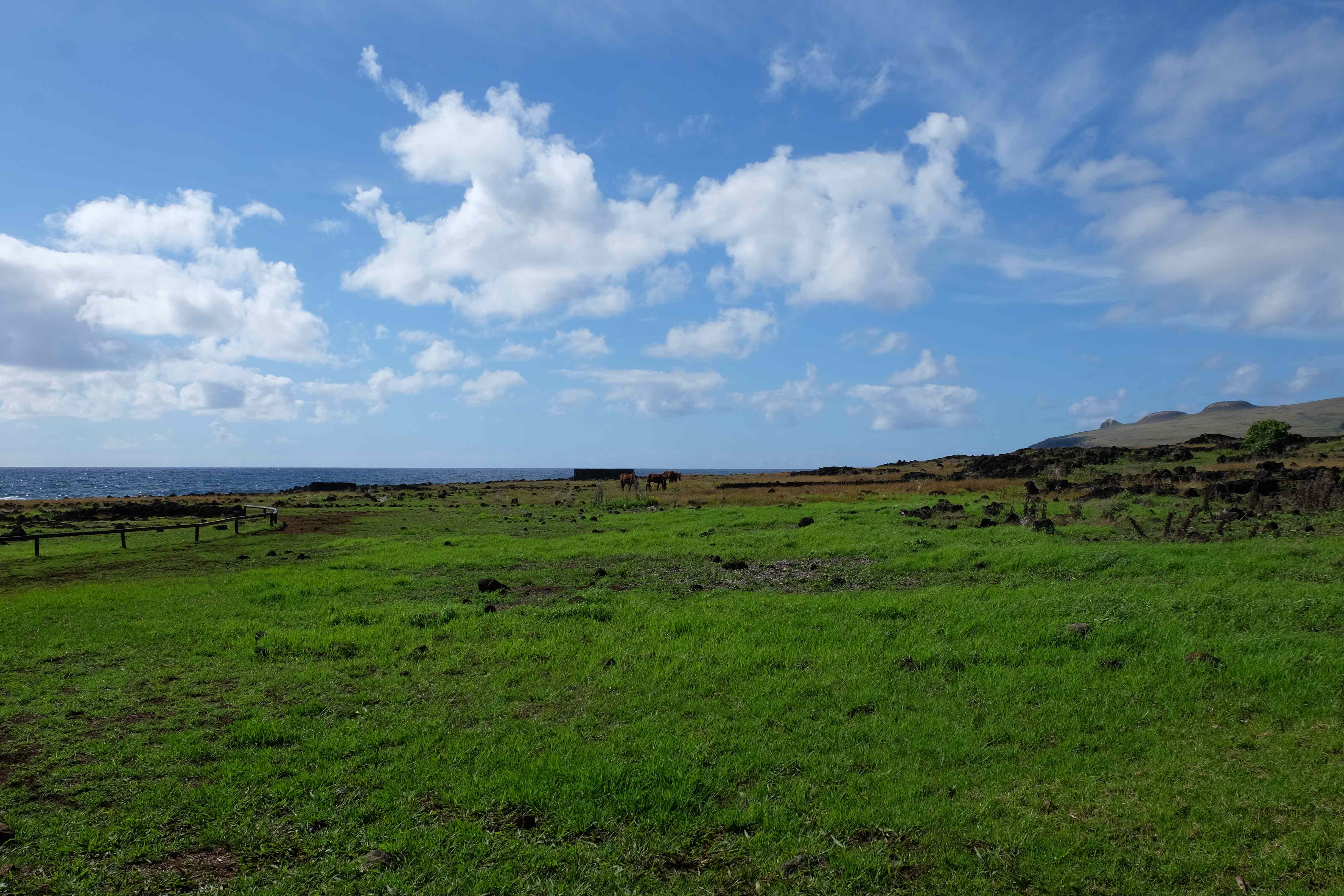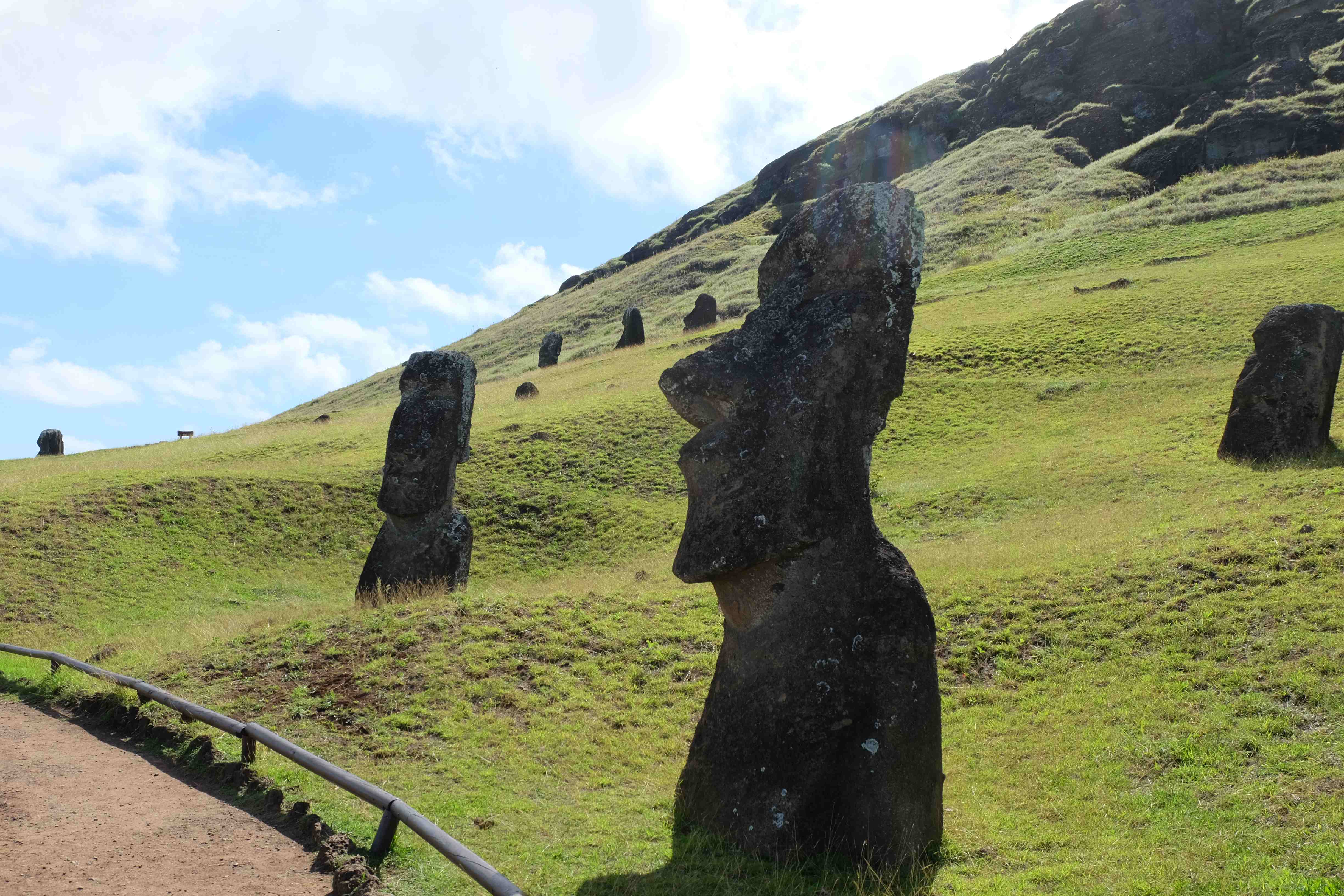 Auf der Osterinsel gibt es vieles zu erkunden sobald man die Hauptsiedlung verlässt. Spuren einer alten Kultur warten auf einen um ihm die Geschichte der ersten Segler zu erzählen, welche auf einem Boot hierhin gekommen waren und die Rapa Nui Kultur auf diesen Landfleck mitten im Ozean mit sich brachten. Riesige, imposante Steinstrukturen zu Männern, legendären Vorfahren und für die Einheimischen nicht nur interessanten, sondern auch bedeutungstragenden Gesichtern geformt weisen von einer mystischen und mythischen Zeit zugleich, welche hierzulande, weit weg vom Rest der Welt – während die Inkas, Mayas und Azteken dem südamerikanischen Kontinenten zu einer Blütezeit verhalfen – die Wiege einer eigenen Kultur schuf: die Rapa Nui. Es war ein unglaublich schönes, gewaltiges jedoch unerklärbar mystisches Gefühl diesen riesigen Steinen in menschlicher Gestalt gegenüberzustehen, ihre Präsenz lediglich als unaufgeklärte Nichtkenner wahrzunehmen und dabei trotzdem den Hauch einer gewissen zeitüberdauernden Hinterlassenschaft zu spüren. Riesige Zeremonie-Anlagen, ganze Hügel voller alten steinigen Gestalten, aus dem Nichts herausragende und geheimnisvolle „Männlein mit Hut“… und das überall, an allen Seiten einschränkende Wasser, welches einen ständig erinnerte, dass man sich lediglich auf einem Fleck Land befindet… die Kombination all dieser Gegebenheiten verwandelten die Osterinsel in einen speziellen Ort, an welchem man sich fremd und wohl zugleich fühlte.