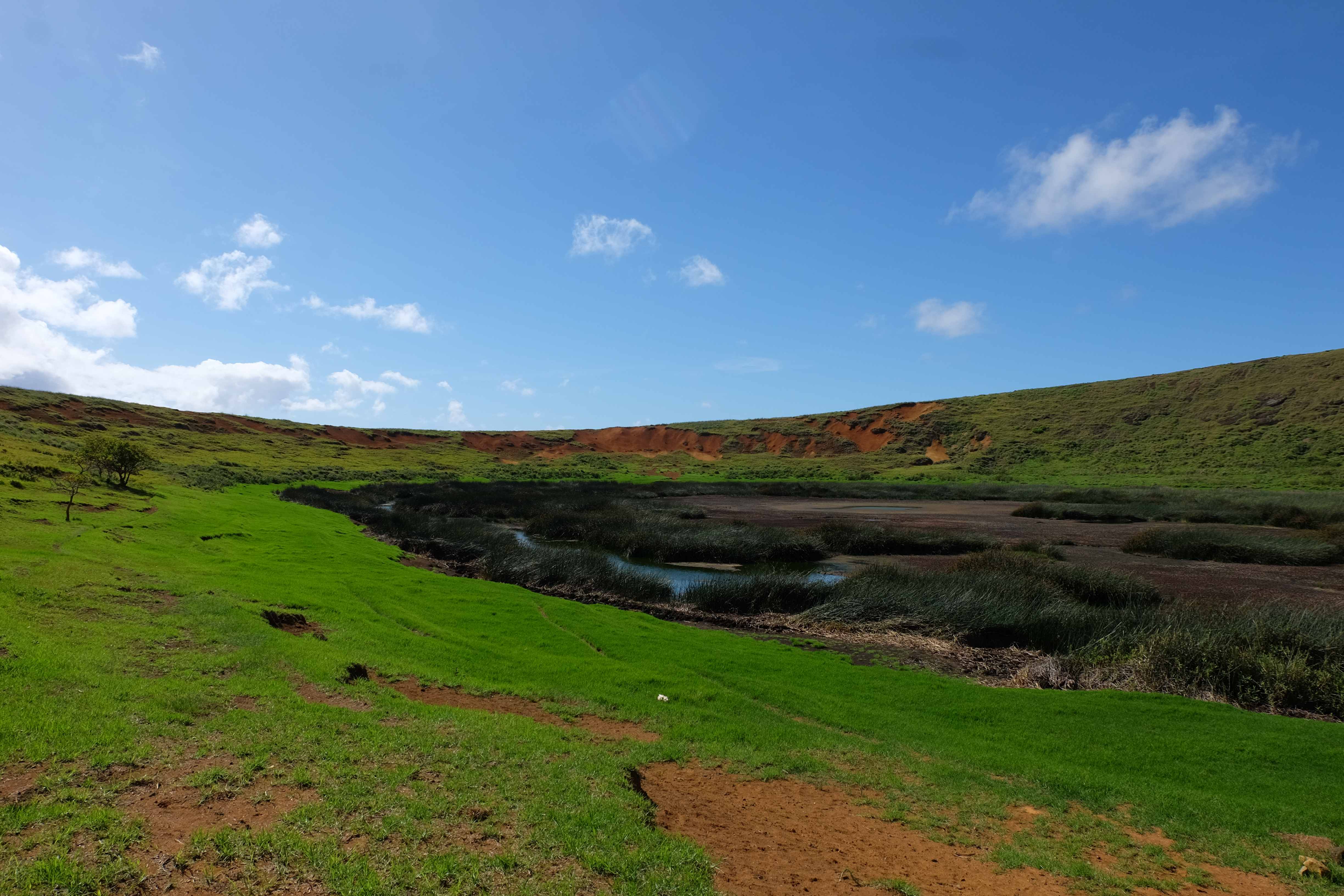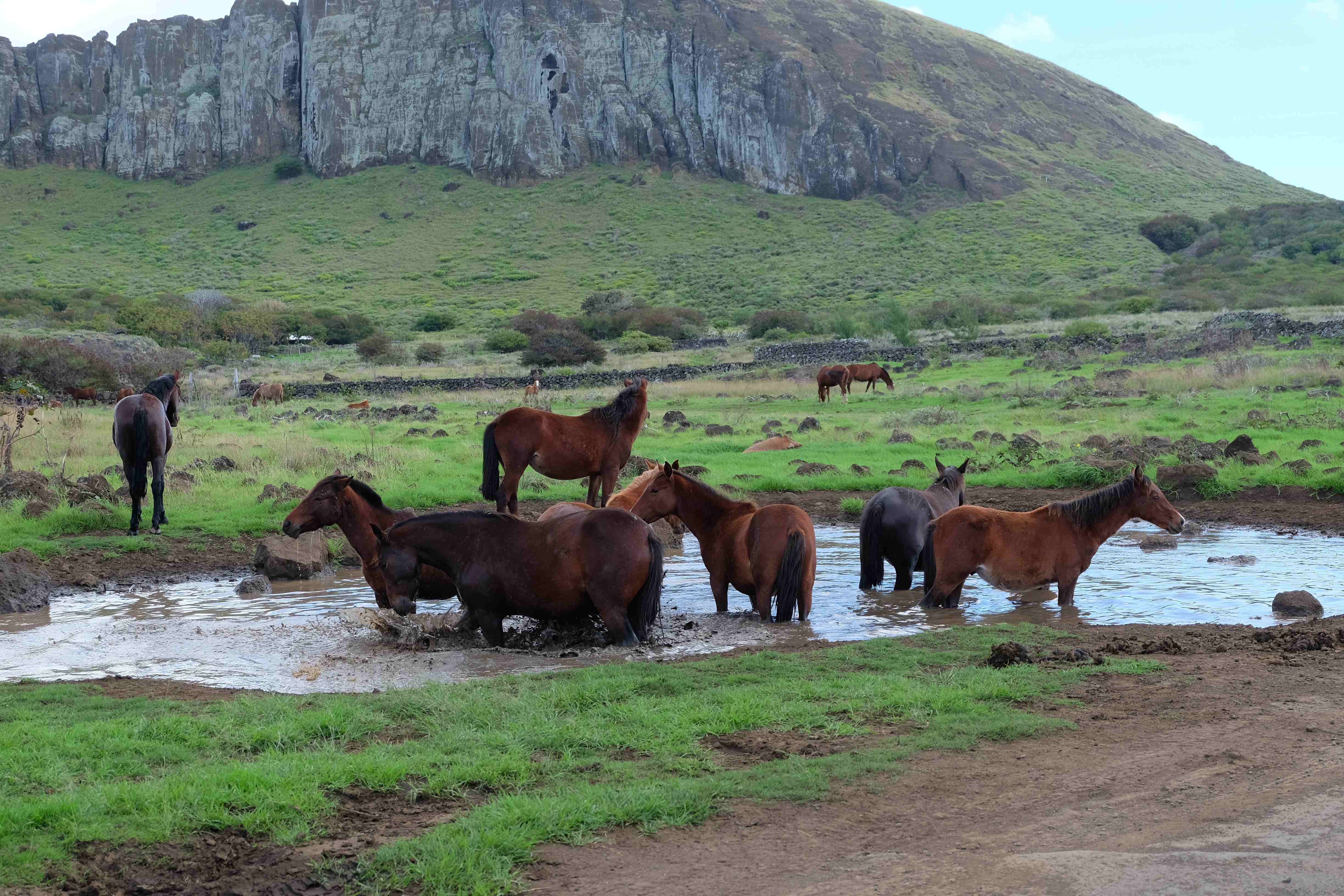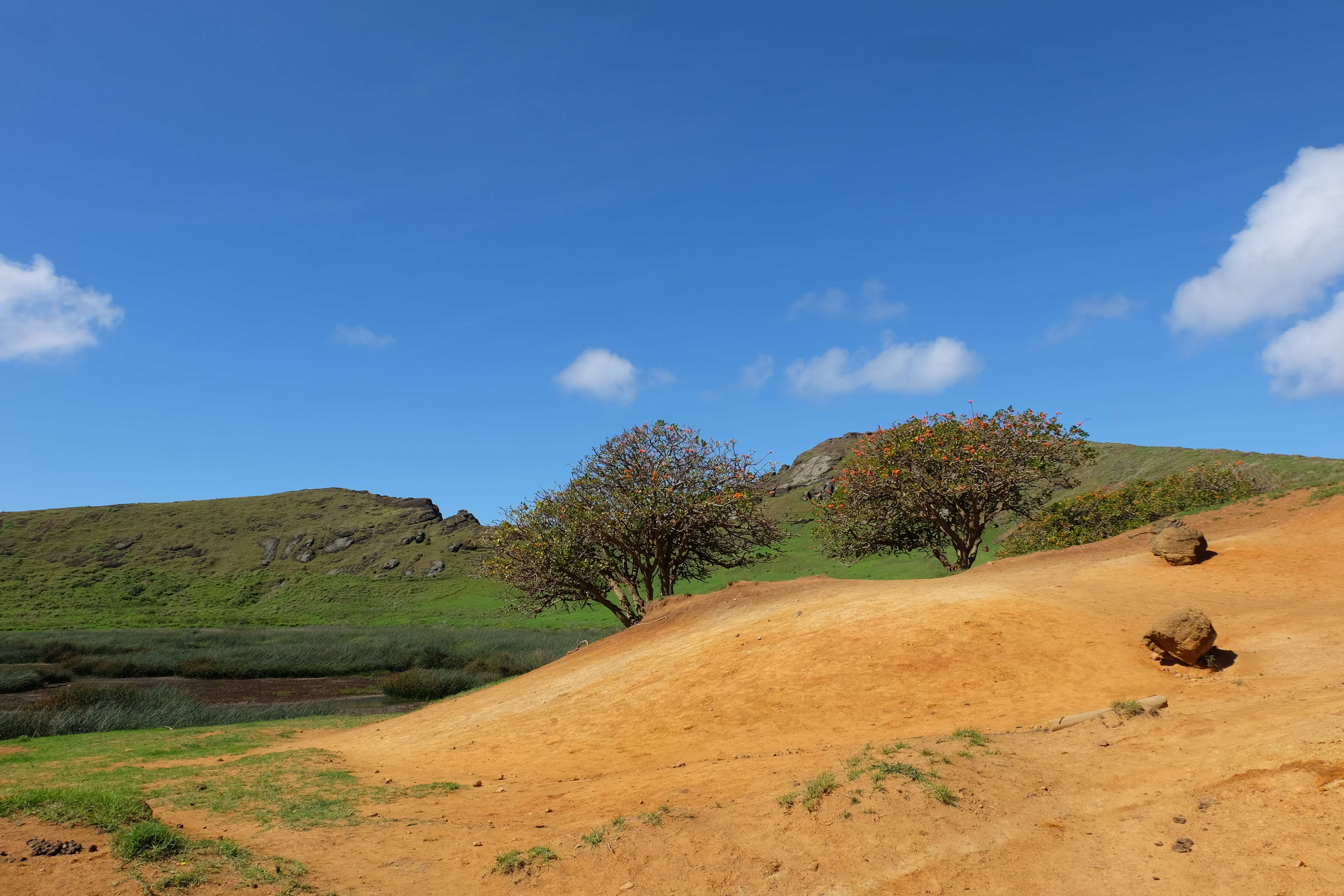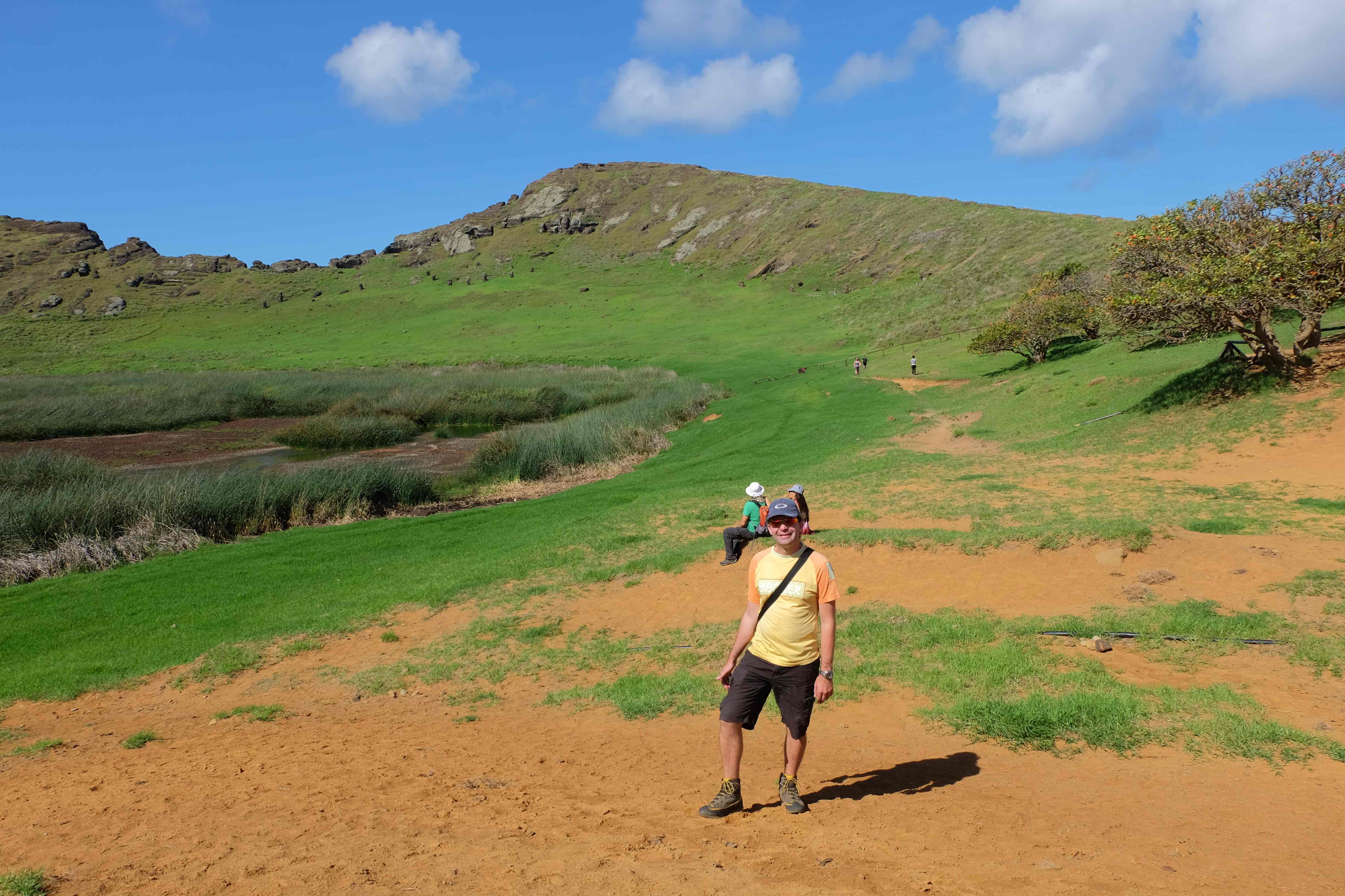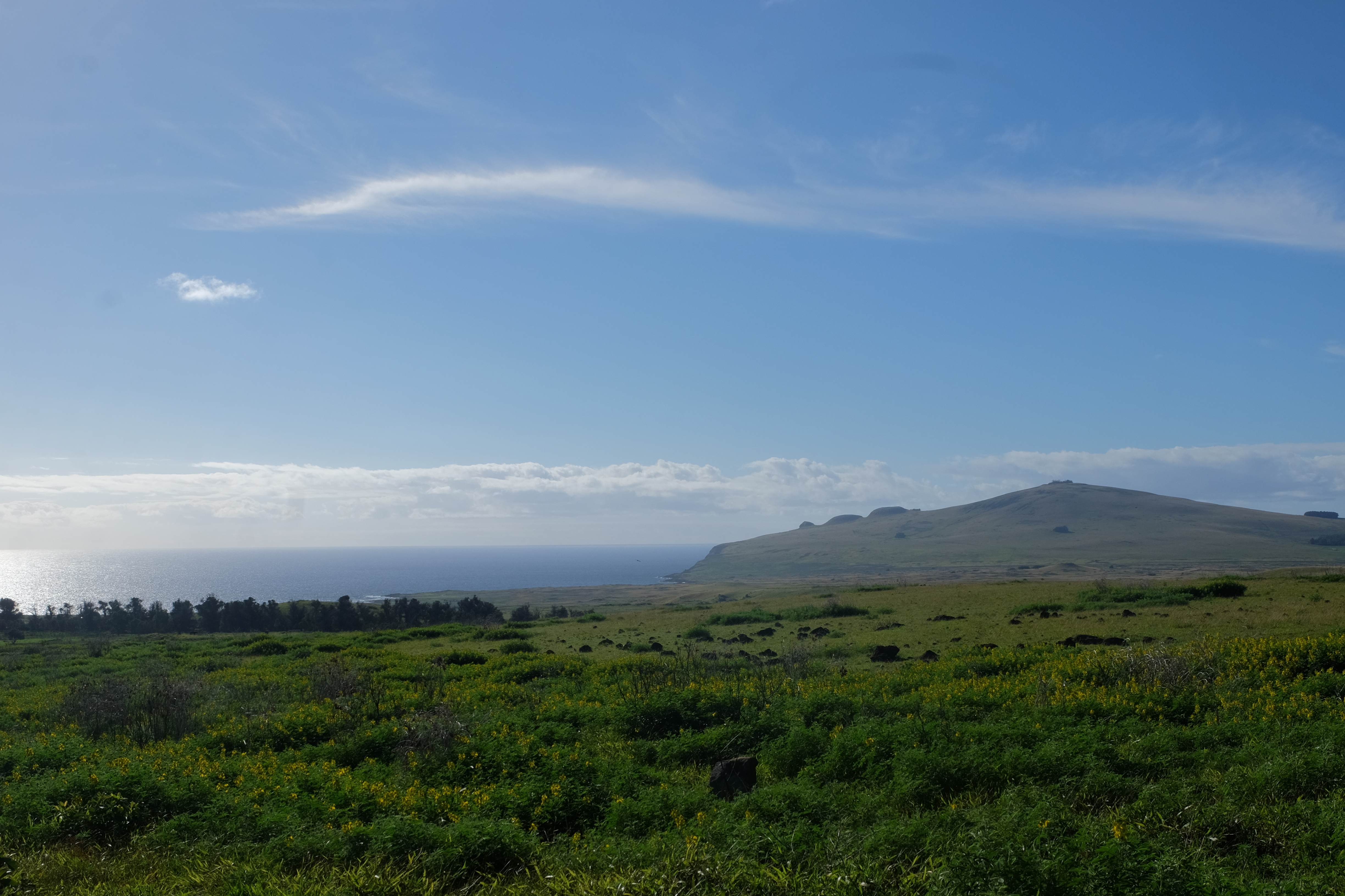 Auf der Osterinsel gibt es vieles zu erkunden sobald man die Hauptsiedlung verlässt. Spuren einer alten Kultur warten auf einen um ihm die Geschichte der ersten Segler zu erzählen, welche auf einem Boot hierhin gekommen waren und die Rapa Nui Kultur auf diesen Landfleck mitten im Ozean mit sich brachten. Riesige, imposante Steinstrukturen zu Männern, legendären Vorfahren und für die Einheimischen nicht nur interessanten, sondern auch bedeutungstragenden Gesichtern geformt weisen von einer mystischen und mythischen Zeit zugleich, welche hierzulande, weit weg vom Rest der Welt – während die Inkas, Mayas und Azteken dem südamerikanischen Kontinenten zu einer Blütezeit verhalfen – die Wiege einer eigenen Kultur schuf: die Rapa Nui. Es war ein unglaublich schönes, gewaltiges jedoch unerklärbar mystisches Gefühl diesen riesigen Steinen in menschlicher Gestalt gegenüberzustehen, ihre Präsenz lediglich als unaufgeklärte Nichtkenner wahrzunehmen und dabei trotzdem den Hauch einer gewissen zeitüberdauernden Hinterlassenschaft zu spüren. Riesige Zeremonie-Anlagen, ganze Hügel voller alten steinigen Gestalten, aus dem Nichts herausragende und geheimnisvolle „Männlein mit Hut“… und das überall, an allen Seiten einschränkende Wasser, welches einen ständig erinnerte, dass man sich lediglich auf einem Fleck Land befindet… die Kombination all dieser Gegebenheiten verwandelten die Osterinsel in einen speziellen Ort, an welchem man sich fremd und wohl zugleich fühlte.