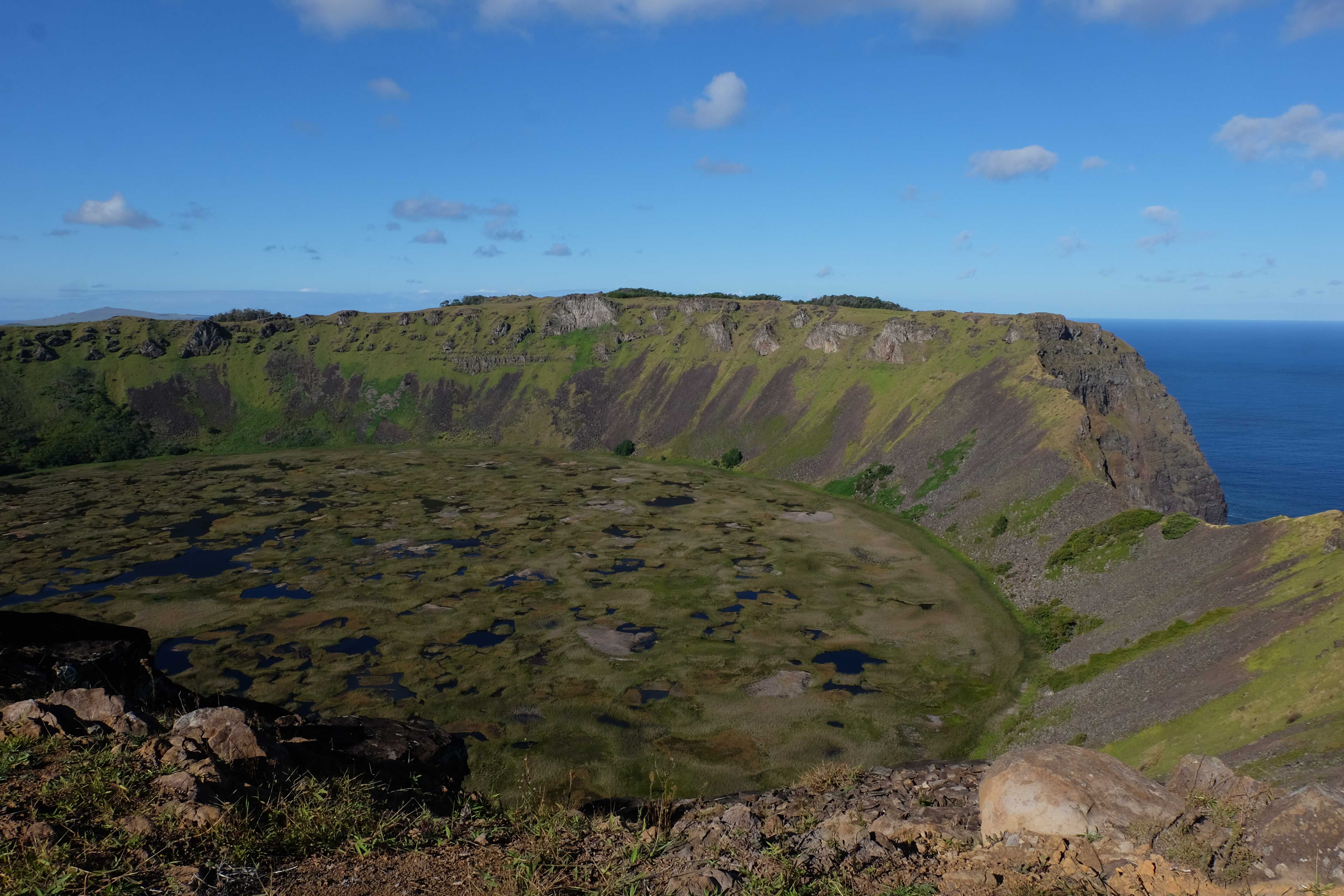 Insula Pastelui… de ce se numeste asa? Oare pentru ca acolo se sarbatoreste Pastele pe parcusul intregului an? Locuieste cumva iepurasul aici? Sau poate se hranesc toti iepurii de aici cu atata iarba, pana cand cred ca sunt iepurasul? Totul este gratis de Paste? Sau poate ca cepele enorme care se gasesc aici pe insula (vezi poze) sunt semanate sau recoltate de Paste? 🙂 Nu, nici vorba, se pare ca numele se datoreaza doar faptului ca a fost descoperita de Paste. Denumirea bastinasa autohtona este insa Rapa Nui si nu are nimic de-a face cu sarbatoarea cristina.