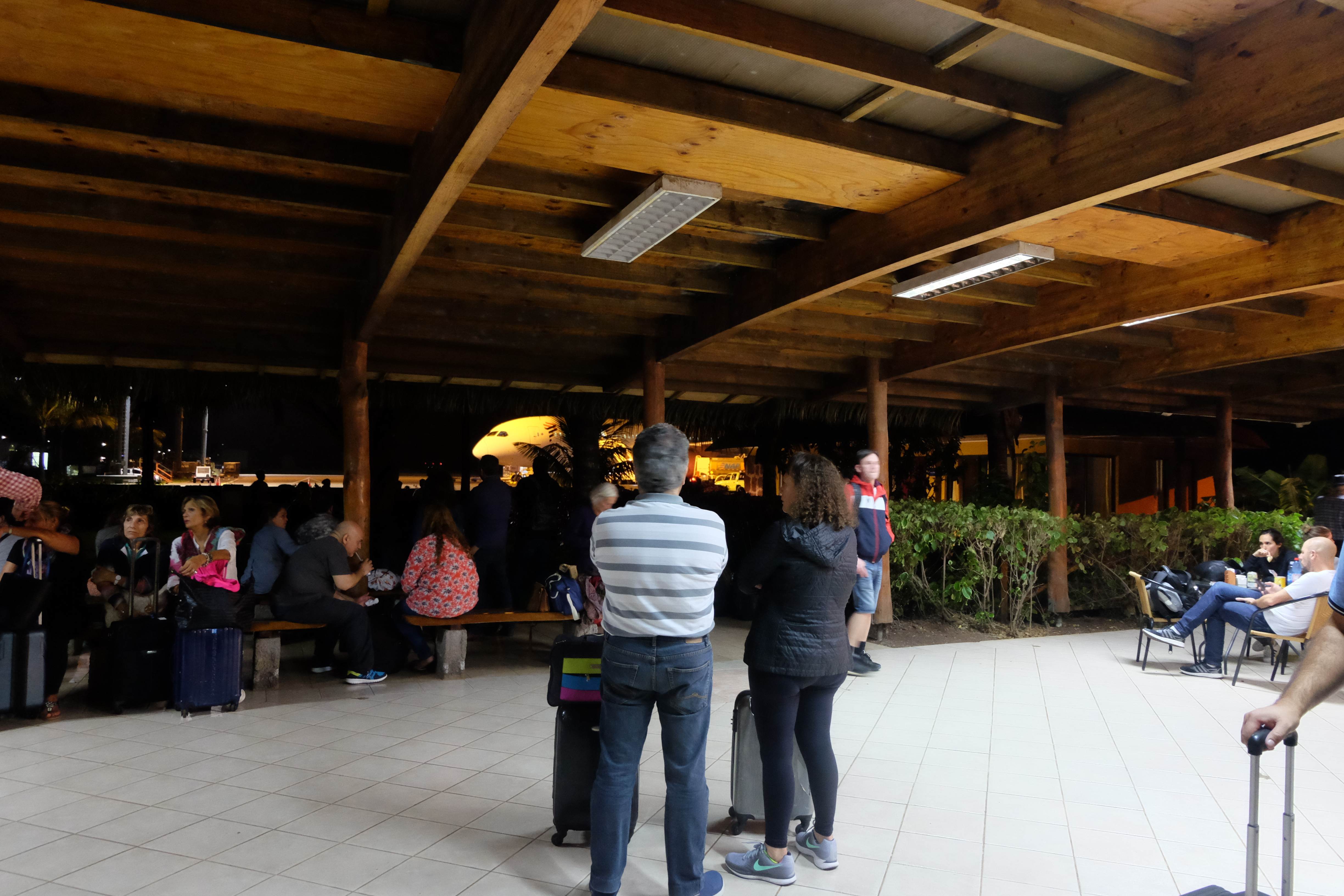 Dupa 4 zile aici nu putem sa spunem neaparat ca ne saturaseram de „omuletii cu palarie”, insa rucsacurile noastre au inceput sa motaie. Au inceput sa se planga ca le lipsea miscarea, tineau mortis sa fie impachetate si purtate din nou pe spate si incercau sa ne convinga de faptul ca existau alte locuri care ne asteptau, pe care ar trebui sa le descoperim sau in care ne-am putea pierde ceva lucruri. (Rafi si-a uitat jumatate din aparatul de barberit in Santiago de Chile – in patria „omuletilor cu palarie“ insa s-a decis sa nu devina totusi un „omulet cu barba” si si-a cumparat unul nou.) 🙂 In miez de noapte am putut savura feeling-ul insular din aeroport si ne-am imbarcat in avionul care urma sa ne aduca inapoi in Europa. Nu, nu va bucurati inainte de vreme (sau nu intrati in panica – depinde de caz :-)), nu ne intoarcem mai repede acasa! Pur si simplu calatorim mai departe spre Polinezia Franceza… 🙂