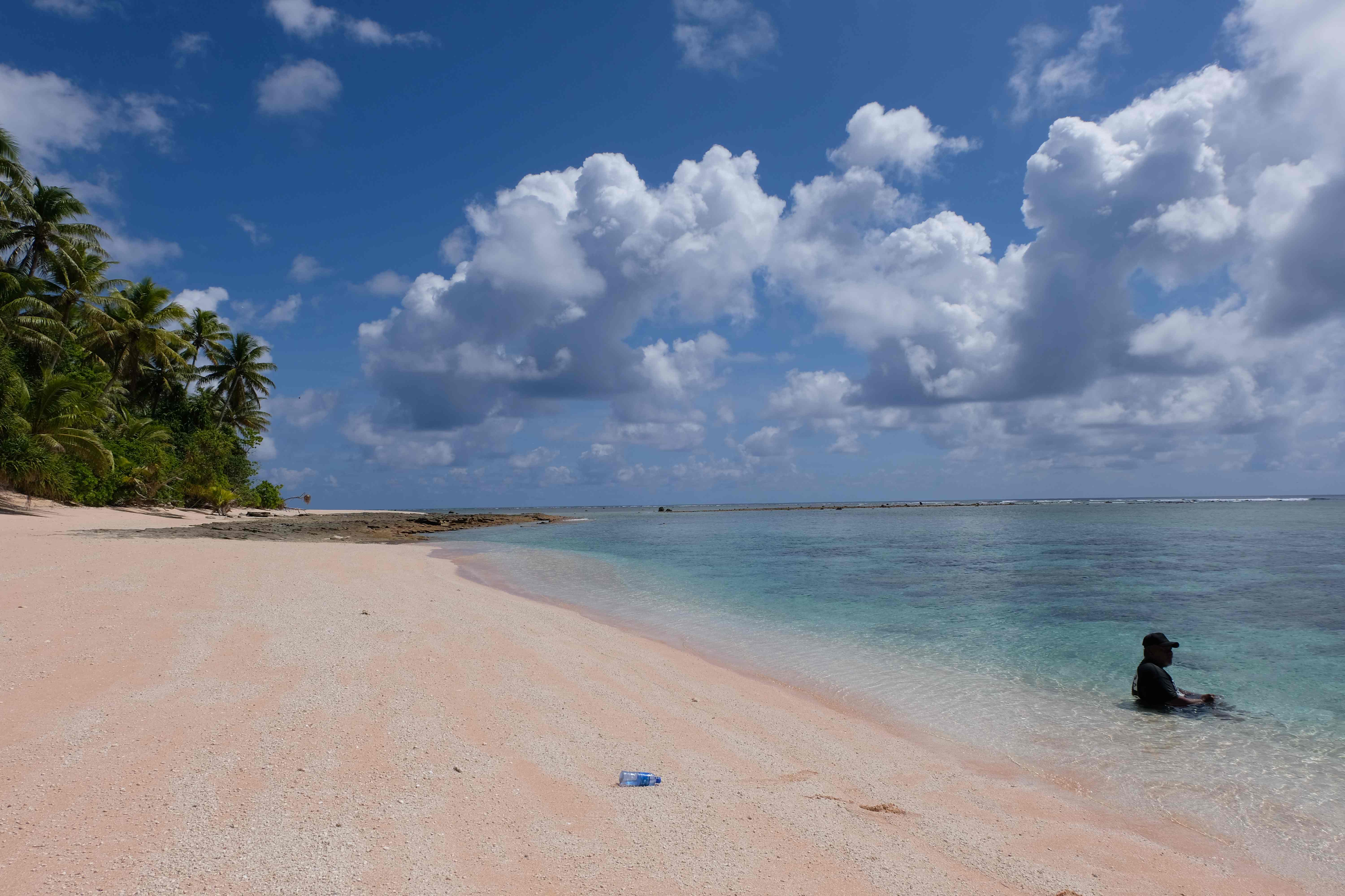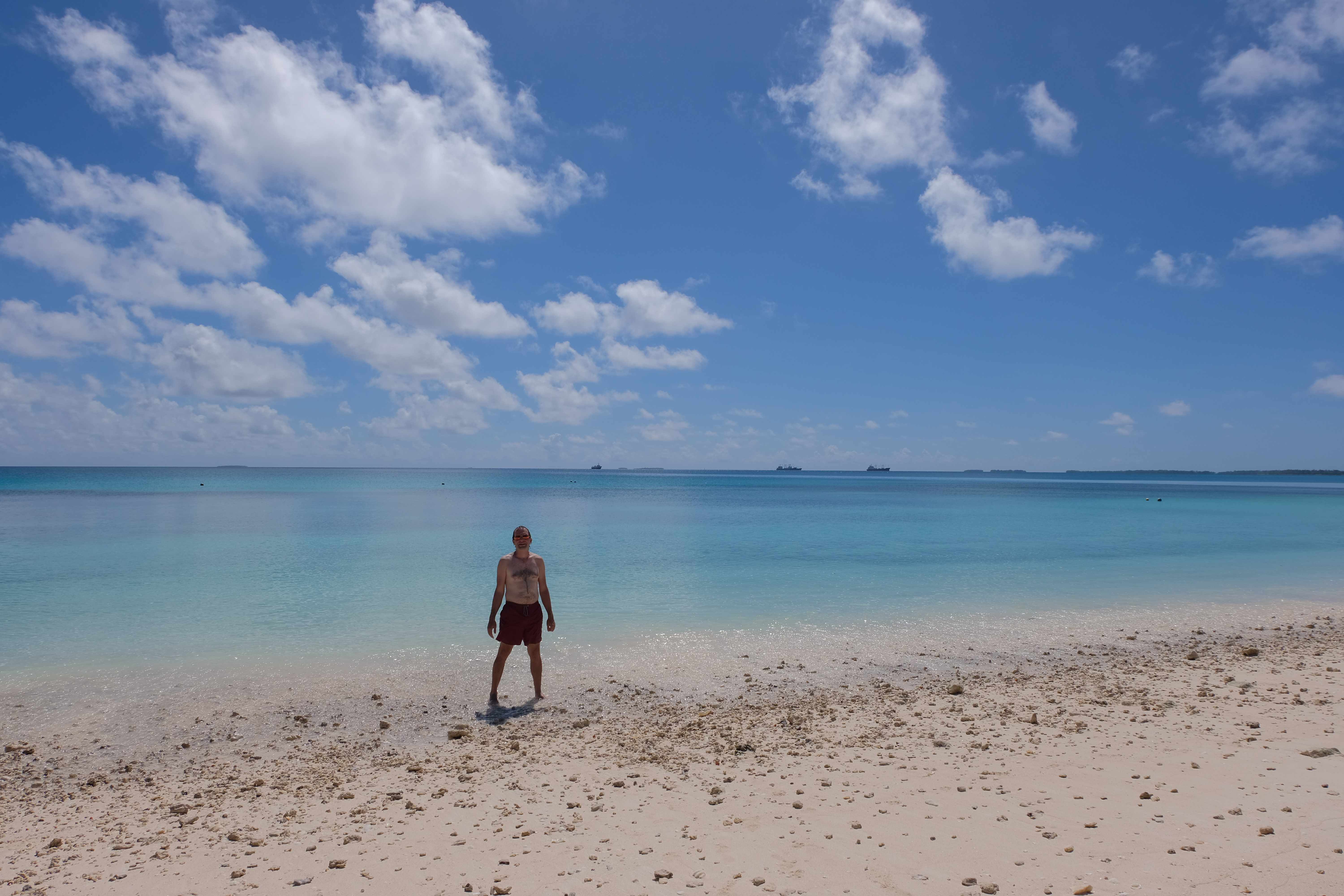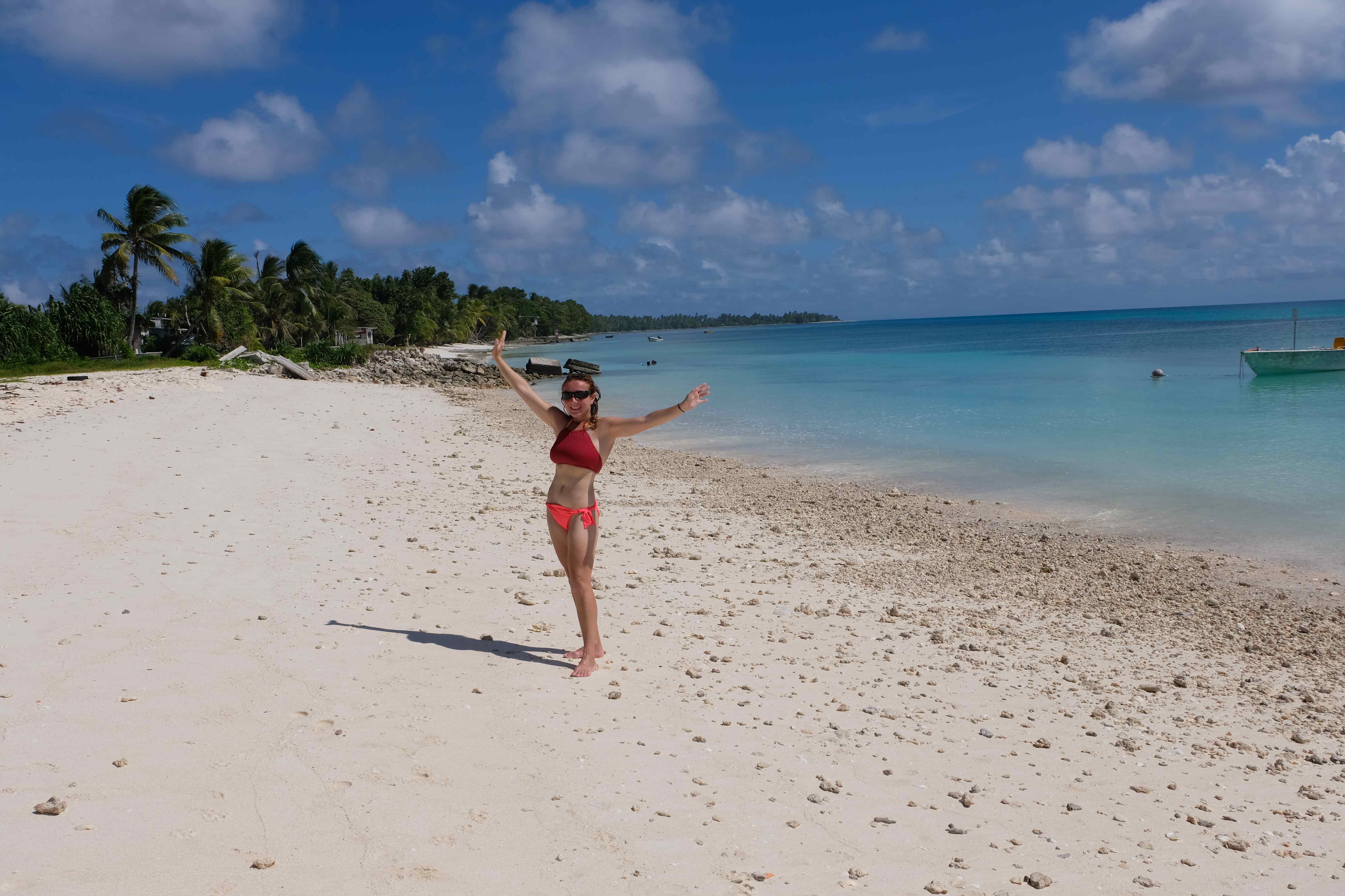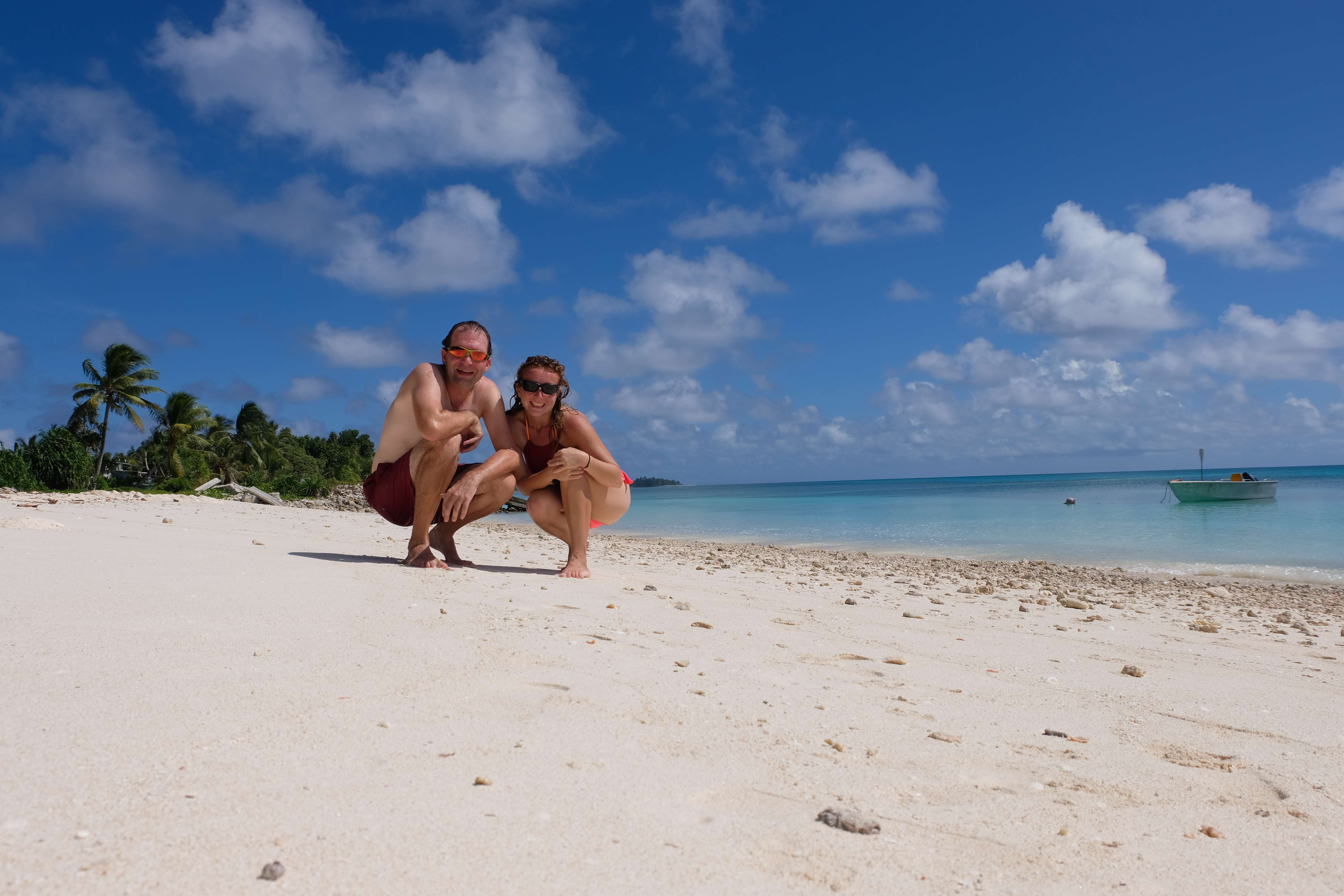 Willkommen in Tuvalu! Das Land, an dessen Nationalbankschalter man zwar direkt von der Landepiste anstehen kann, jedoch keine Geldautomaten beheimatet und in welches man daher mit einer Biege Bargeld einreisen muss; das Land, in welchem man landesweit der einzige Tourist ist, welcher an dem Tag eingereist war; das Land, dessen einziges Hotel sein Auto zum Flughafen geschickt hatte um die Gepäcksstücke der zukünftigen Gäste gerade mal 150 m bis ans Ziel zu fahren: nämlich dem Empfang; das Land, in welchem das Museum für Angewandte Kunst extra für deine Ankunft seine Tore öffnete: nämlich die einheimischen Frauen, welche im Schatten der Flughafenpalmen selbstgemachten Schmuck aus Muscheln verkauften… ein Landfleck im wahrsten Sinne des Wortes, von welchem wir fast keine Erwartungen hatten und welchem es gelang all diese um Welten zu übertreffen.