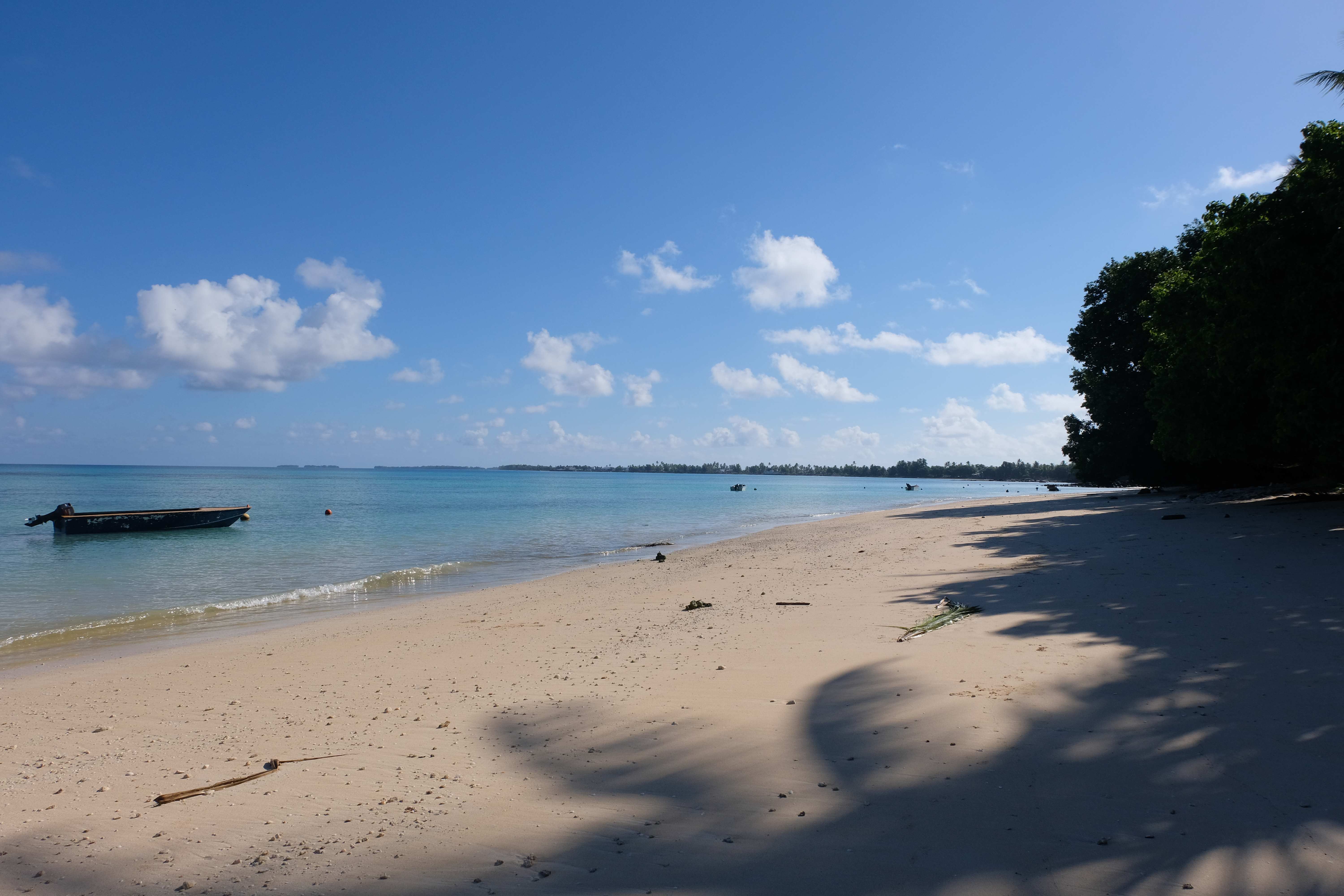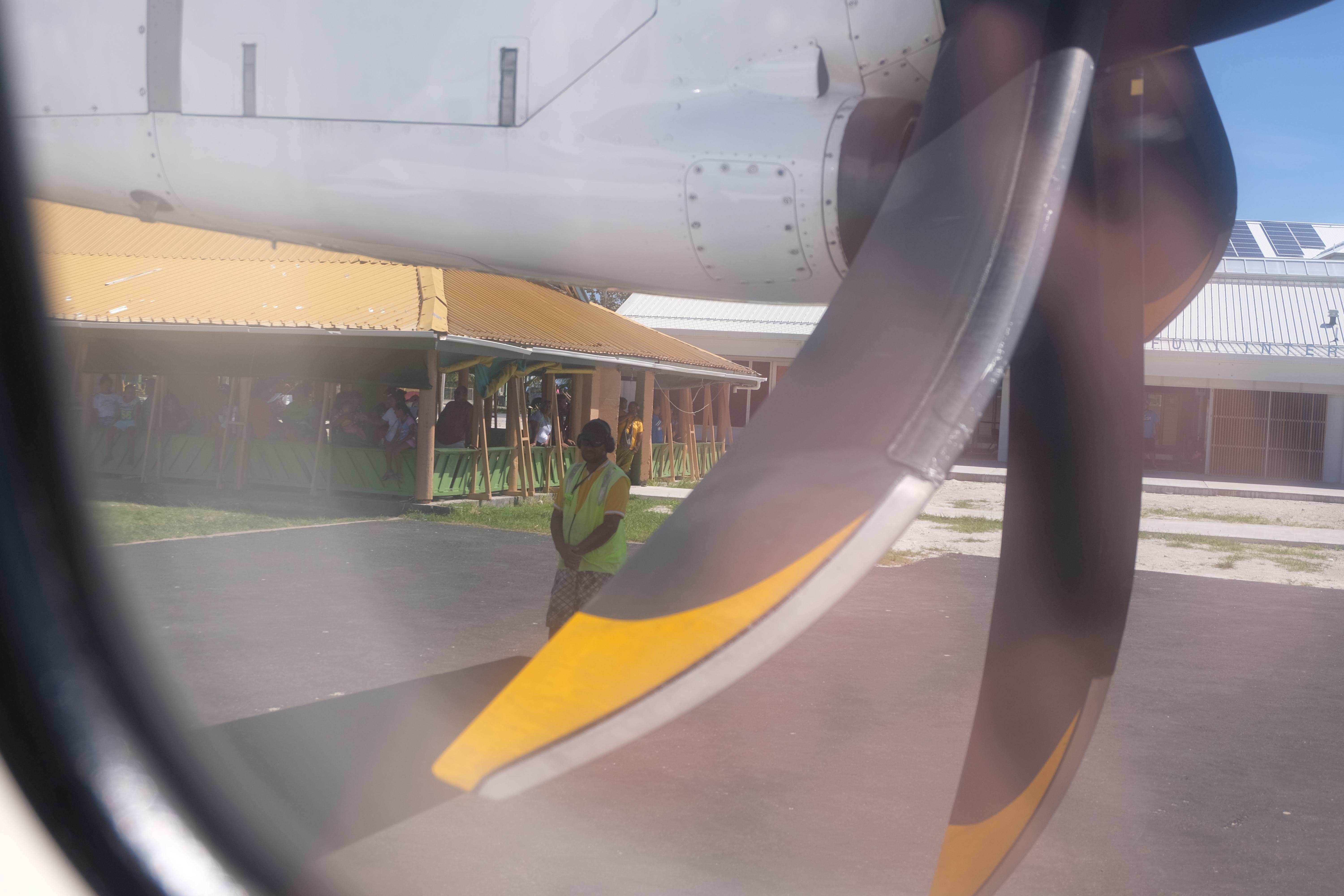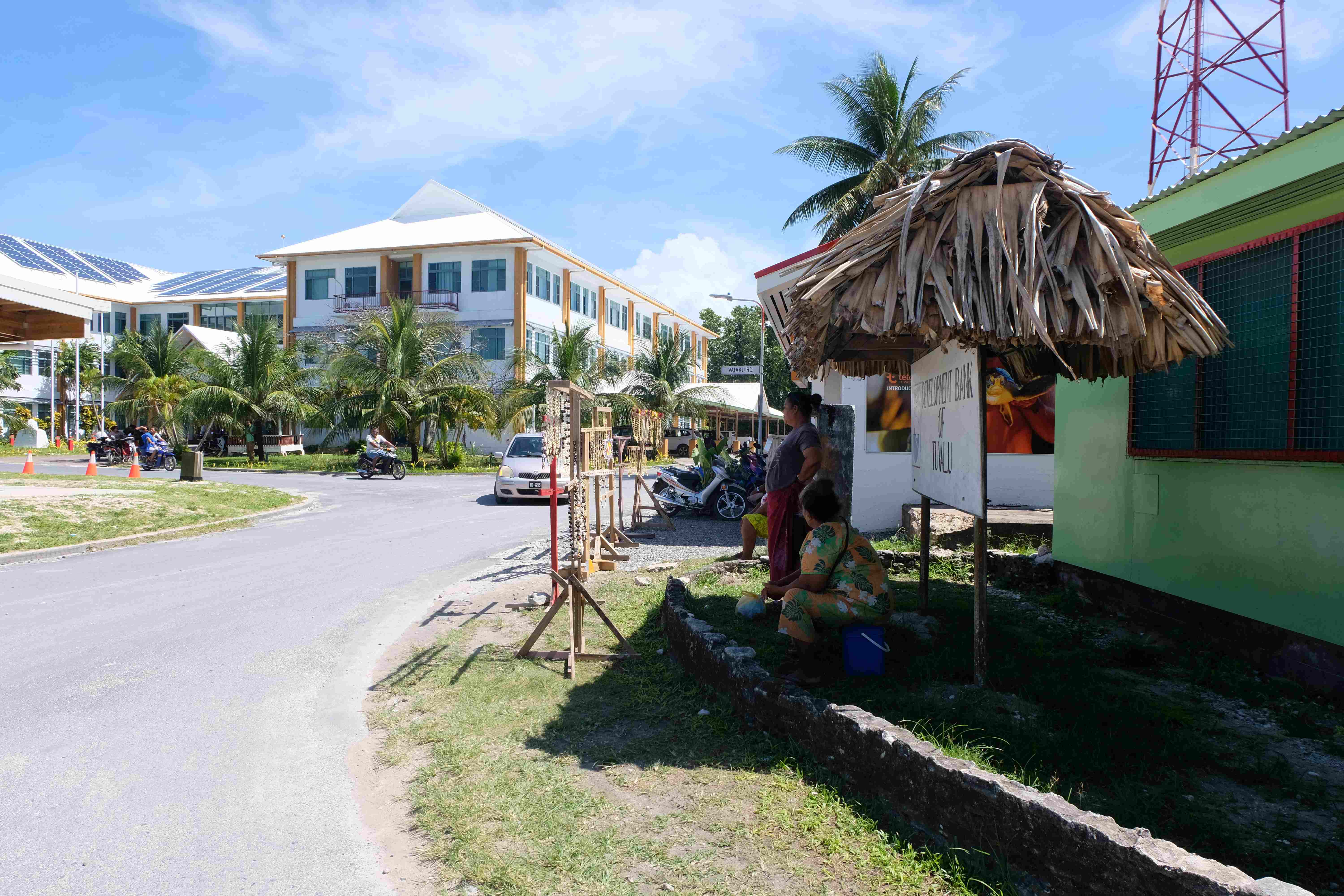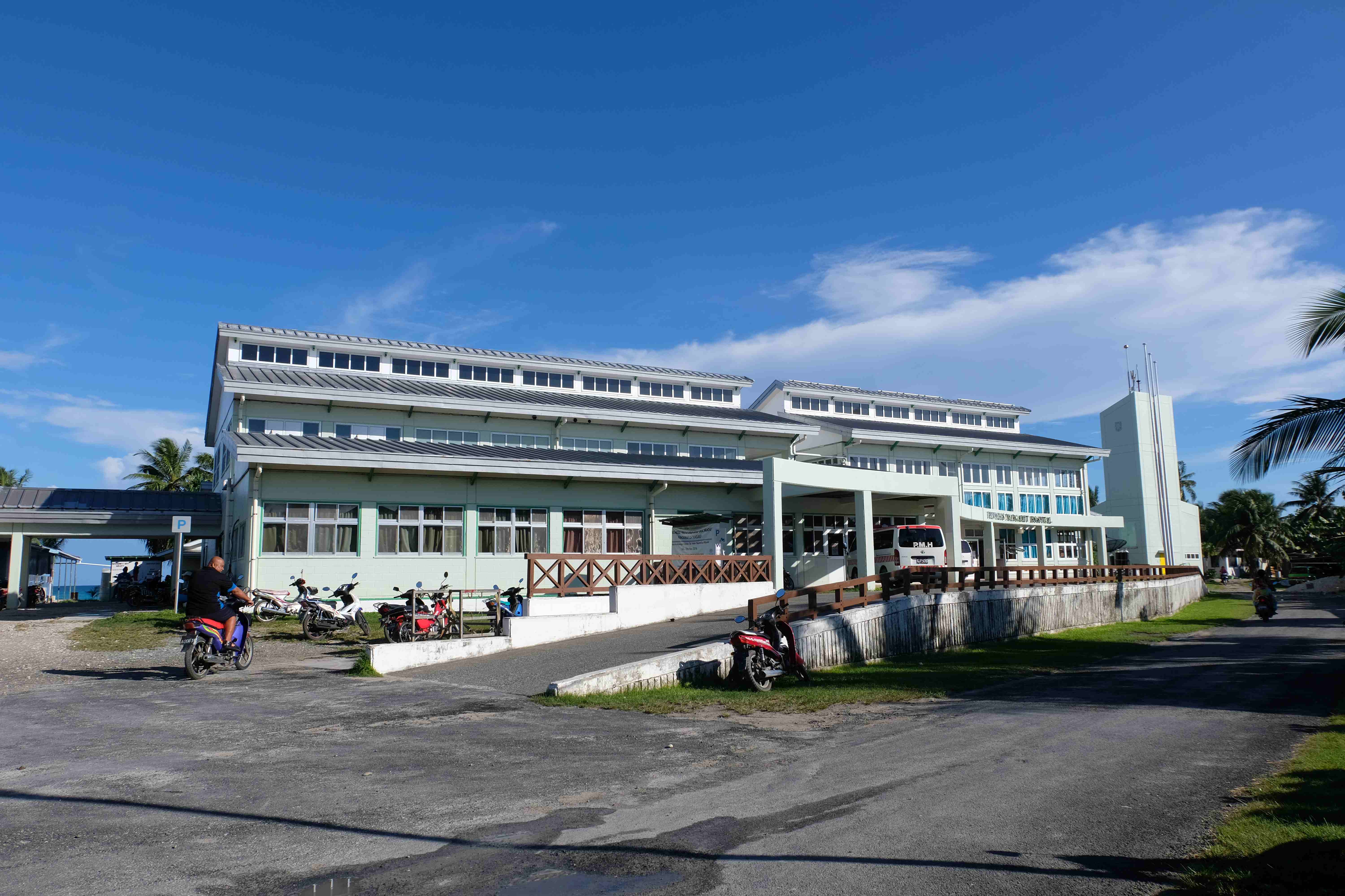 Willkommen in Tuvalu! Das Land, an dessen Nationalbankschalter man zwar direkt von der Landepiste anstehen kann, jedoch keine Geldautomaten beheimatet und in welches man daher mit einer Biege Bargeld einreisen muss; das Land, in welchem man landesweit der einzige Tourist ist, welcher an dem Tag eingereist war; das Land, dessen einziges Hotel sein Auto zum Flughafen geschickt hatte um die Gepäcksstücke der zukünftigen Gäste gerade mal 150 m bis ans Ziel zu fahren: nämlich dem Empfang; das Land, in welchem das Museum für Angewandte Kunst extra für deine Ankunft seine Tore öffnete: nämlich die einheimischen Frauen, welche im Schatten der Flughafenpalmen selbstgemachten Schmuck aus Muscheln verkauften… ein Landfleck im wahrsten Sinne des Wortes, von welchem wir fast keine Erwartungen hatten und welchem es gelang all diese um Welten zu übertreffen.