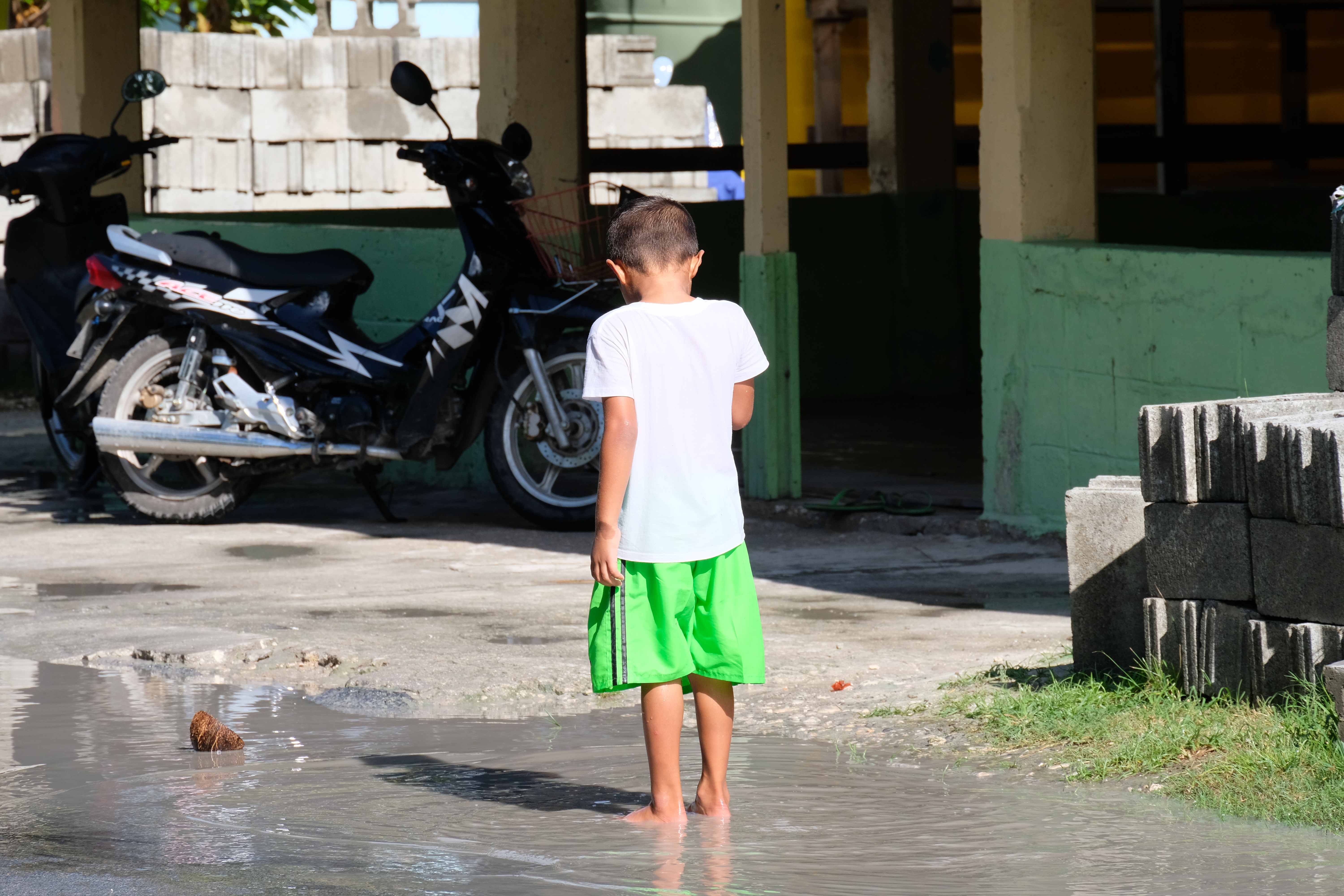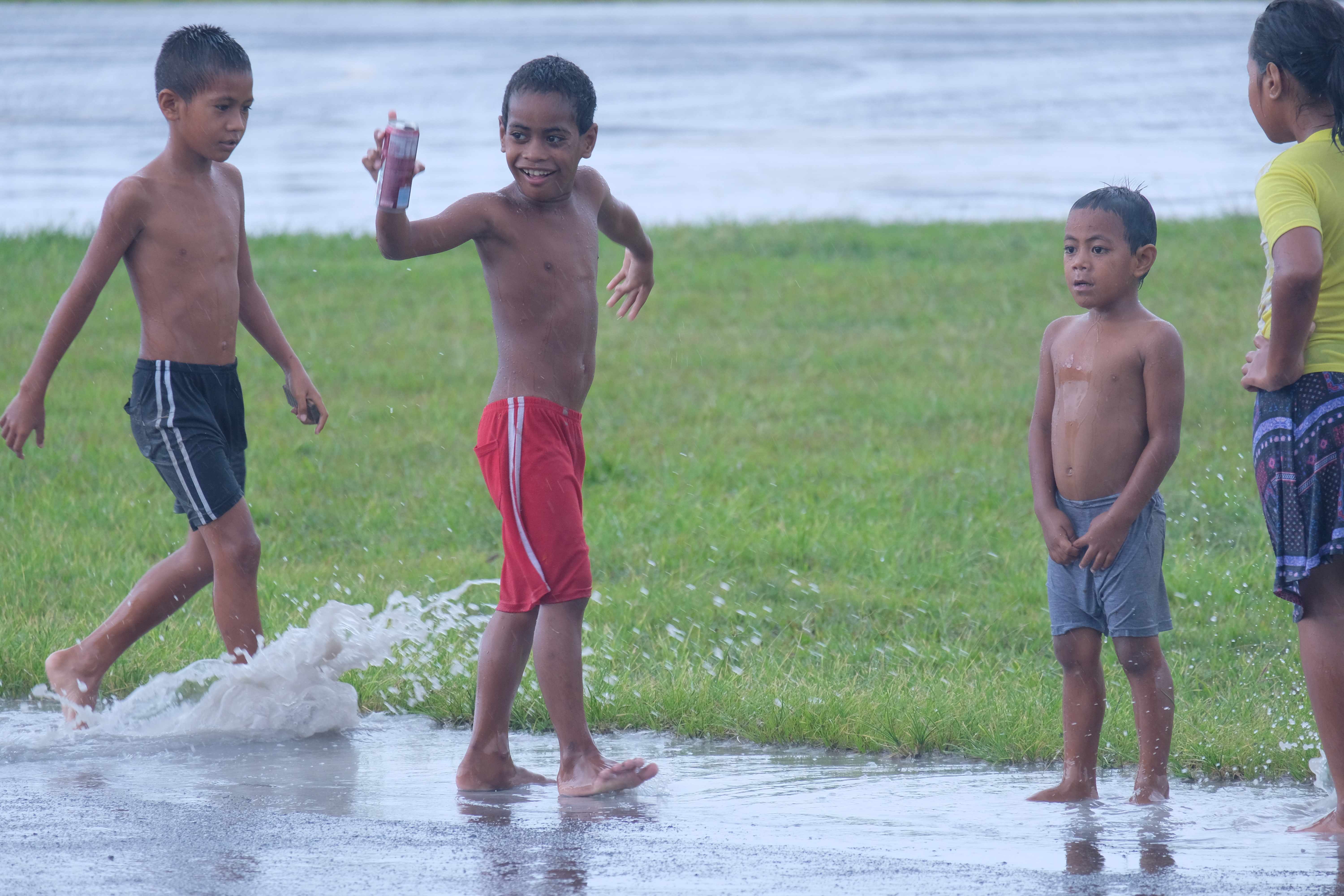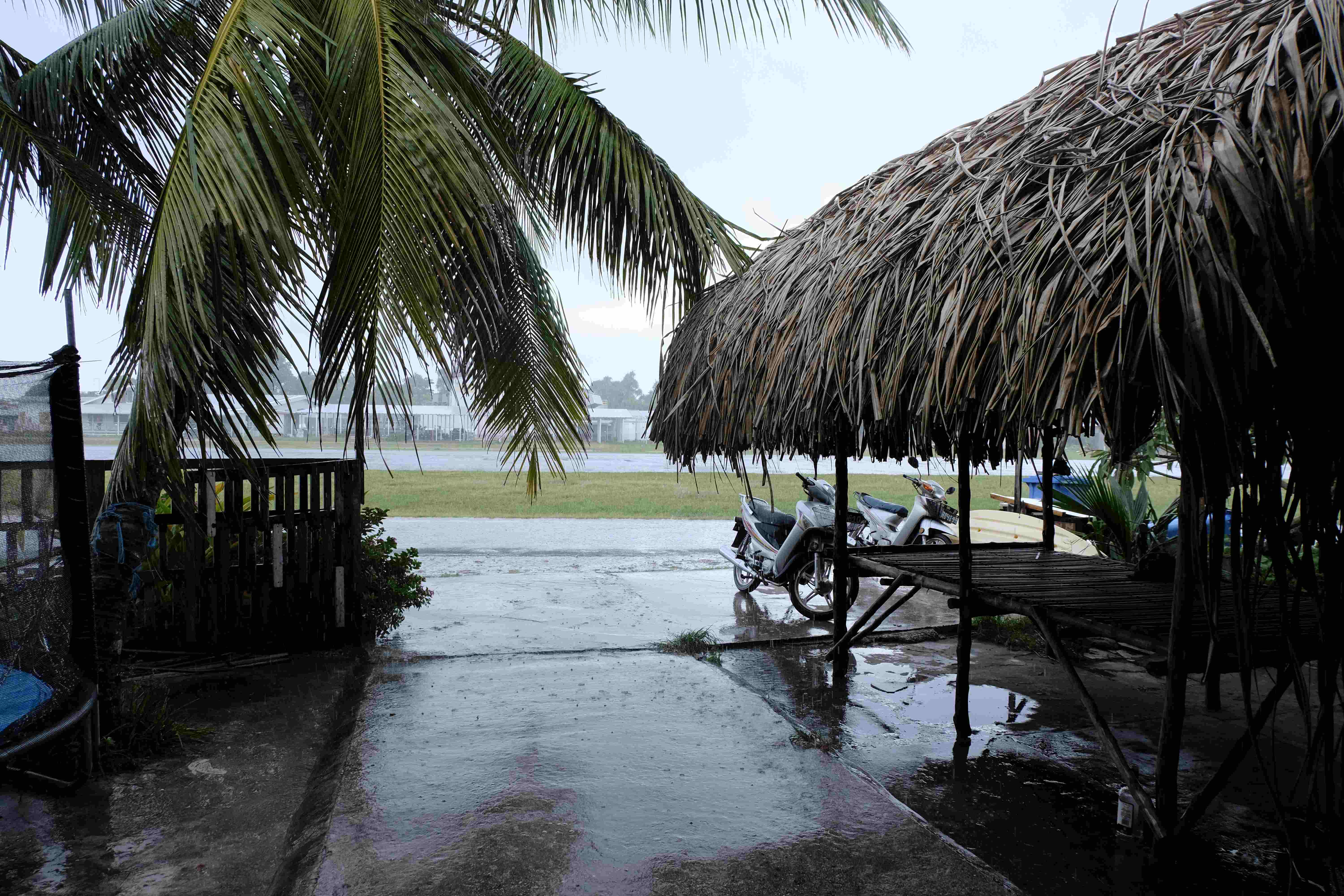 Am Tag darauf ging es ziemlich früh los: viele bürokratische Sachen standen auf dem Programm: mit den Fisheries (die Behörde, welche das Angeln sowie den Schiffstransport in der Region überwacht) Kontakt aufnehmen um das Tauchen zu organisieren, zum Gemeindehaus gehen um die Tour in die Marine Conservation Area zu planen; ins Spital um mein verstopftes Höhlenohr anschauen zu lassen und schlussendlich ins Zentrum um ein paar Alltagsfotos von den Einheimischen und den im Regen spielenden Kindern zu schaffen. Huch, ganz schön anstrengend! Aber schön der Reihe nach! Bei den Fisheries erlebten wir mal tuvaluische Hilfsbereitschaft: während sämtliche Taucher auf den Ausseninseln waren und 16 Tage lang dort verweilen mussten (natürlich, genau dann, wann ich komme!) und meine „kommt jemand von euch mit mir tauchen und mietet ihr mir die Ausrüstung“-Bitte mit einem Nein beantwortet wurde, reichten meine Verzweiflung und ein mit Hundeäuglein formuliertes „Bitte schön“ bereits aus, um dieses ursprüngliche Nein in ein „kommt am Montag, das kriegen wir schon irgendwie hin“ zu verwandeln. Alles ist machbar hier, Zeit und Geduld muss man haben, die Inselkultur und den hiesigen Rhythmus muss man respektieren können und schon klappt alles! Also ab zum Gemeindehaus, wo wir die Erlaubnis einholen mussten die Marine Conservation Area zu betreten. Natürlich ging das schnell: gezahlt wird nach der Tour, es kostet so und so viel, der Bootsfahrer erwartet euch am Dienstag Morgen um 9 Uhr (samt der von den Fisheries gemieteten Tauchausrüstung) hier! Ganz ehrlich: so etwas in Europa zu organisieren hätte mindestens 3 Mal so lange gedauert! Also durften wir ziemlich früh mit unserer To-Do Liste weitermachen: Spital um die taube Ina wieder aus der Höhle heraus zu kriegen. Während wir in Auckland darauf verzichteten, da wir bei einem Preis von ca. 400 CHF vor der Konsultation wie vor dem Teufel zurückschreckten, stolzierten wir hier voller Mut ins Krankenhaus, nach dem Motto: lieber ärmer als ganz taub! Wenig ahnten wir, dass mehrere Überraschungen hier auf uns warten würden: nein, das Spital ist kein aus Stroh zusammengeflochtenes Haus, welches beim Eingang Whiskey als Anästhetikum verteilt; nein, man muss weder andere umbringen um vor ihnen dran zu kommen, noch das Bett von zuhause mitnehmen, weil man hier übernachten muss bis man von einem Arzt gesehen wird: alles ist schön organisiert und es geht ziemlich schnell! Und… es geht noch weiter: bei der Patienten-Triage fanden wir nicht nur heraus, dass ich – wie immer – einen sehr tiefen Blutdruck habe, sondern auch, dass Madalina ein tuvaluischer Name ist. Während des Arztbesuches fanden wir auch heraus, dass mein Ohr seinen Wohnort in eine Höhle verlegte, weil es nämlich voller hart(näckig)em Wachs war, welches ich mit Spezialtropfen während des Wochenendes auflösen sollte. Und… ich hoffe, ihr sitzt: beim Beziehen ebendieser Tropfen in der krankenhauseigenen Apotheke fanden wir auch heraus, dass ich weder arm noch taub – sondern eher sprachlos – bleiben würde, da hierzulande jeder Spitalbesuch samt Medikamentenvergabe gratis ist!