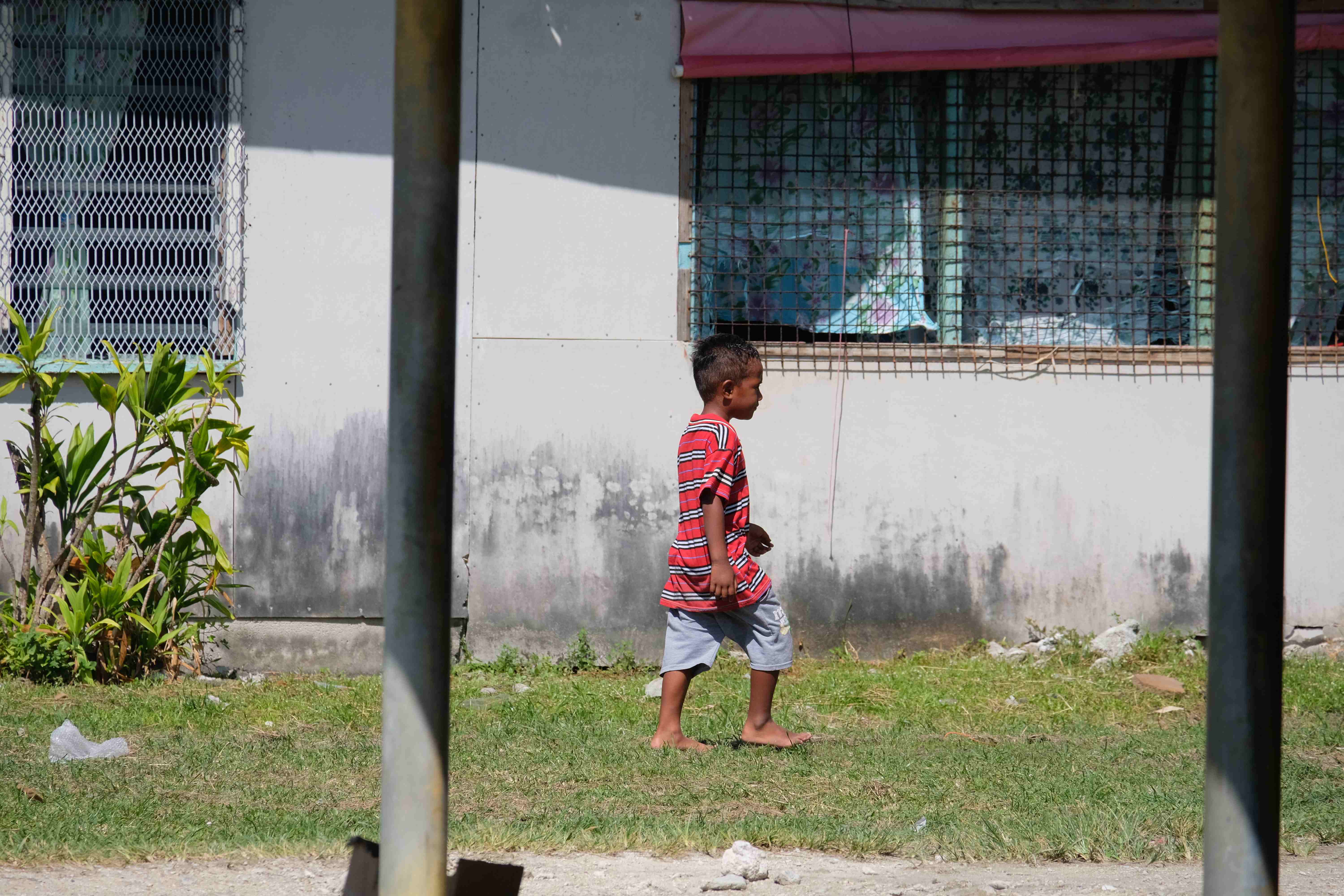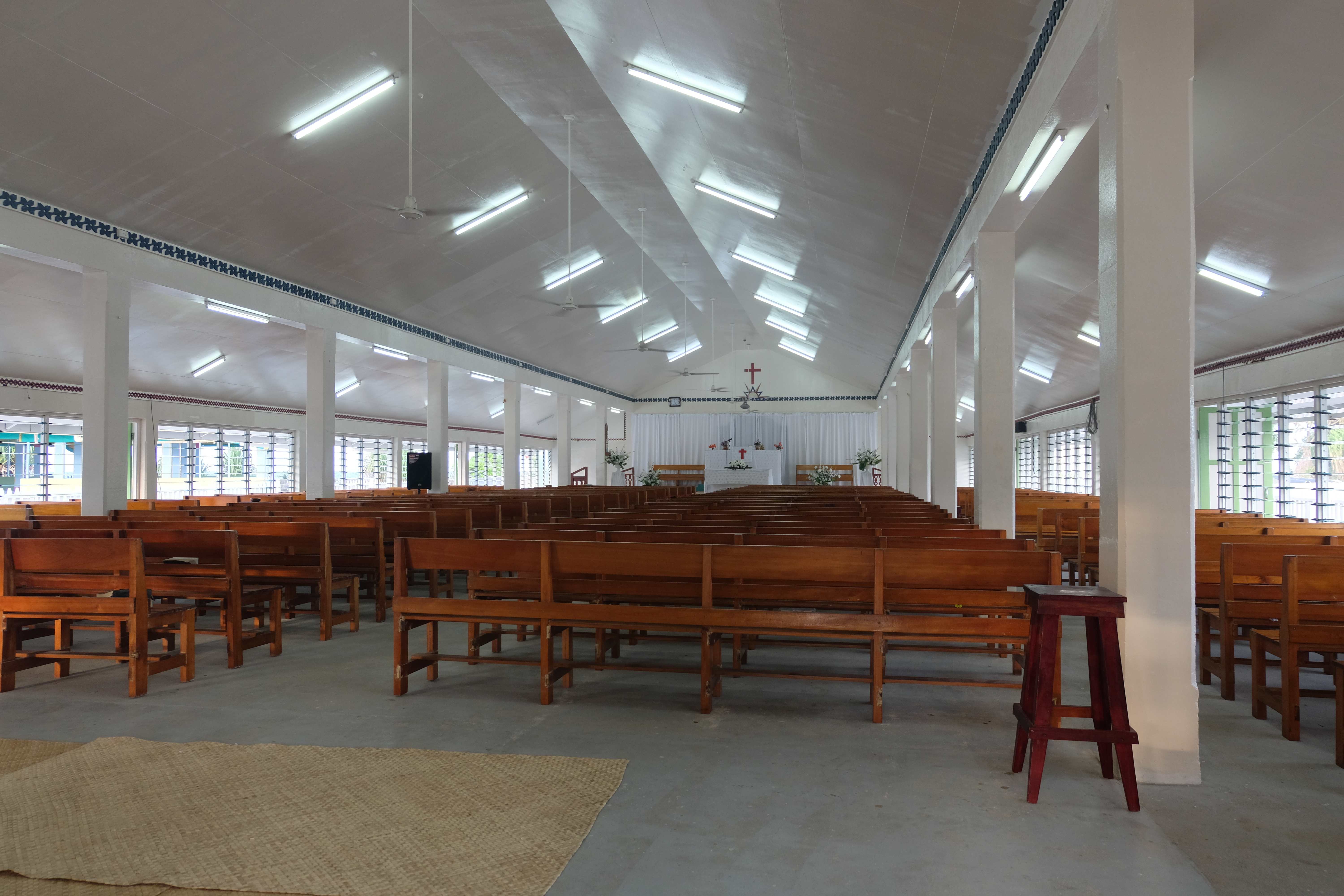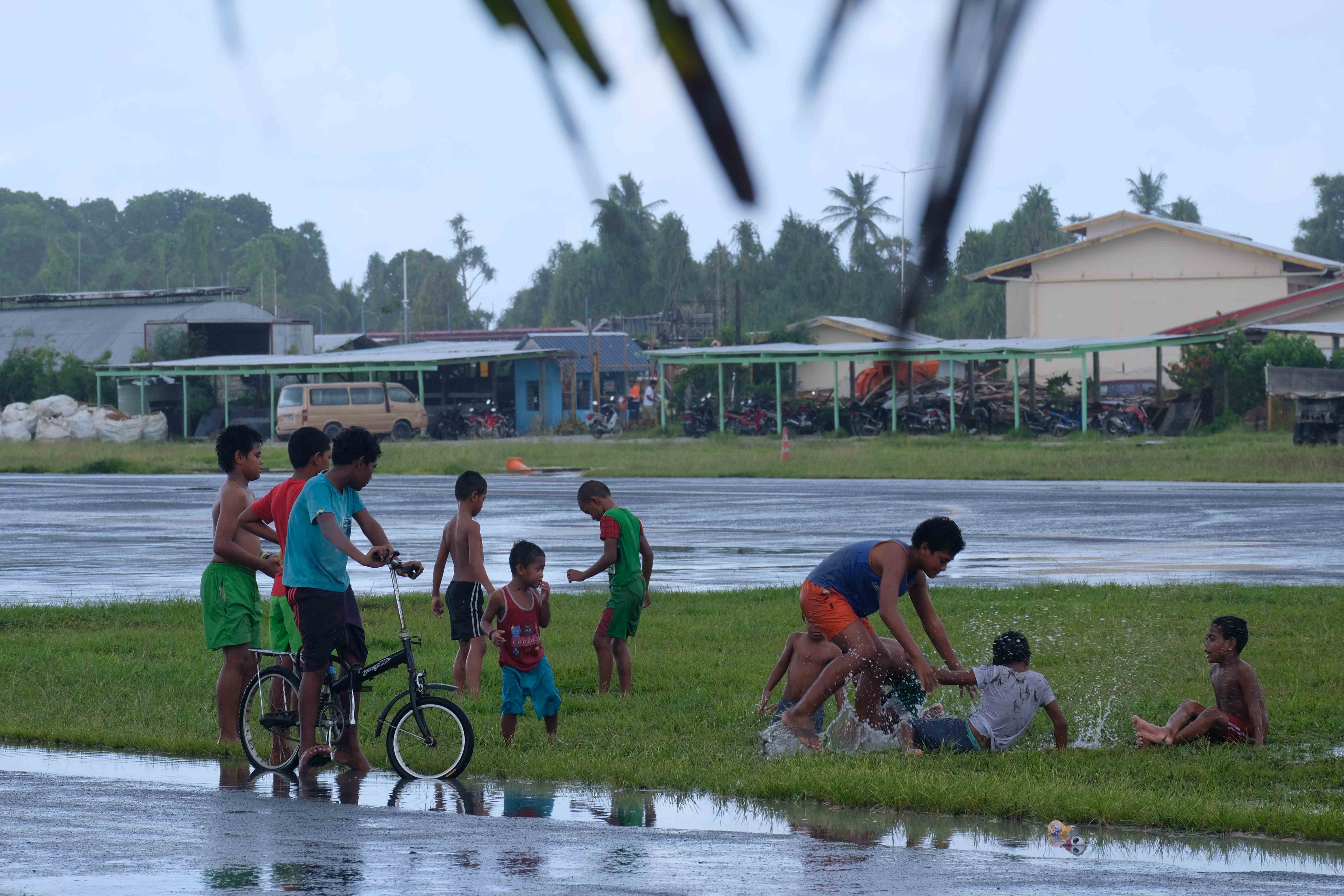 Am Tag darauf ging es ziemlich früh los: viele bürokratische Sachen standen auf dem Programm: mit den Fisheries (die Behörde, welche das Angeln sowie den Schiffstransport in der Region überwacht) Kontakt aufnehmen um das Tauchen zu organisieren, zum Gemeindehaus gehen um die Tour in die Marine Conservation Area zu planen; ins Spital um mein verstopftes Höhlenohr anschauen zu lassen und schlussendlich ins Zentrum um ein paar Alltagsfotos von den Einheimischen und den im Regen spielenden Kindern zu schaffen. Huch, ganz schön anstrengend! Aber schön der Reihe nach! Bei den Fisheries erlebten wir mal tuvaluische Hilfsbereitschaft: während sämtliche Taucher auf den Ausseninseln waren und 16 Tage lang dort verweilen mussten (natürlich, genau dann, wann ich komme!) und meine „kommt jemand von euch mit mir tauchen und mietet ihr mir die Ausrüstung“-Bitte mit einem Nein beantwortet wurde, reichten meine Verzweiflung und ein mit Hundeäuglein formuliertes „Bitte schön“ bereits aus, um dieses ursprüngliche Nein in ein „kommt am Montag, das kriegen wir schon irgendwie hin“ zu verwandeln. Alles ist machbar hier, Zeit und Geduld muss man haben, die Inselkultur und den hiesigen Rhythmus muss man respektieren können und schon klappt alles! Also ab zum Gemeindehaus, wo wir die Erlaubnis einholen mussten die Marine Conservation Area zu betreten. Natürlich ging das schnell: gezahlt wird nach der Tour, es kostet so und so viel, der Bootsfahrer erwartet euch am Dienstag Morgen um 9 Uhr (samt der von den Fisheries gemieteten Tauchausrüstung) hier! Ganz ehrlich: so etwas in Europa zu organisieren hätte mindestens 3 Mal so lange gedauert! Also durften wir ziemlich früh mit unserer To-Do Liste weitermachen: Spital um die taube Ina wieder aus der Höhle heraus zu kriegen. Während wir in Auckland darauf verzichteten, da wir bei einem Preis von ca. 400 CHF vor der Konsultation wie vor dem Teufel zurückschreckten, stolzierten wir hier voller Mut ins Krankenhaus, nach dem Motto: lieber ärmer als ganz taub! Wenig ahnten wir, dass mehrere Überraschungen hier auf uns warten würden: nein, das Spital ist kein aus Stroh zusammengeflochtenes Haus, welches beim Eingang Whiskey als Anästhetikum verteilt; nein, man muss weder andere umbringen um vor ihnen dran zu kommen, noch das Bett von zuhause mitnehmen, weil man hier übernachten muss bis man von einem Arzt gesehen wird: alles ist schön organisiert und es geht ziemlich schnell! Und… es geht noch weiter: bei der Patienten-Triage fanden wir nicht nur heraus, dass ich – wie immer – einen sehr tiefen Blutdruck habe, sondern auch, dass Madalina ein tuvaluischer Name ist. Während des Arztbesuches fanden wir auch heraus, dass mein Ohr seinen Wohnort in eine Höhle verlegte, weil es nämlich voller hart(näckig)em Wachs war, welches ich mit Spezialtropfen während des Wochenendes auflösen sollte. Und… ich hoffe, ihr sitzt: beim Beziehen ebendieser Tropfen in der krankenhauseigenen Apotheke fanden wir auch heraus, dass ich weder arm noch taub – sondern eher sprachlos – bleiben würde, da hierzulande jeder Spitalbesuch samt Medikamentenvergabe gratis ist!