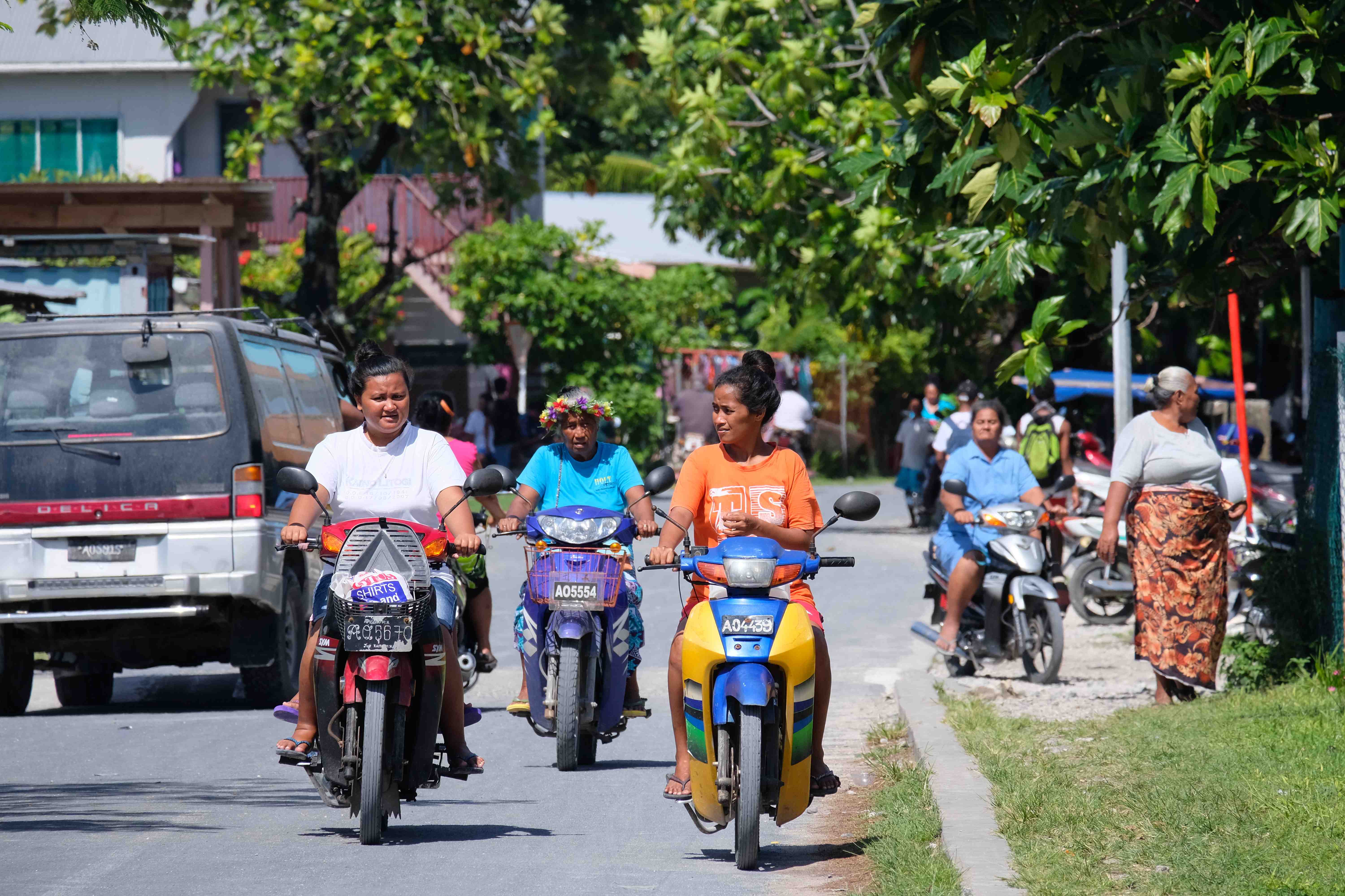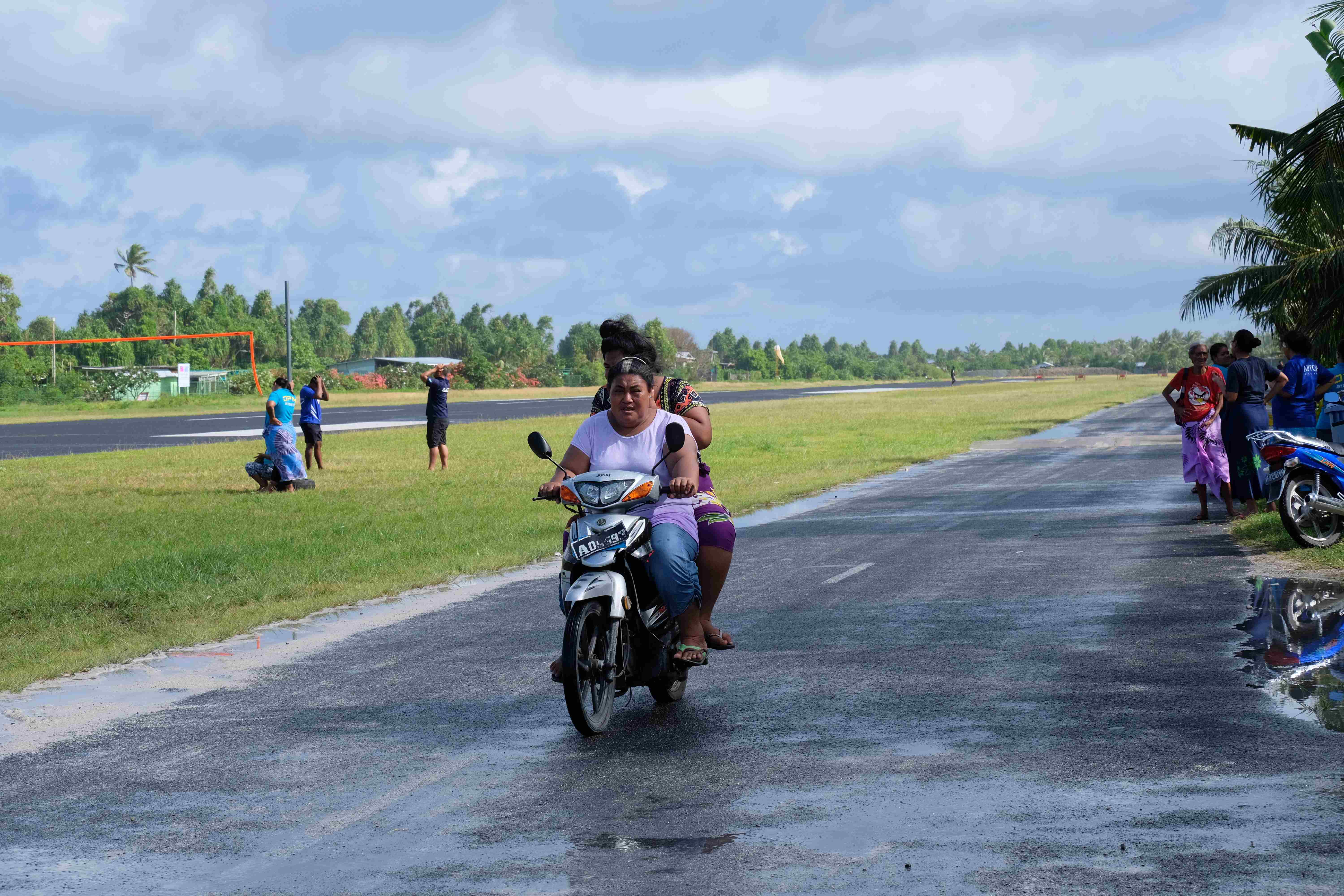 Incercarea de a ne racori ne-a purtat a doua zi in centru iar pe Rafi in mod concret l-a determinat sa porneasca in cautarea noii sale iubiri (eu am fost deja declasata la statutul de iubire veche! :-)), si anume: apa de nuca de cocos proaspata. Faptul ca pe drum am fost opriti de un jurnalist local care nu doar ne-a intervievat, ci a si documentat aceasta cu o poza – ei bine, aceasta va fi un lucru nostim de mentionat in momentul in care vom aparea in ziarul local tuvalez (pe care acesta a promis sa ni-l trimita pe mail)! 🙂 Insa inapoi la indeletnicirea noastra, si anume vanatoarea de nuci de cocos. Ia imaginati-vi-l pe Rafi care tanjea dupa acea apa, care vedea la fiecare colt de strada palmieri incarcati de nuci de cocos si totusi nu era in stare sa le gaseasca niciunde de vanzare. Ei bine, dupa multe cercetari pe la standurile locale a primit cel mai tare raspuns al tuturor timpurilor: „aici nu se vand nucile de cocos, trebuie sa rugati pe cineva sa se catere in palmier ca sa va coboare cateva!” Cel tarziu in momentul in care ti se spune asta, realizezi unde te afli de fapt. Si totusi, unde se afla ceilalti dupa ora 16 – si spunand asta ma refer la majoritatea populatiei pe care de altfel o vezi trebaluind harnica in fiecare zi in ciuda caniculei. Nu am stiut unde se aflau, pana cand nu ne-am lasat condusi de adierea placuta a vantului inspre pista de aterizare, autostrada si totodata cel mai mare loc deschis al insulei unde ne-am intalnit cu 90% din populatia de aici. In timp ce noua generatie se impartise in diferite grupe si forma parte din unele din multele echipe de volei, rugby sau fotbal; generatia mai batrana era fan-clubul local. In loc de loje, motocicletele erau folosite pe post de scaune. 🙂 A fost o imagine inedita si o descoperire de necrezut: ai cotit doar un pic de la strada principala si te-ai intalnit cu intregul sat care vibra de viata! In timp ce in multe metropole ale lumii oamenilor le lipseste timpul, cheful si pur si simplu cheful de viata pentru a se intalni intr-o asemenea maniera, populatia unei insule cu o lungime de nici macar 12 km si o latime de vreo 400 m (in punctul cel mai lat) a reusit aici sa sarbatoreasca viata mult mai energic decat alte societati superdezvoltate! Wow este probabil afirmatia cea mai potrivita!