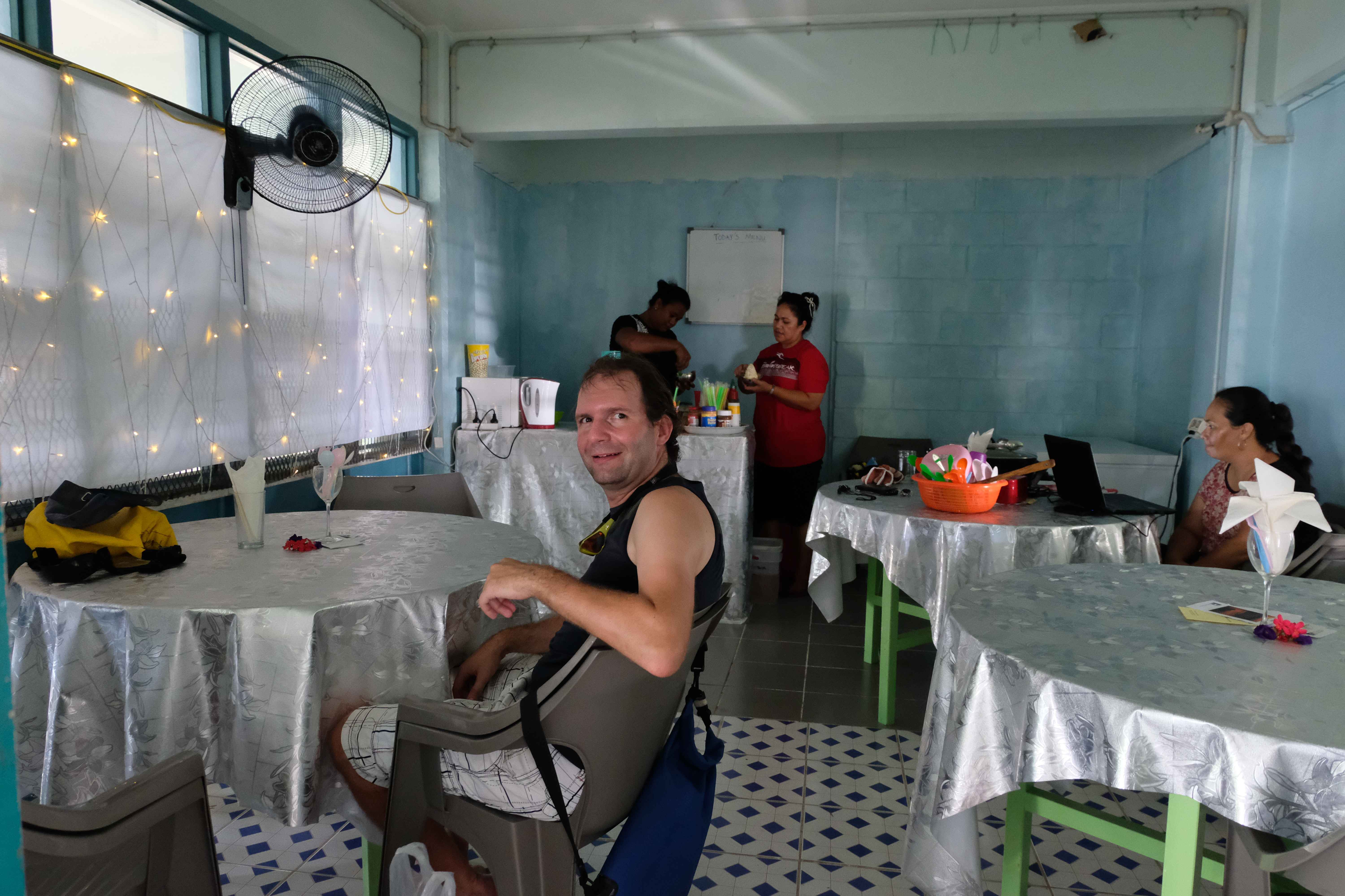 Gross war unsere Überraschung am ersten Tag jedoch nicht nur weil wir dermassen freundlich empfangen und eine so schöne Bleibe fanden, sondern auch weil wir – in Tuvalu, wohlgemerkt! – unsere Mobiltelefone prüfen lassen mussten, um ihre Kompatibilität mit der hochmodernen tuvaluischen 4G/LTE Netzwerkfrequenz zu testen. Dabei hatten die dortigen Tuvalu Telecom-Angestellten nicht nur die nötige Geduld mit unseren Geräten ca. 20 Minuten lang die Verbindungsherstellung hinzukriegen, sondern auch das nötige Know-how um neue SIM-Karten aller Grössen in unsere Geräte einzuwechseln und sich durch das auf Deutsch erscheinende Menü tapfer zu schlagen – im Gegensatz zum Fijianer, welcher bei unserer Ankunft in Fiji fast mein Natel kaputt machte, indem er die neu erworbene SIM-Karte auf sehr kreative Art und Weise darin einstecken wollte! Und siehe da: es klappte! Rafi’s Natel war tatsächlich mit der tuvaluischen modernen Internet-Ära kompatibel und wir konnten so in den Genuss nicht nur einer für uns völlig unerwarteten, sondern auch ziemlich schnellen und verhältnismässig spottbilligen Internetverbindung kommen!