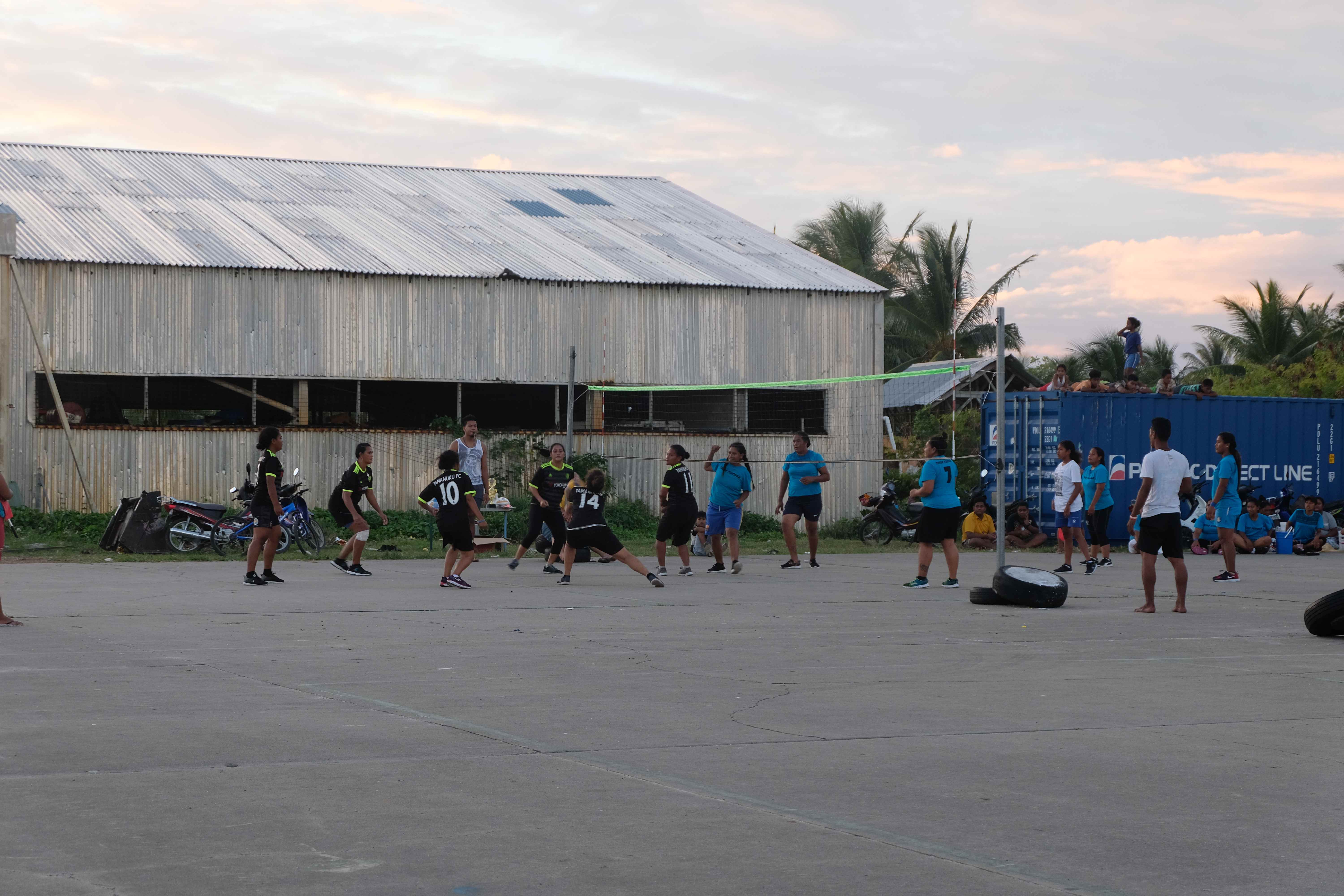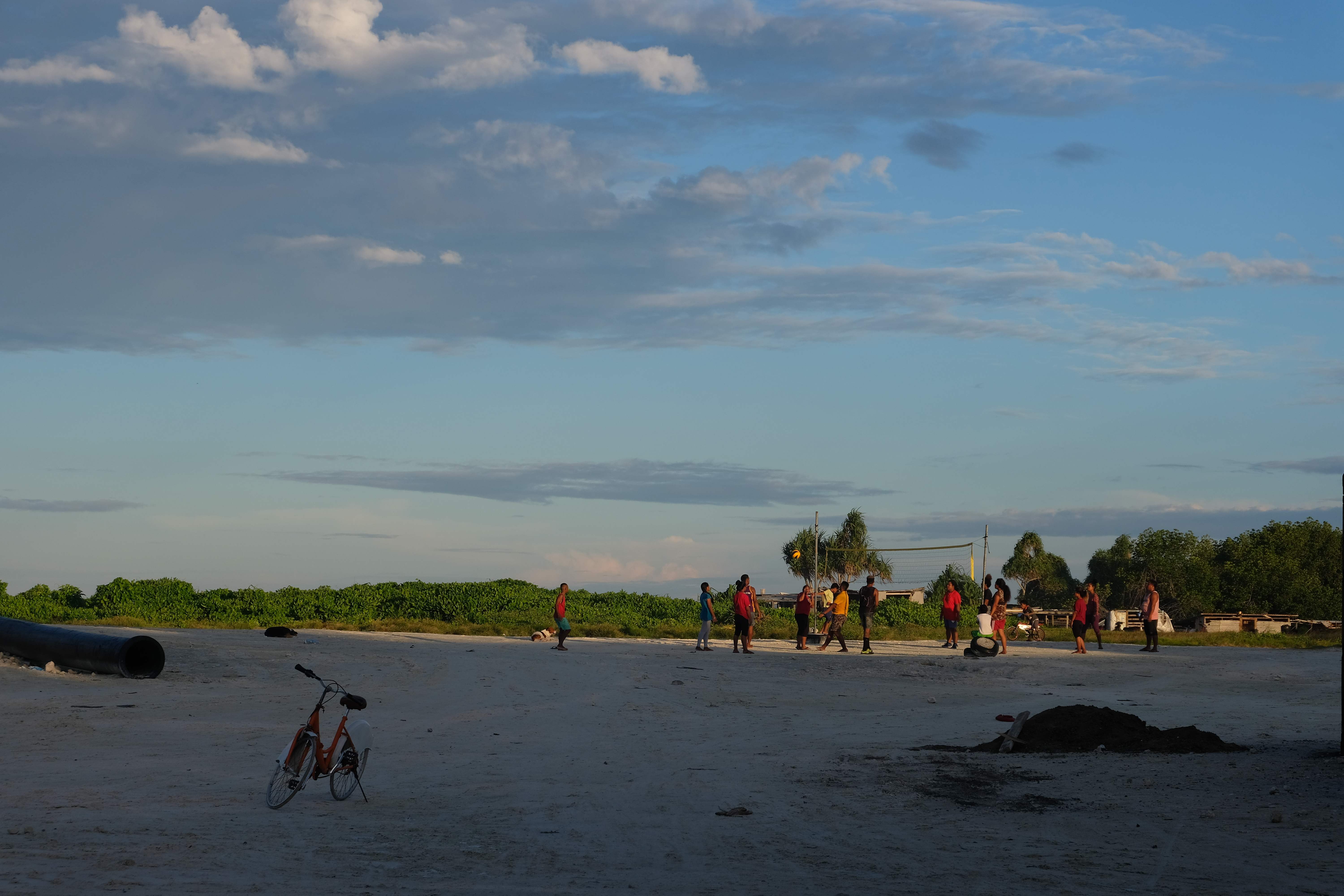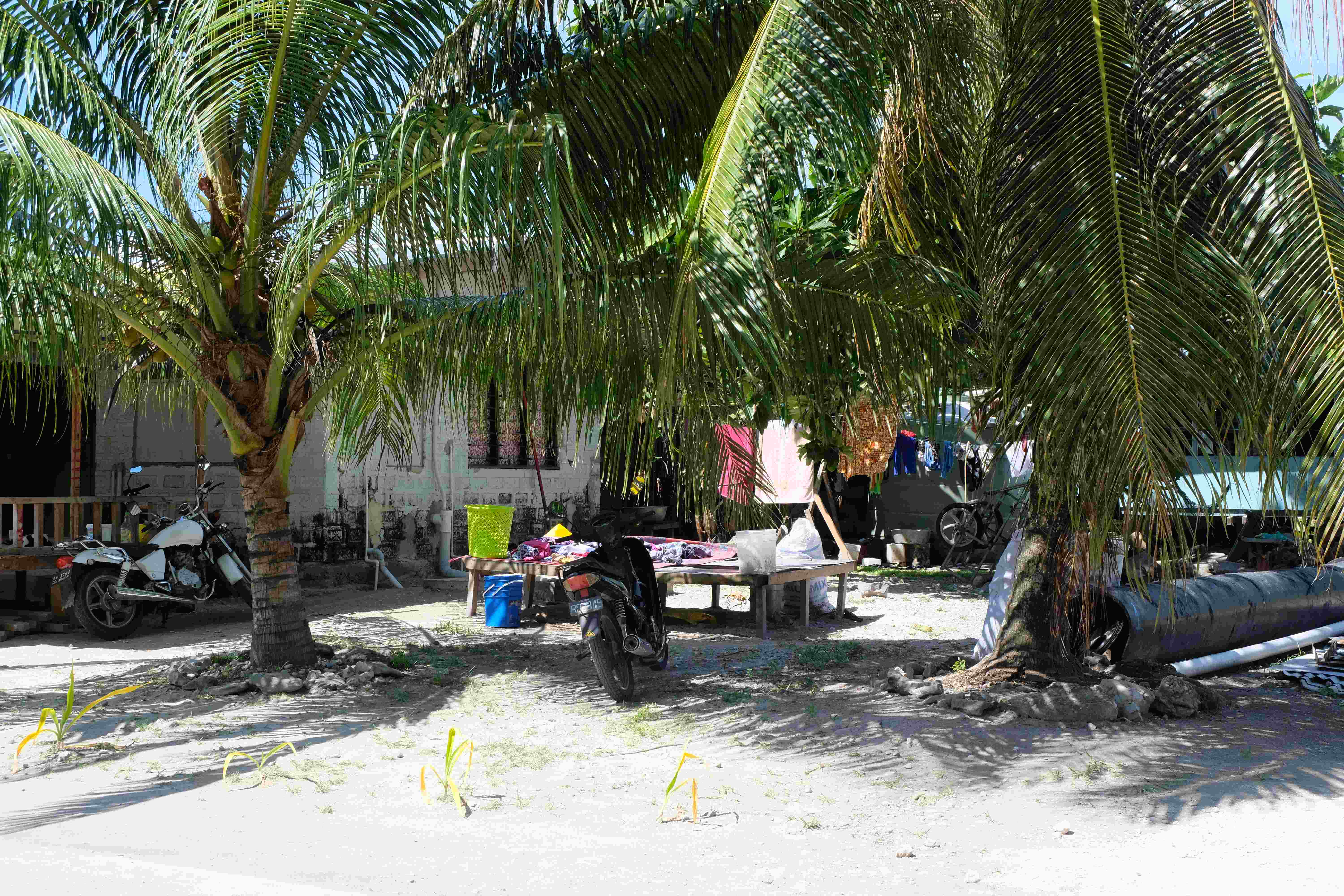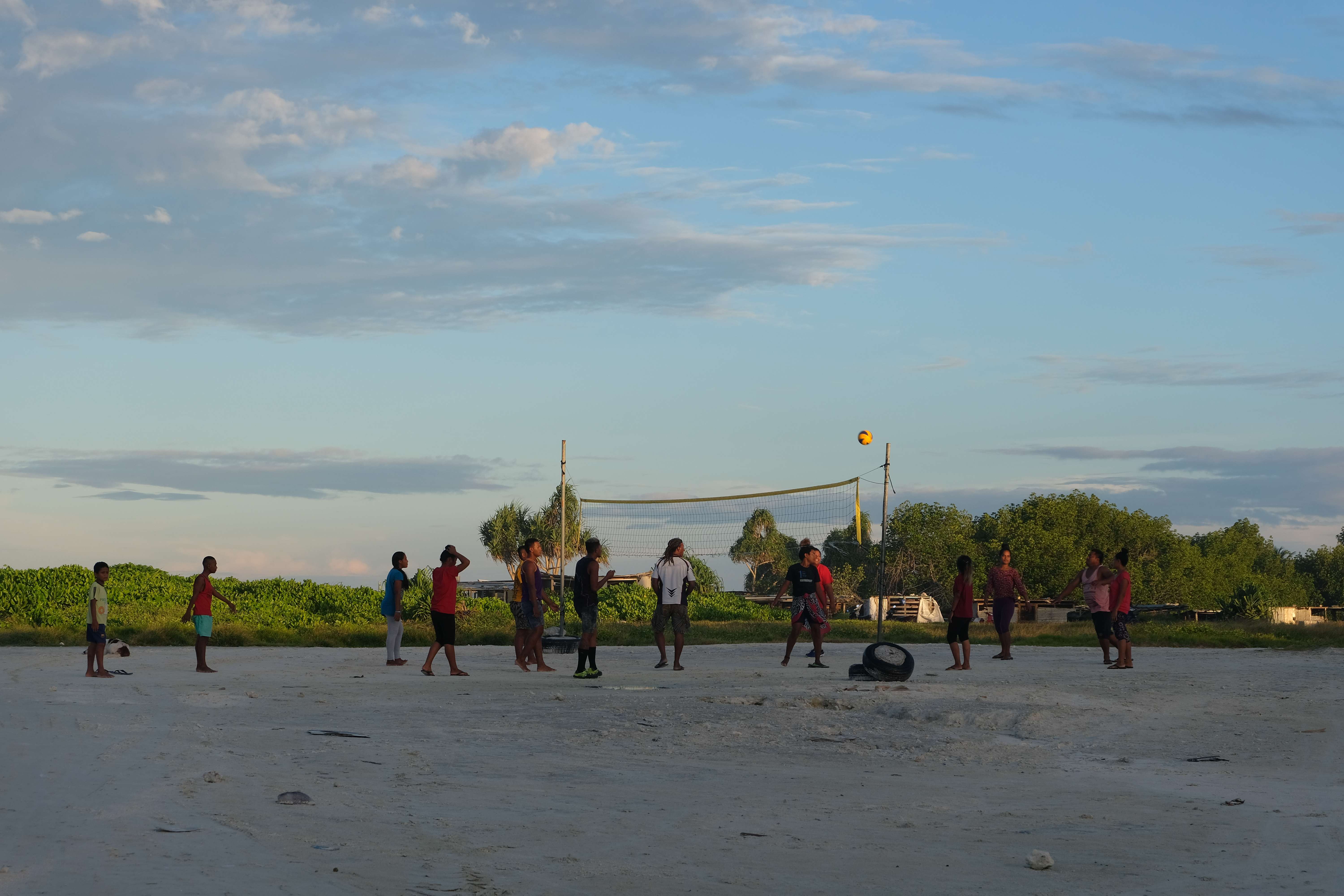 Der Versuch abzukühlen führte uns am Tag darauf ins Zentrum und den Rafi eigentlich auf konkrete Suche nach seiner neuen Liebe (ich wurde mittlerweile zu seiner alten deklassiert! :-)), nämlich frischem Kokosnusswasser. Dass wir dabei von einem einheimischen Journalisten aufgehalten wurden, welche uns interviewte und dies sogar mit einem Foto belegen wollte wird erst dann lustig zu erzählen, wenn wir in der tuvaluischen Lokalzeitung (welche er versprach uns via Email zuzusenden) verewigt werden! 🙂 Aber zurück zu unserer Alltagsbeschäftigung, der Kokosnusswasserjagd. Man stelle sich einen gierigen Rafi vor, welcher um sich herum lediglich kokosnussbeladene Palmen erblickte und bei mehreren Verkaufsständen und Lokalen solange danach fragte, bis ihm die beste Antwort aller Zeiten geliefert wurde: „Kokosnüsse werden hier nicht verkauft, Sie müssen jemanden bitten schnell rauf zu klettern und ihnen welche zu holen.“ 🙂 Spätestens wenn einem dies gesagt wird, realisiert man, wo man sich befindet! Wo sich jedoch die anderen – und damit ist die Mehrheit der sonst trotz der Hitze täglich fleissig arbeitenden Inselbevölkerung – nach 16 Uhr befanden, dies wussten wir nicht, bis wir der kühlen Brise und dem angenehmen Wind folgten und entlang der Landepiste/Autobahn/grösstem offenen Platz der Insel 90% der Bevölkerung antrafen. Während die jüngere Generation sich in zahlreichen Gruppen aufteilte und den Ballspielen widmete: Volleyball, Rugby, Fussball und weitere sportliche Betätigungen bildete die ältere Generation eher die – meistens auf den Motorrädern sitzende – Fankurve. Es war ein einmaliger Anblick und eine unglaubliche Entdeckung: man bog nur von der Strasse ab und man fand das ganze Dorf am Leben! Während es in den Metropolen der Welt an Zeit, Lust oder schlichtweg Lebensfreude fehlt sich zu versammeln, schaffte es die Bevölkerung einer knapp 12 km langen und an ihrer breitesten Stelle vermutlich höchstens 400 m breiten Insel das Leben viel stärker und krasser zu zelebrieren als manch andere hochentwickelte Gesellschaften! Wow ist vermutlich der beste Ausdruck dafür!