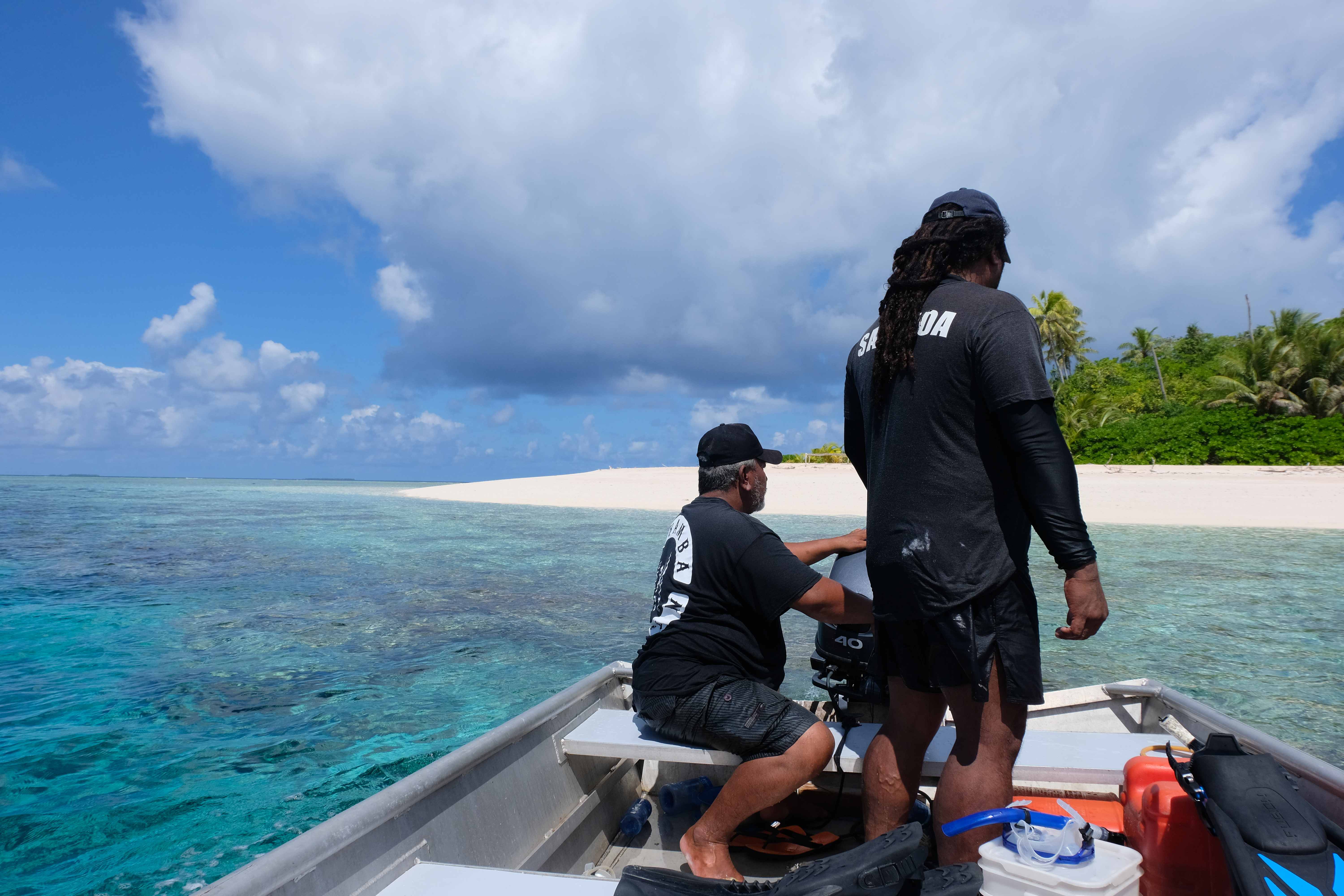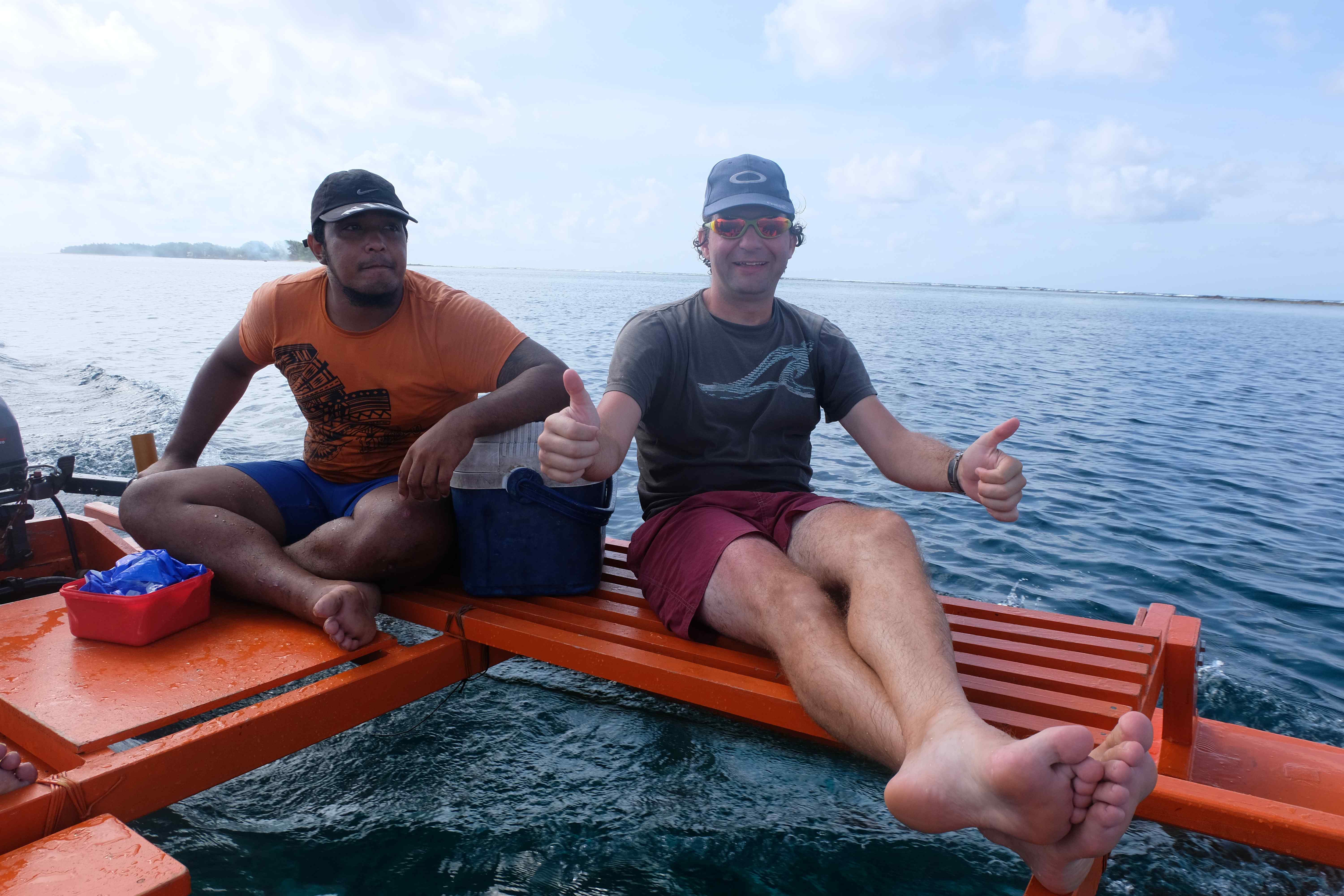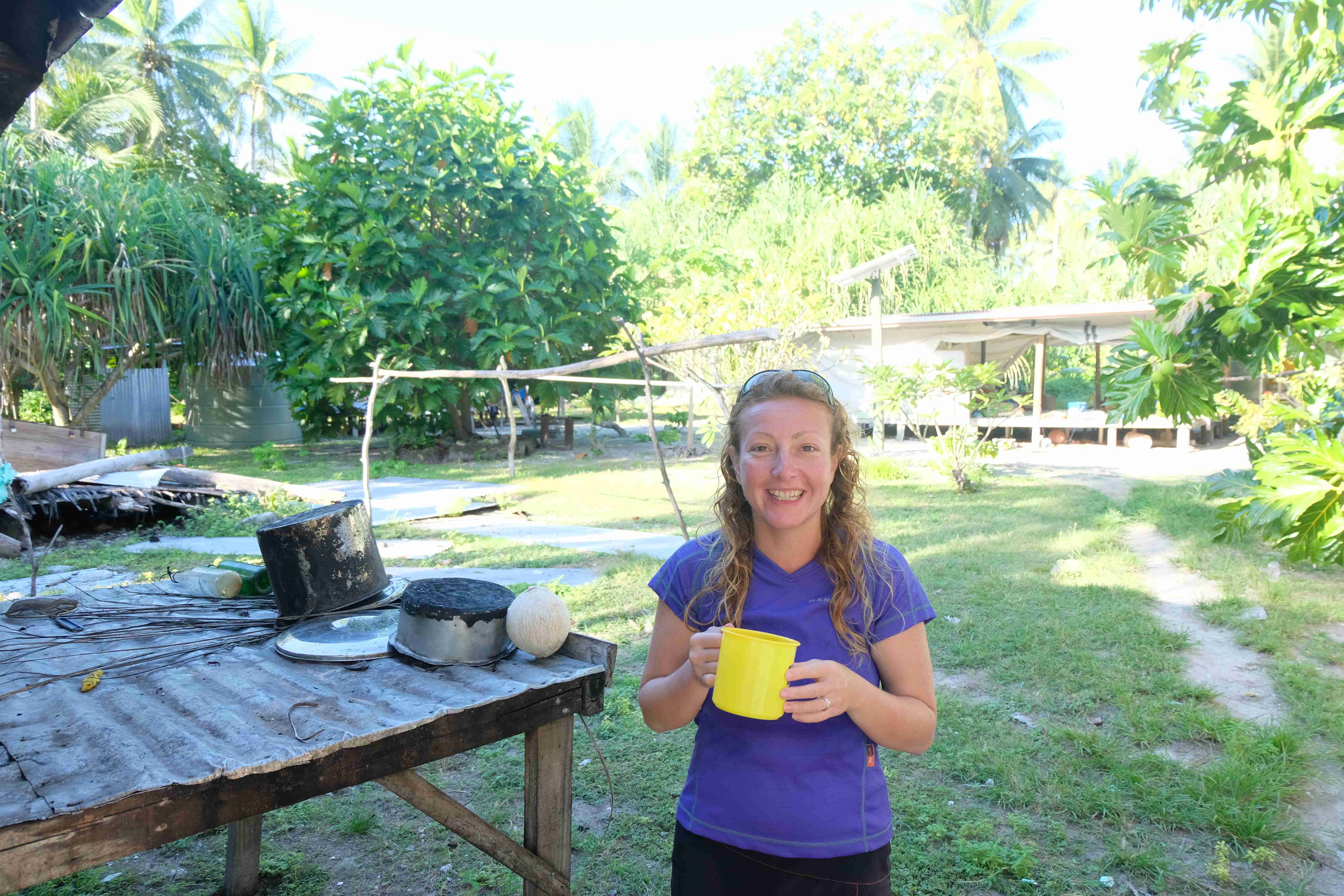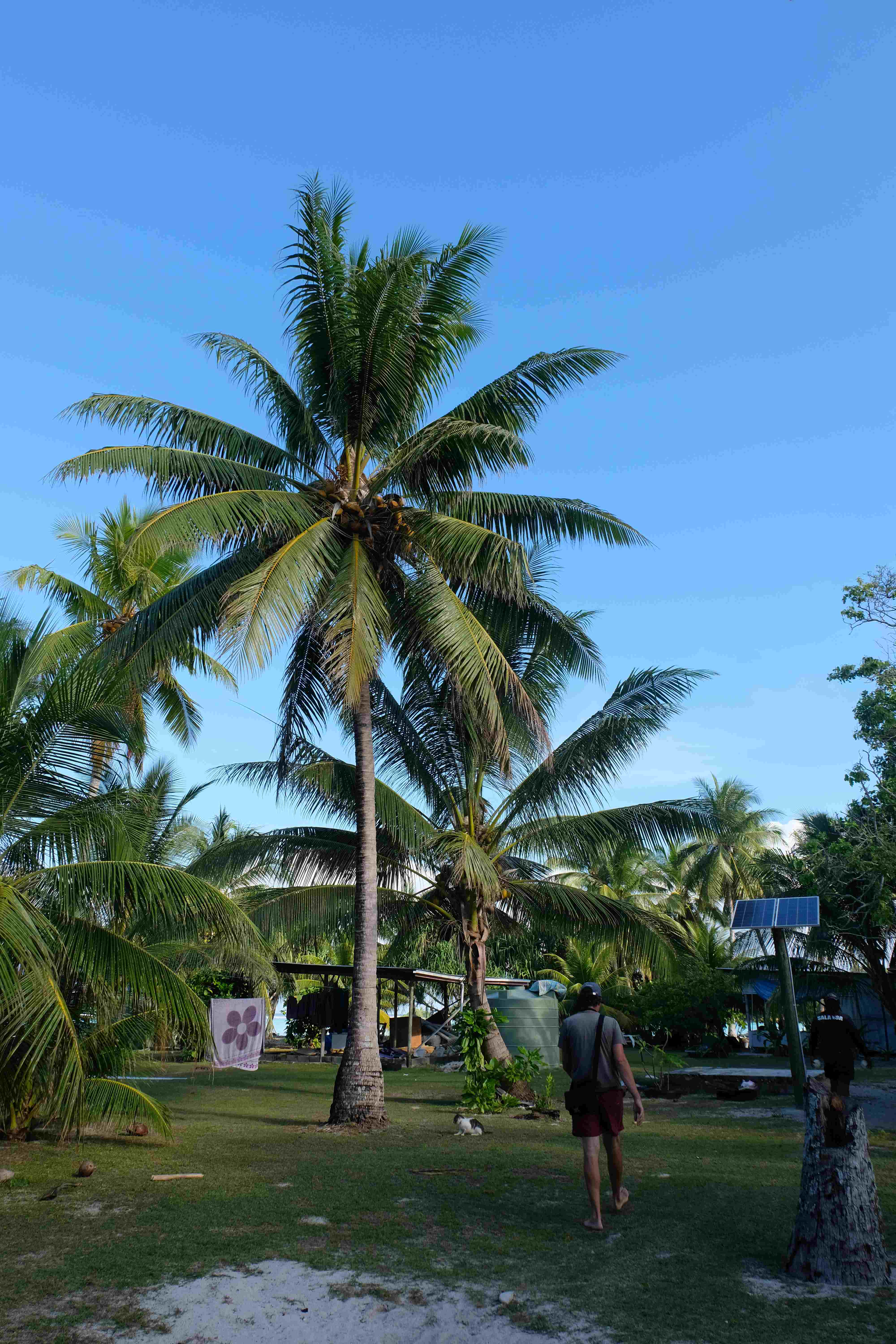 Nicht nur unglaubliche Taucherfahrungen und gratis Kokosnuss-Lieferdienst erhielten wir von unseren zwei Tour Leitern, sondern auch nützliche Ratschläge bezüglich ihrer Nachbarn: während wir uns vor den „Fijians“ und den „Kirbats“ in Acht nehmen sollten, da sie keine guten Menschen waren, sollten Staaten wie Samoa oder Tonga kein Problem darstellen. Ihre Beschützer-Rolle verwandelte sich langsam in ein Freundschaftsangebot, welches sie unbedingt mit einem Geschenk markieren wollten. Erinnert ihr euch an den Red Toddy, den gekochten Palmensaft? Nun ja, wir sollten eine Flasche davon von ihnen erhalten. Allerdings teilten sie uns sehr seriös mit, dass wir ein offizielles Papier bräuchten, um diese bis in die Schweiz zu transportieren – nämlich eine Bestätigung von dem Landwirtschaftsministeriums Tuvalus für allfällige Zollkontrollen, dass wir berechtigt sind, dies mitzuführen. 🙂