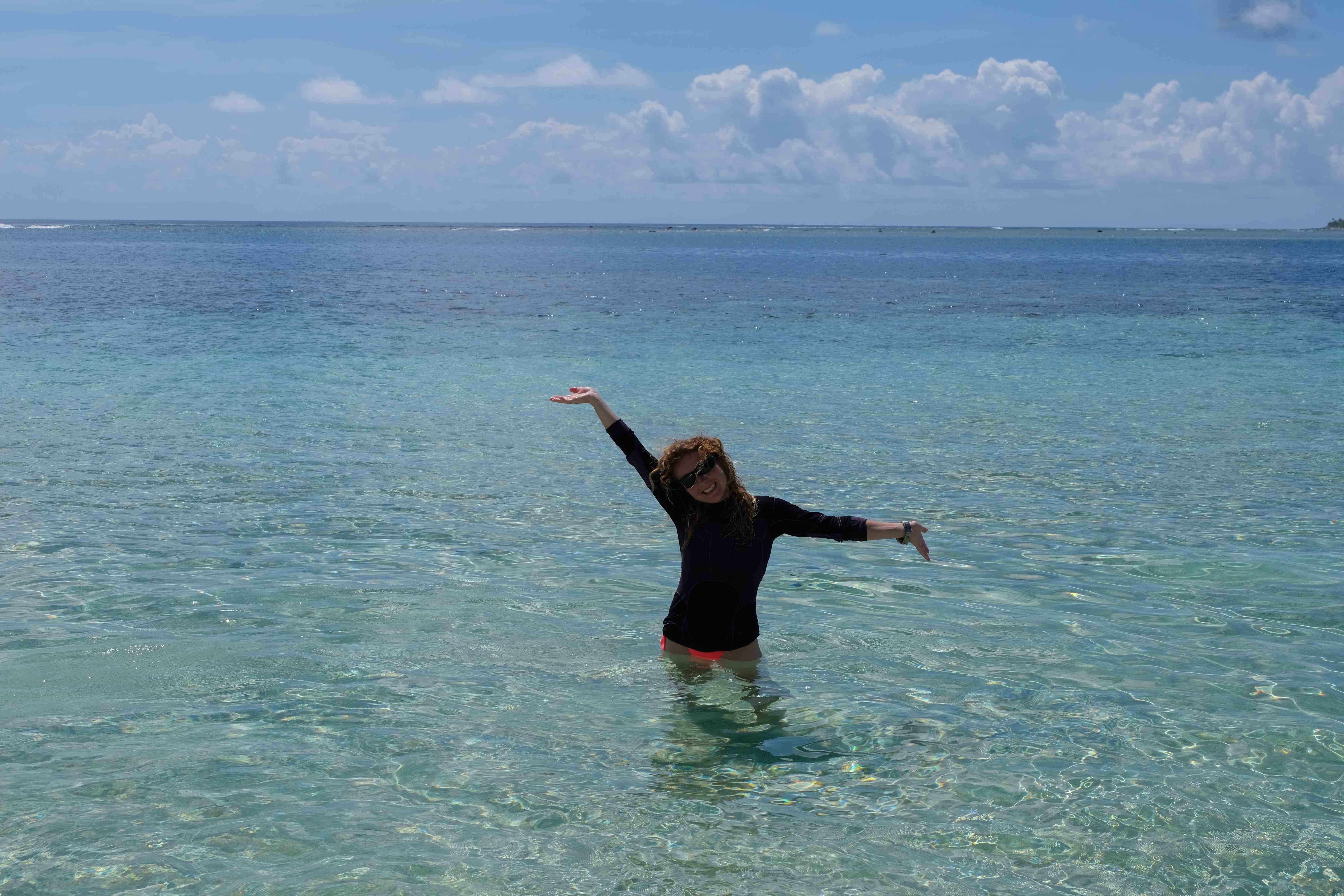 Auf die vielen ersten Eindrücke folgte ein relativ ruhiges und entspannendes Wochenende: ein Flugzeug war gelandet, die Handarbeit-Verkäuferinnen liessen sich blicken, die eine Hälfte der Insel schrie danach erkundet zu werden und das kristallklare Wasser, dem die Fotos nicht wirklich gerecht werden, lud zum Baden ein.