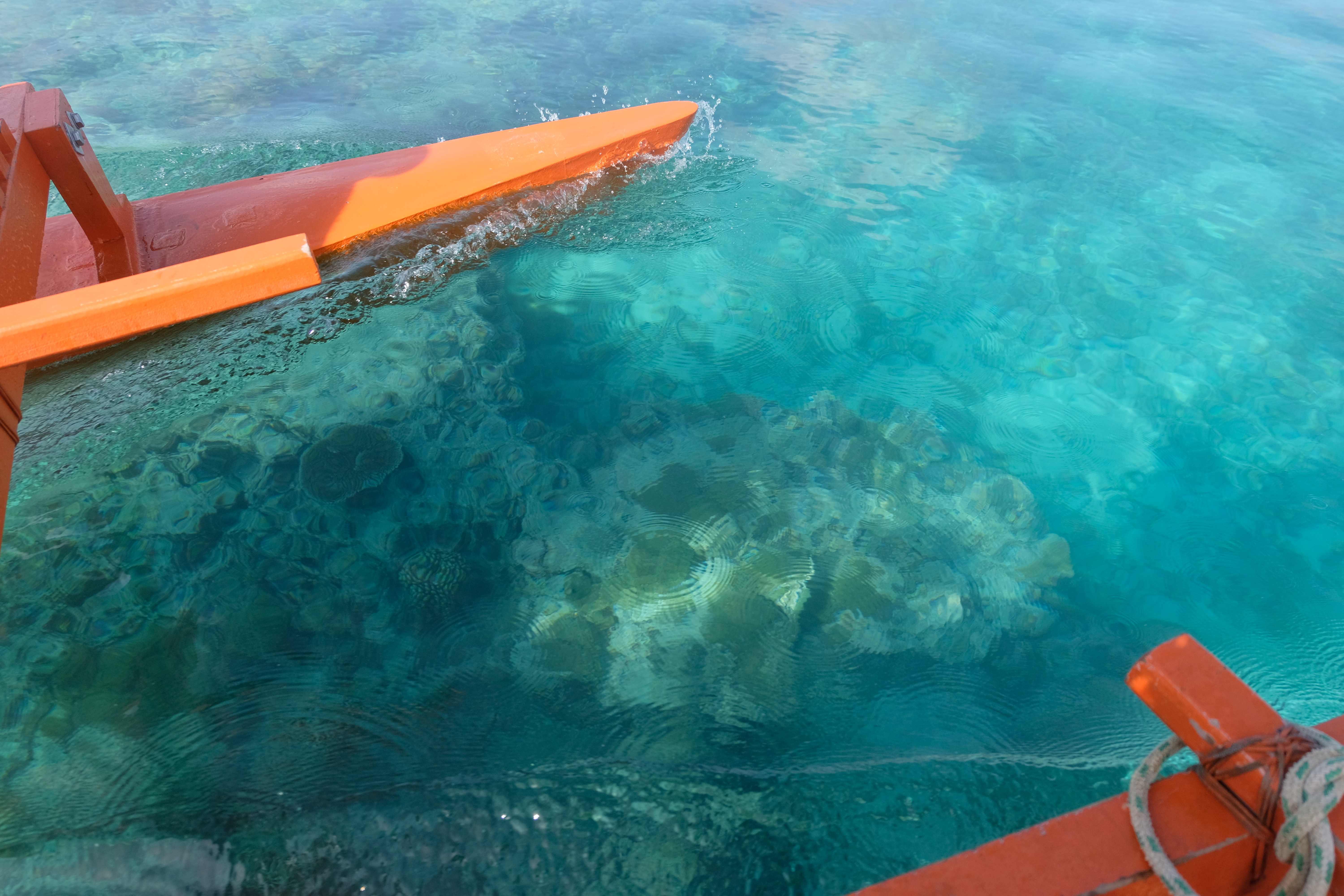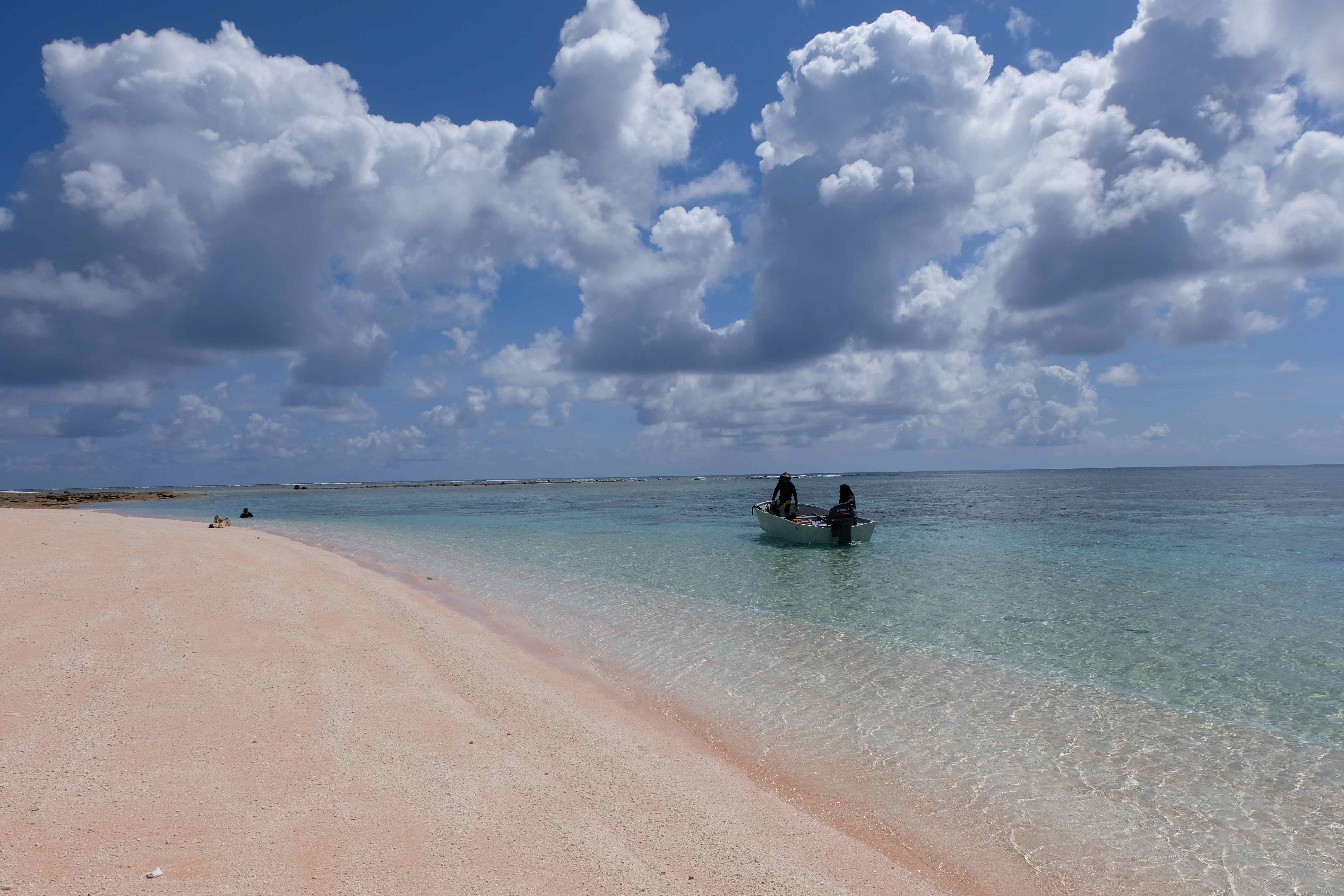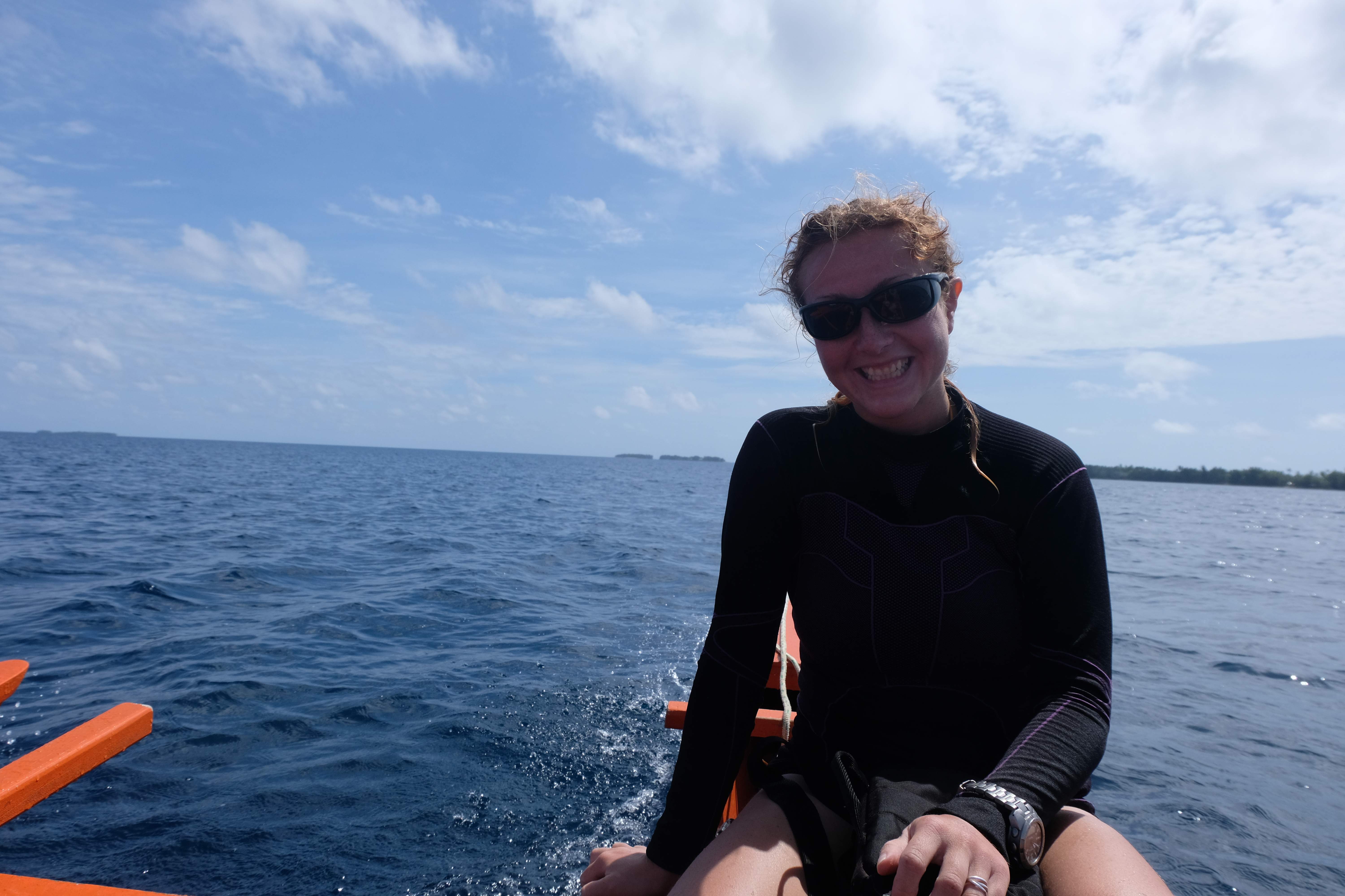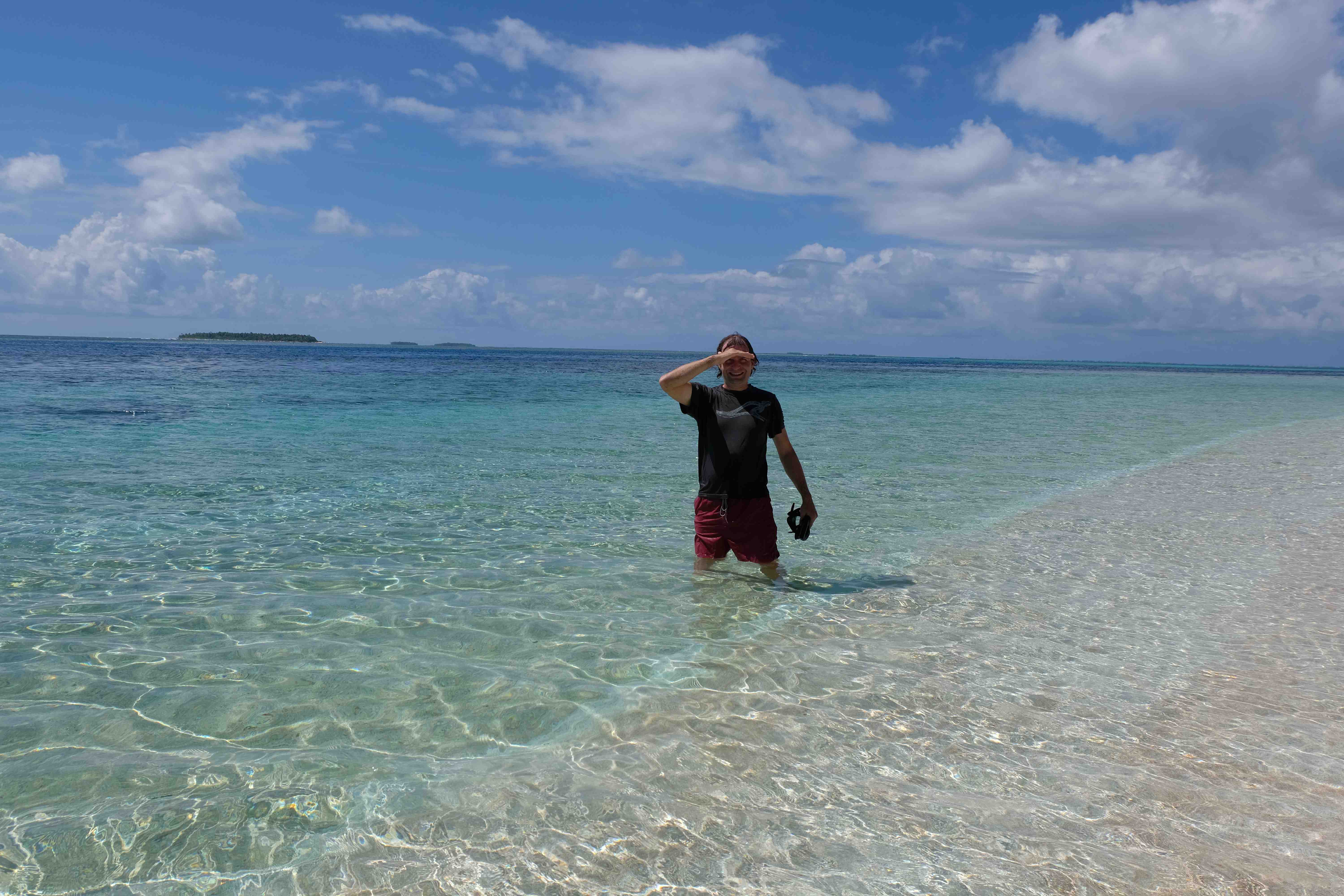 So viel Pause ohne jegliches Hin- und Her wäre doch langweilig! Etwa nach dem 5. Fisheries-Besuch um die Tauchausrüstung zu organisieren und andere unvorhersehbare sich in letzter Sekunde ergebene Probleme zu lösen wurden wir hier Stammgäste, welche sogar den Personaleingang benutzen durften. 🙂 Nach einem weiteren Spitalbesuch zwecks Verlagerung meines Ohrwohnsitzes von der Höhle zurück in die normale Welt wurde ich beim Empfang bereits namentlich begrüsst und willkommen geheissen. 🙂 Und nach einem letzten organisatorischen Halt beim Gemeindehaus um mit meinem spontan eingesprungenen Tauchpartner seinen Tagessatz zu verhandeln ging es endlich los: wir stiegen ins Boot ein und machten uns auf den Weg in die Conservation Area. Unbewohnte Inseln und Wasser, welchem kein Maler mit seinen einzigartigen Nuancenmischungen und kein Dichter mit seinen durchdachten Farbenbeschreibungen gerecht werden können, bildeten zusammen eine paradiesische Welt, die wir vermutlich vergebens versuchten mittels einiger Bilder festzuhalten. Was wir dabei jedoch sicherlich schafften, war unser Zoom-Objektiv zu verabschieden. Dieses verliebte sich dermassen in die hiesige Farbenpracht, dass es entschied für ewig hier zu ruhen und – dem Beispiel seiner älteren Schwester, unserer kaputten Kamera folgend – sich vom Salzwasser verführen zu lassen. Kurz zusammengefasst: während ihr durch folgende Fotos stöbert und einen Eindruck von unserem 5-Sterne Tag erhaltet, organisieren wir die Trauerfeier für unser verstorbenes Objektiv. 🙂 Ach, ist das nicht spannend: jede zweite Woche ein teures Spielzeug kaputt zu machen!? 🙂 Onassis sollten wir heissen! Irgendjemand mit dem Nachnamen adoptionswillig?