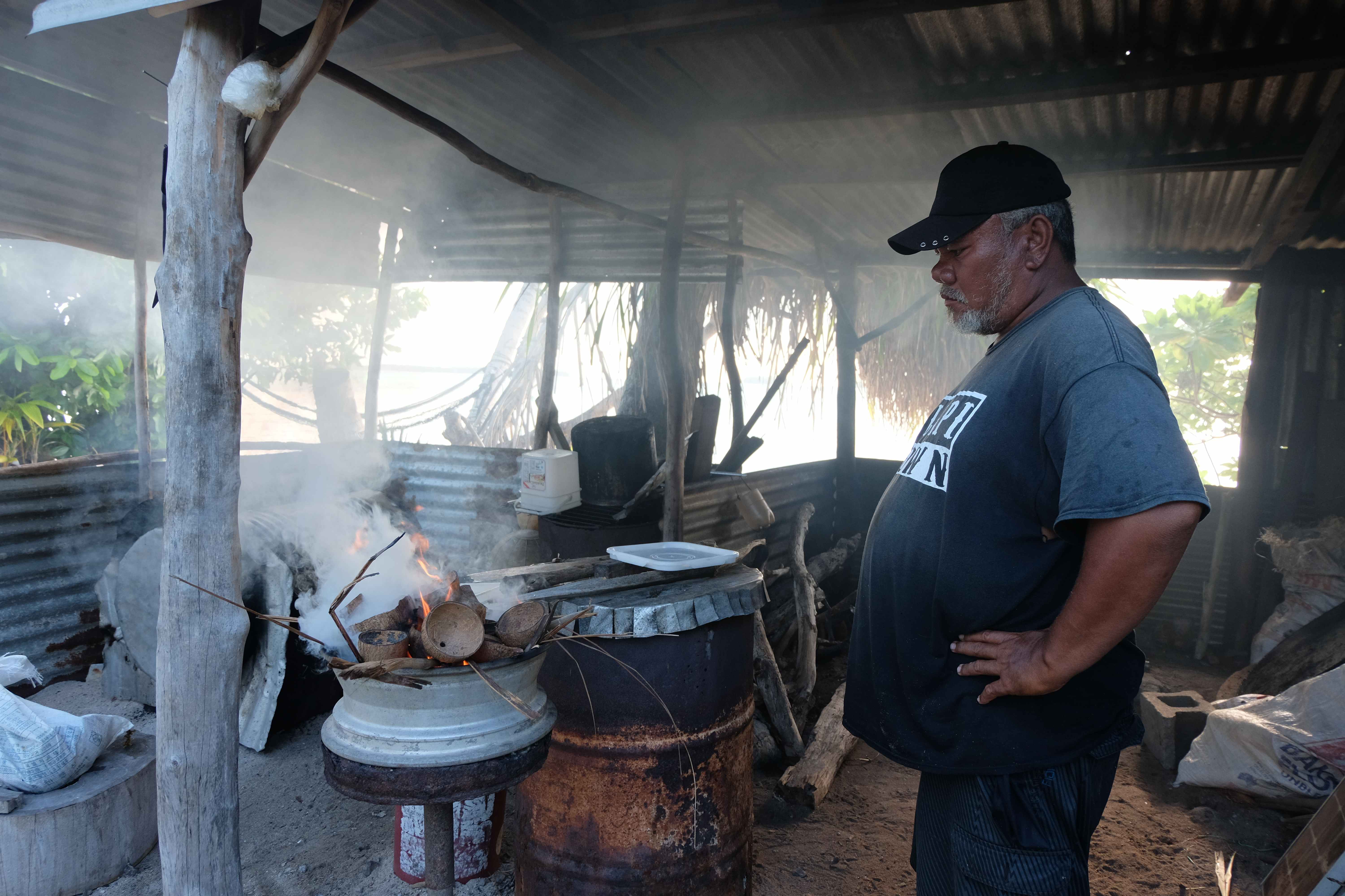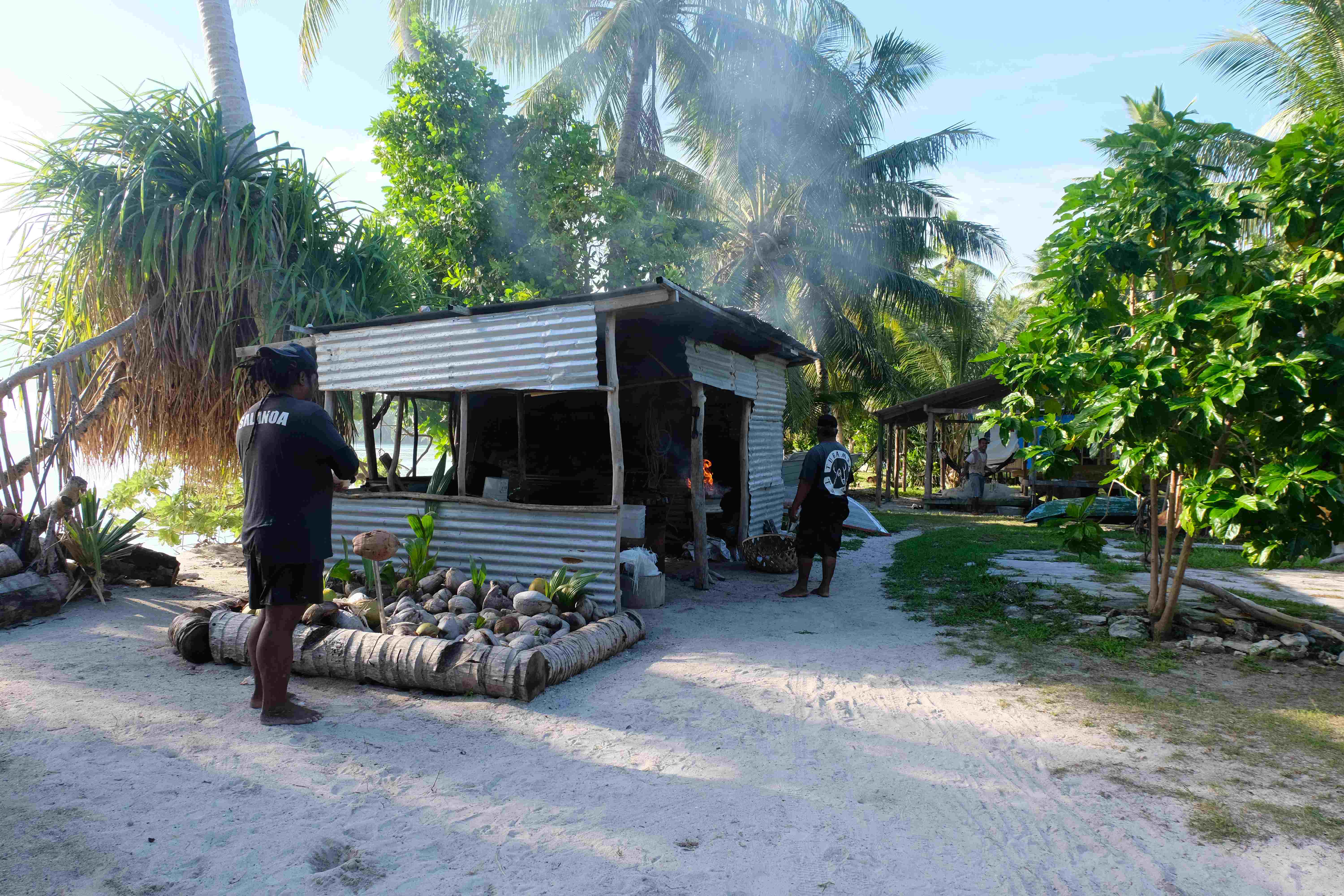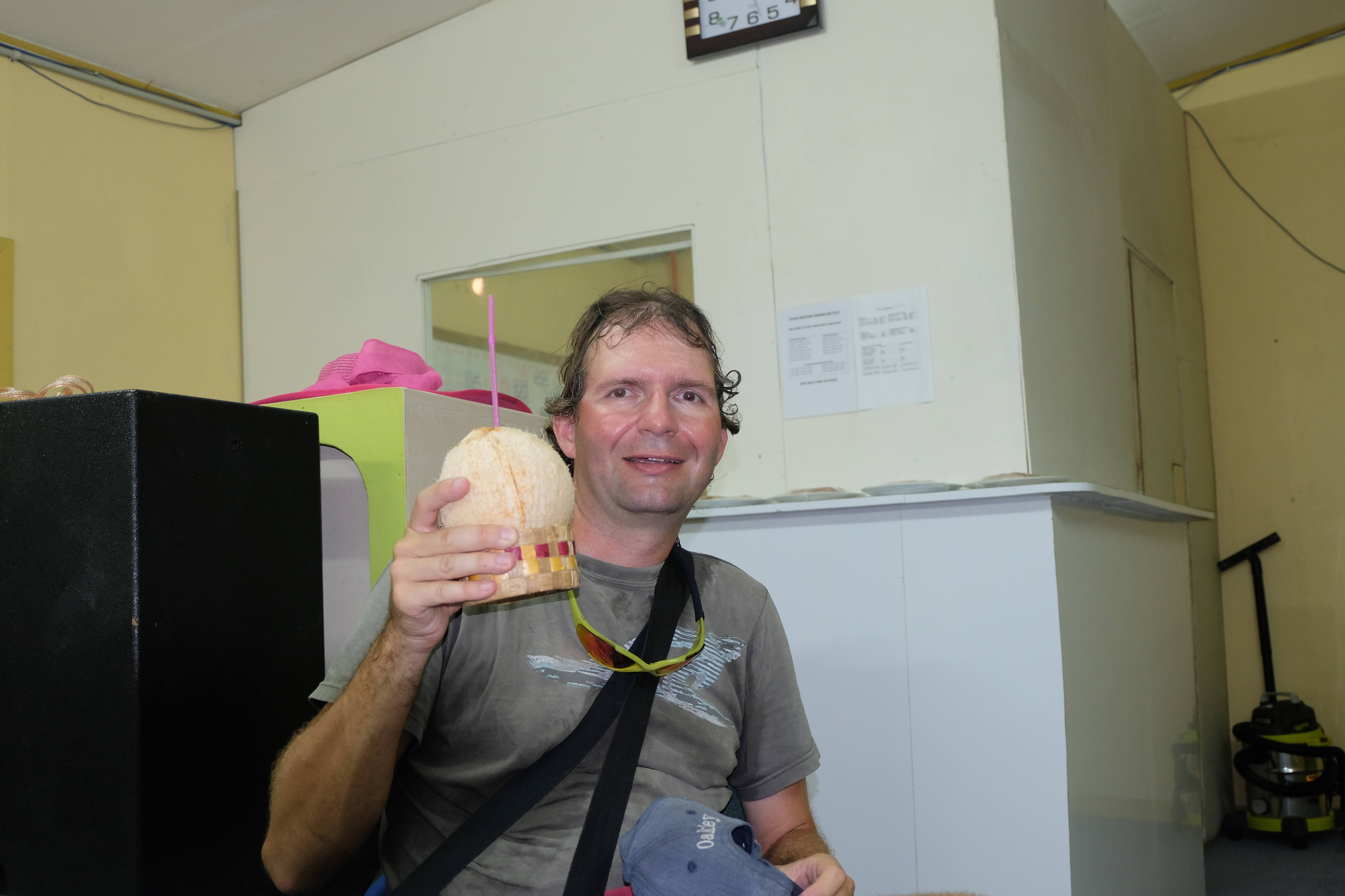 Cei doi ghizi pe care i-am avut in penultima zi nu ne-au cadorisit doar cu experiente subacvatice unice si servicii de livrare de nuci la domiciliu, ci au tinut sa ne dea si niste sfaturi in ceea ce-I priveste pe vecinii lor: in timp ce de „fijians“ si de „kirbats“ trebuie sa ne ferim, acestia nefiind oameni cinstiti ci mai degraba periculosi, vecinii din Samoa si Tonga nu presupun nici un risc pentru turisti. In cele din urma de la rolul de protectori au trecut mai mult la o oferta de prietenie, pe care au tinut cu tot dinadinsul sa o marcheze zu un cadou. Mai tineti minte acel red toddy, siropul fiert din suc de palmier? Ei bine, au vrut neaparat sa ne faca cadou o sticla, insa nu inainte de a ne aduce la cunostiinta pe un ton foarte serios, ca pentru a trece diferite granite cu acel produs avem nevoie de un certificat de la Ministerul Agriculturii care sa ne garanteze libera trecere pana in Elvetia. 🙂