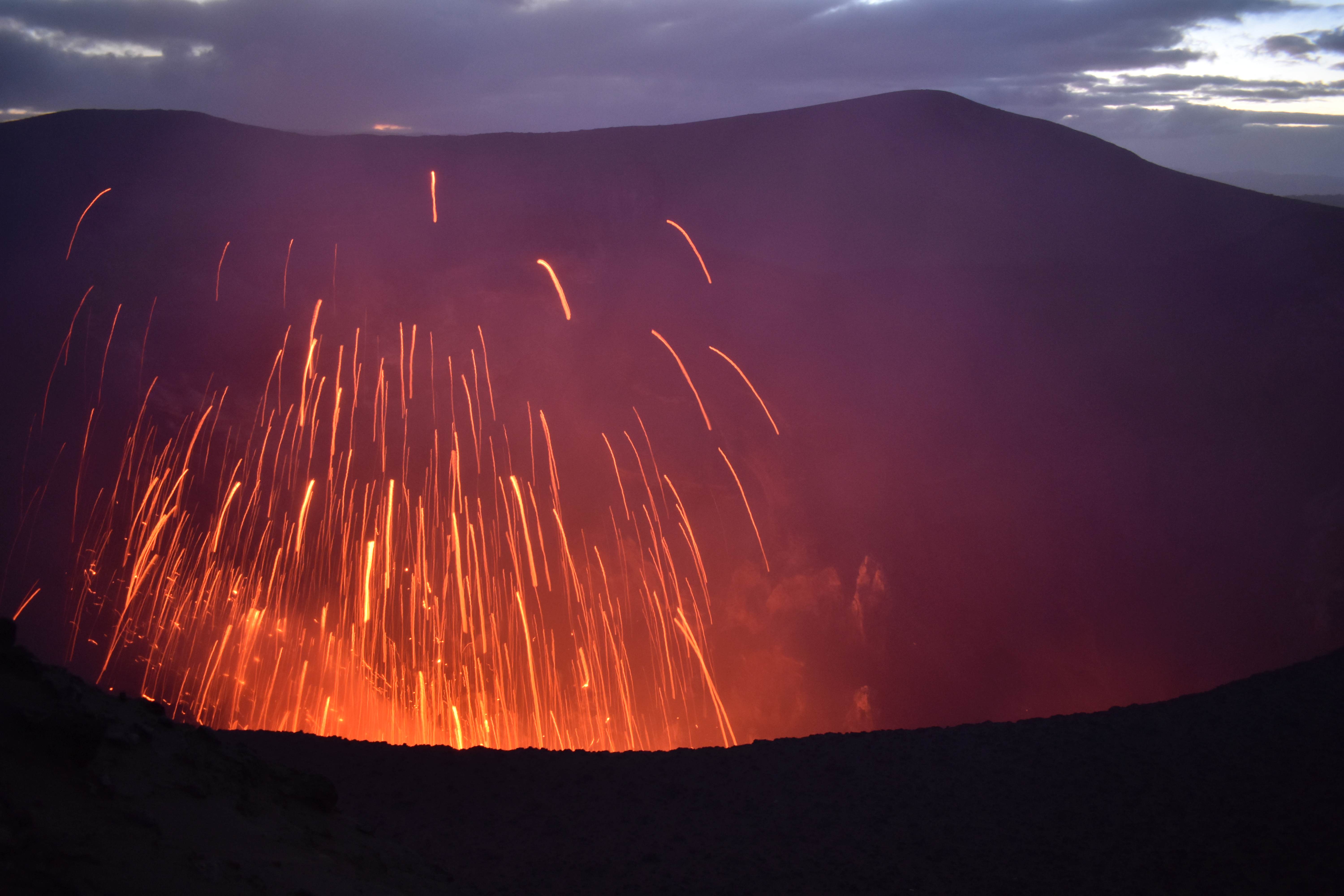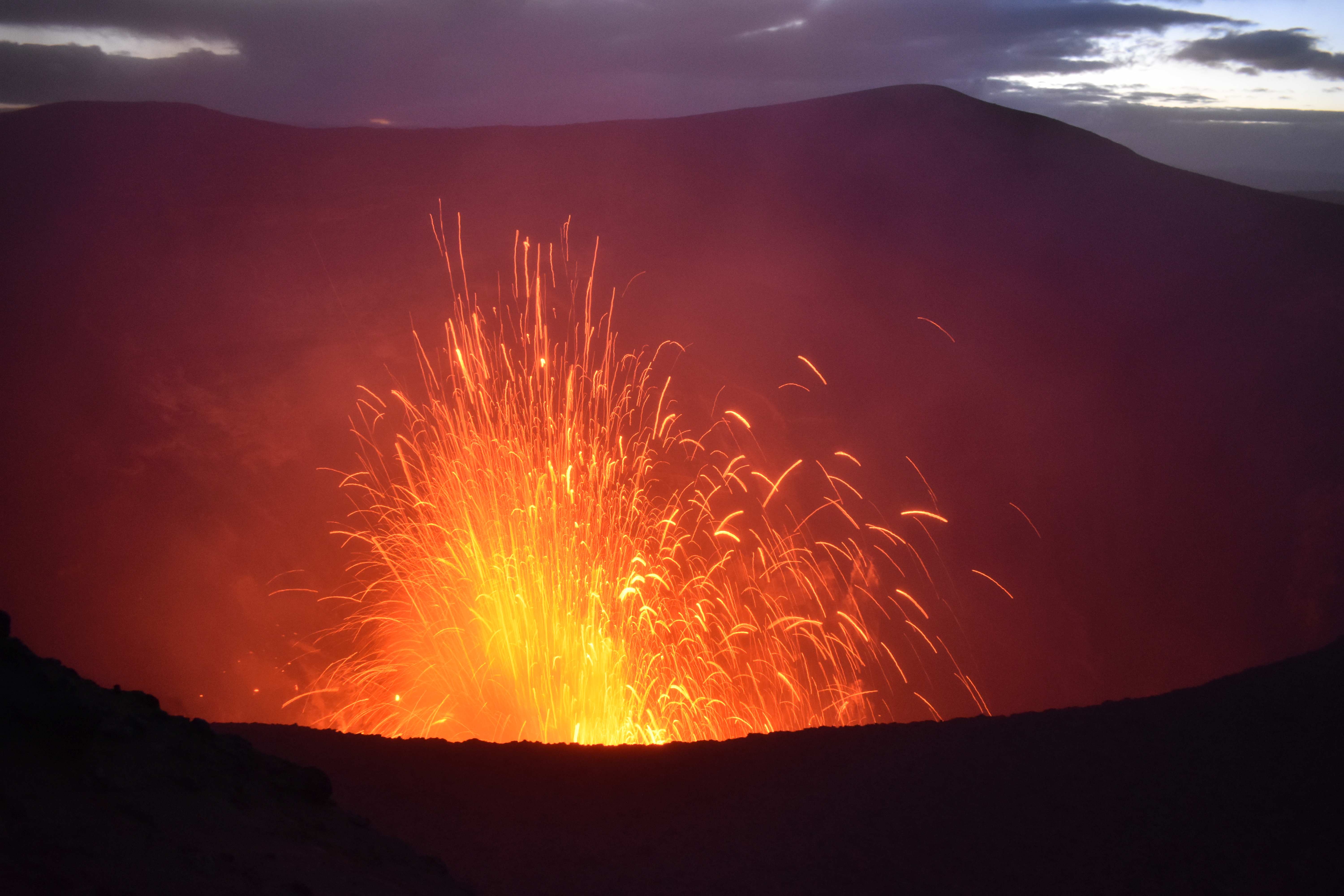 Schon mal auf einer Insel mit einem Vulkan gewesen? Ja, wir auch! Schon mal am Krater des Vulkanes gestanden und diesen aus der Nähe betrachtet? Ja, wir auch! Schon mal Vulkanasche in der Luft schweben gesehen? Ja, wir auch! Schon einen Vulkan Rauch herausspucken erlebt? Ja, wir auch! Hmmm… mal schauen ob wir da etwas Abwechslung reinbringen können! Schon mal einen Vulkan zittern, beben und wie aus einem Kochtopf unter Druck donnern und dröhnen erlebt? Nein, wir auch nicht! Schon mal neben der Asche auch feuerwerkartige Glutfontänen aus dem Vulkan herausragen gesehen? Nein, wir auch nicht! Schon mal diese in der Nacht, am Kraterrand des hoch aktiven Vulkanes stehend bewundert? Nein, wir auch nicht! Also was soll’s… tönt überteuert aber einmalig! Klingt nach einem Fall für das Spezialteam „Rafi und Ina unterwegs!“ 🙂