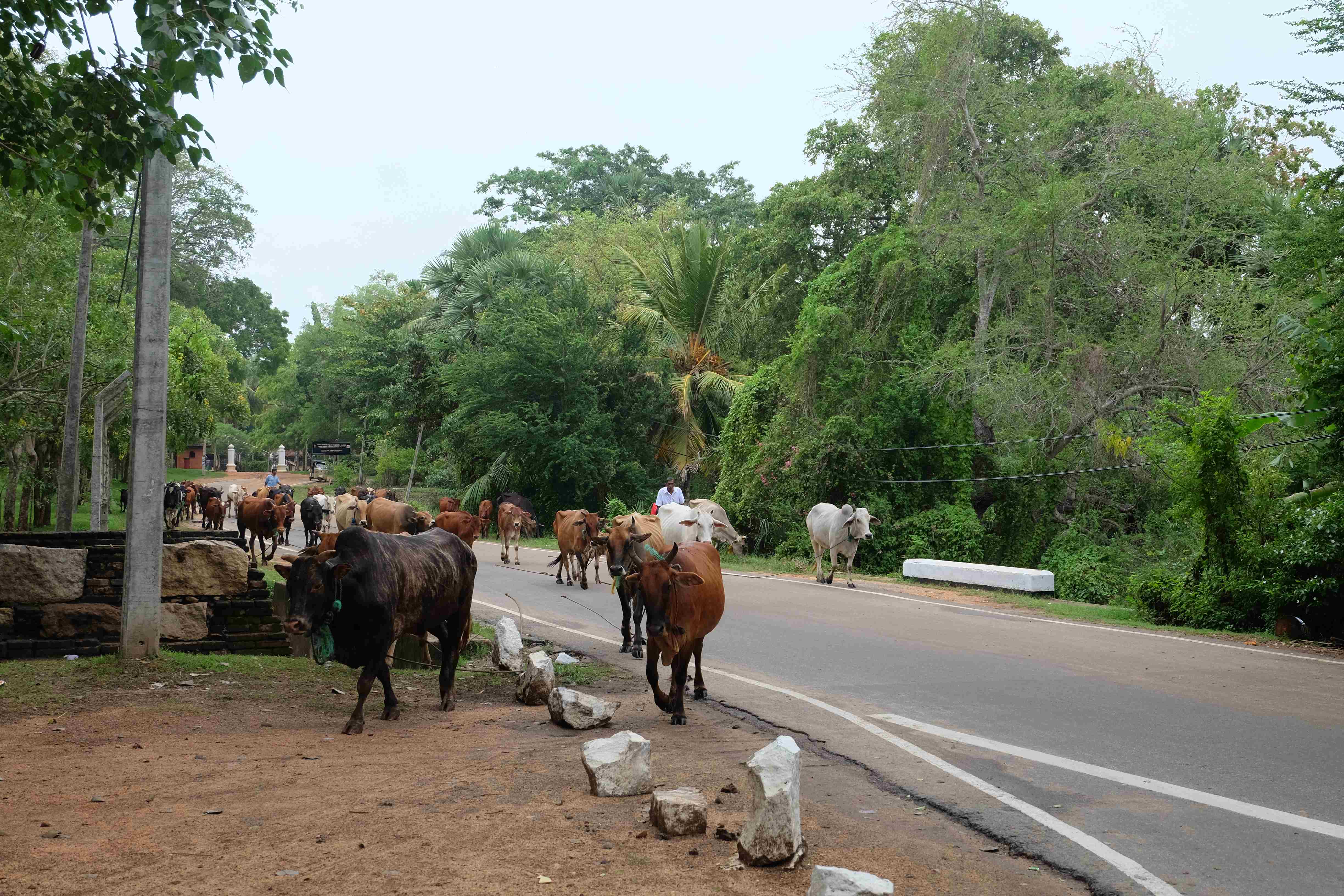 Nach Anuradhapura wären wir eigentlich gar nicht gegangen, hätten uns einige Leute hier nicht davon geschwärmt, wie alt und sehenswürdig das sei. Falsch! Der einzige Pluspunkt von Anuradhapura ist, dass sie das Tor zum Wilpattu Nationalpark ist. Abgesehen davon hat man nichts verpasst, wenn man die Stadt nicht gesehen hat. Eigentlich sollte es sich dabei um eine sehr alte Siedlung handeln, ehemalige Königsresidenz und Hauptstadt Sri Lankas, voller alten Ruinen und Tempelanlagen. Diesem Ruf wird die Stadt aber keinesfalls gerecht. Die Realität sieht ganz anders aus: Abfallberge neben den heiligen Stätten, kaputte Bauten überall, die Stadt sieht eher wie nach einem Krieg aus, als wäre alles abreissbereit und alteisen-würdig. Dieses Problem haben eigentlich (leider) viele Städte in Sri Lanka: Gebäude, die mal schön waren, aber an denen nichts erneuert wurde und somit dem Verfall ausgesetzt sind, Dreckberge, die nicht wirklich verschwinden, weil die Mehrheit der Bevölkerung noch keine Abfallentsorgungsmentalität hat und alles einfach auf die Strasse oder aus dem Bus heraus schmeisst. Der Verkehr trägt auch nicht zu einem besseren Bild hiesiger Orte bei: lauter Verkehrsteilnehmer, die die Regel nicht befolgen, Chaos auf den Strassen, Busse die nicht losfahren bevor sie nicht vor lauter Passagiere aus allen Nähten platzen, usw. Bisher bereits viele solche Orte hier gesehen, aber Anuradhapura ekelte uns wirklich an. Die landesweit gepriesenen vielen antiken Sehenswürdigkeiten dort sind fast unsichtbar oder erblassen im Schatten der viel offensichtlicheren schlechten Sachen, die einem hier gerade ins Auge stechen. Unsere Fotografier-Lust hielt sich da in Grenzen: