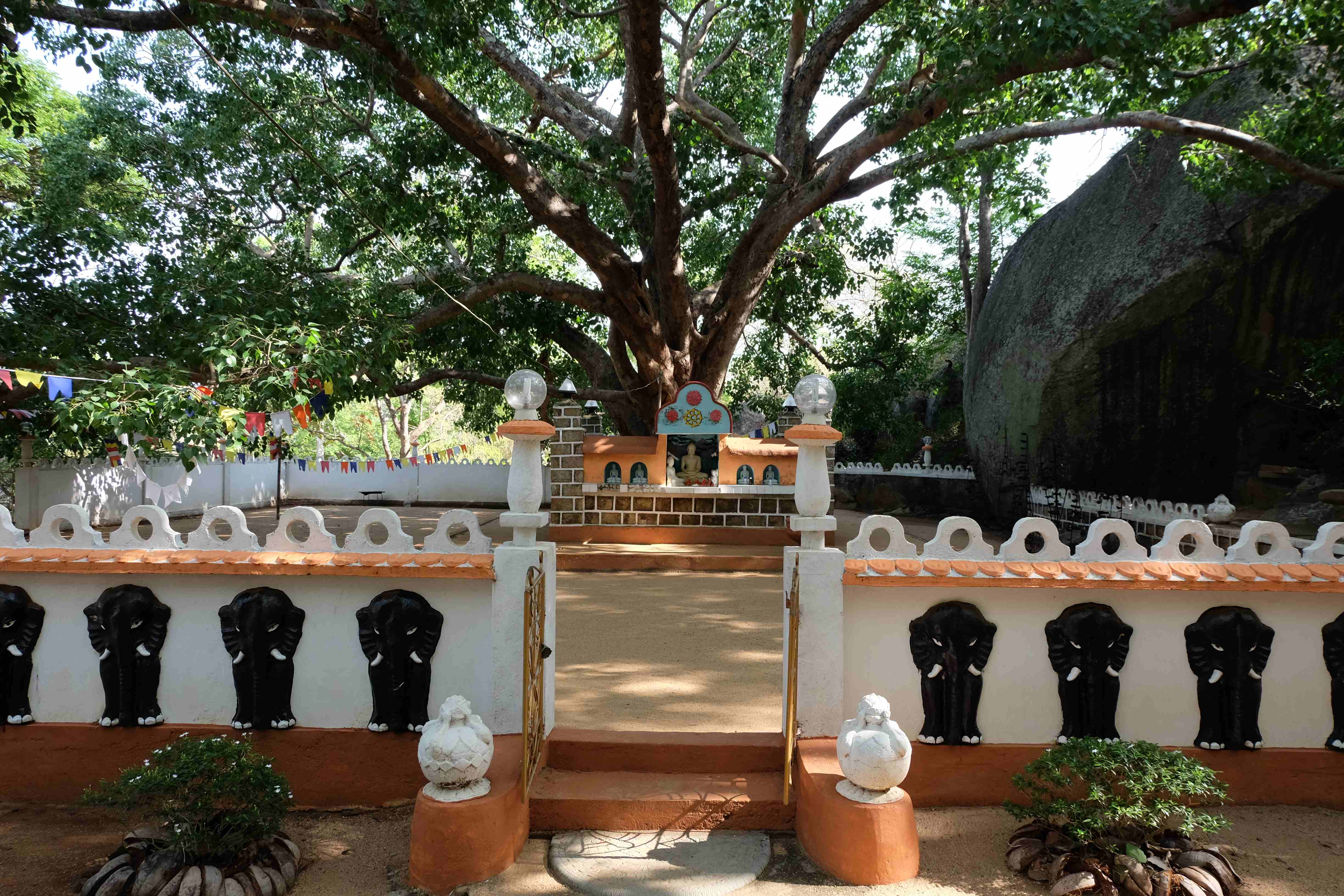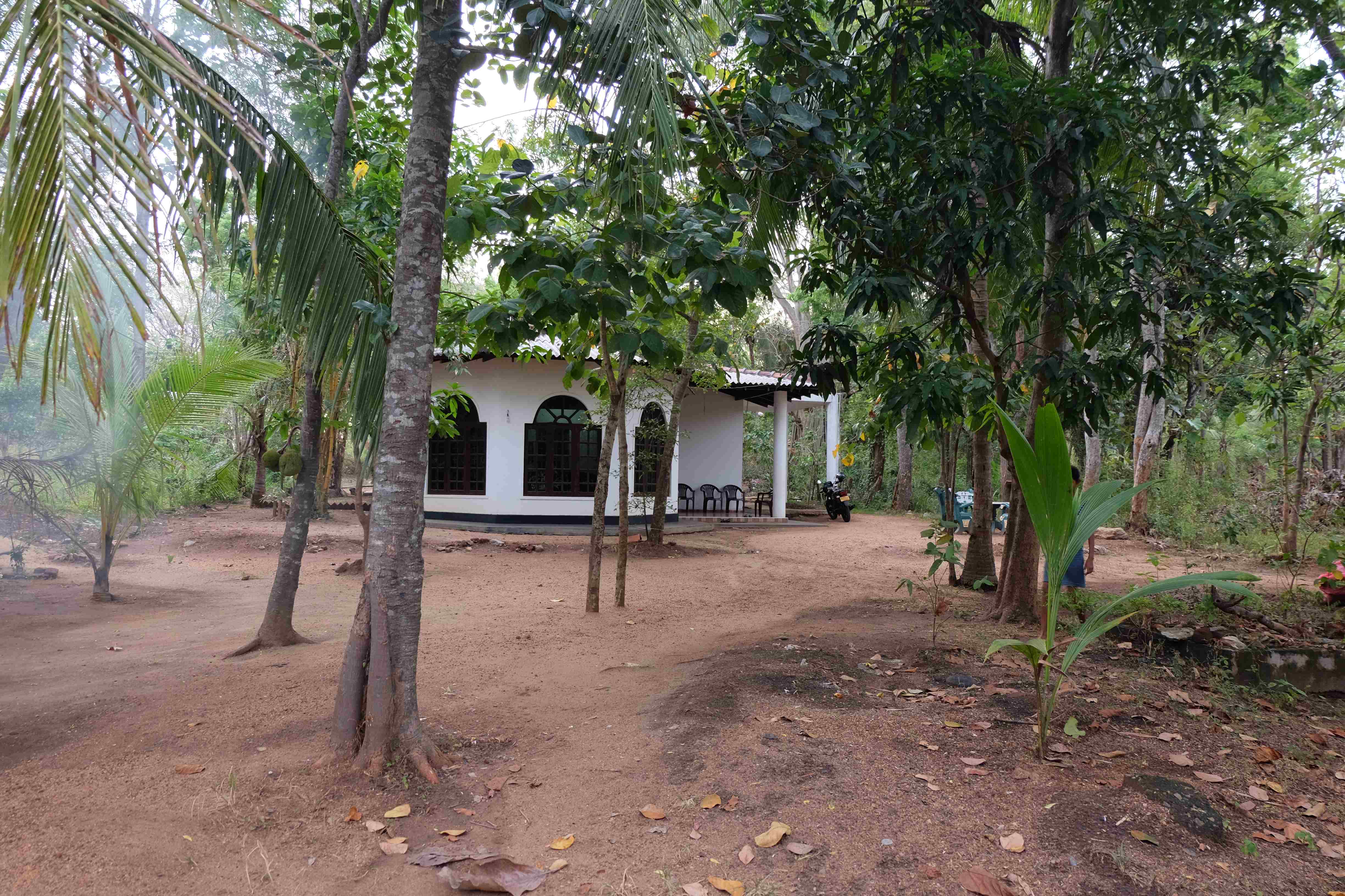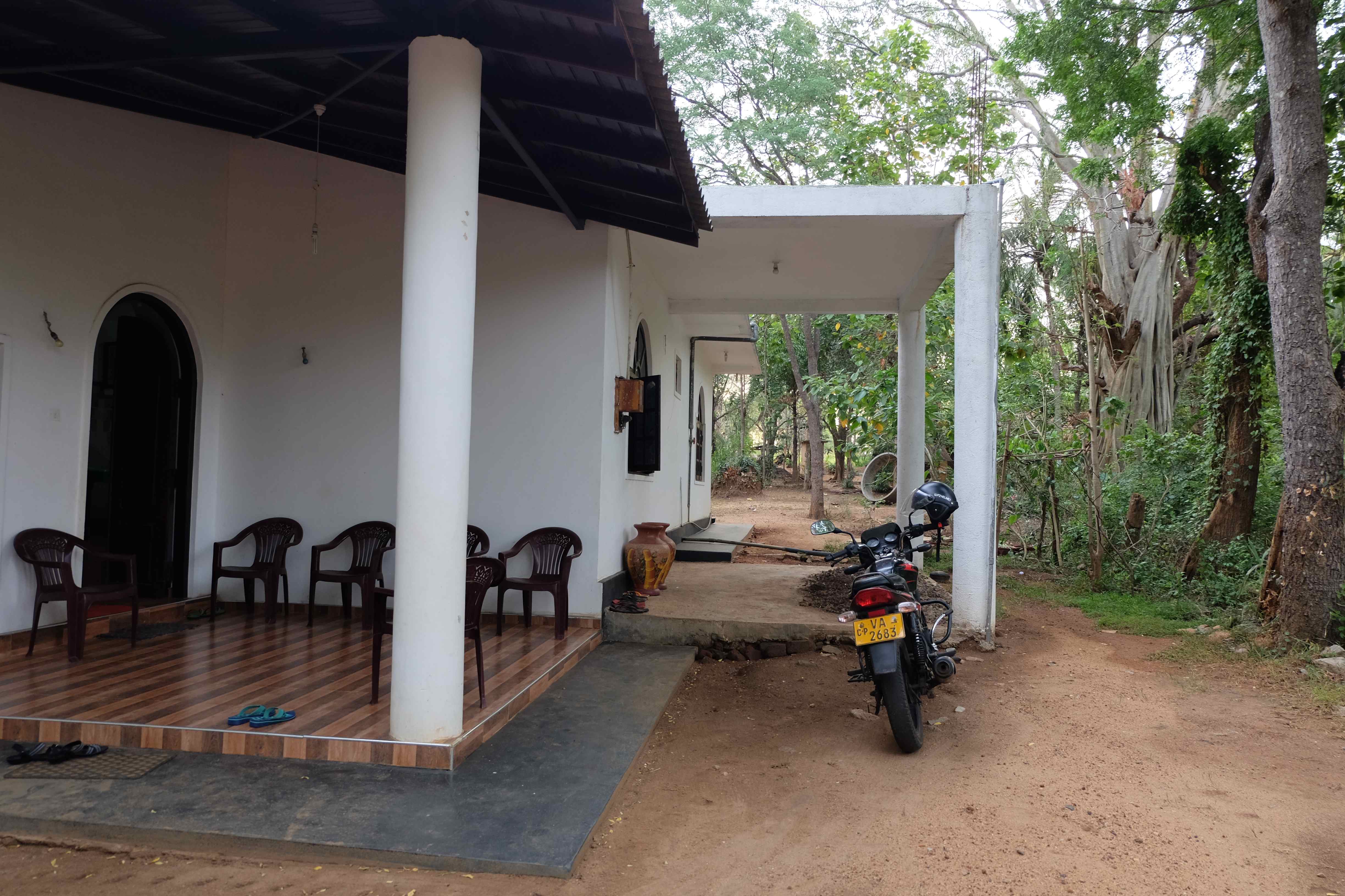 Kurz vor Sigiriya wurden wir von unserem Gastgeber in Empfang genommen, der in einem kleinen Paradies mitten in diesem Dschungel wohnte. Ich war hin und weg… einfach herrlich die Landschaft, das Haus! Und wir hatten wieder mal Glück mit einem sehr netten Gastgeber, dessen Mutter für uns ein leckeres Abendessen kochte und der sich bemühte uns mit dem Organisieren der touristischen Aktivitäten für den darauffolgenden Tag zu helfen und somit tiefere Preise zu ermöglichen. Sogar frei hatte er genommen, damit er uns überall begleiten konnte. Müde von der Reise und bereichert von so vielen neuen Eindrücken gingen wir nach einem kurzen Dorfrundgang und dem Besuch des dortigen Buddha-Tempels voller Vorfreude schlafen. Hier einige Eindrücke:
