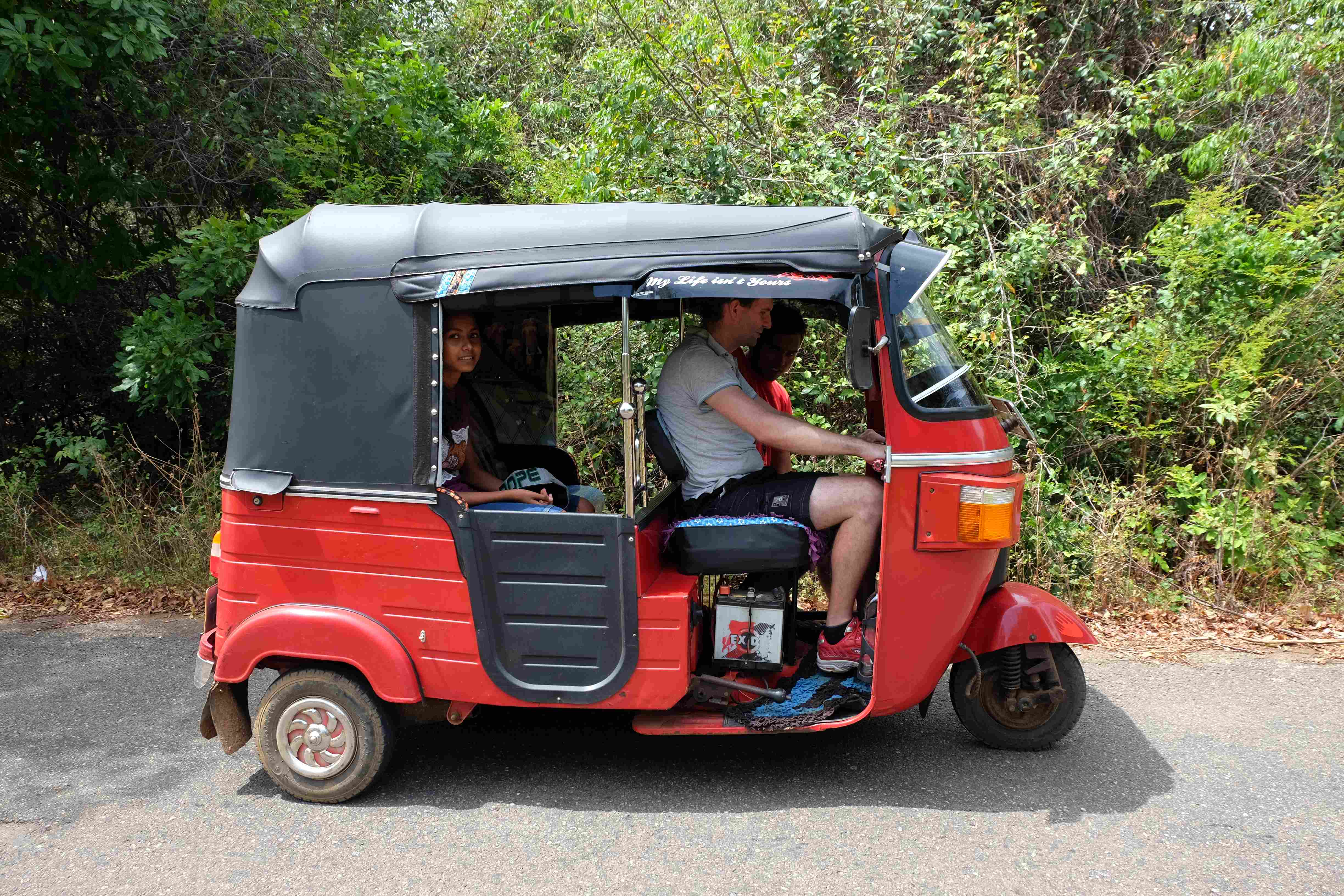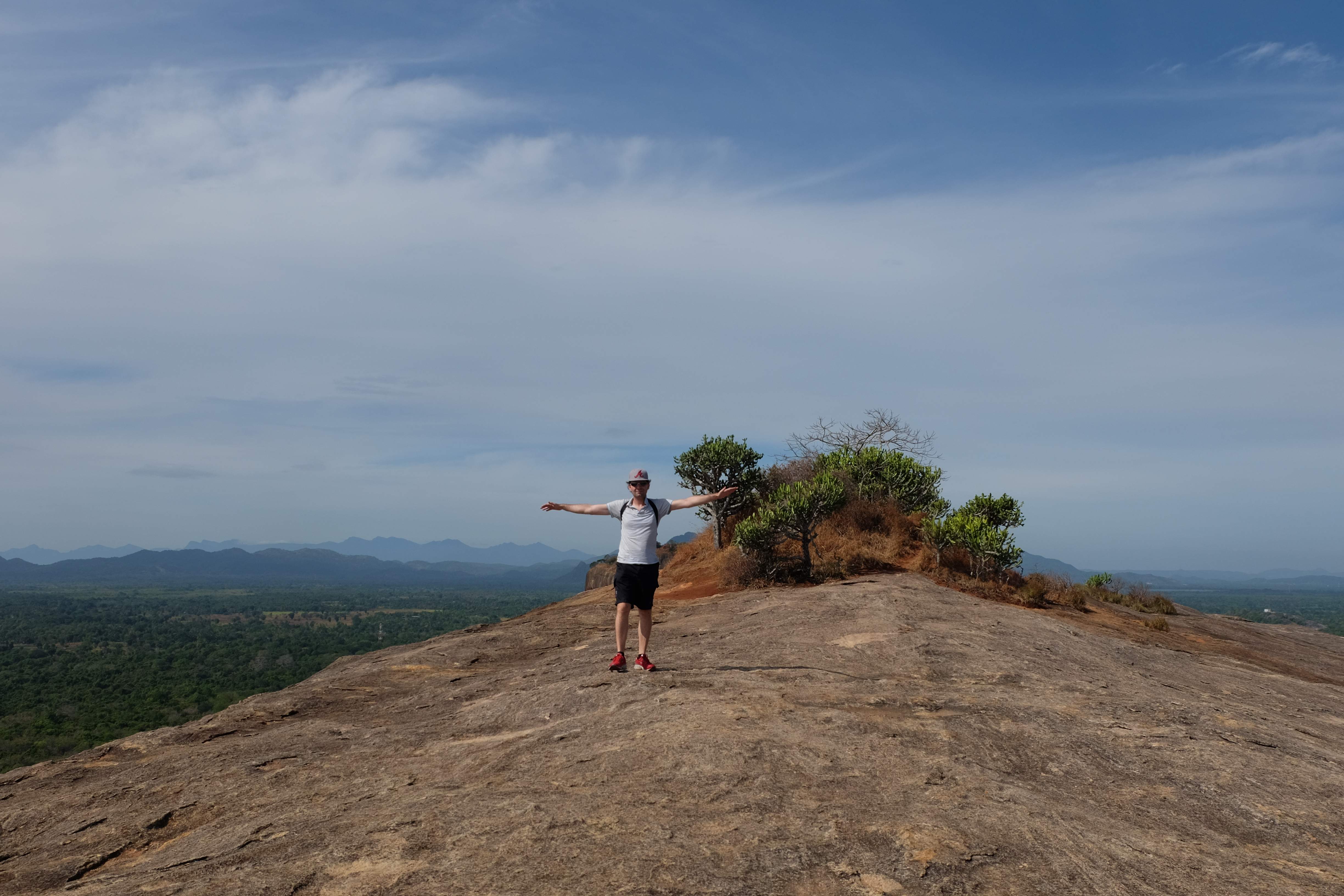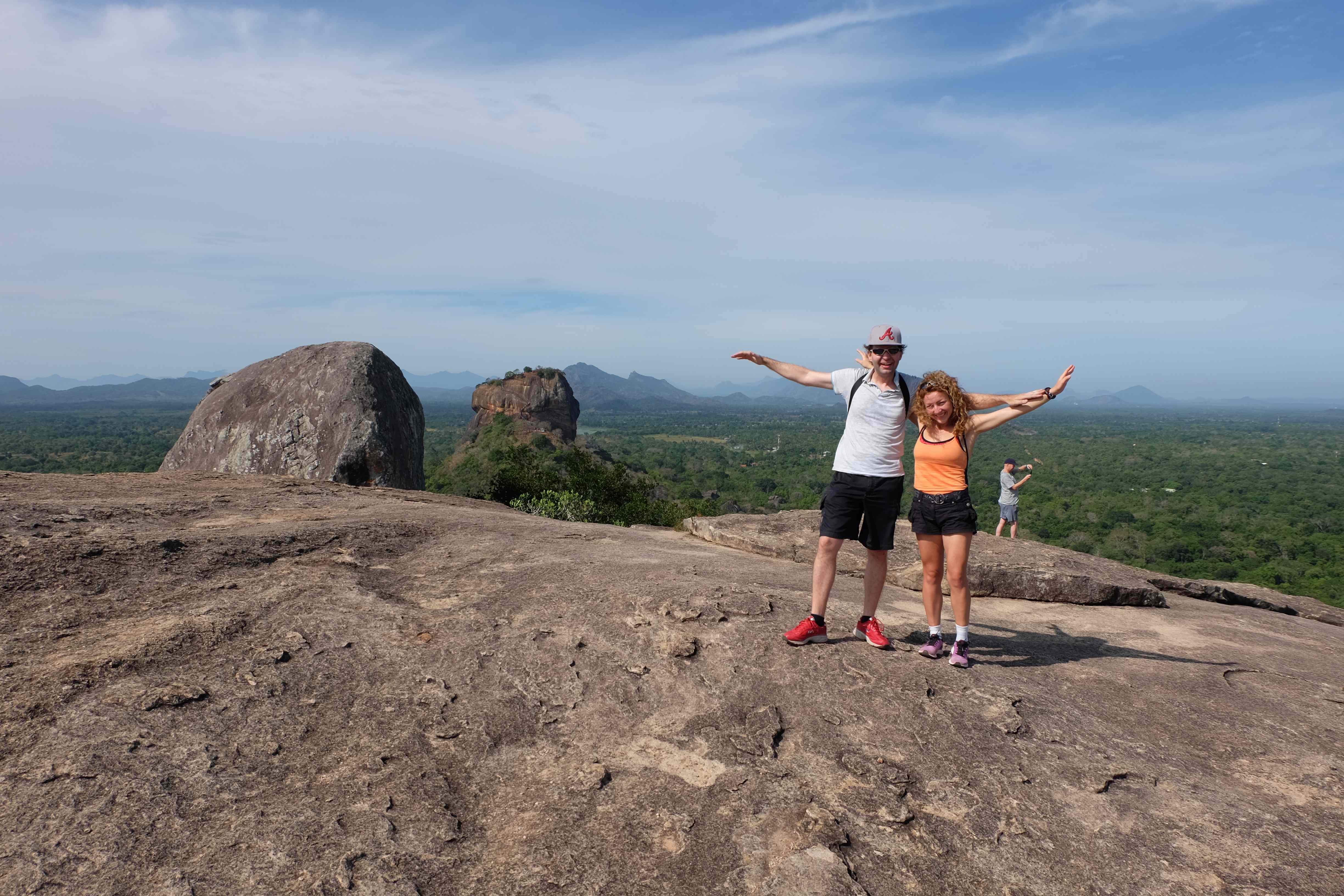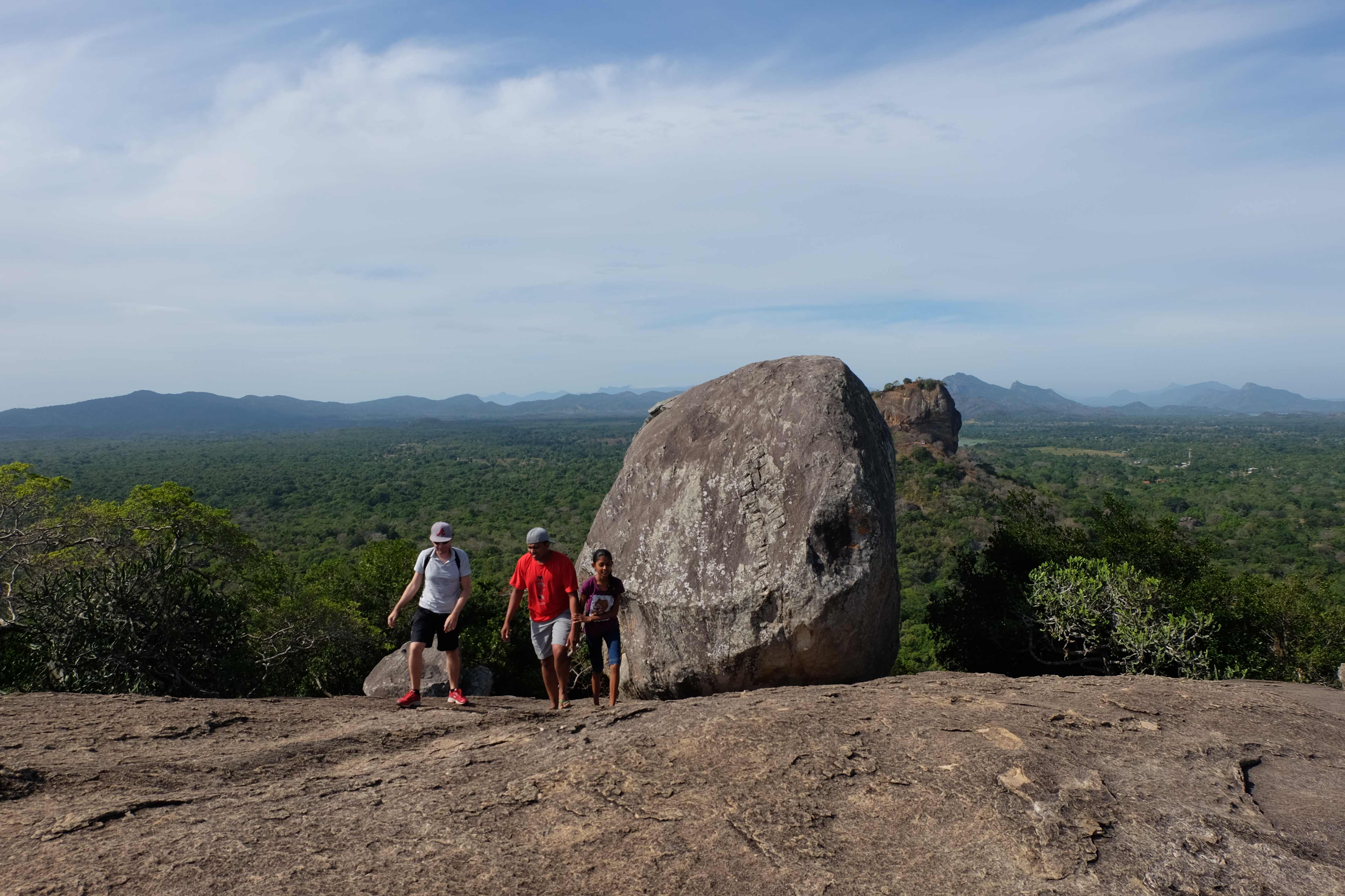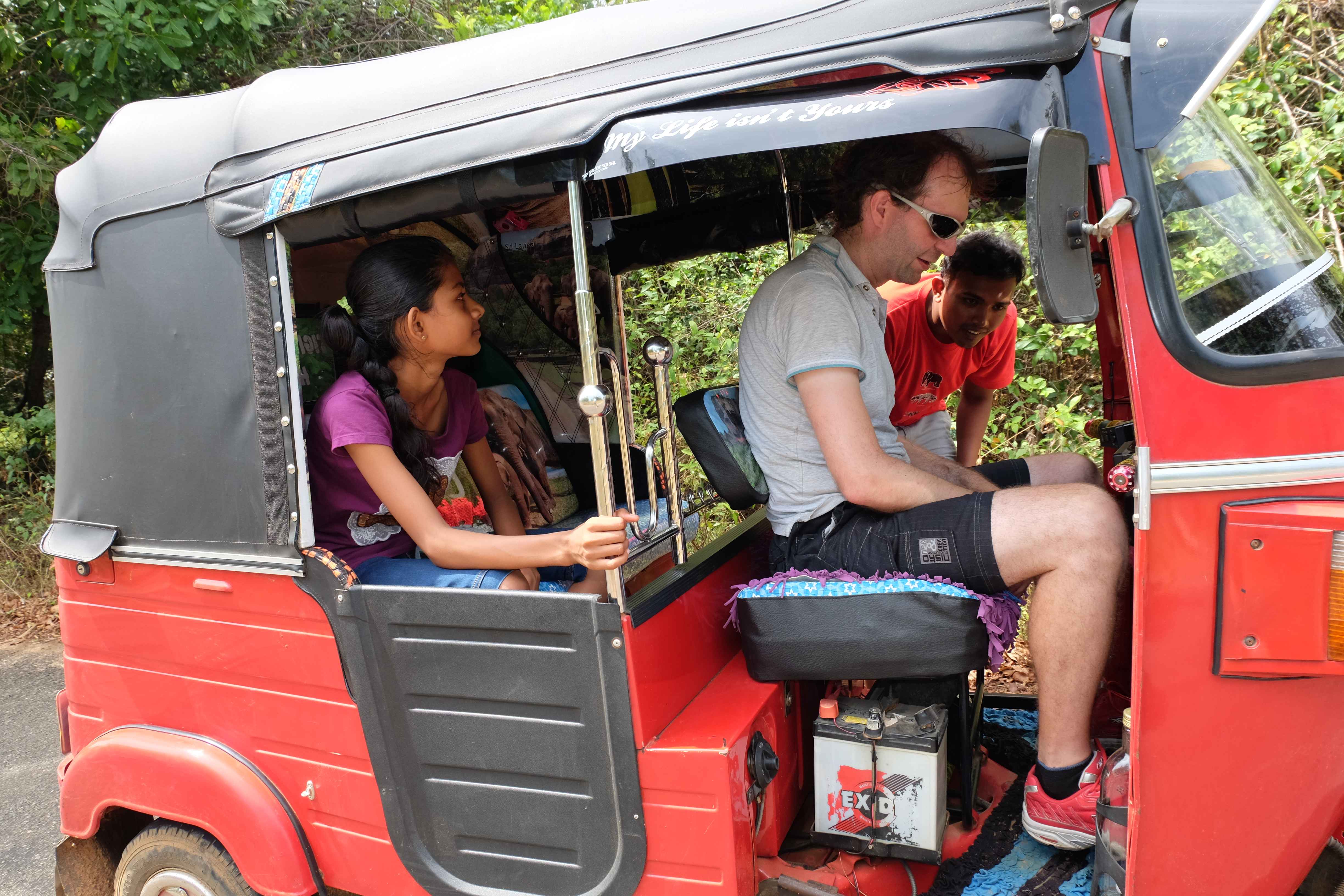 Endlich war es dann soweit: unser Safari-Tag! Der Zeitplan für diesen Tag zwar streng, es hat sich aber durchaus gelohnt. Am Vormittag durften wir einige Sehenswürdigkeiten in und um Sigiriya erkunden: den Pidurangala Felsen (von welchem man eine herrliche Aussicht hat und man den viel touristischeren und überteuerten Sigiriya Felsen äusserst gut sehen kann), ein paar einheimische Tempelanlagen sowie ein abgelegenes Dorf, wo wir beim Zubereiten von Curry und Roti zuschauen und diese dann auch geniessen durften. Unser Gastgeber hatte von einem Freunden einen Tuk-Tuk gemietet (der Preis war symbolisch) und sich als Fahrer bereitgestellt, da wir sonst einen Fahrer hätten zahlen müssen und dies viel teurer geworden wäre. Apropos Tuk-Tuk: seid bitte vorgewarnt: Rafi, unser Hupexperte und Verkehrsanalytiker mutierte an diesem Vormittag zum Tuk-Tuk-Fahrer (um sein Forschungsobjekt besser zu verstehen muss man sich ja eigentlich darin versetzen können! :-)) Rafi machte die Dorfstrassen am Steuer eines roten Tuk-Tuks unsicher… und hupte dabei sogar  in einem dem Schweizerdeutschen ähnlichen Rhythmus: i gang hüt go Tuk-Tuk fahre, gönged usem Weg! 🙂 Hier einige Schnapschüsse von unserem Vormittag:
