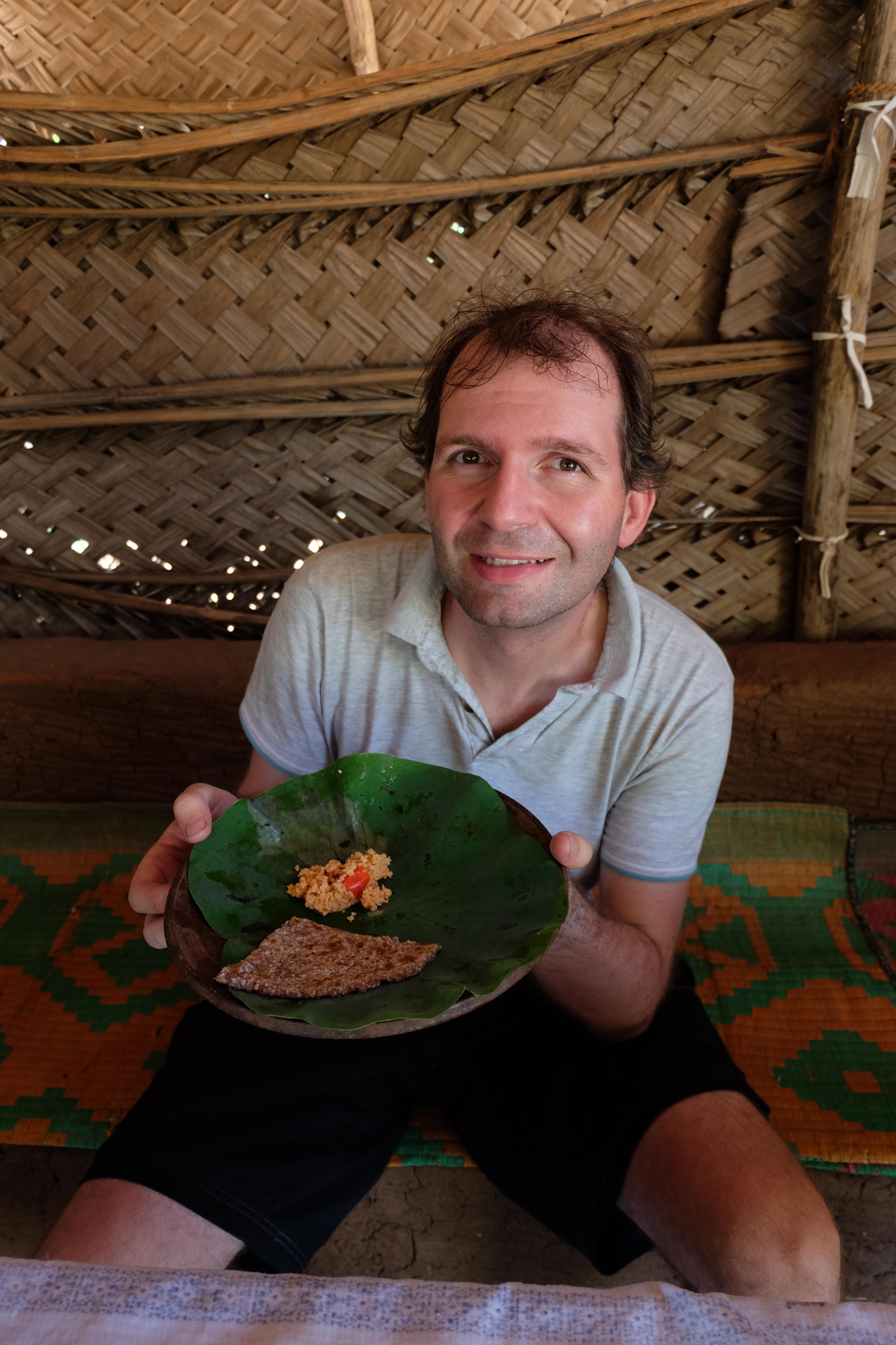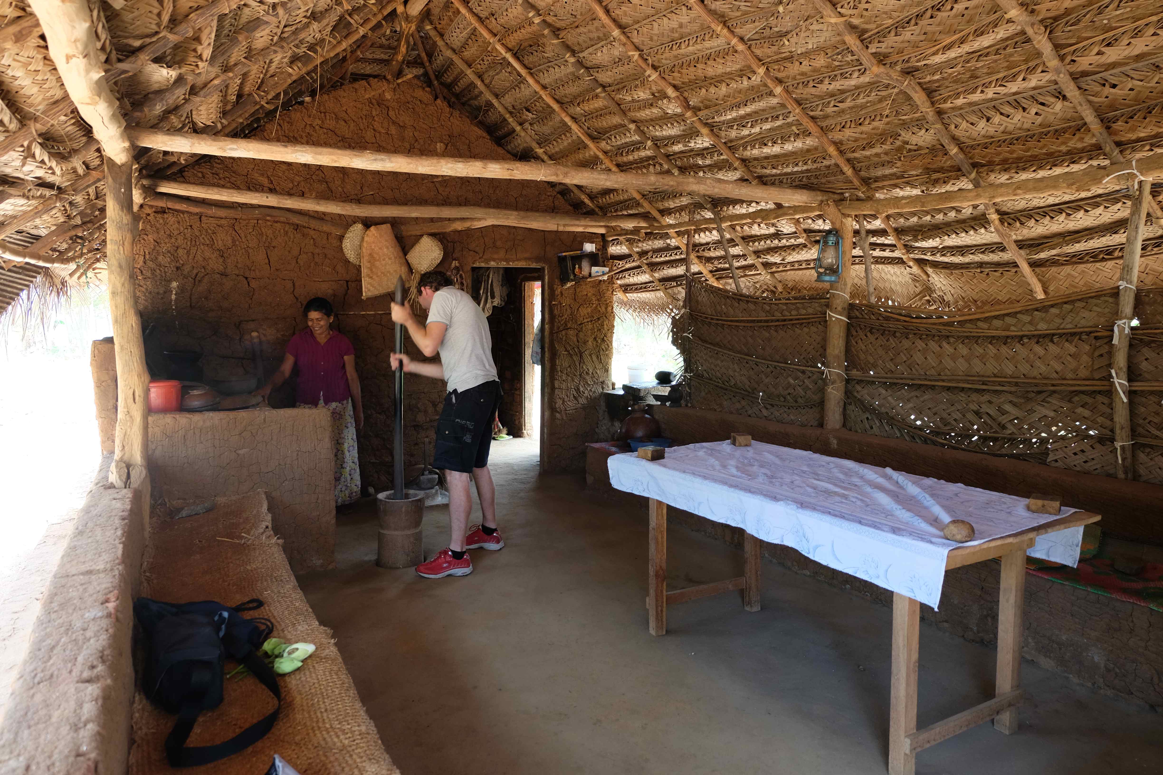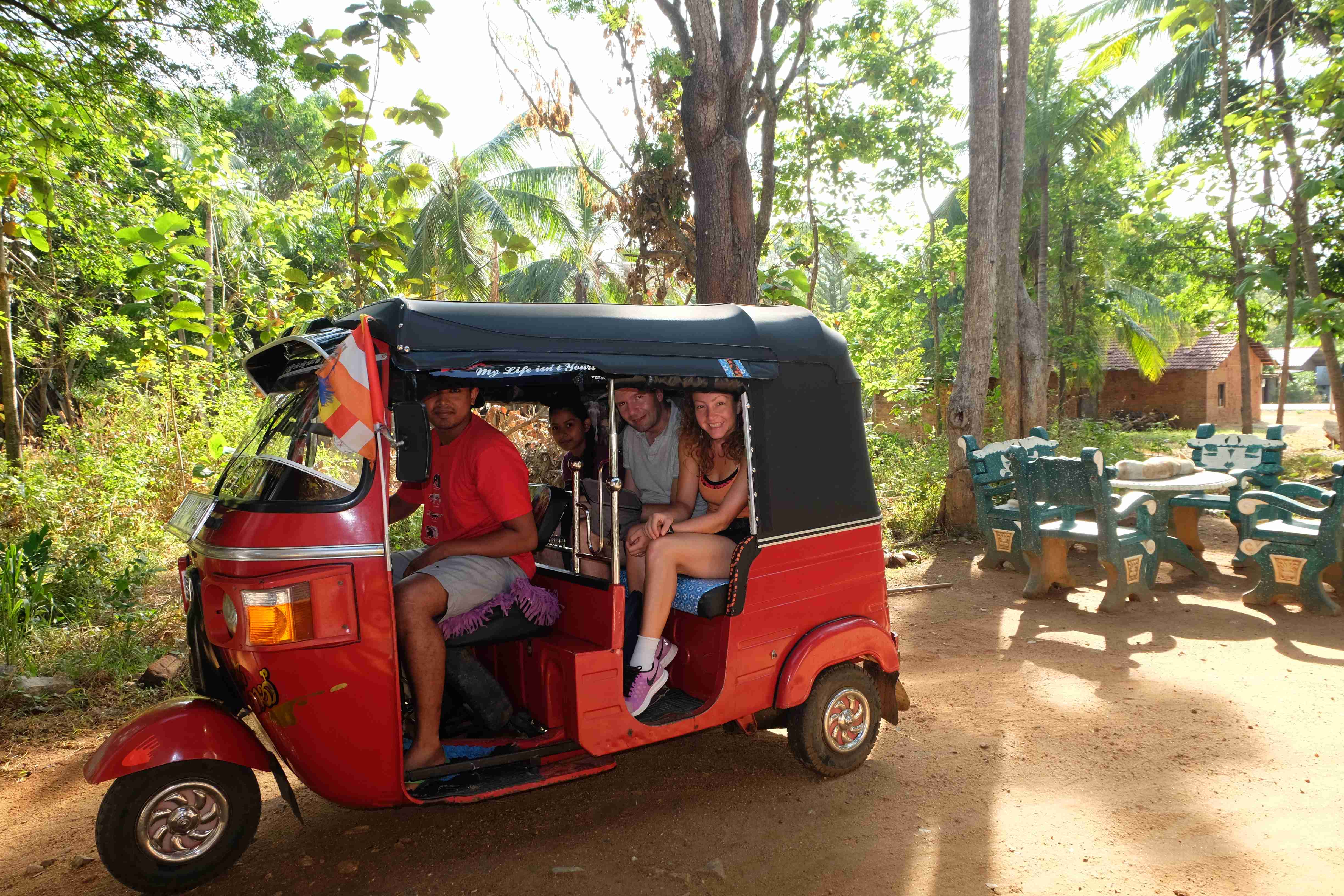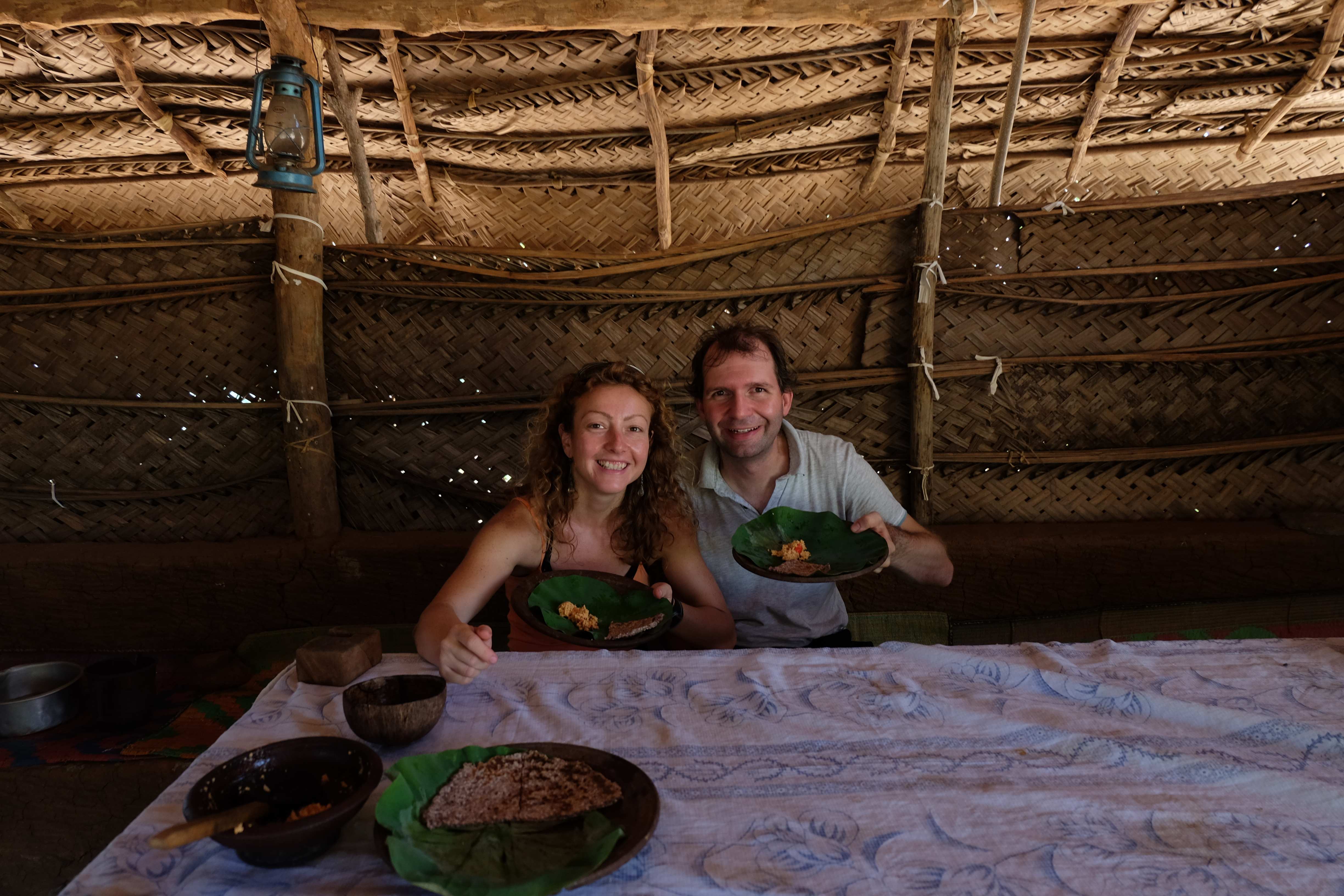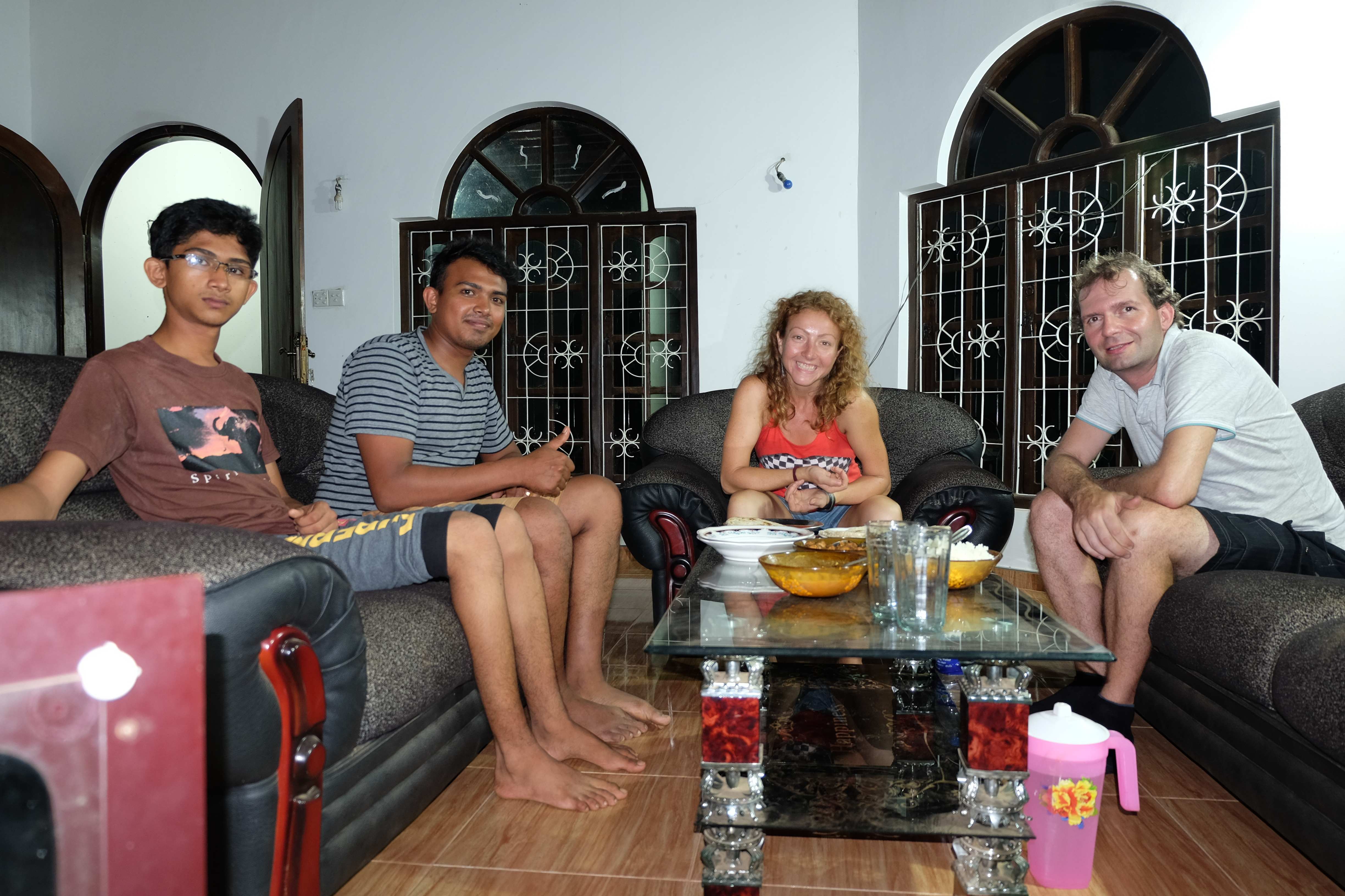 Endlich war es dann soweit: unser Safari-Tag! Der Zeitplan für diesen Tag zwar streng, es hat sich aber durchaus gelohnt. Am Vormittag durften wir einige Sehenswürdigkeiten in und um Sigiriya erkunden: den Pidurangala Felsen (von welchem man eine herrliche Aussicht hat und man den viel touristischeren und überteuerten Sigiriya Felsen äusserst gut sehen kann), ein paar einheimische Tempelanlagen sowie ein abgelegenes Dorf, wo wir beim Zubereiten von Curry und Roti zuschauen und diese dann auch geniessen durften. Unser Gastgeber hatte von einem Freunden einen Tuk-Tuk gemietet (der Preis war symbolisch) und sich als Fahrer bereitgestellt, da wir sonst einen Fahrer hätten zahlen müssen und dies viel teurer geworden wäre. Apropos Tuk-Tuk: seid bitte vorgewarnt: Rafi, unser Hupexperte und Verkehrsanalytiker mutierte an diesem Vormittag zum Tuk-Tuk-Fahrer (um sein Forschungsobjekt besser zu verstehen muss man sich ja eigentlich darin versetzen können! :-)) Rafi machte die Dorfstrassen am Steuer eines roten Tuk-Tuks unsicher… und hupte dabei sogar  in einem dem Schweizerdeutschen ähnlichen Rhythmus: i gang hüt go Tuk-Tuk fahre, gönged usem Weg! 🙂 Hier einige Schnapschüsse von unserem Vormittag: