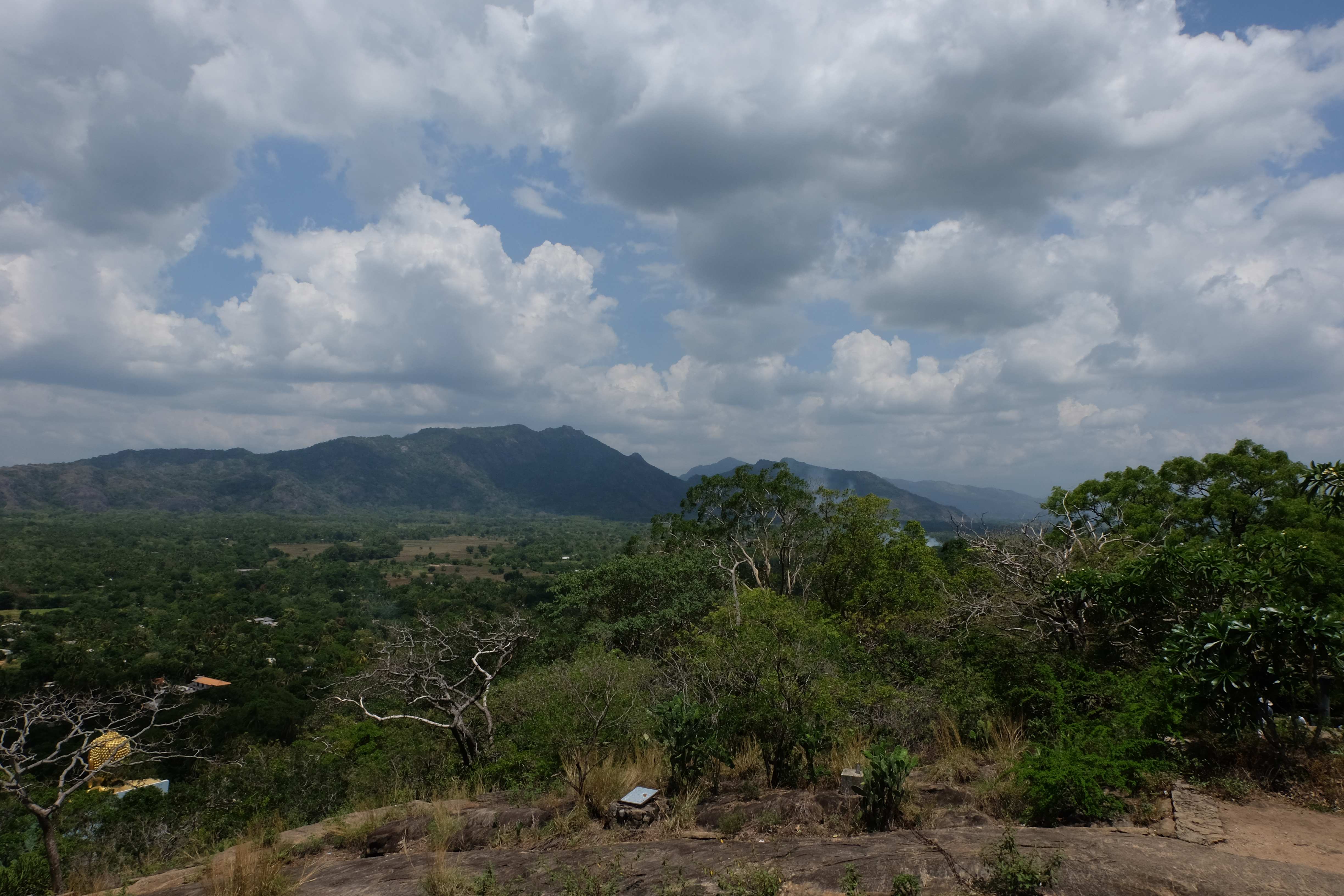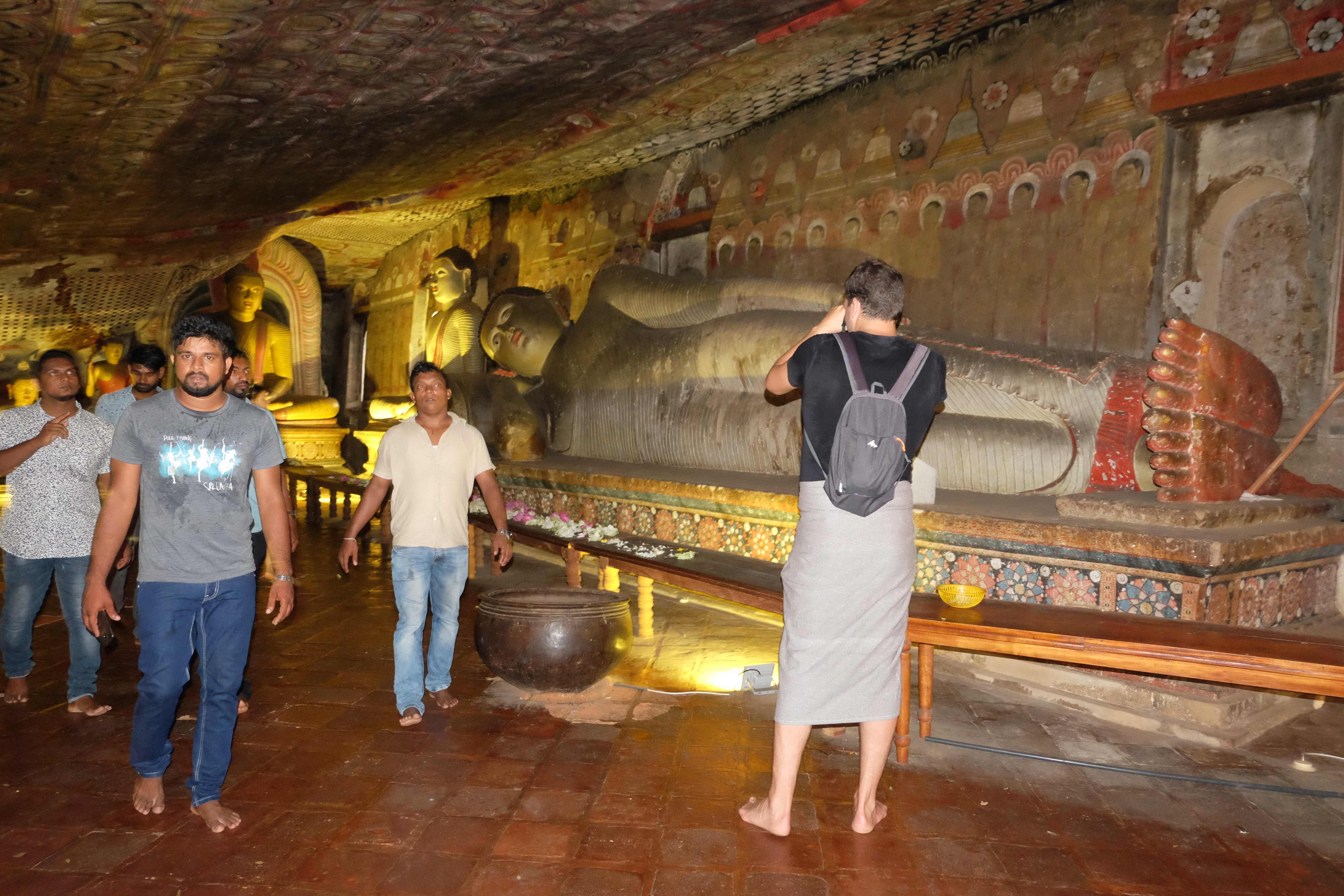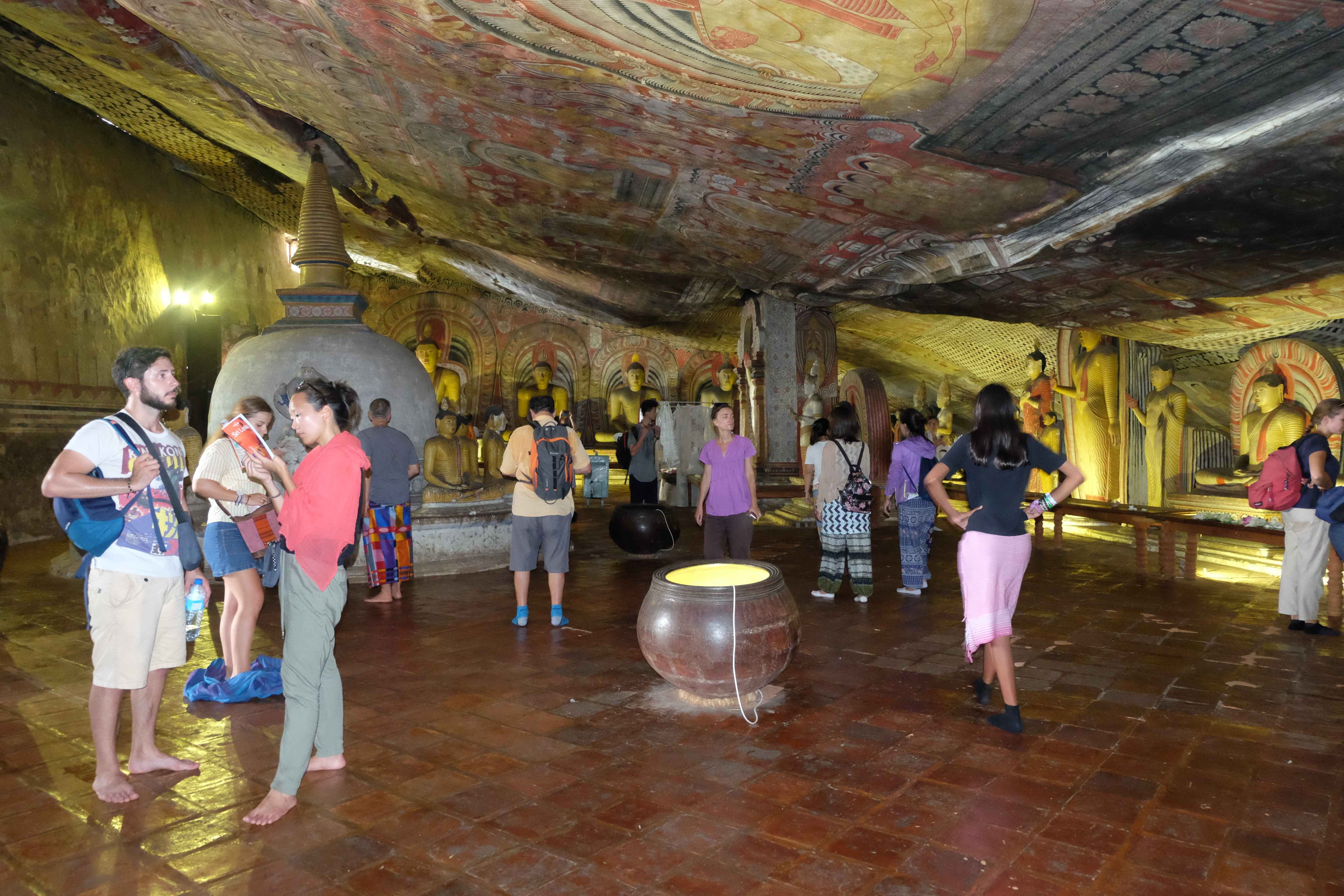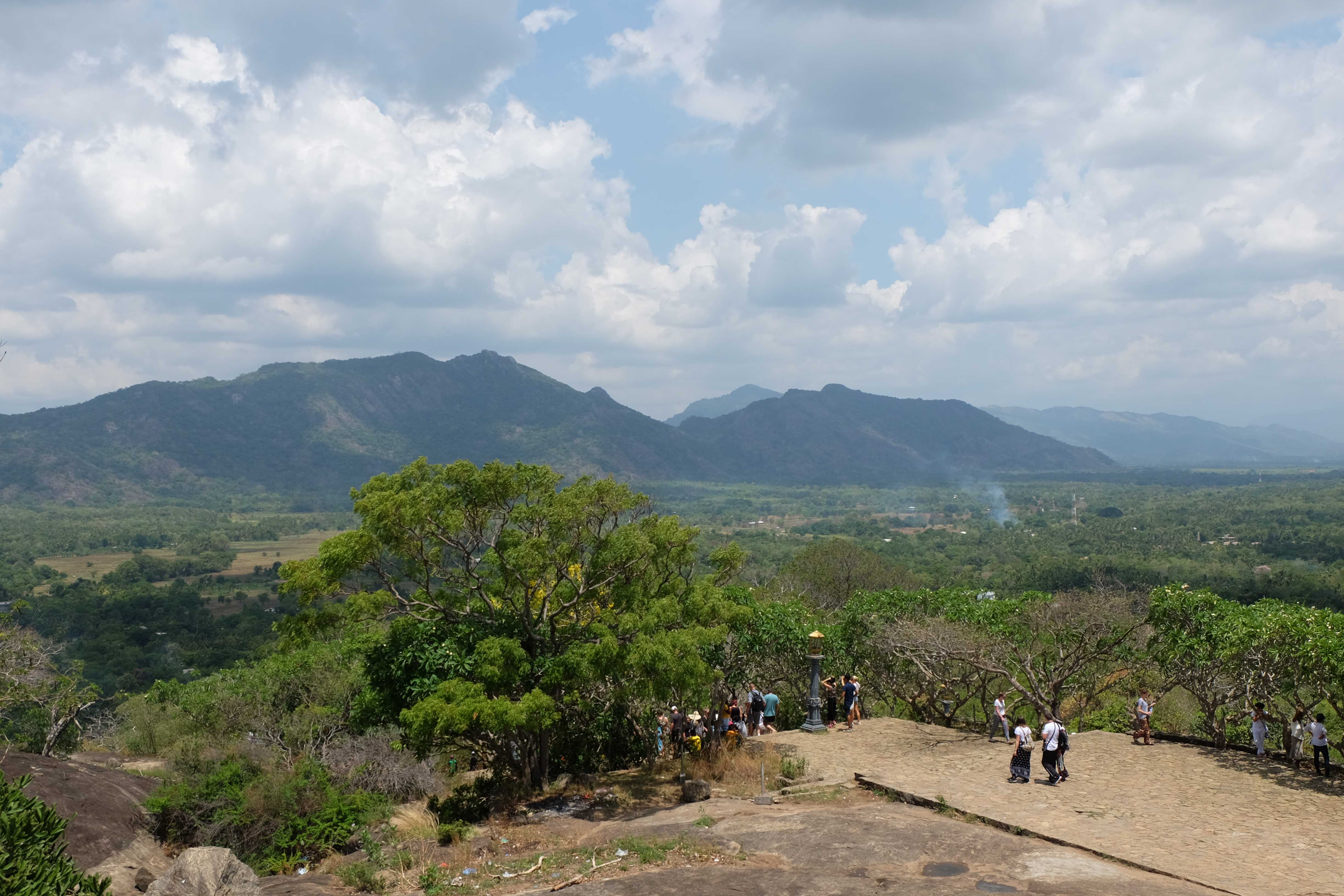 Am Tag darauf verabschiedeten wir uns von dem Dschungel-Paradies und machten uns auf den Weg nach Dambulla, wo es einen sehr berühmten Höhlentempel gibt. Wir besuchten den, aber so spektakulär ist er auch wieder nicht wenn es sich dabei mittlerweile um den 20sten Buddha-Tempel handelt, den man sieht. Die Aussicht aber von dort oben ist wunderschön… und es war ein gutes Training, da wir mit den kleinen Rucksäcken hinaufliefen. 🙂 (die grossen Rucksäcke liessen wir bei unserem Zucker-Fan in Colombo, da wir für unsere Woche in Sri Lanka nicht sämtliche Sachen brauchten und die light-travel Variante bevorzugten) Hier könnt ihr euch selber ein Bild davon machen: