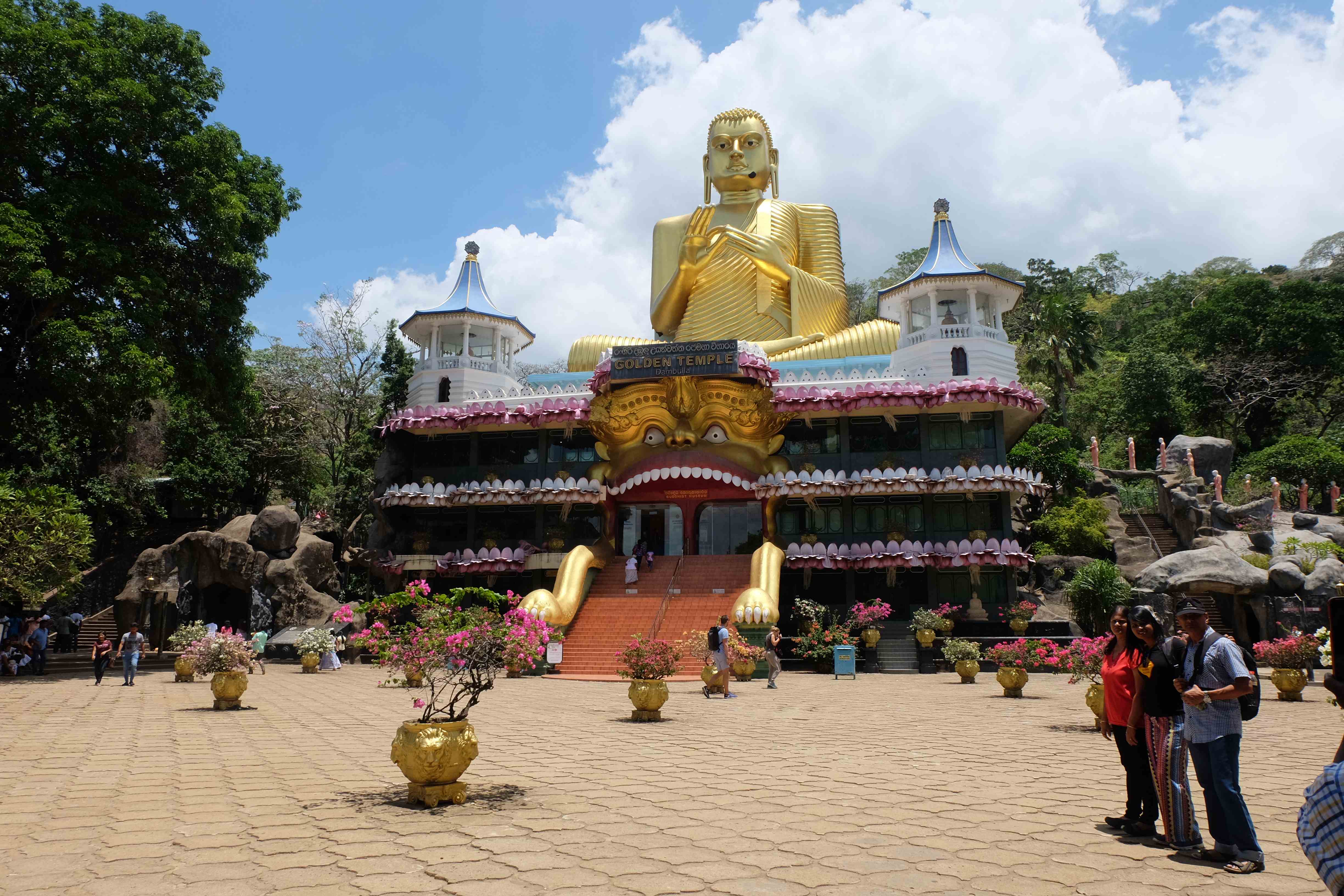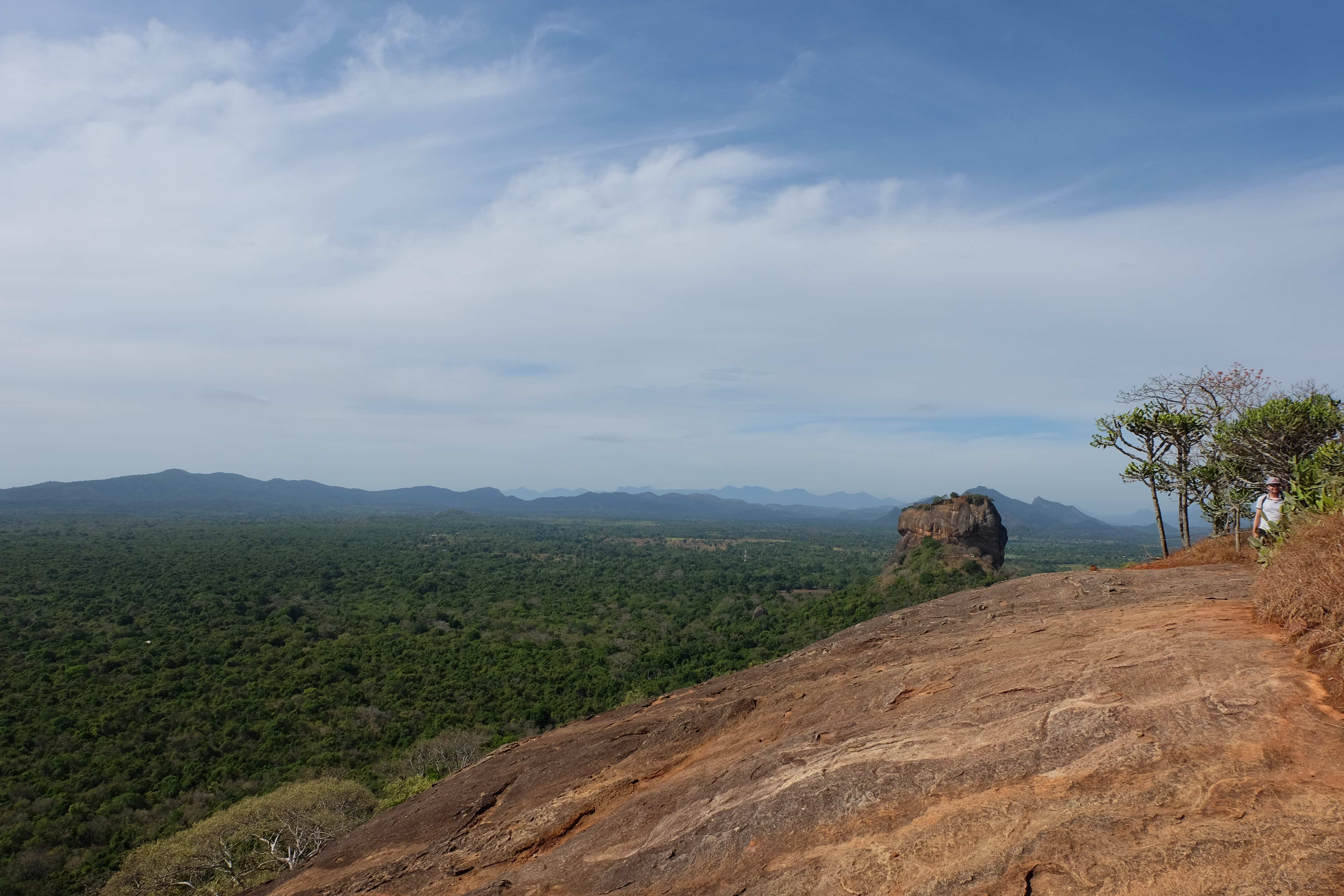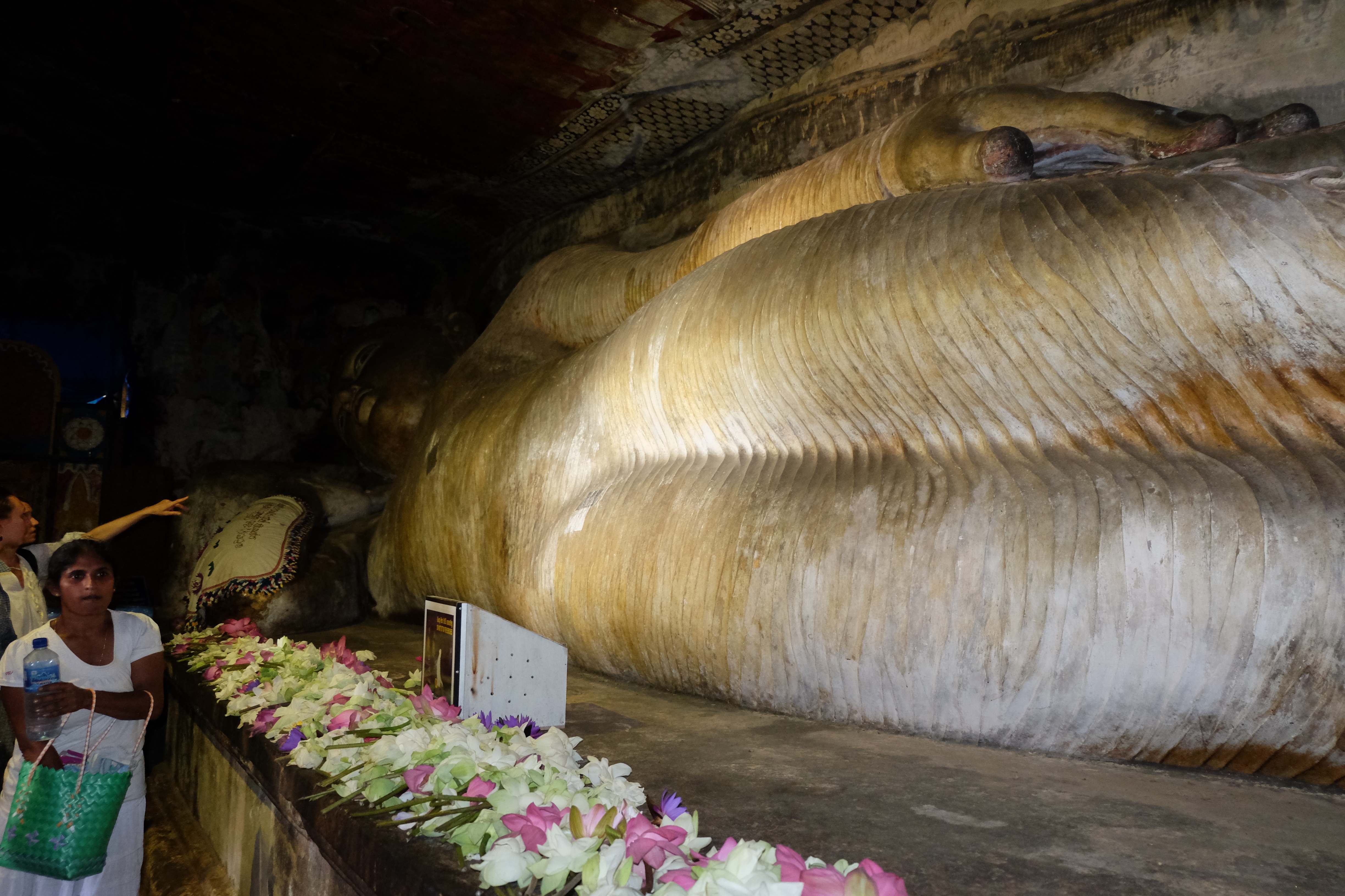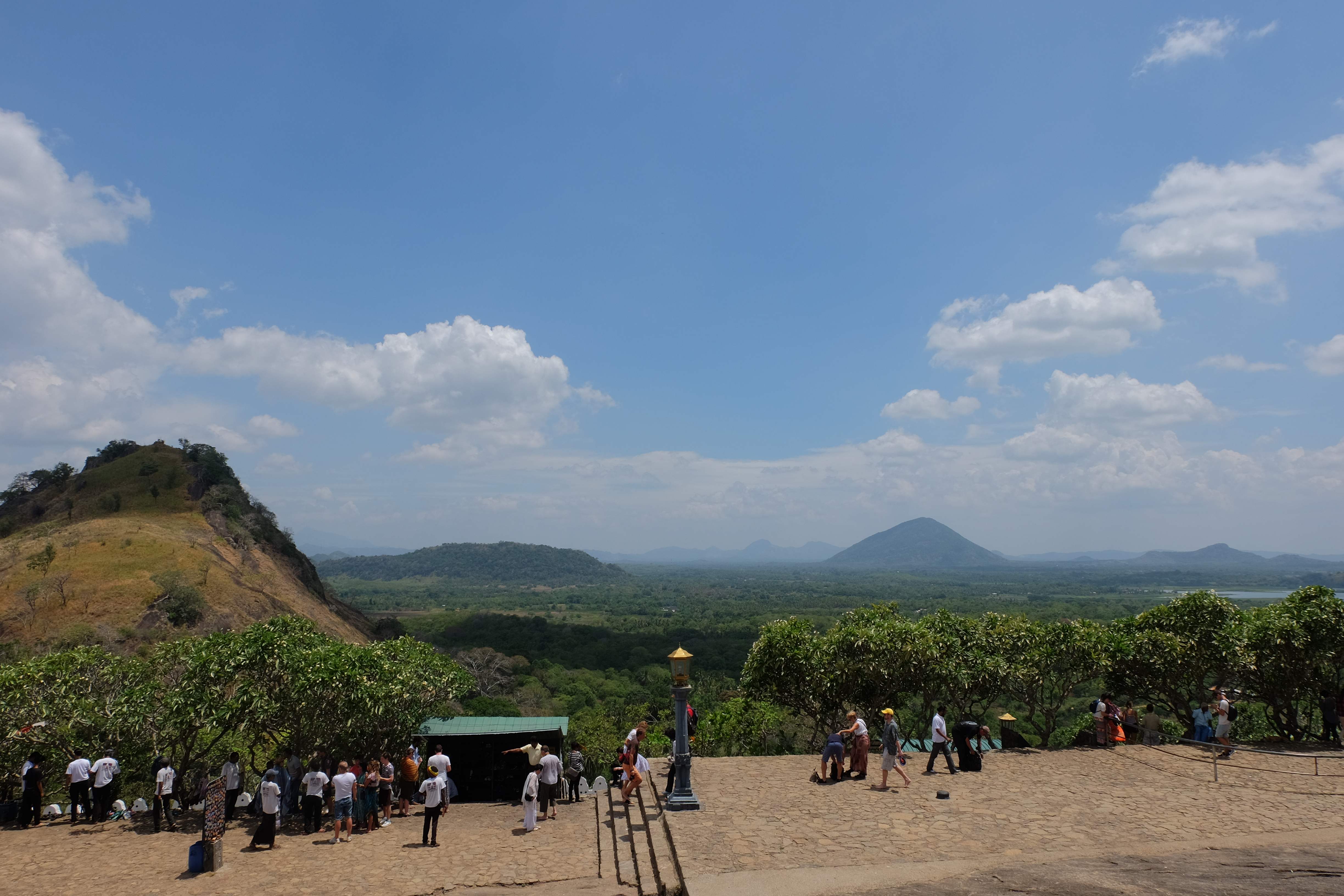 Am Tag darauf verabschiedeten wir uns von dem Dschungel-Paradies und machten uns auf den Weg nach Dambulla, wo es einen sehr berühmten Höhlentempel gibt. Wir besuchten den, aber so spektakulär ist er auch wieder nicht wenn es sich dabei mittlerweile um den 20sten Buddha-Tempel handelt, den man sieht. Die Aussicht aber von dort oben ist wunderschön… und es war ein gutes Training, da wir mit den kleinen Rucksäcken hinaufliefen. 🙂 (die grossen Rucksäcke liessen wir bei unserem Zucker-Fan in Colombo, da wir für unsere Woche in Sri Lanka nicht sämtliche Sachen brauchten und die light-travel Variante bevorzugten) Hier könnt ihr euch selber ein Bild davon machen: