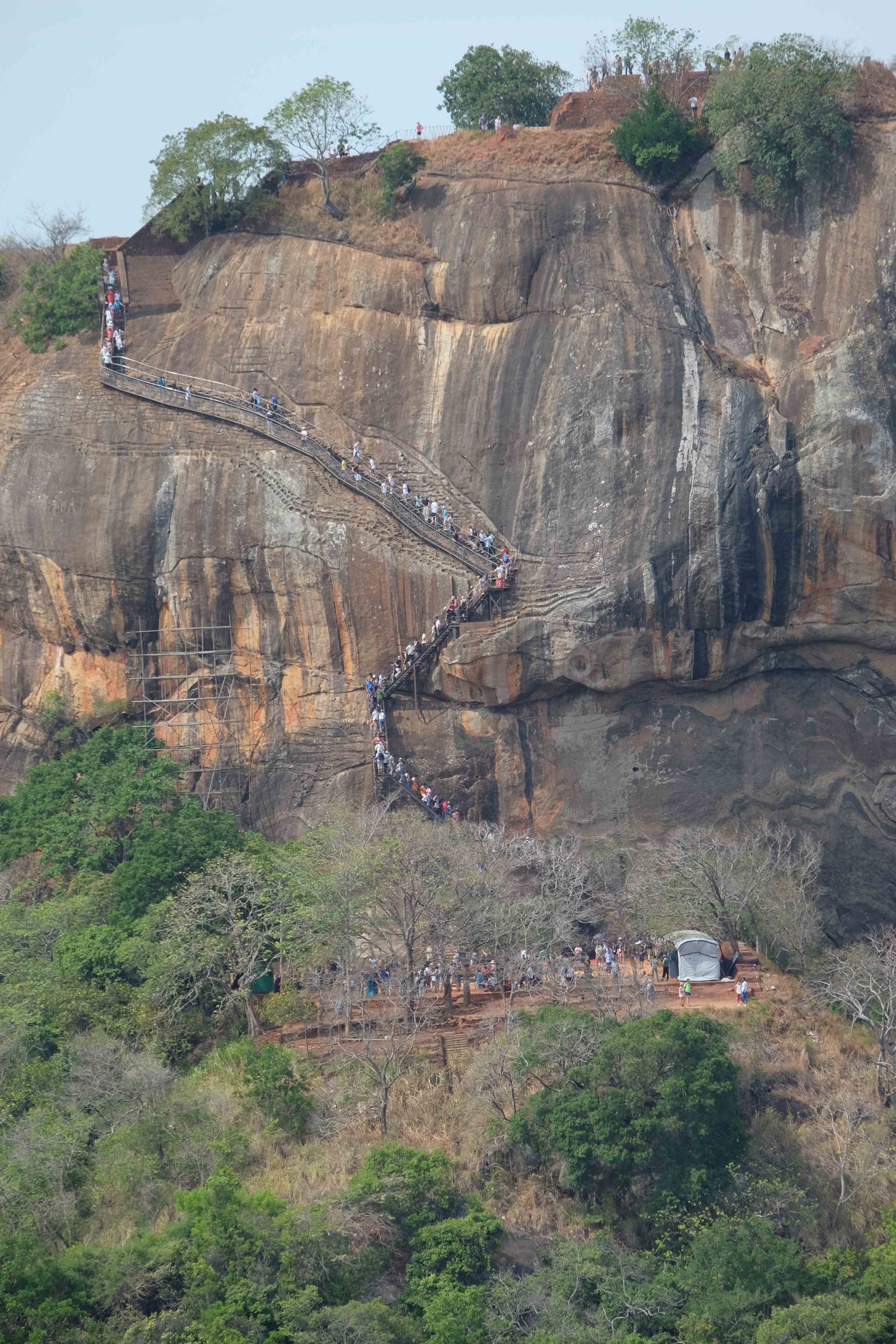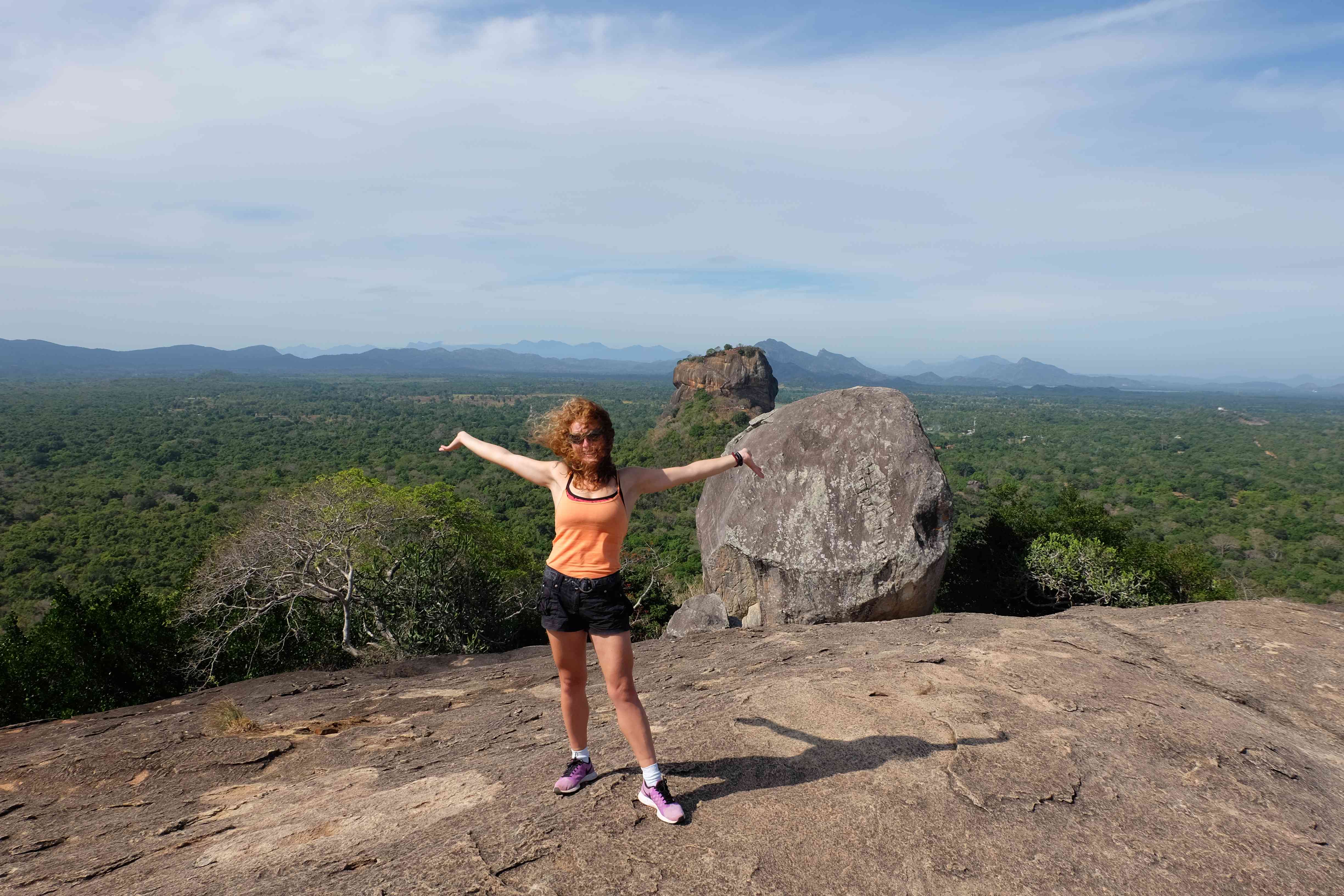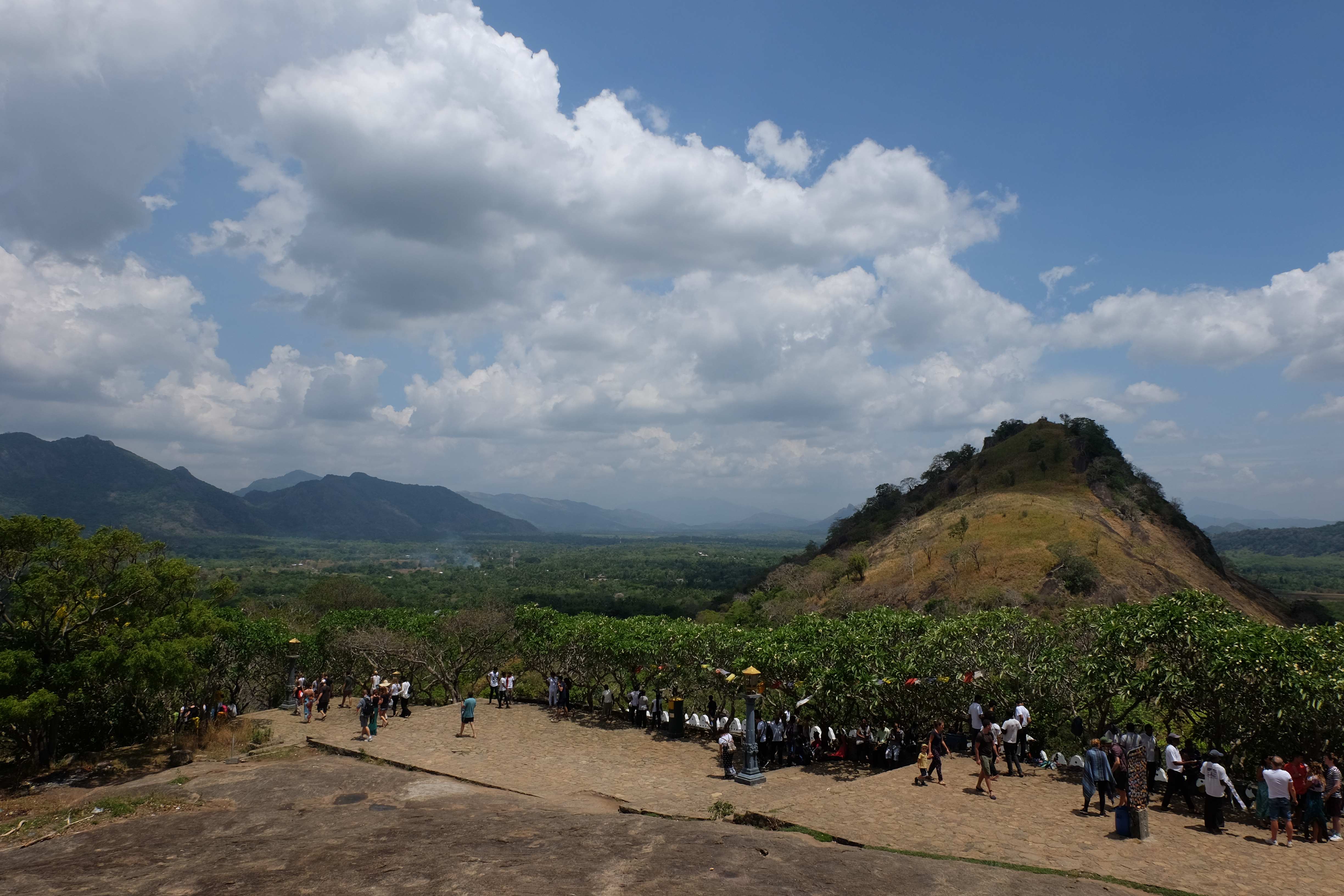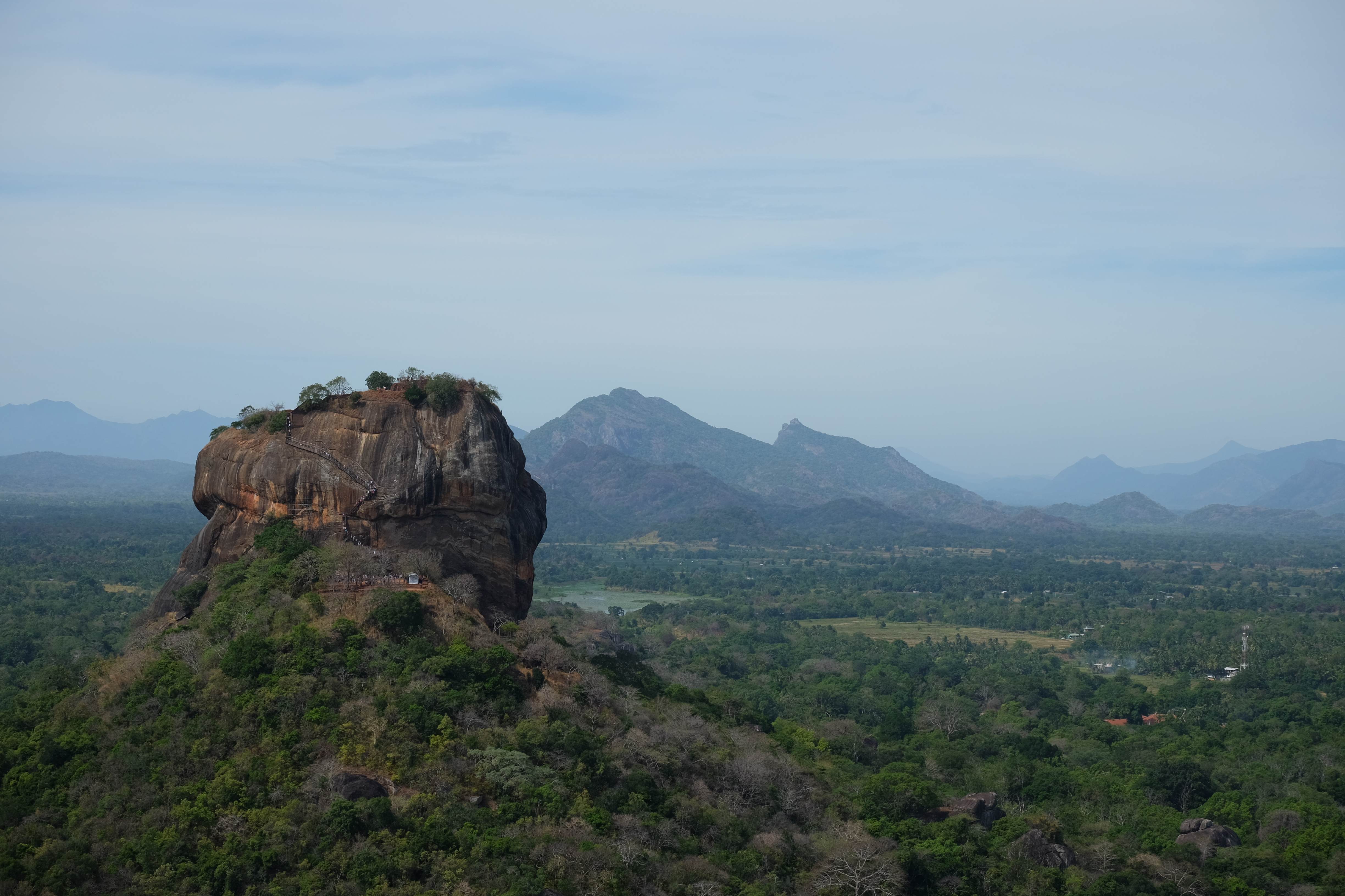 Am Tag darauf verabschiedeten wir uns von dem Dschungel-Paradies und machten uns auf den Weg nach Dambulla, wo es einen sehr berühmten Höhlentempel gibt. Wir besuchten den, aber so spektakulär ist er auch wieder nicht wenn es sich dabei mittlerweile um den 20sten Buddha-Tempel handelt, den man sieht. Die Aussicht aber von dort oben ist wunderschön… und es war ein gutes Training, da wir mit den kleinen Rucksäcken hinaufliefen. 🙂 (die grossen Rucksäcke liessen wir bei unserem Zucker-Fan in Colombo, da wir für unsere Woche in Sri Lanka nicht sämtliche Sachen brauchten und die light-travel Variante bevorzugten) Hier könnt ihr euch selber ein Bild davon machen:
