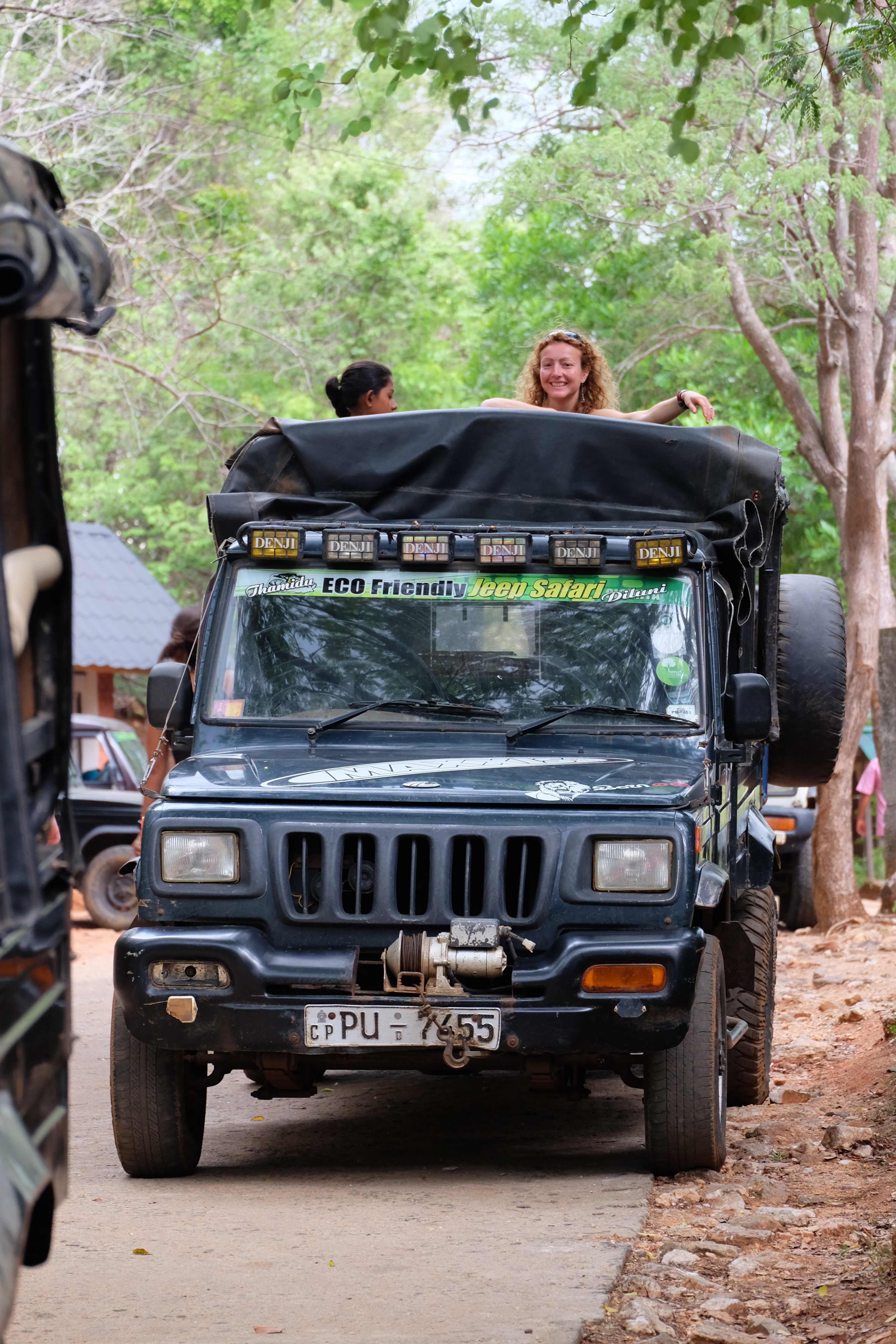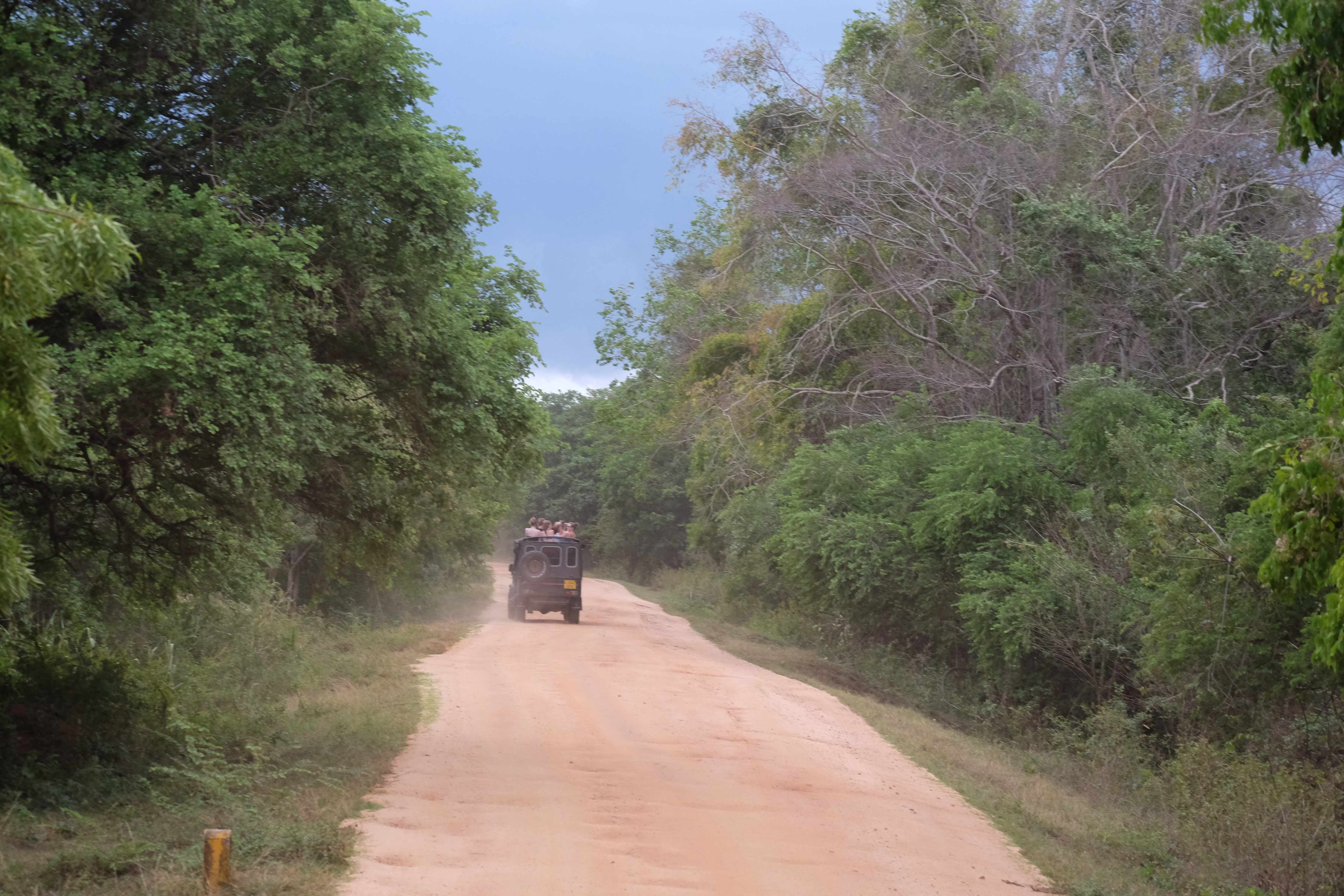 Am Nachmittag kam der lang ersehnte Augenblick: Safari um Elefanten zu sehen!!! Eigentlich hatten wir vor diesen im Minneriya Nationalpark zu machen, aber die einheimischen Safari-Fahrer teilten uns mit, dass die Elefanten den Park gewechselt hatten und sich zurzeit im nebenan gelegenen Kaudulla Nationalpark aufhielten. In der Gegend gibt es eigentlich drei aneinander angrenzende Nationalparks die für ihre grossen Elefantenpopulation bekannt sind, so dass man die erfahrenen Jeep-Chauffeure immer fragen sollte, wo sich die Elefanten aufhalten, da diese je nach Wasserverhältnissen von Park zu Park wechseln. Man kann sich entweder für die Morgen-Safari oder für die Nachmittag-Safari entscheiden. Unser Gastgeber sowie andere Einheimische meinten, morgens sei es weniger interessant, da die Elefanten aufwachen und sich nur kurz erblicken lassen würden wenn sie Wasser trinken gehen. Aufgrund der hohen Temperaturen würden sie aber nicht zu lange dort verweilen und sich wieder in den schützenden Schatten des Dschungels verstecken gehen. Am Nachmittag jedoch seien sie viel durstiger nach dem langen heissen Tag, so dass man ihnen viel länger beim Wassertrinken zuschauen könne, ja sogar beim Baden sollte man Glück haben. Also entschieden wir uns natürlich für die Nachmittag-Safari.