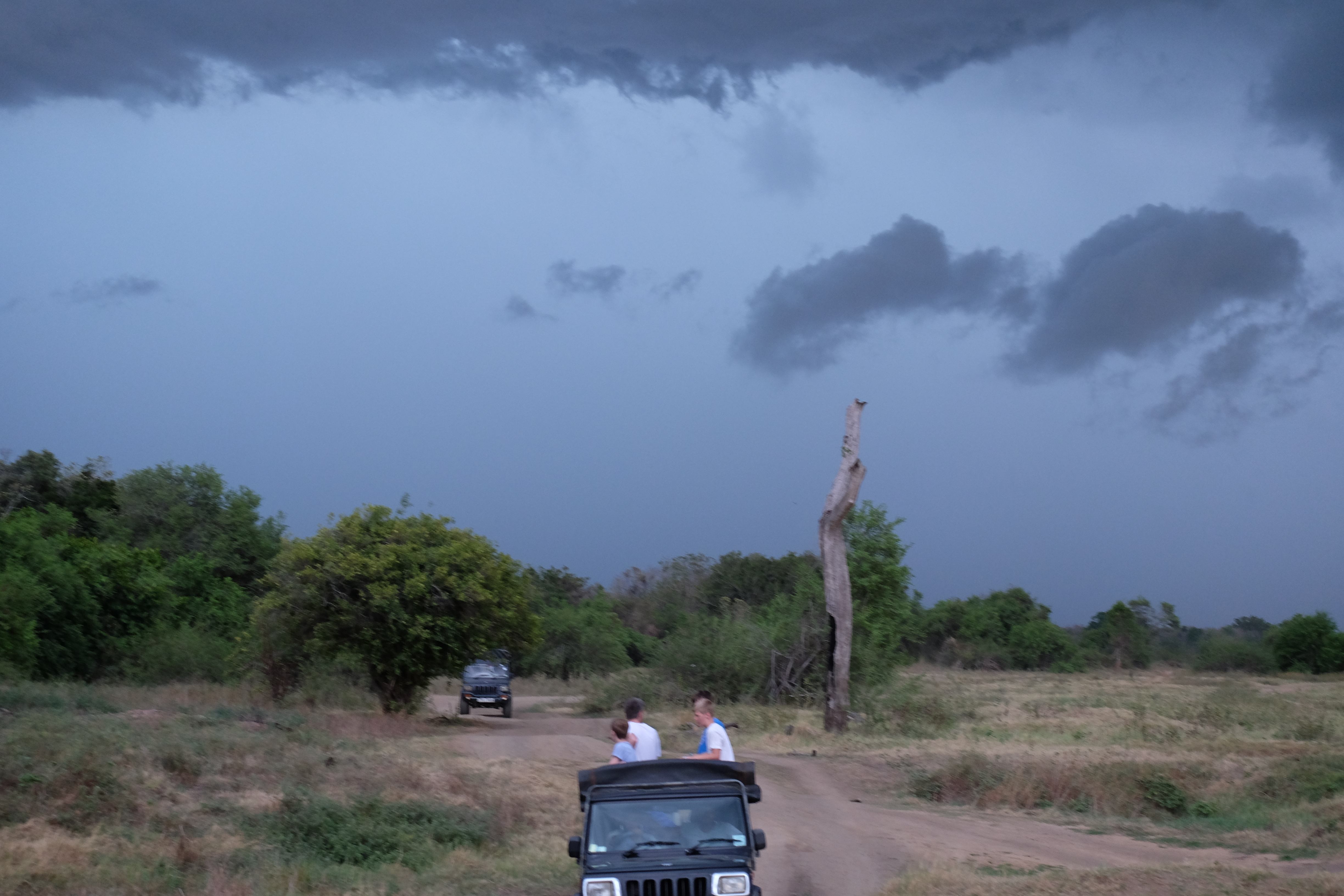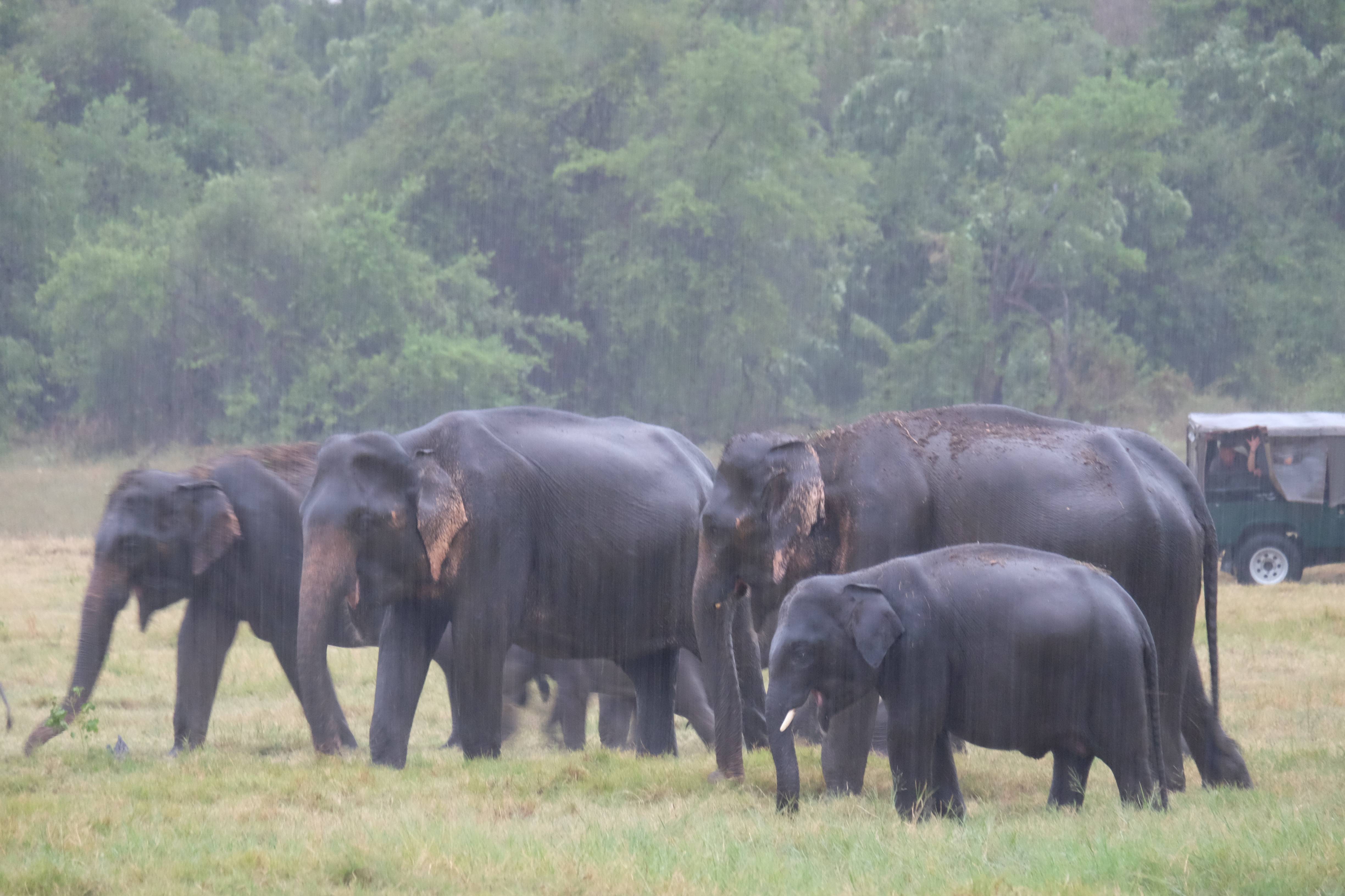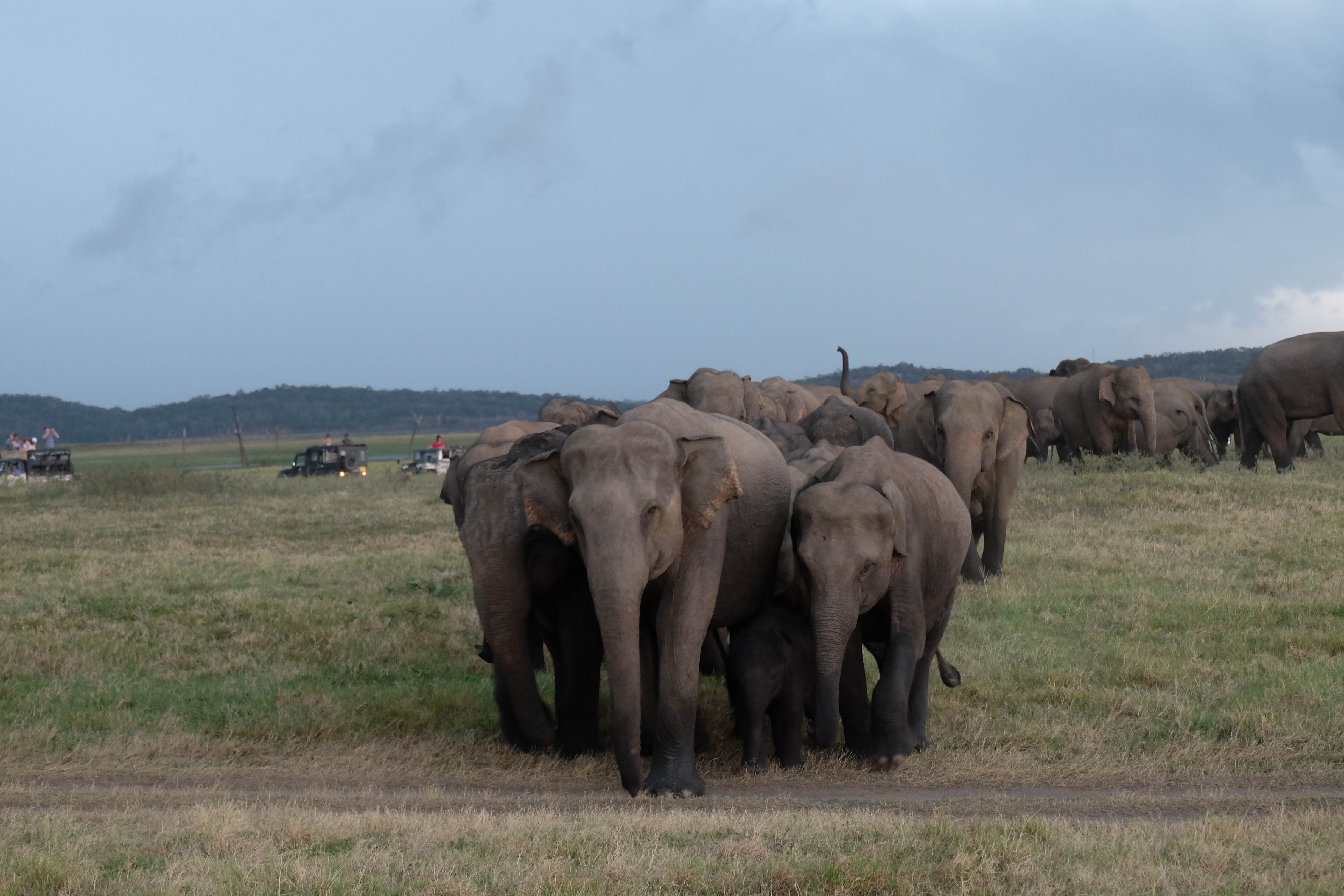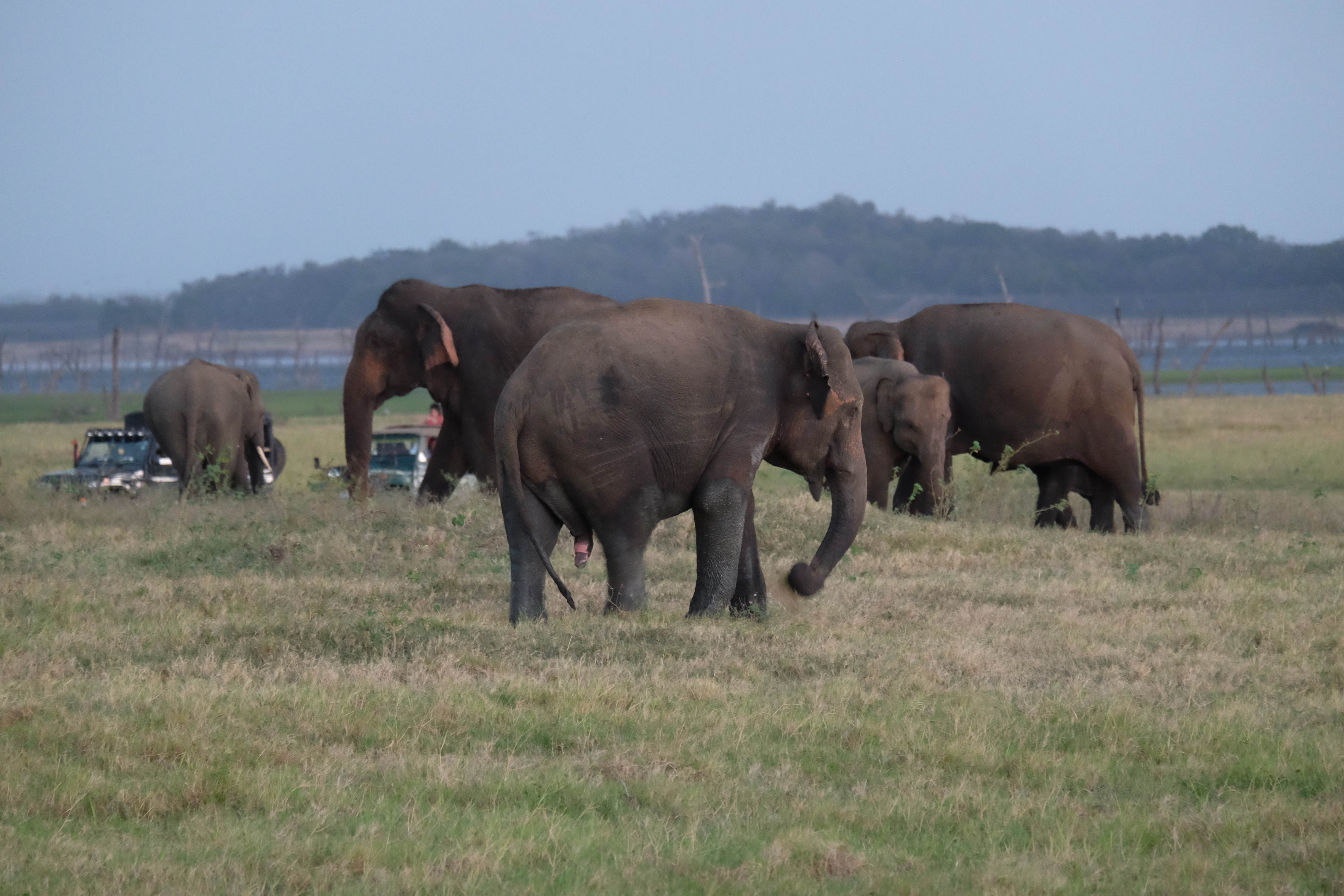 Dupa masa venise in sfarsit momentul mult asteptat: safari pentru a vedea elefanti. De fapt initial vroiam sa mergem in parcul national Minneriya, insa soferii de jeep fiind localnici ne-au sfatuit sa facem safari-ul in parcul national Kaudulla pentru ca majoritatea elefantilor se mutasera in acea zona. In acea regiune sunt trei parcuri nationale invecinate iar elefantii se muta dintr-unul in altul in functie de cantitatea de apa disponibila. Cand ne-am decis sa facem safari ni s-au propus doua variante: dis de dimineata sau dupa-masa, insa tot localnicii ne-au sfatuit sa optam pentru varianta de dupa masa, avand in vedere ca dimineata elefantii ies scurt din jungla pentru a se adapa, insa nu stau prea mult la marginea apei, intrand rapid din nou in desisurile tropicale pentru a se feri de soare. Dupa masa insa, setosi dupa o zi cu temperaturi ridicate ies din nou sa se adape si dornici de un dus rece vor incerca chiar sa se racoreasca in apa, oferindu-ti astfel scene mult mai inedite. Bineinteles ca ne-am decis sa mergem dupa masa in safari.