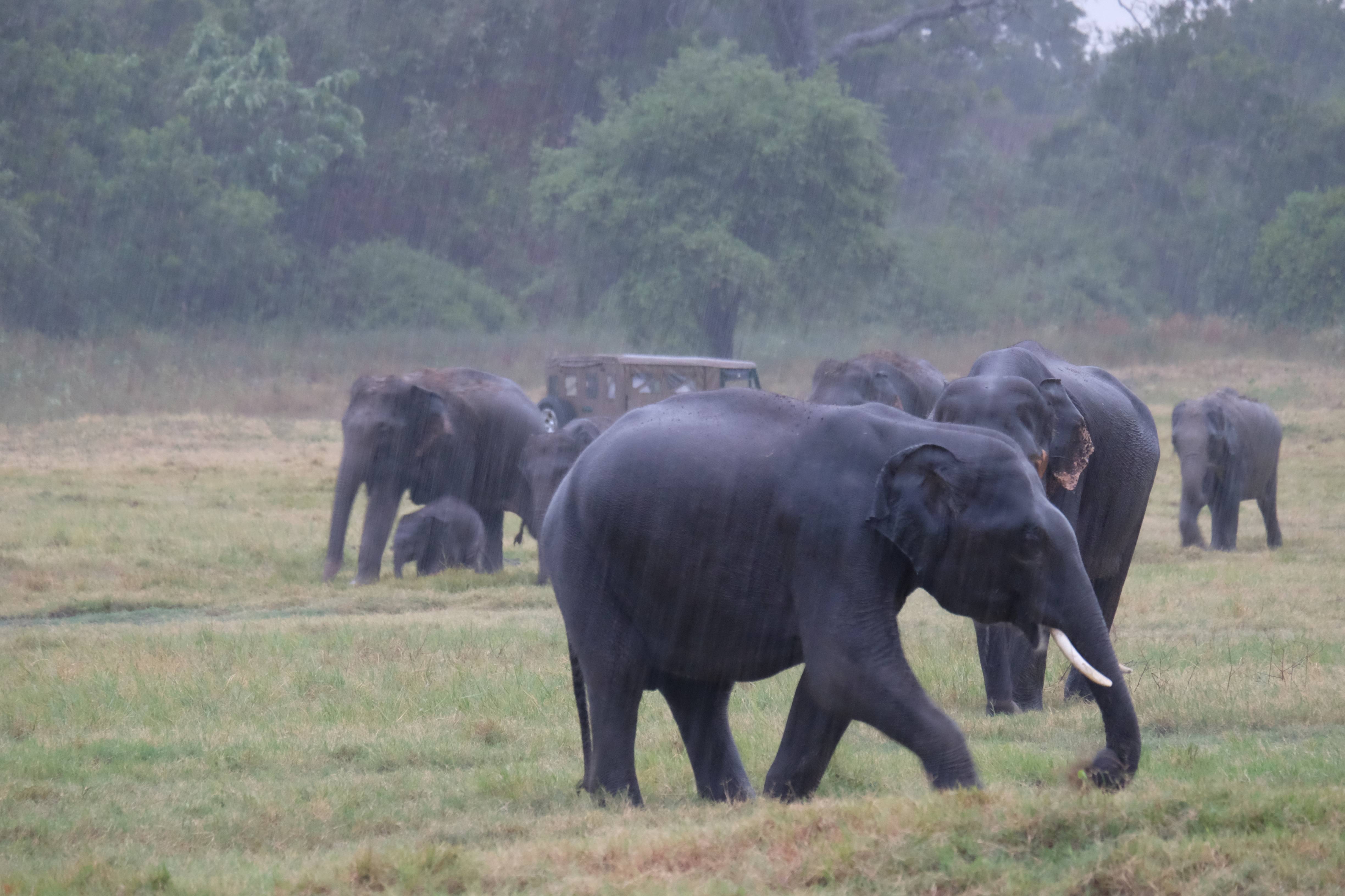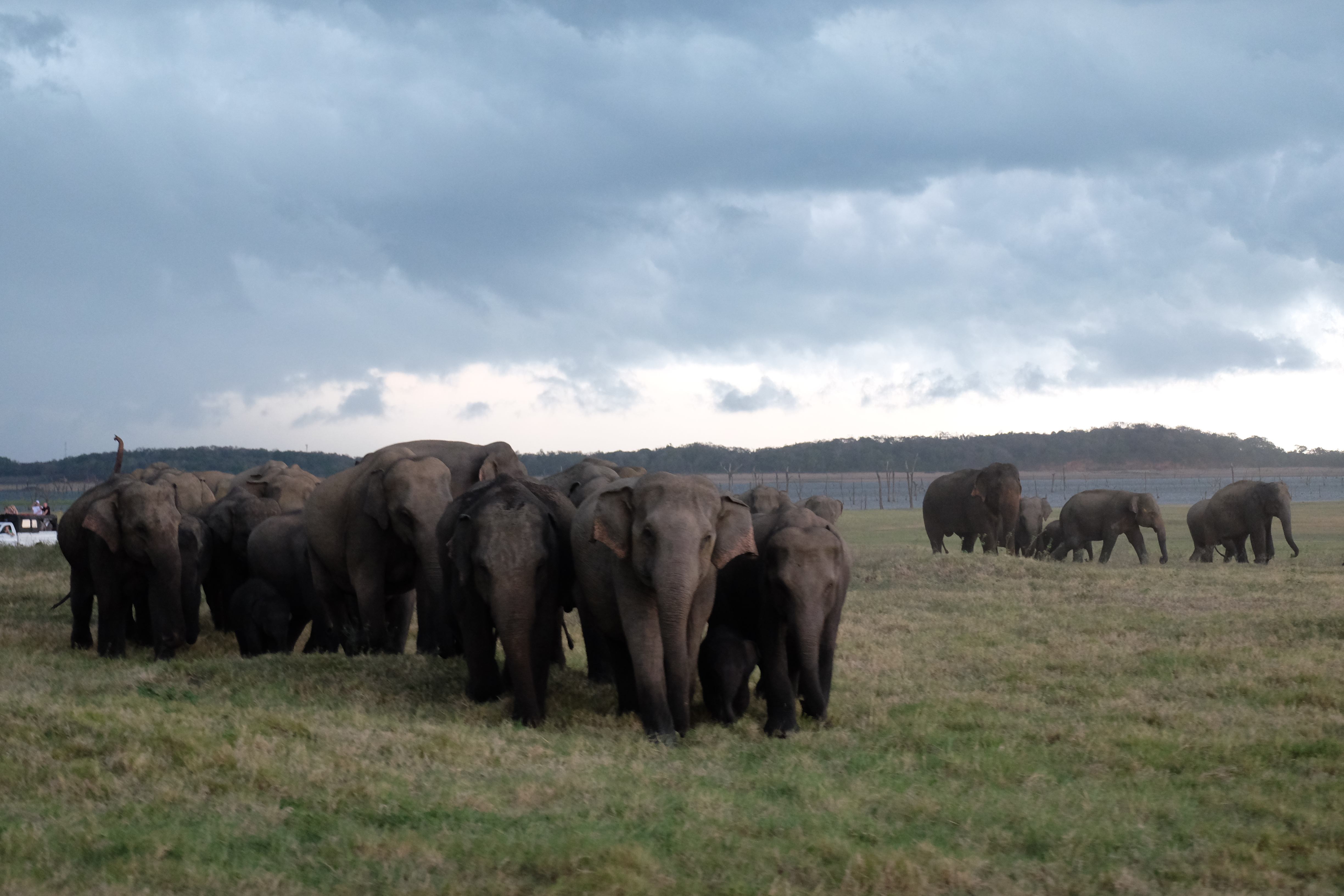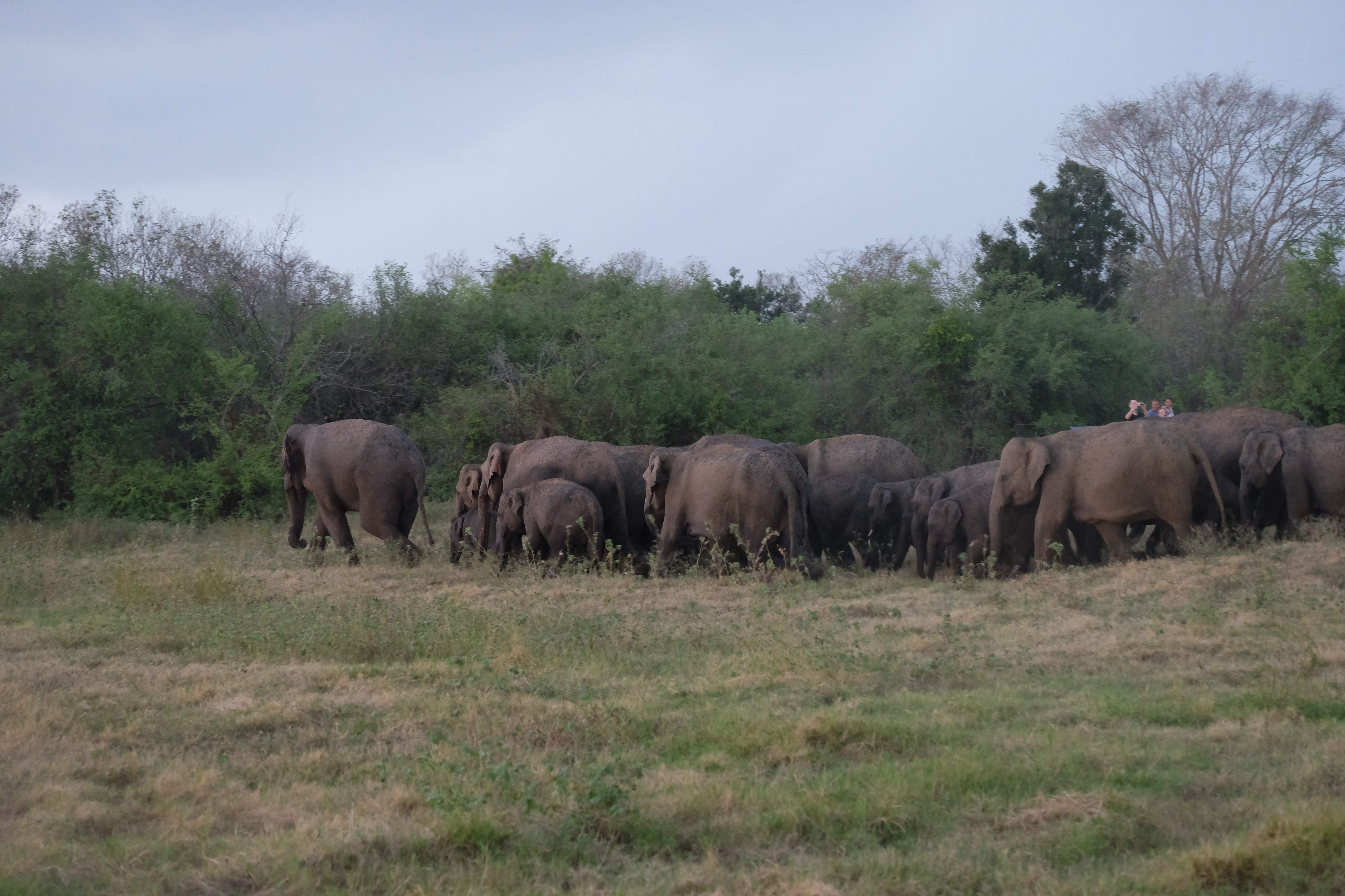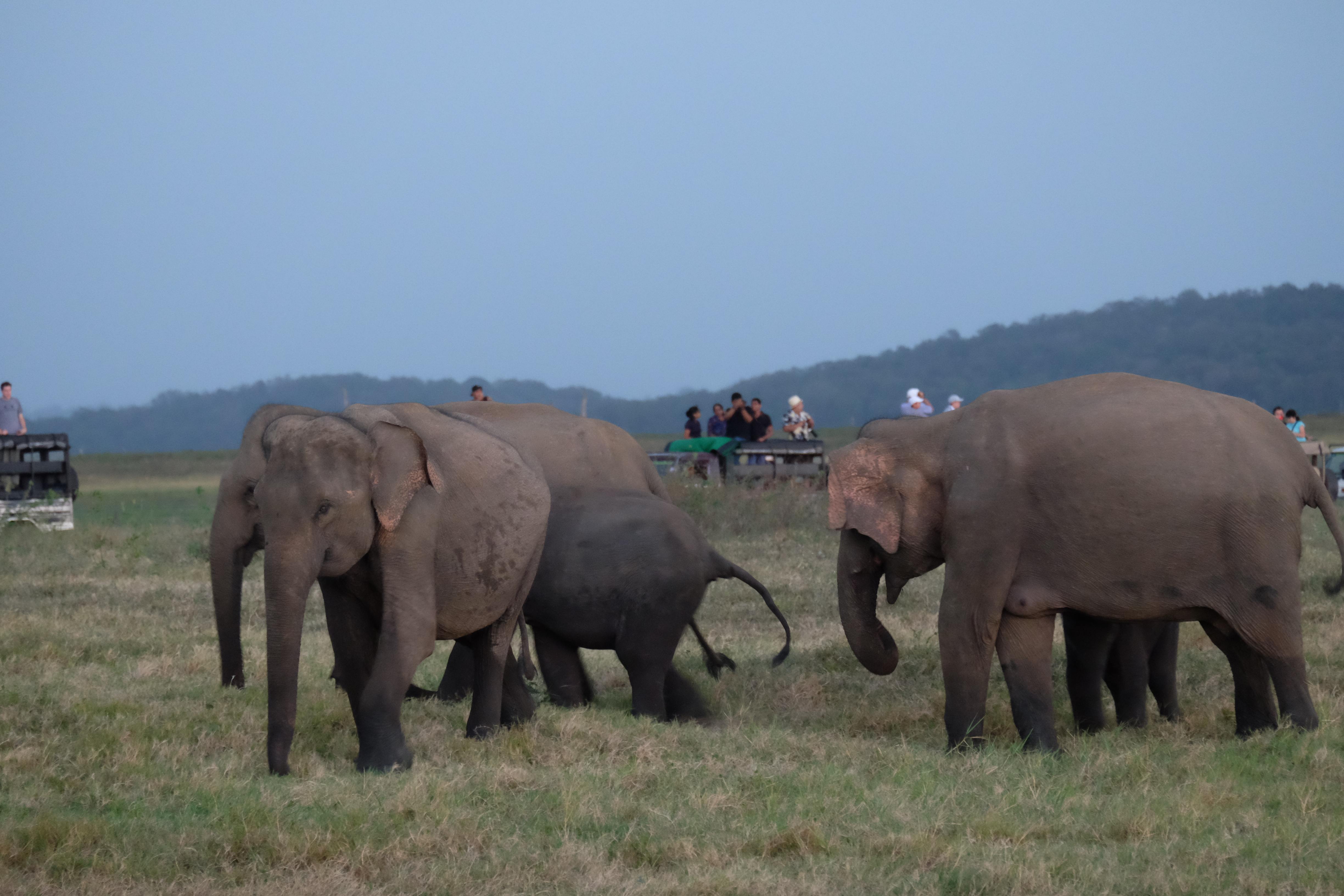 Dupa masa venise in sfarsit momentul mult asteptat: safari pentru a vedea elefanti. De fapt initial vroiam sa mergem in parcul national Minneriya, insa soferii de jeep fiind localnici ne-au sfatuit sa facem safari-ul in parcul national Kaudulla pentru ca majoritatea elefantilor se mutasera in acea zona. In acea regiune sunt trei parcuri nationale invecinate iar elefantii se muta dintr-unul in altul in functie de cantitatea de apa disponibila. Cand ne-am decis sa facem safari ni s-au propus doua variante: dis de dimineata sau dupa-masa, insa tot localnicii ne-au sfatuit sa optam pentru varianta de dupa masa, avand in vedere ca dimineata elefantii ies scurt din jungla pentru a se adapa, insa nu stau prea mult la marginea apei, intrand rapid din nou in desisurile tropicale pentru a se feri de soare. Dupa masa insa, setosi dupa o zi cu temperaturi ridicate ies din nou sa se adape si dornici de un dus rece vor incerca chiar sa se racoreasca in apa, oferindu-ti astfel scene mult mai inedite. Bineinteles ca ne-am decis sa mergem dupa masa in safari.