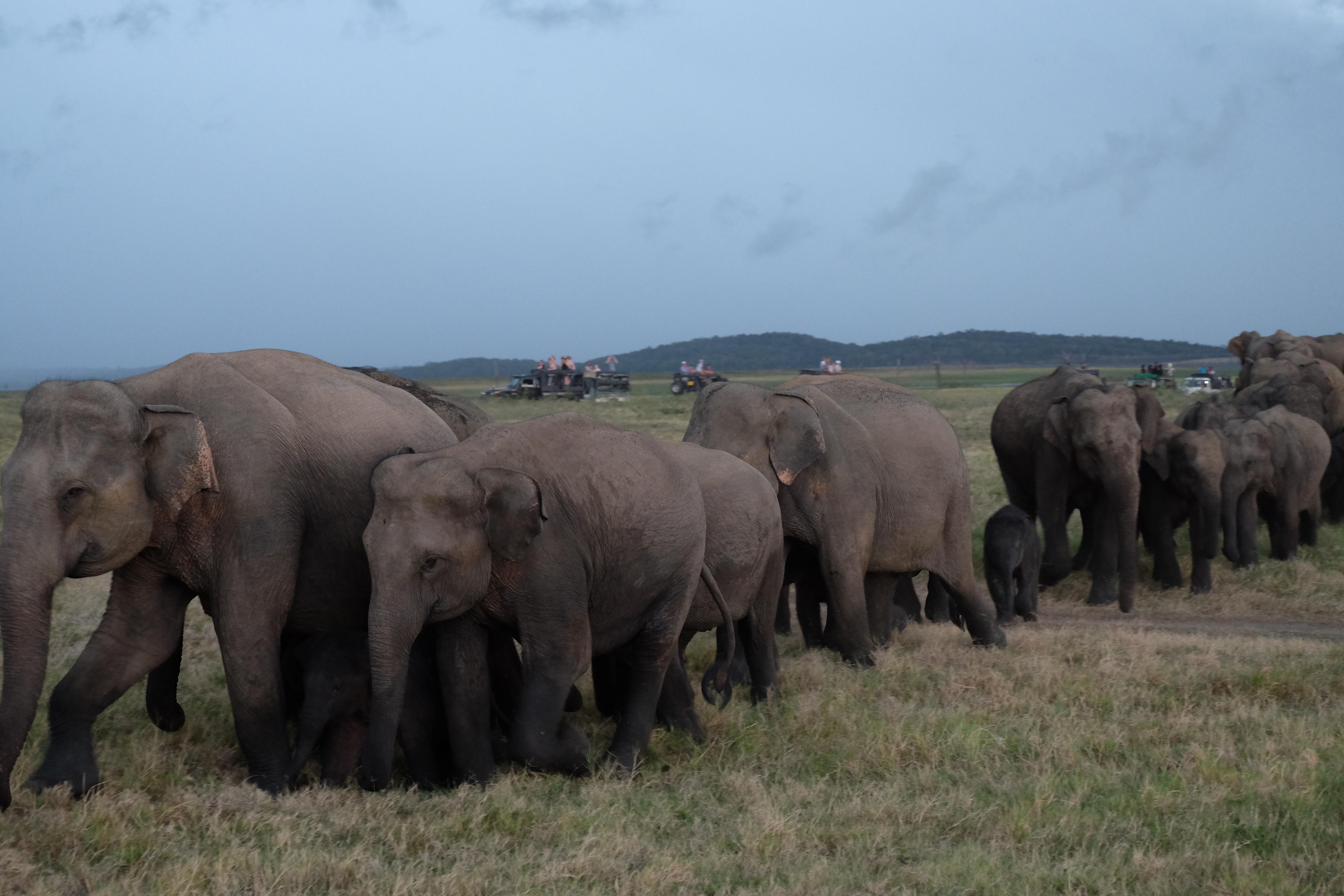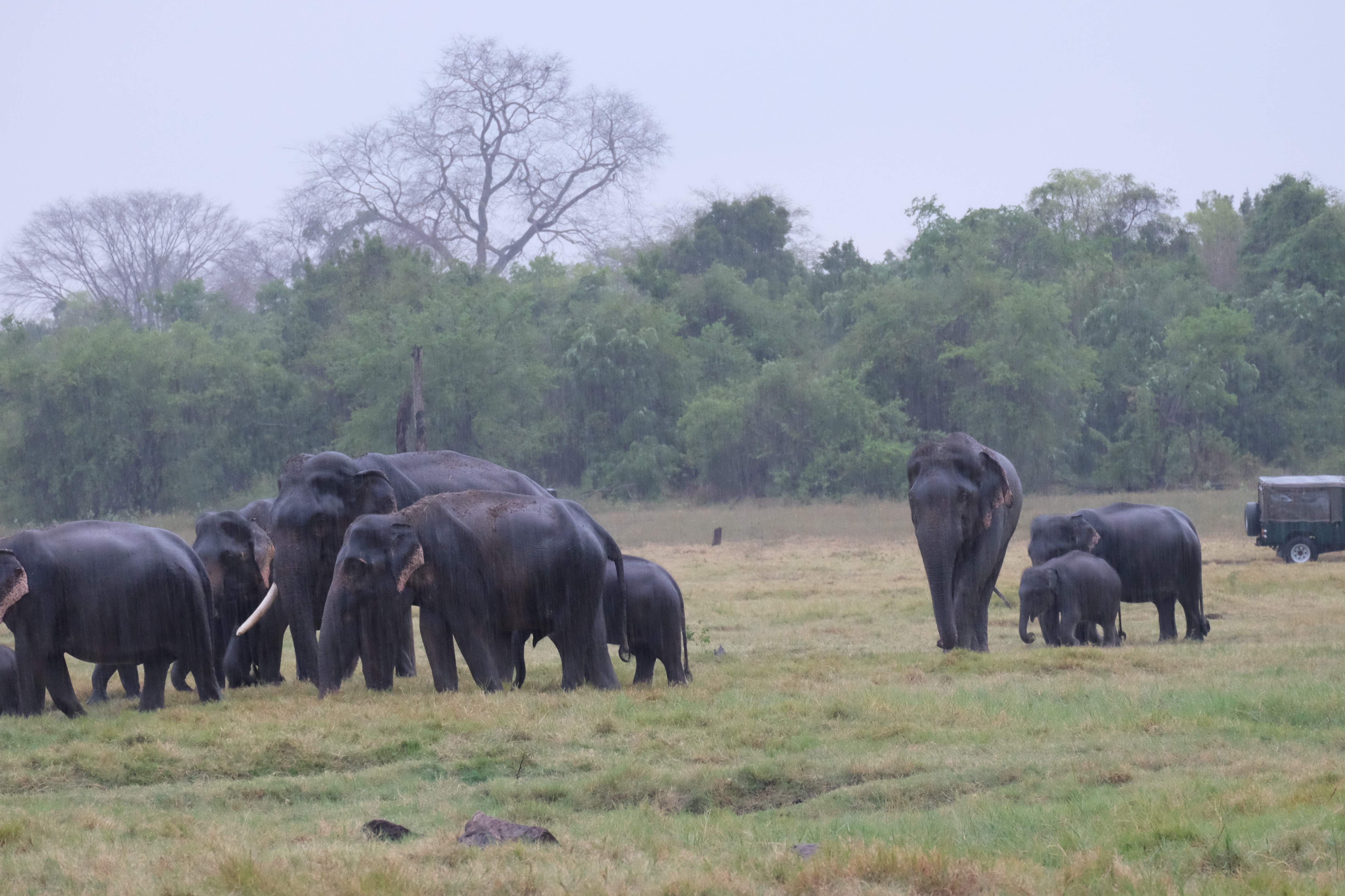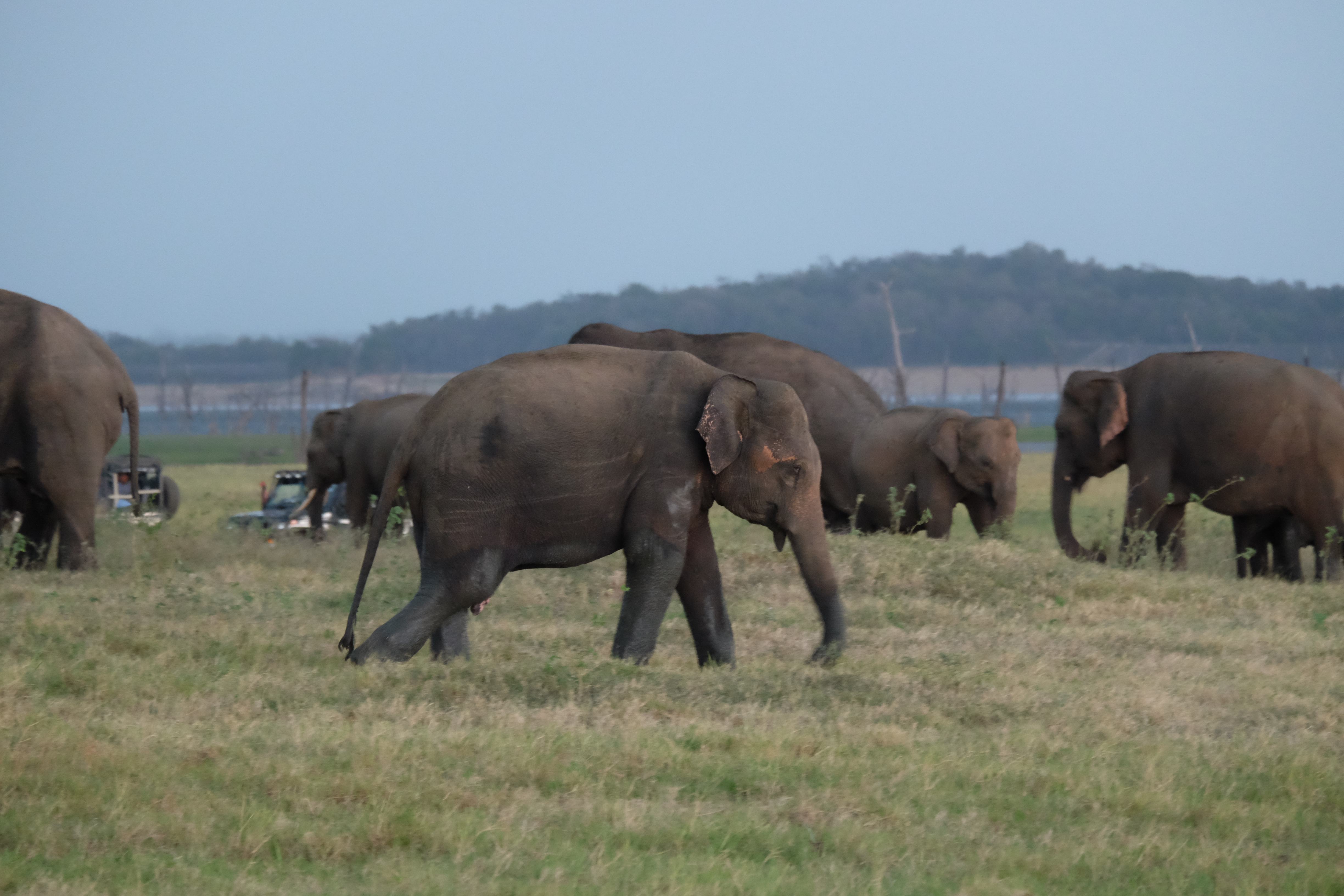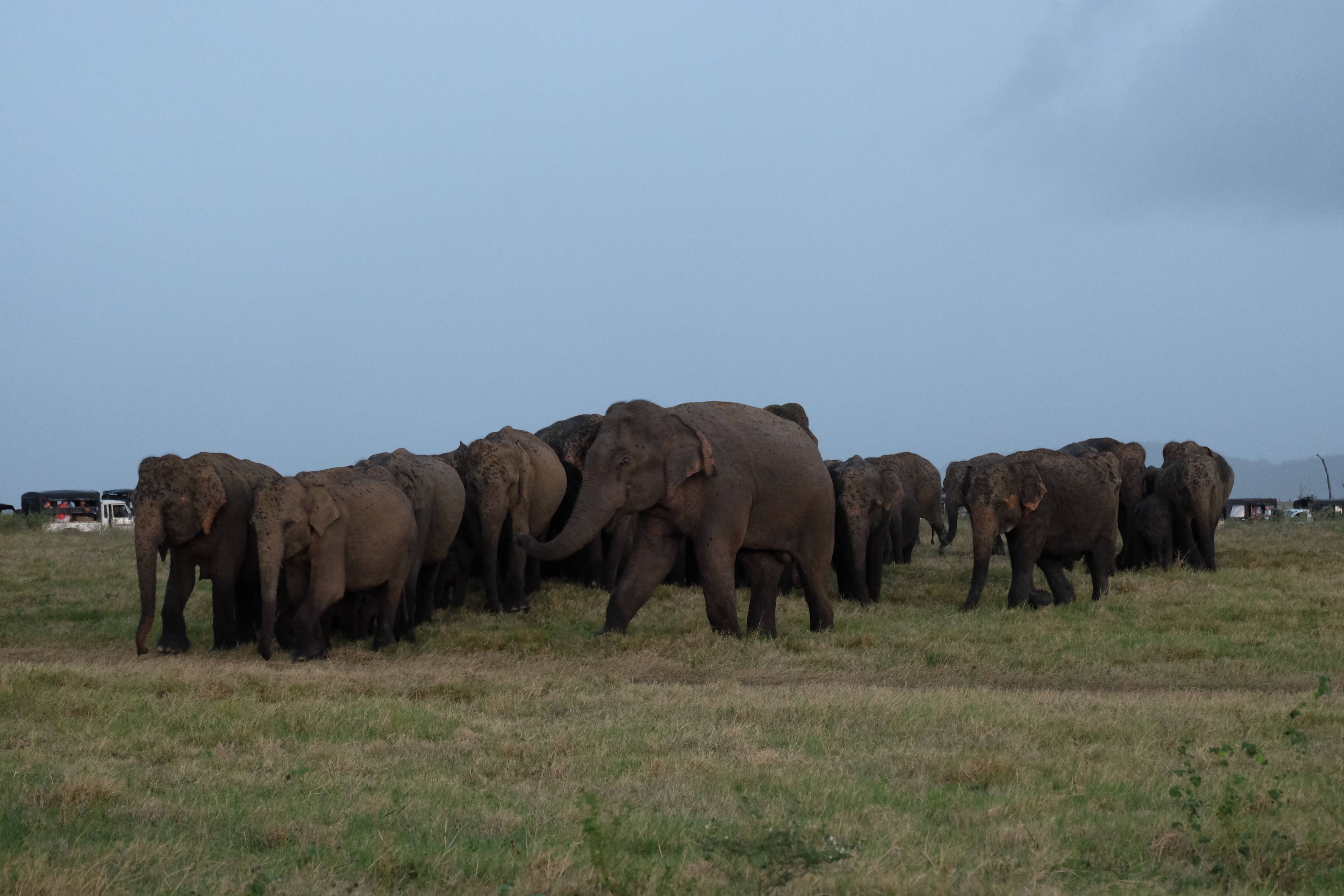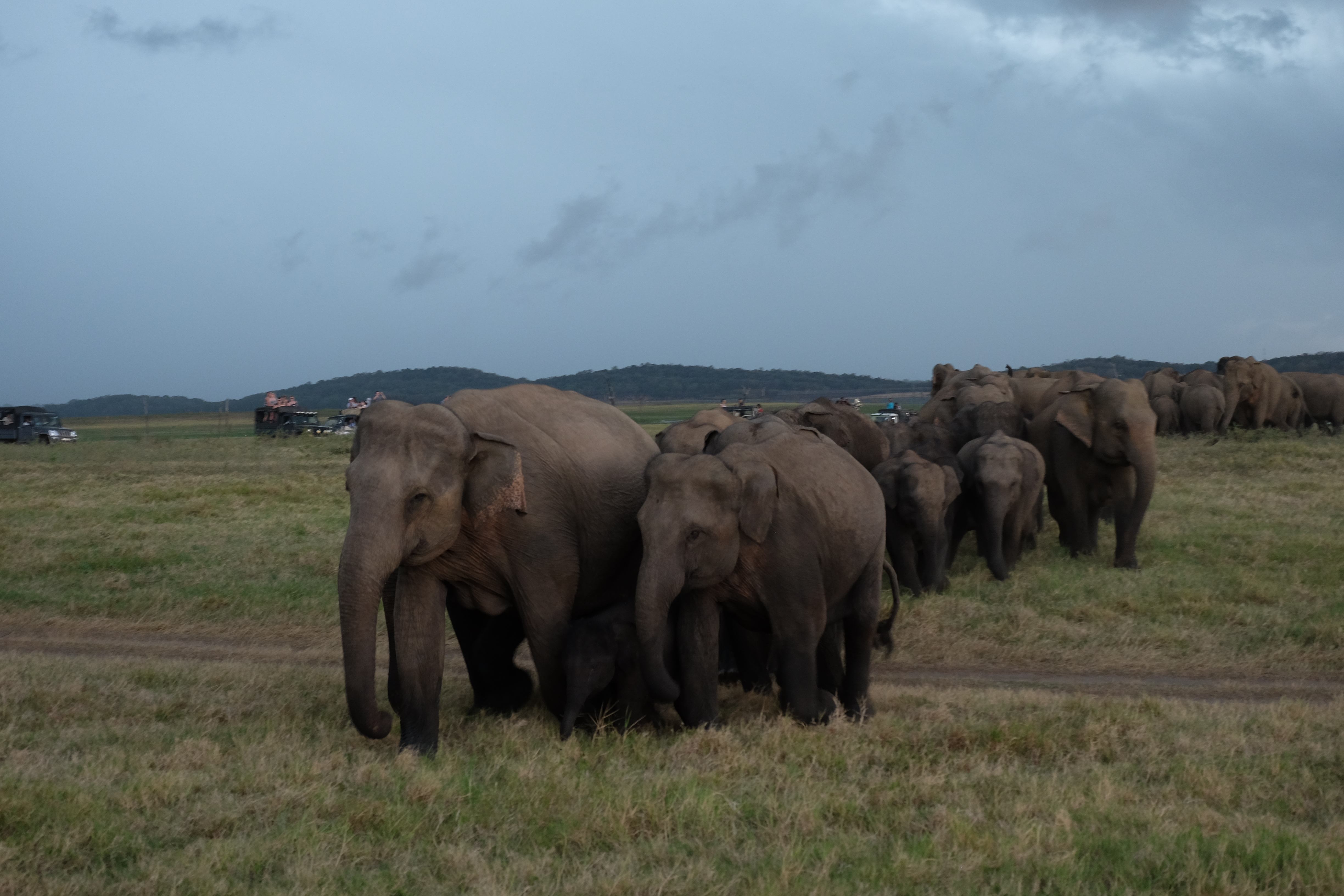 Dupa masa venise in sfarsit momentul mult asteptat: safari pentru a vedea elefanti. De fapt initial vroiam sa mergem in parcul national Minneriya, insa soferii de jeep fiind localnici ne-au sfatuit sa facem safari-ul in parcul national Kaudulla pentru ca majoritatea elefantilor se mutasera in acea zona. In acea regiune sunt trei parcuri nationale invecinate iar elefantii se muta dintr-unul in altul in functie de cantitatea de apa disponibila. Cand ne-am decis sa facem safari ni s-au propus doua variante: dis de dimineata sau dupa-masa, insa tot localnicii ne-au sfatuit sa optam pentru varianta de dupa masa, avand in vedere ca dimineata elefantii ies scurt din jungla pentru a se adapa, insa nu stau prea mult la marginea apei, intrand rapid din nou in desisurile tropicale pentru a se feri de soare. Dupa masa insa, setosi dupa o zi cu temperaturi ridicate ies din nou sa se adape si dornici de un dus rece vor incerca chiar sa se racoreasca in apa, oferindu-ti astfel scene mult mai inedite. Bineinteles ca ne-am decis sa mergem dupa masa in safari.