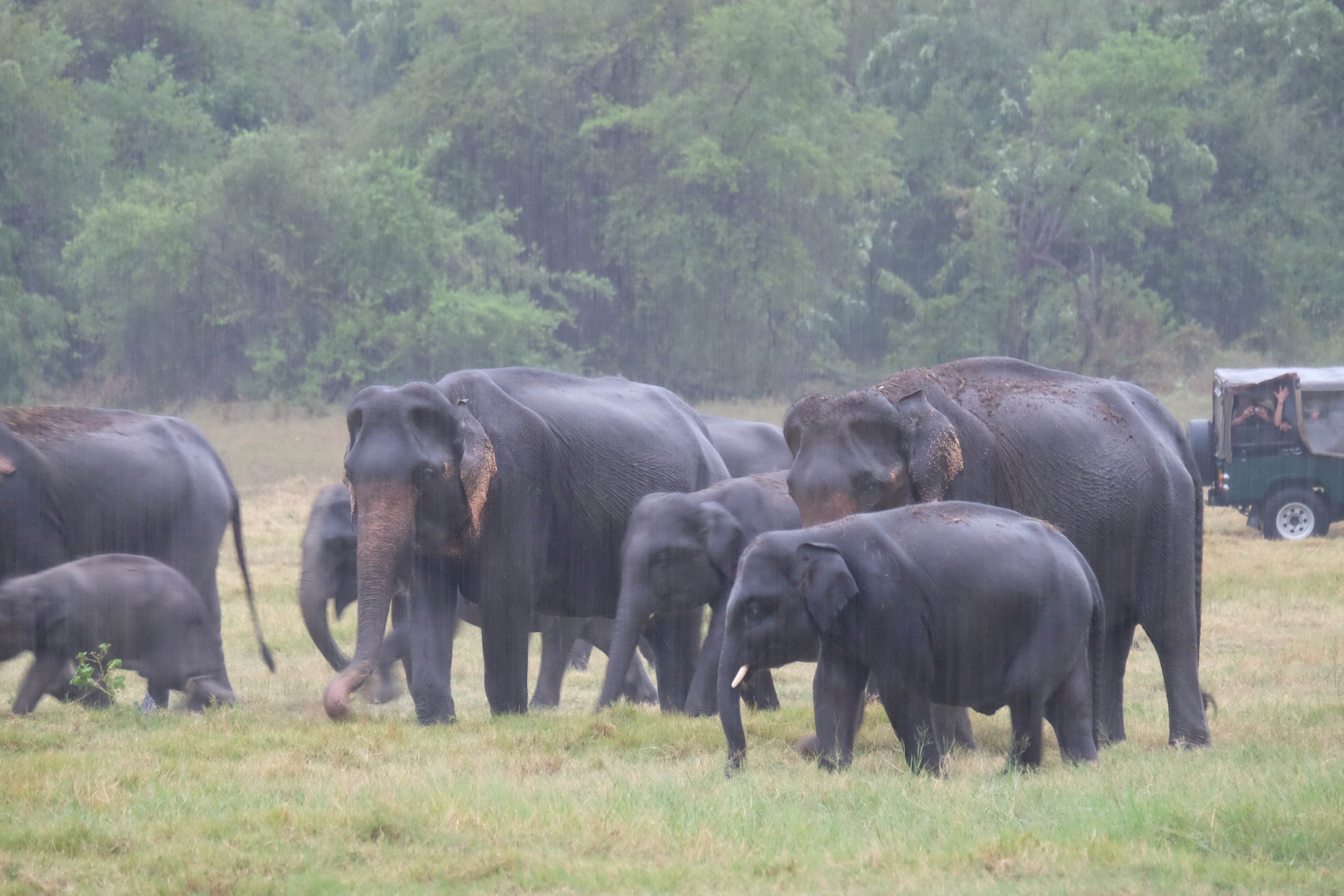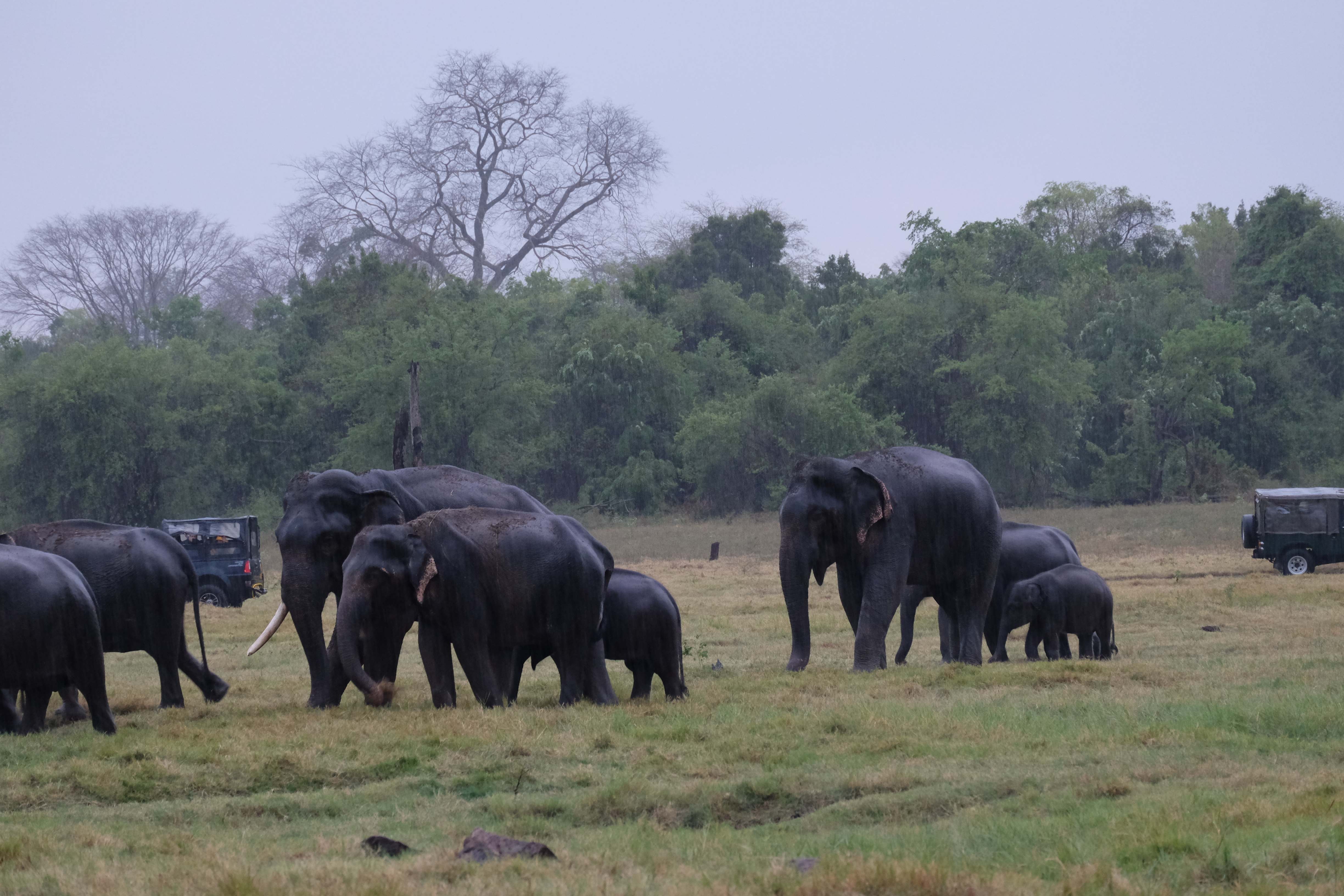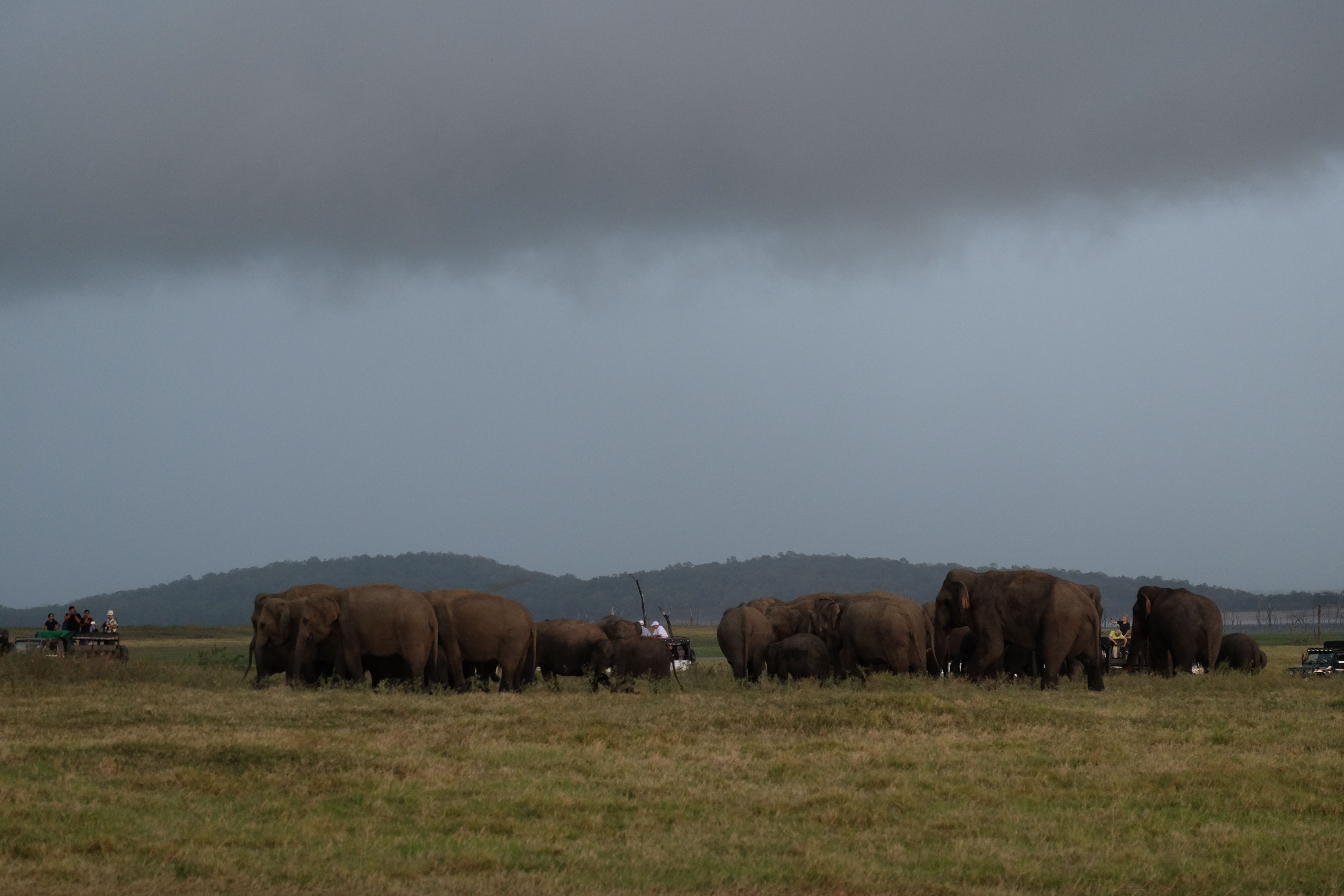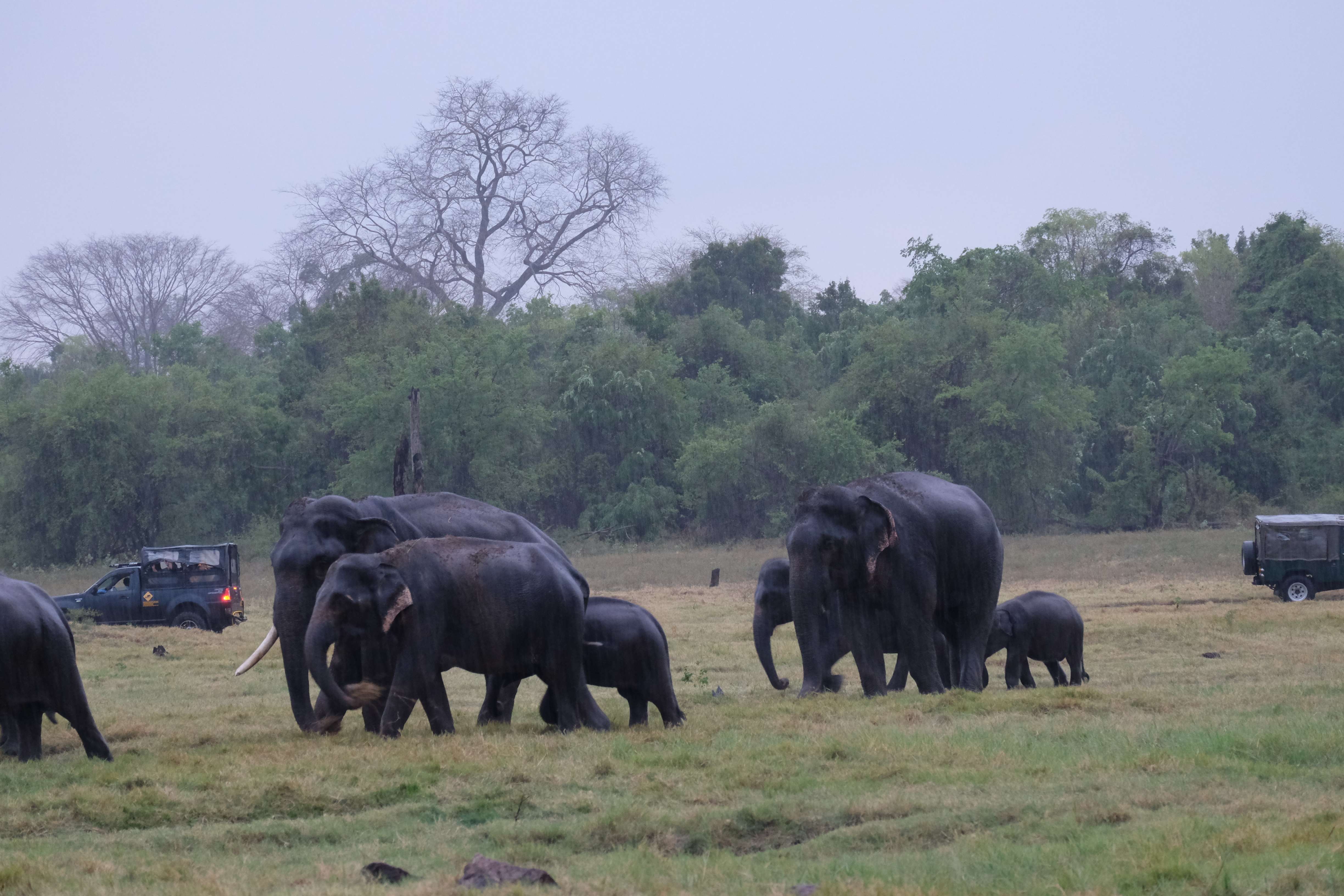 Dupa masa venise in sfarsit momentul mult asteptat: safari pentru a vedea elefanti. De fapt initial vroiam sa mergem in parcul national Minneriya, insa soferii de jeep fiind localnici ne-au sfatuit sa facem safari-ul in parcul national Kaudulla pentru ca majoritatea elefantilor se mutasera in acea zona. In acea regiune sunt trei parcuri nationale invecinate iar elefantii se muta dintr-unul in altul in functie de cantitatea de apa disponibila. Cand ne-am decis sa facem safari ni s-au propus doua variante: dis de dimineata sau dupa-masa, insa tot localnicii ne-au sfatuit sa optam pentru varianta de dupa masa, avand in vedere ca dimineata elefantii ies scurt din jungla pentru a se adapa, insa nu stau prea mult la marginea apei, intrand rapid din nou in desisurile tropicale pentru a se feri de soare. Dupa masa insa, setosi dupa o zi cu temperaturi ridicate ies din nou sa se adape si dornici de un dus rece vor incerca chiar sa se racoreasca in apa, oferindu-ti astfel scene mult mai inedite. Bineinteles ca ne-am decis sa mergem dupa masa in safari.
