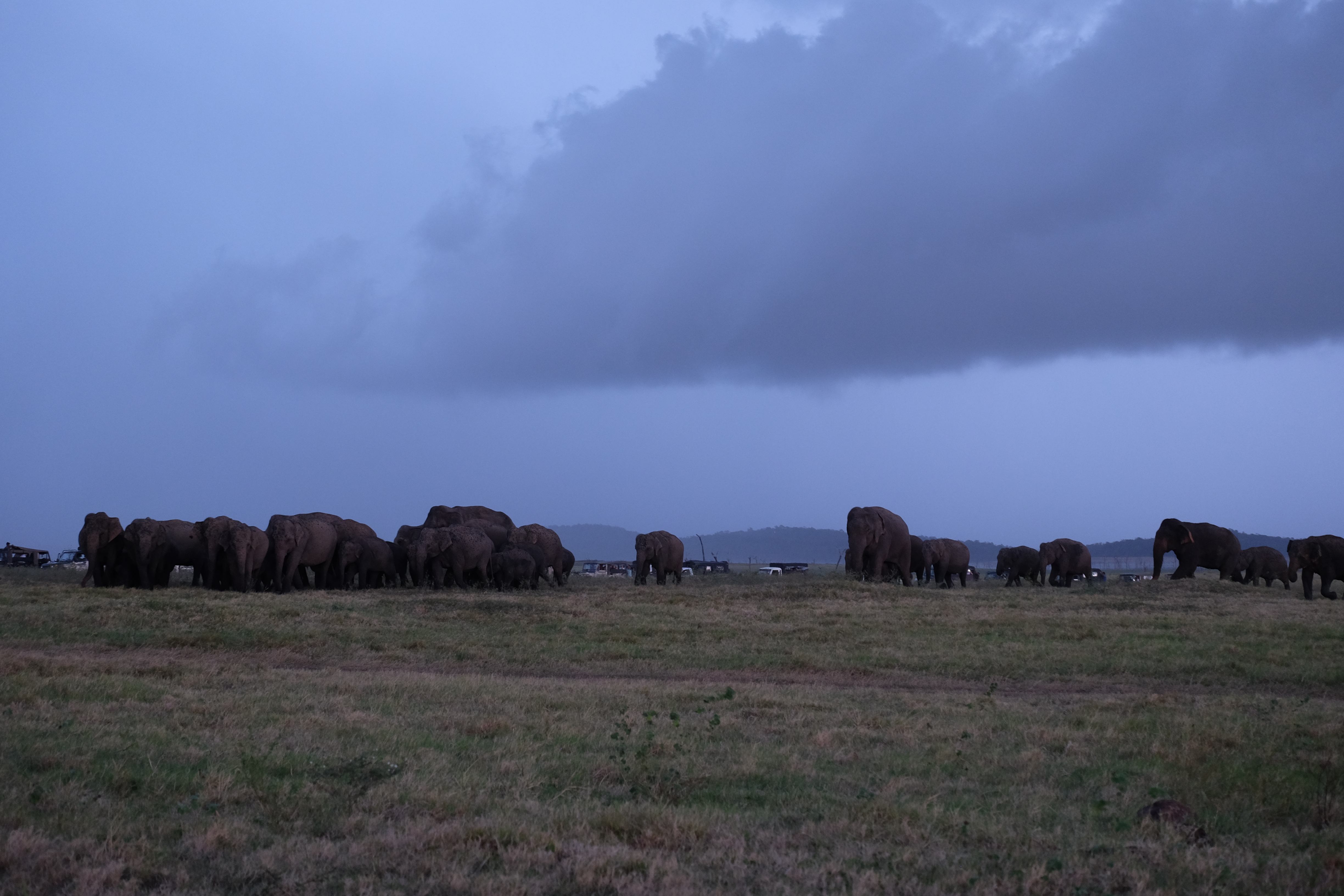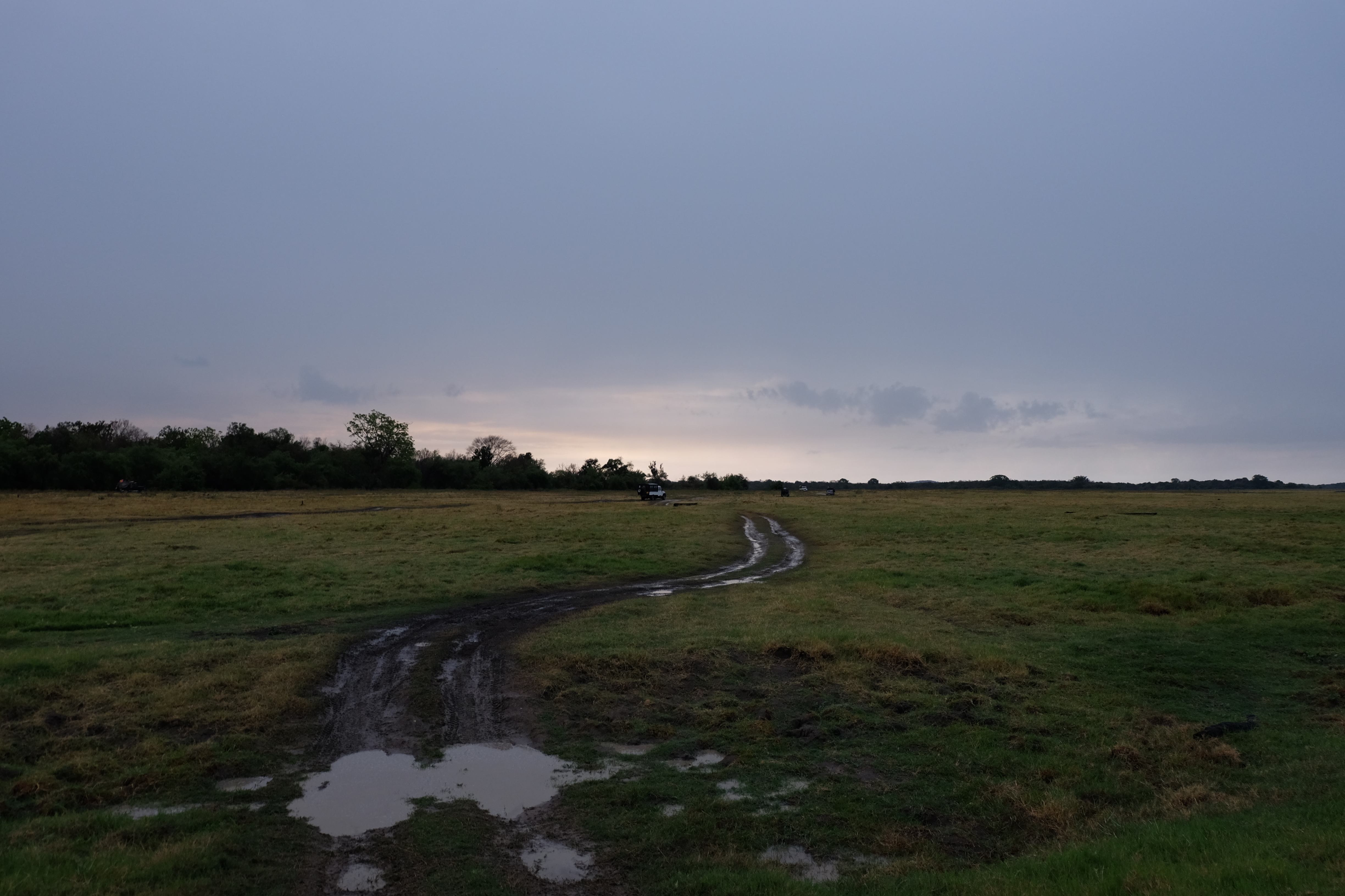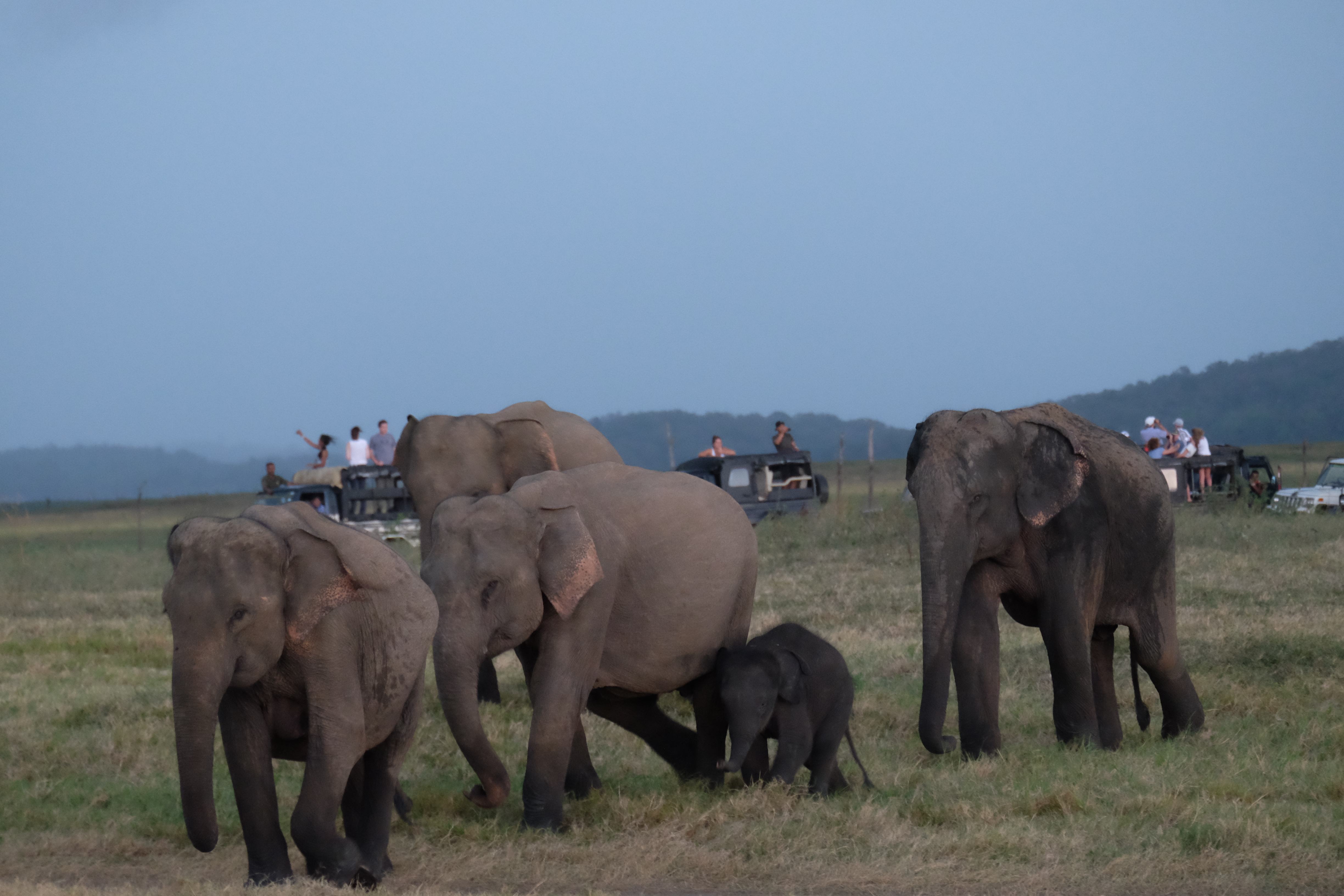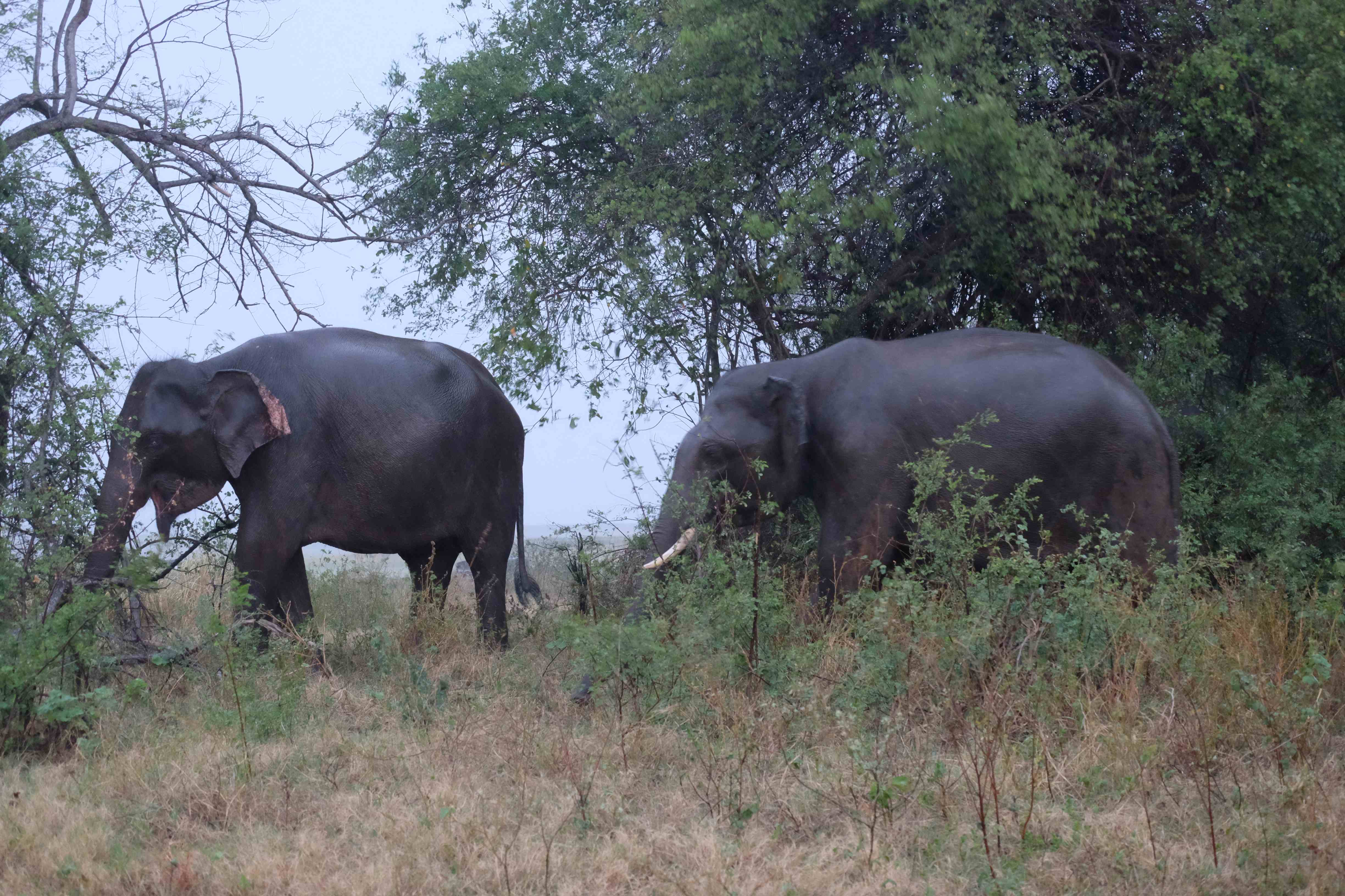 Dupa masa venise in sfarsit momentul mult asteptat: safari pentru a vedea elefanti. De fapt initial vroiam sa mergem in parcul national Minneriya, insa soferii de jeep fiind localnici ne-au sfatuit sa facem safari-ul in parcul national Kaudulla pentru ca majoritatea elefantilor se mutasera in acea zona. In acea regiune sunt trei parcuri nationale invecinate iar elefantii se muta dintr-unul in altul in functie de cantitatea de apa disponibila. Cand ne-am decis sa facem safari ni s-au propus doua variante: dis de dimineata sau dupa-masa, insa tot localnicii ne-au sfatuit sa optam pentru varianta de dupa masa, avand in vedere ca dimineata elefantii ies scurt din jungla pentru a se adapa, insa nu stau prea mult la marginea apei, intrand rapid din nou in desisurile tropicale pentru a se feri de soare. Dupa masa insa, setosi dupa o zi cu temperaturi ridicate ies din nou sa se adape si dornici de un dus rece vor incerca chiar sa se racoreasca in apa, oferindu-ti astfel scene mult mai inedite. Bineinteles ca ne-am decis sa mergem dupa masa in safari.
