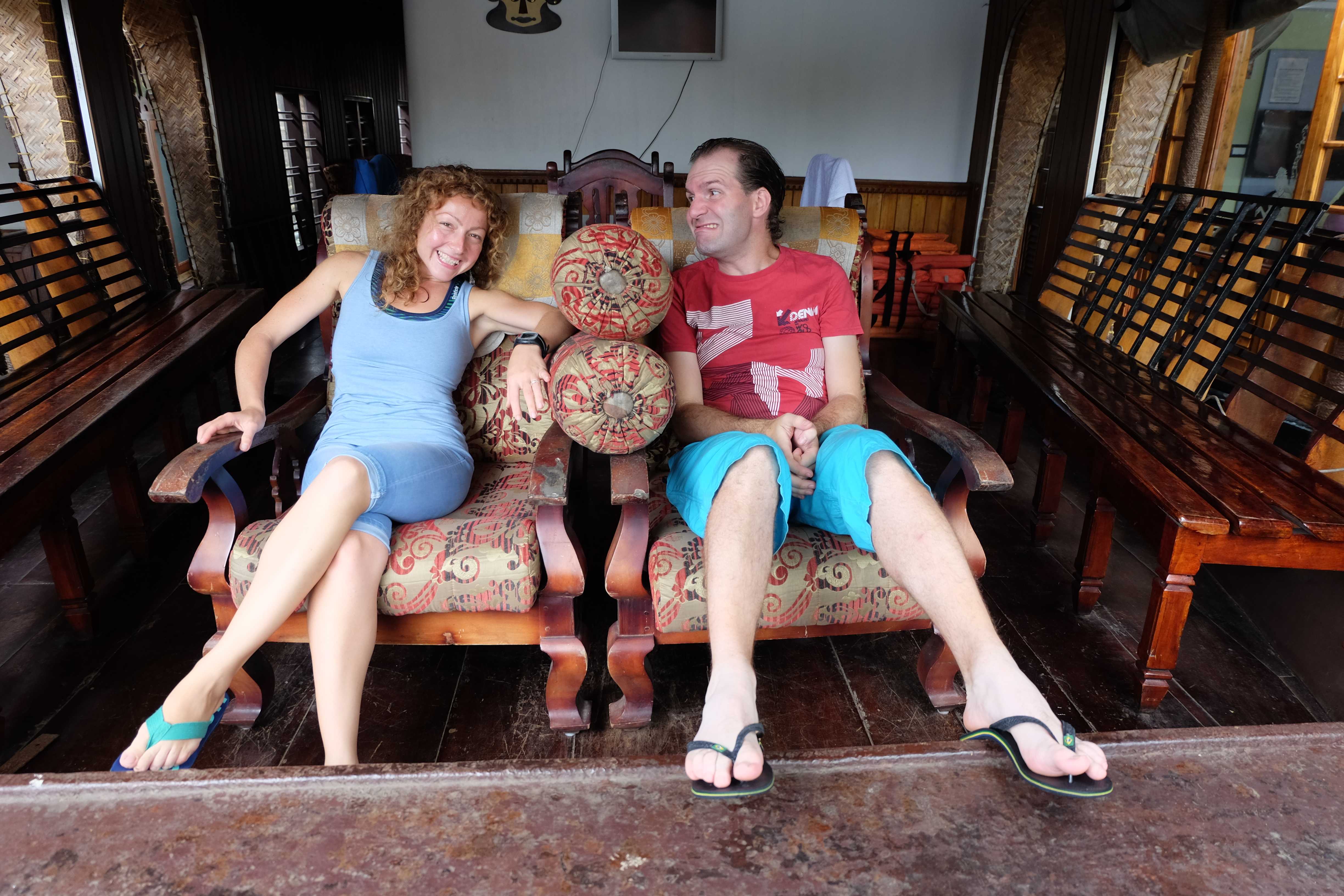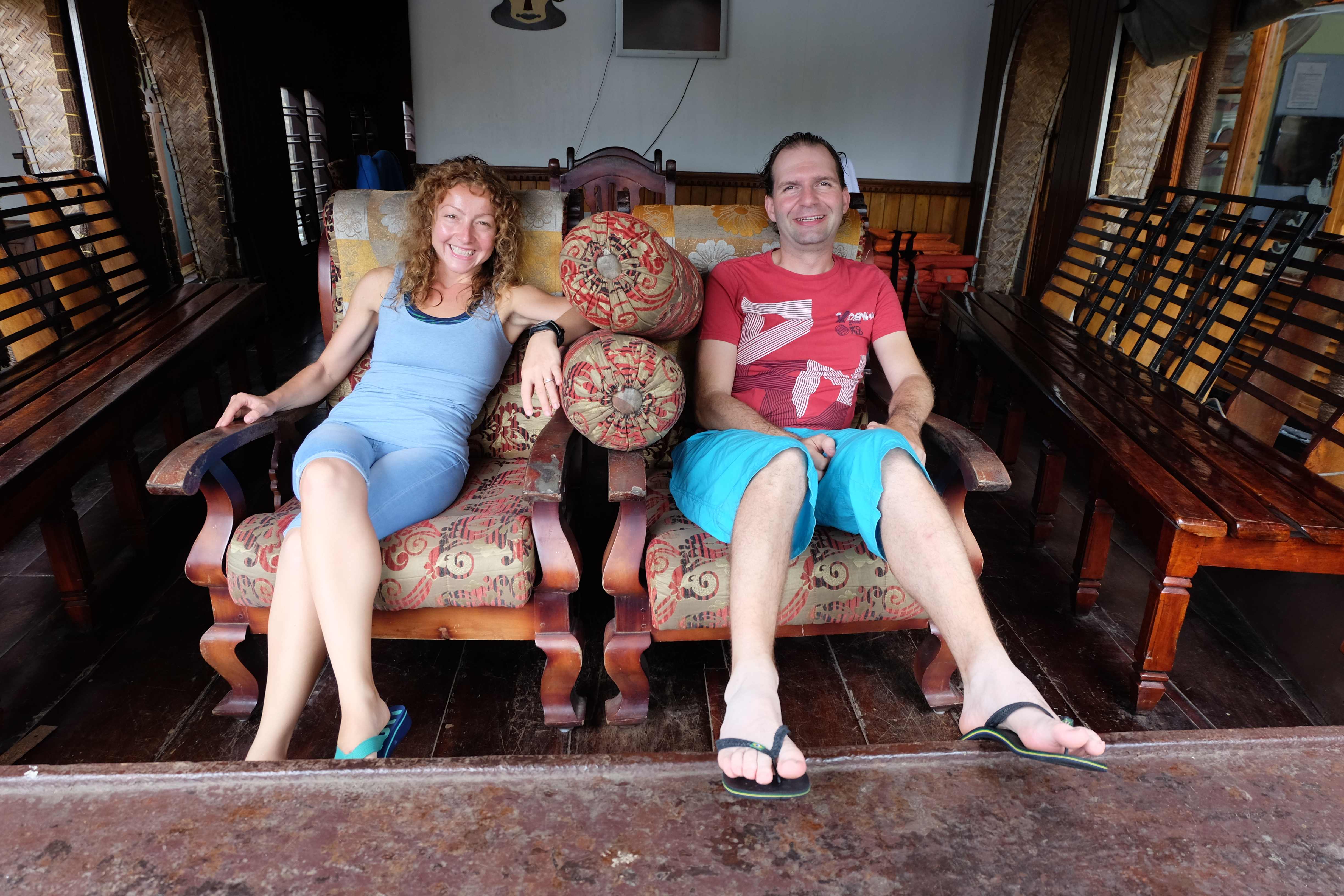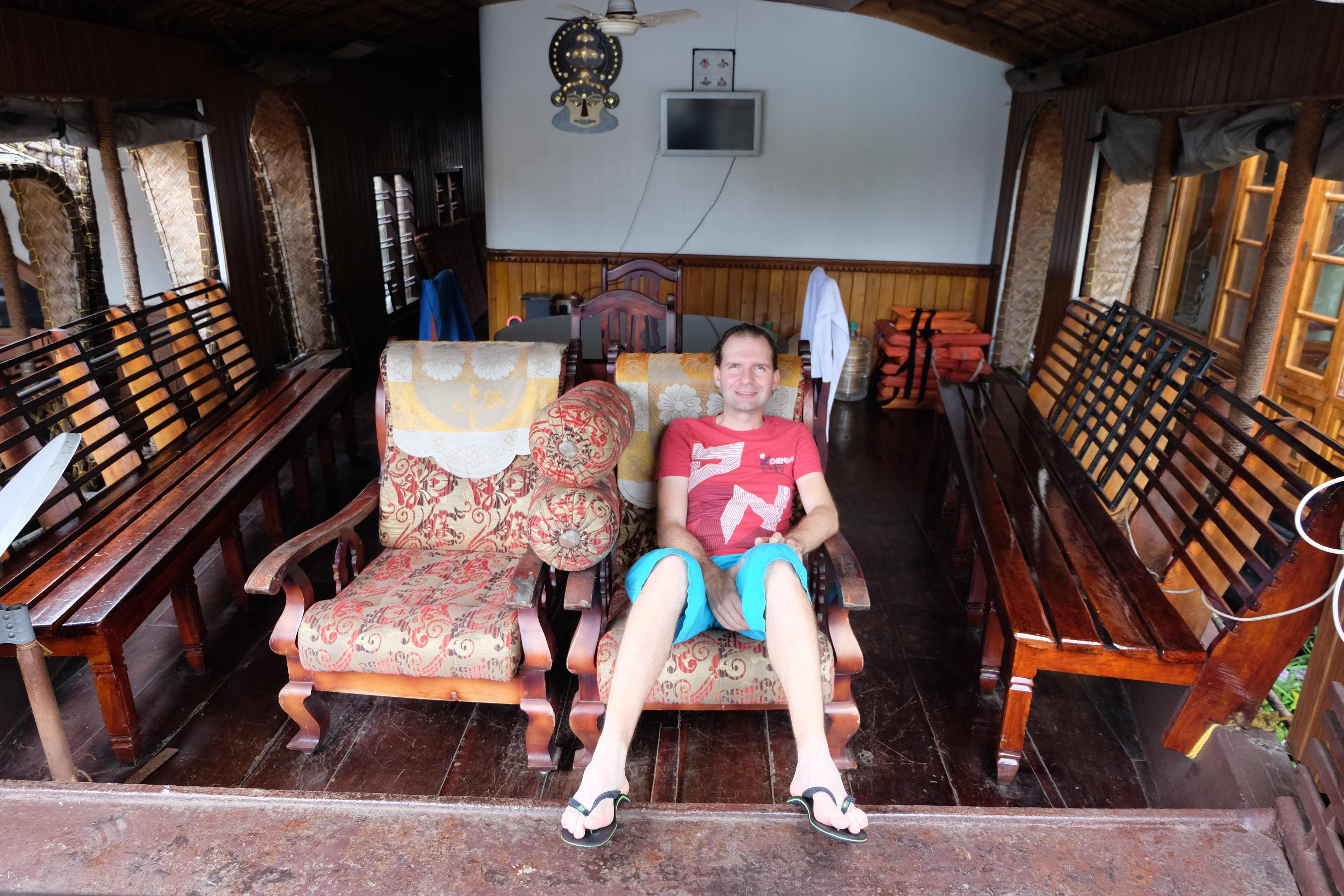 Beim Erstellen des Indien-Reiseplans ergab es sich zufälligerweise so, dass genau an Rafi’s Geburtstag ein Tag mit Übernachtung auf einem Bootshaus vorgesehen war. Also sollte es noch einmaliger werden! Totmüde nach der fast durchgemachten Nacht im äusserst bequemen Zug kamen wir irgendwann gegen den Mittag auf dem Bootshaus an. Hier durften wir endlich entspannen und mal 24 Stunden lang nichts machen… einfach sitzen, liegen, essen und atmen…. 🙂