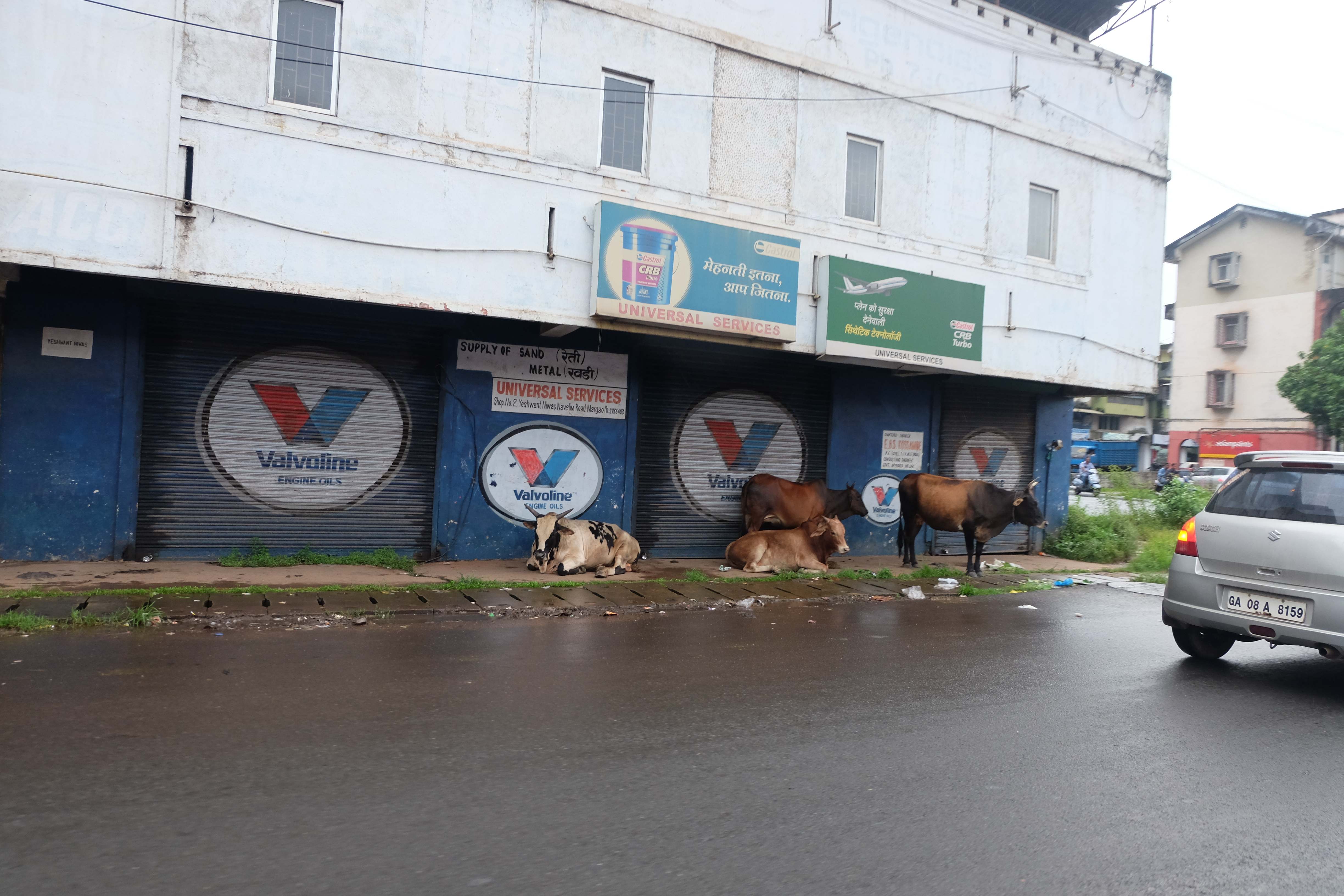 Goa… die Natur ist schön – das muss man zugeben. Sehr grün, sehr viel Wald und wenn man ausserhalb der Stadt ist auch sehr viel Ruhe und Gemütlichkeit. Die Städte und Dörfer sind dreckig. Nicht gerade so wie in der Provinz Tamil Nadu (Tiruchirappalli und Kanyakumari), aber trotzdem weit weg von zufriedenstellend. Die Strände sind…. Strände. Vermutlich ziemlich schön wenn es nicht gerade Regenzeit ist wie jetzt, aber sicher nichts Weltbewegendes! Die Leute sind… unterschiedlich, teilweise komisch –  eben, in Indien weiss man ja nie, was einen erwartet. Einige Leute laufen nackt durchs Haus herum (wie unser Gastgeber), und tragen zur Erhöhung meines Alkoholkonsums bei, damit der Anblick überhaupt auszuhalten ist, andere haben eine Obsession: „Sir, Foto“… und wirken so unhöflich dabei, dass einem gerade die lustigen Chinesen in den Sinn kommen, die aber wussten wie danach fragen und deswegen ihr Selfie mit uns sehr oft auch bekamen. Die einen wissen nichts von wegen Händler sein und Geschäfte machen, warten auf den grossen Deal und wollen uns abzocken indem sie 2 Tage Miete für einen Scooter verlangen wenn wir diesen um 21 statt um 18 Uhr am Abend abgeben wollen, die anderen warten auf uns an der Strassenecke, machen uns ein unschlagbares Preisangebot und wollen Geld verdienen, sind aber der Meinung ein Helm sei bloss Dekorationssache und nur für den Fahrer nötig. Der Passagier hinten brauche so etwas nicht, da der Stauraum unter dem Sitz nicht gross genug sei für zwei Helme und das Tragen dessen somit sinnlos werde. Goa ist auch abenteuerlich und abwechslungsreich: mal trifft man Kühe auf der Strasse, die einem den Weg versperren, mal begegnet man einer spazierenden und sich satt fressenden Schweinefamilie mitten in der Stadt. Aber lassen wir diesmal die Bilder den Ort beschreiben…