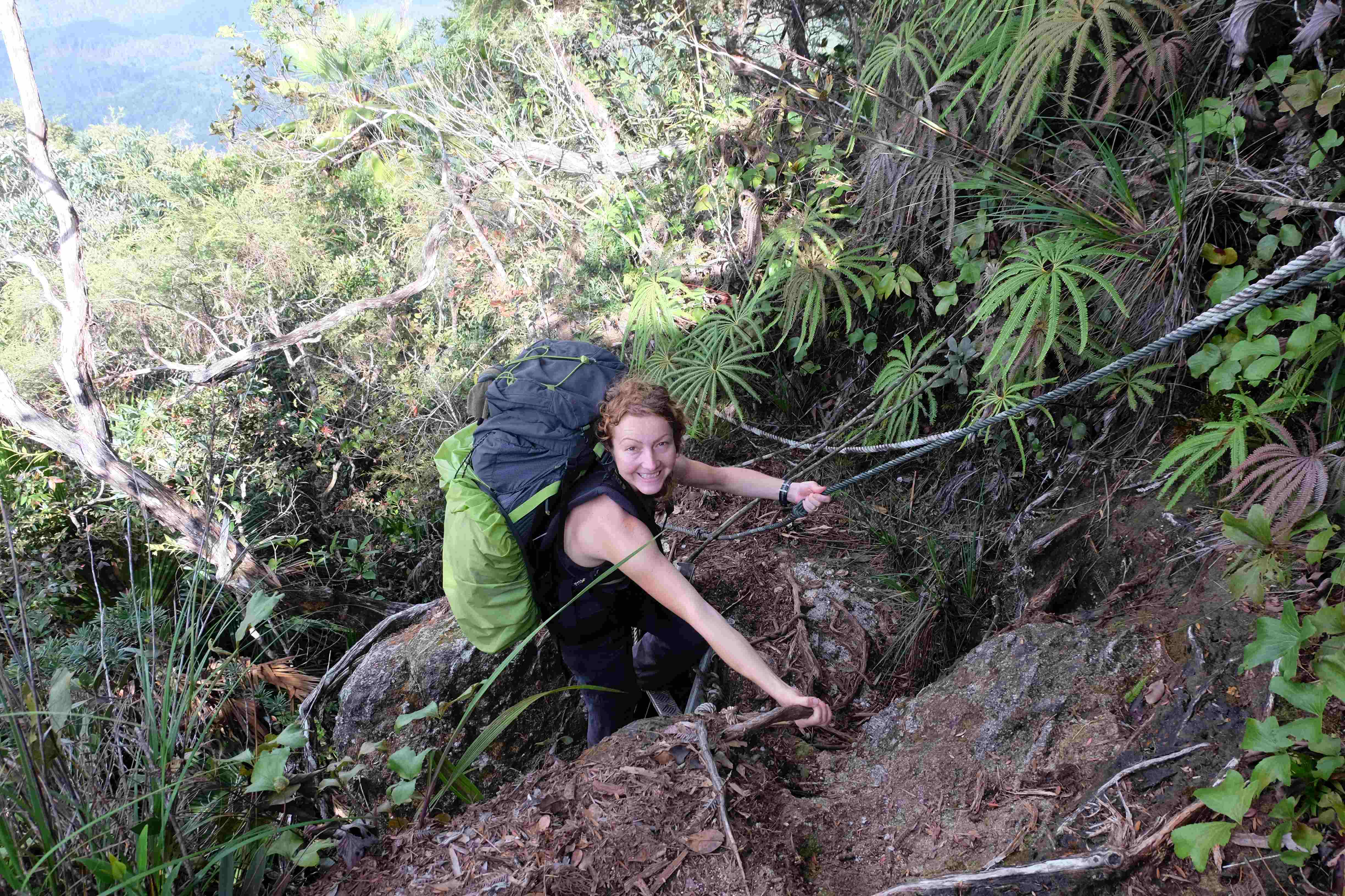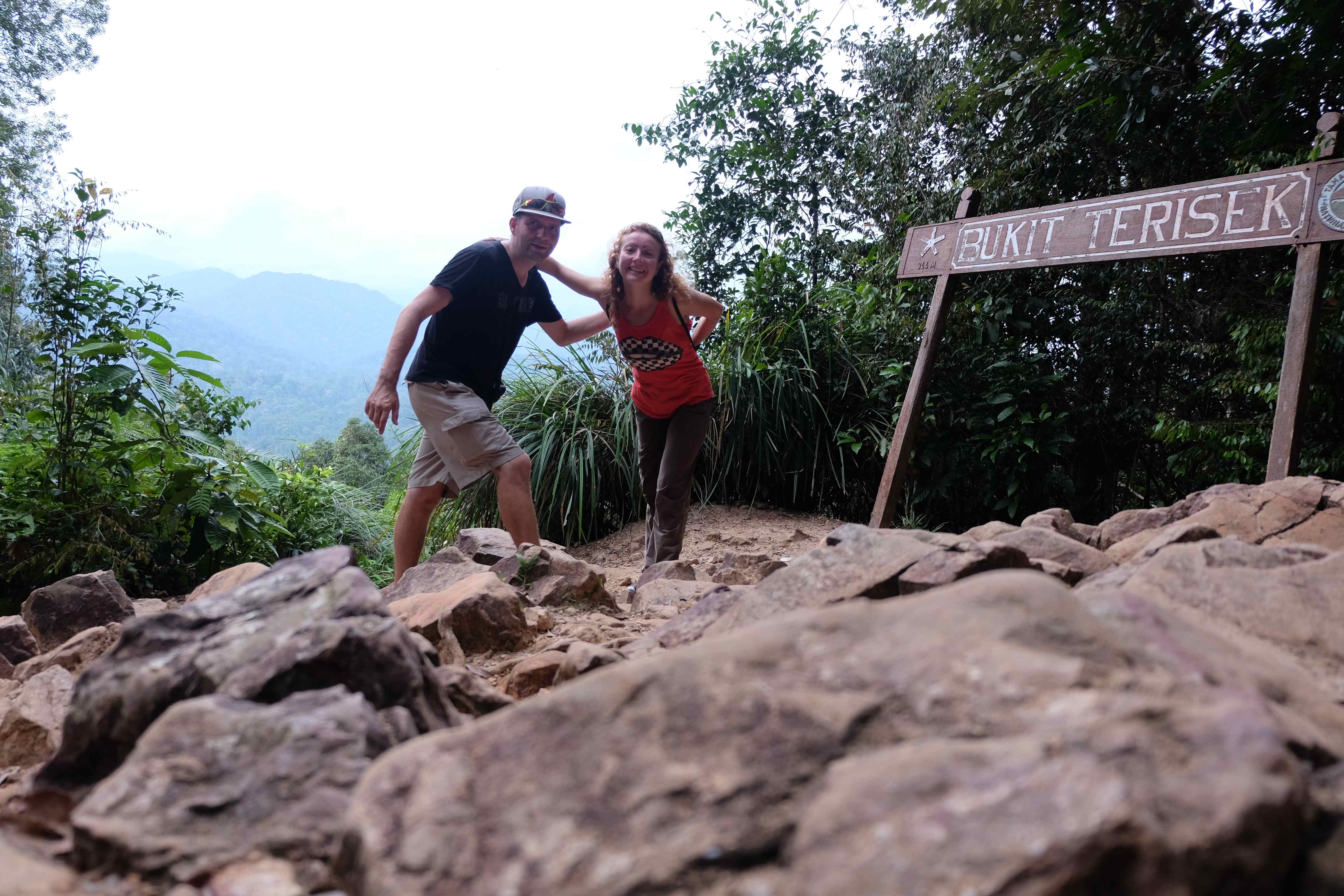 Es geht los! Am Morgen darauf verliessen wir das kleine Dschungeldorf Kuala Tahan und machten uns auf den langen Weg zum Summit. Das klingt lächerlich, oder? Summit eines 2000ers… Nach der ersten Stunde wurde uns allerdings klar: wir waren Idioten! Der Summit und der Berg an sich mögen wohl lächerlich sein, die Höhe ein Kinderspiel, der Dschungel aber, den wir in seiner gesamten Länge durchqueren mussten um den Berg zu erreichen: tödlich! Dass man hier nach 5 minütiger Bewegung direkt unter eine Dusche gestellt und gebadet wird, das gilt für diese Tour nicht. Eher: man wird unter einen Wasserfall gestellt und mit heissem, salzigem Wasser durchnässt während man mit kochender, 90% Feuchtigkeit enthaltender Luft angeblasen wird. Währenddessen erhält man etliche Saugnäpfe an den Fussgelenken befestigt, die einem eine kostenlose Blutentnahme anbieten: sog. Blutegel (engl. Leech), die unbemerkt den Weg in die Schuhe und Socken finden und sich an deinem Blut vollsaugen. Das Ganze ist allerdings erst die Aufwärm-Phase. Jetzt wird es richtig ernst: wenn man leichter ist, da man weniger Blut im Körper mittragen muss, fängt man an für Olympia Hürdenspringen zu trainieren. Das Training muss aber immer viel anstrengender und krasser sein, als die Probe an sich. Wie man das im Dschungel schafft? Man nehme gefallene Baumstämme in allen möglichen Durchmessern und Höhen und platziere sie quer über den Laufpfad. Man bringe dann 2 Idioten wie Rafi und Ina, die sich für Rambo 2 hielten und die Tour machen wollten und schaue dann ihnen zu, wie sie alle 10 m darüber springen müssen. Aufgrund der teilweise sehr grossen Durchmesser oben erwähnter Stämme wurde des Öfteren für die Gymnastik-Bodenübungen der nächsten Olympischen Spiele, insbesondere für Spagat trainiert. 🙂 Hat man diese ersten Babyübungen hinter sich, muss man das Ganze etwas härter machen, man will ja Rambo sein, oder? Also kommt „etwas“ Schlamm ins Spiel. Mit „etwas“ als Mengenangabe ist in etwa eine Quantität gemeint, um die gesamte Elefantenbevölkerung Asiens glücklich zu machen und ihr tägliche paradiesische Schlammbäder zu ermöglichen. Damit man sich nicht beschweren kann, dass man die ganze Zeit dreckige Kleider anhat, darf man sich den Schlamm natürlich auch wegwaschen, nämlich in den etlichen Flussüberquerungen, die einem bevorstehen wenn man sich für diese Tour entscheidet. Naive Rambo-Möchtegerns wie ich, die meinten, man könne doch einen Fluss barfuss überqueren werden hier eines Besseren belehrt: mit Rucksack, Wasser bis an der Taille und höllisch starken Strömungen auf die andere Uferseite zu kommen ist viel einfacher gesagt als getan. Dazu kommt noch die Tatsache, dass man voller Blasen an den Füssen ist, da die Wanderschuhe und Socken nie trocknen konnten und somit mehr und mehr rieben. Meint ihr, das war`s schon? Dann habt ihr aber die nassen Kleider vergessen, die über Nacht nie trockneten und morgens pflötschnass seiend wieder angelegt werden mussten. Ach ja, und unseren Gestank, der so stark war, dass er sogar die Mücken fernhielt. Und zum krönenden Abschluss: der Besteigungsteil des Ganzen! Irgendwie muss man ja auf die 2000 Höhenmeter kommen. Leider nicht einem Wanderweg folgend, wie wir es uns vorgestellt hatten, sondern an einem Tag, praktisch an einem Stück fast vertikale Felswände erklimmend, sich an Seilen hochziehend, (diesmal vertikal) Spagat machend … und natürlich dies x Mal wiederholend, da es vor dem Gipfel unzählige Male auf und ab ging. Na ja… kurz zusammengefasst: wir bestiegen einen 2000er aber mit sicherlich 5000 Höhenmetern! Den Schwierigsten der Welt vermutlich, wie lächerlich das auch klingen mag! Wir sahen und erlebten genug Dschungel für eine ganze Weile jetzt, wurden nicht zu Rambos sondern zu blasen-gequälten Wesen, die kaum noch einen Rucksack anlegen und Treppen laufen können, ohne dass es schmerzt… aber wir schafften unsere Tour in heldenhaften und horrenden 5 Tagen! Einmal und nie wieder! 7 Tage sind vermutlich für diese Tour erträglich und damit man sie noch geniessen kann (inkl. einiger schöner Pausen und Fotos oder Kleider in der Sonne trocknen) muss mit 9 oder 10 Tagen kalkuliert werden. Hier eine Foto-Dokumentation unseres Leidens. Lasst euch nicht von unserem Lächeln und der schönen Natur beirren: es war wortwörtlich eine Qual! 🙂