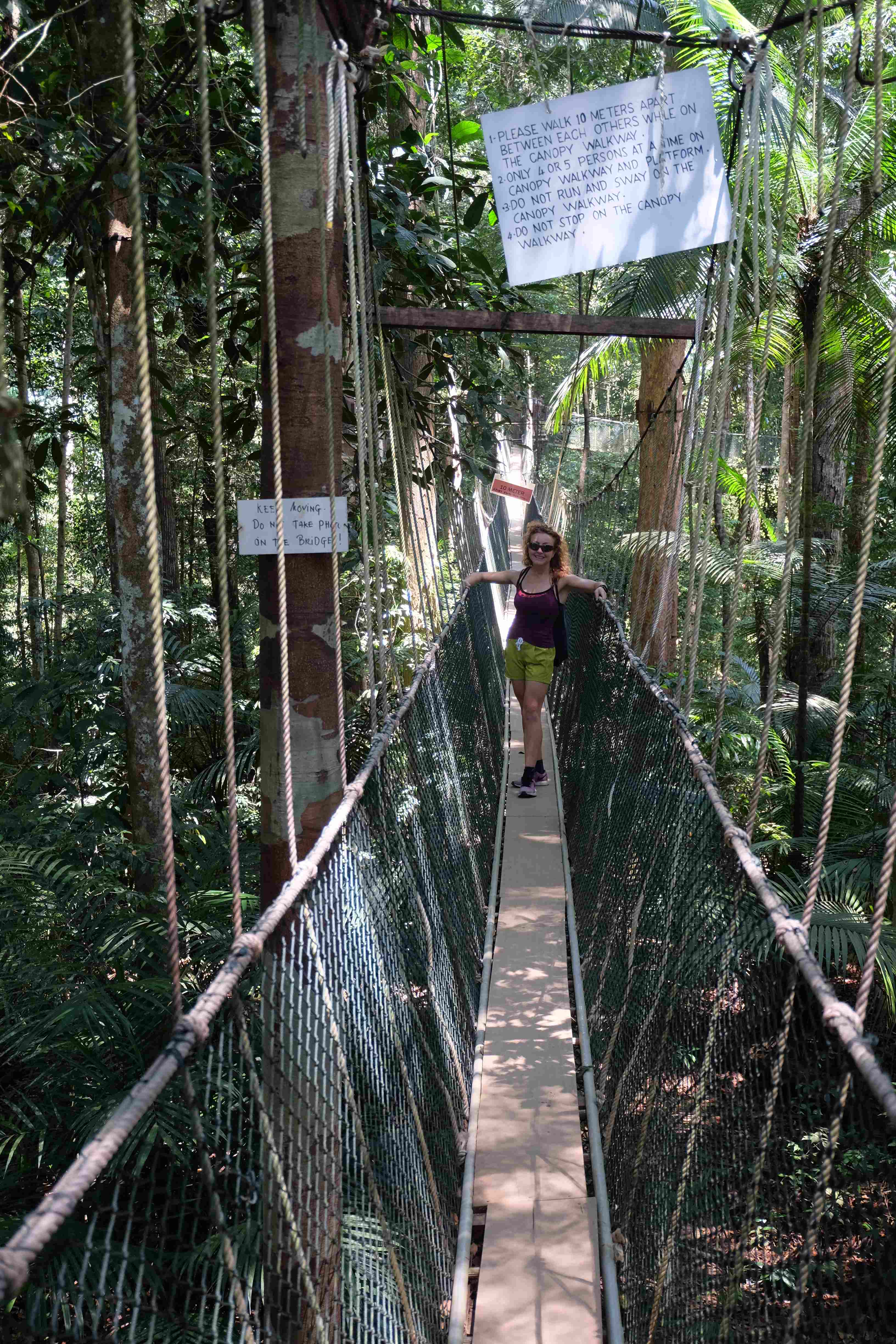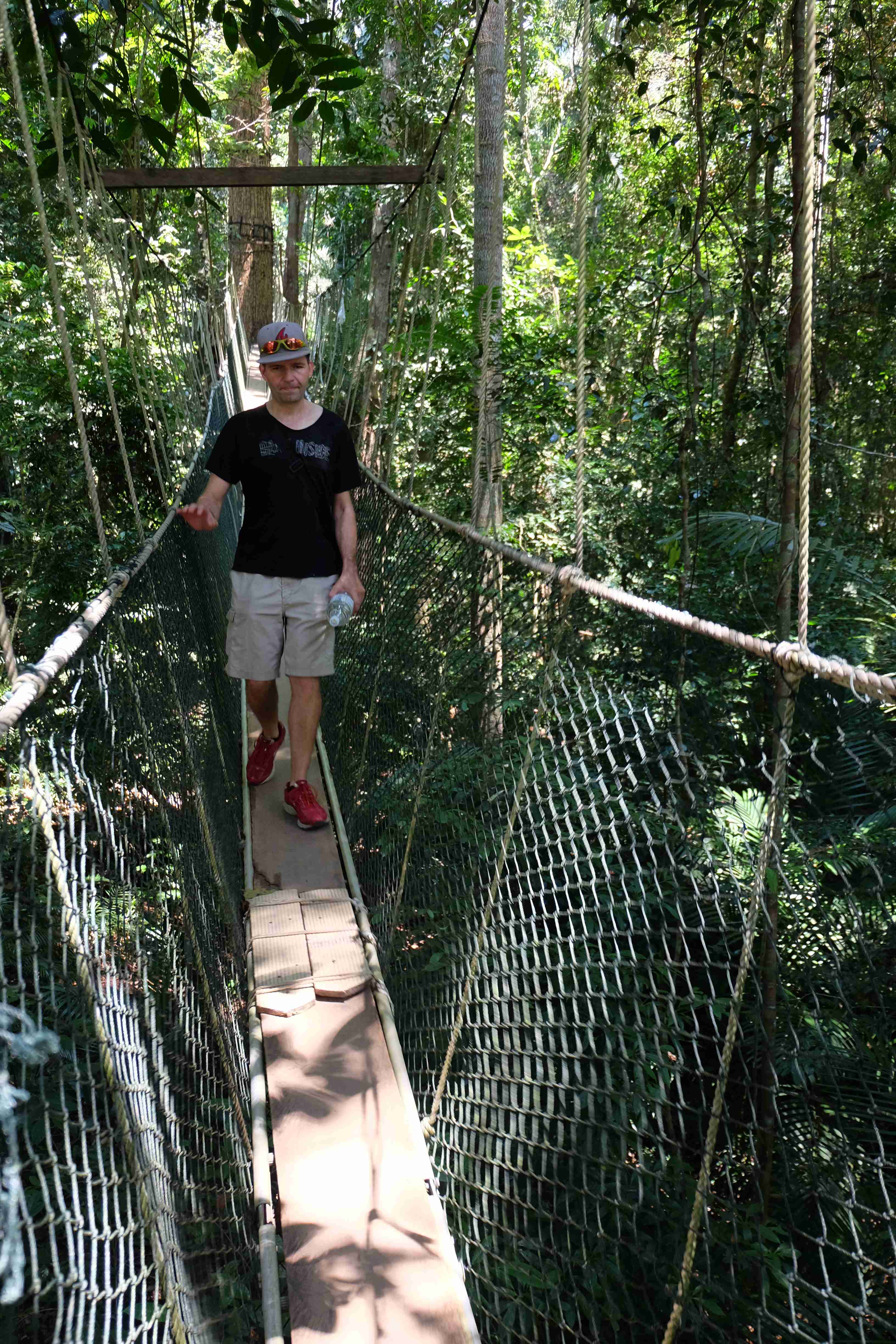 Der Taman Negara Nationalparkt liegt auf der malaiischen Halbinsel und beheimatet das älteste Waldgebiet der Erde. Die Landschaft entzückt einen mit sehr dichten Tropenwäldern und exotischen Anblicken. Was kann man denn hier tun? Natürlich gibt es die Touristensachen, wie Panorama-Punkte, kurze (und längere) Laufrouten, die – je nach Fitness und Lust – zwischen einer halben Stunde und 7 Stunden lang sein können, die höchste und dafür berühmte Hängebrücken-Lauftour der Welt… und natürlich jede Menge sog. „floating restaurants“ die dafür sorgen, dass man nicht verhungert. Dies genossen wir am ersten und am 2. Tag unseres dortigen Aufenthaltes. Dabei mussten wir Eines feststellen: das Wort „schwitzen“ ist im hiesigen Wortschatz überflüssig, da es nie dazu kommt, dass man schwitzt. Man wird regelrecht unter eine tropische Dusche gestellt und gänzlich gebadet sobald man sich hier lächerliche 5 Minuten bewegt. Wir lassen die Fotos für uns sprechen: