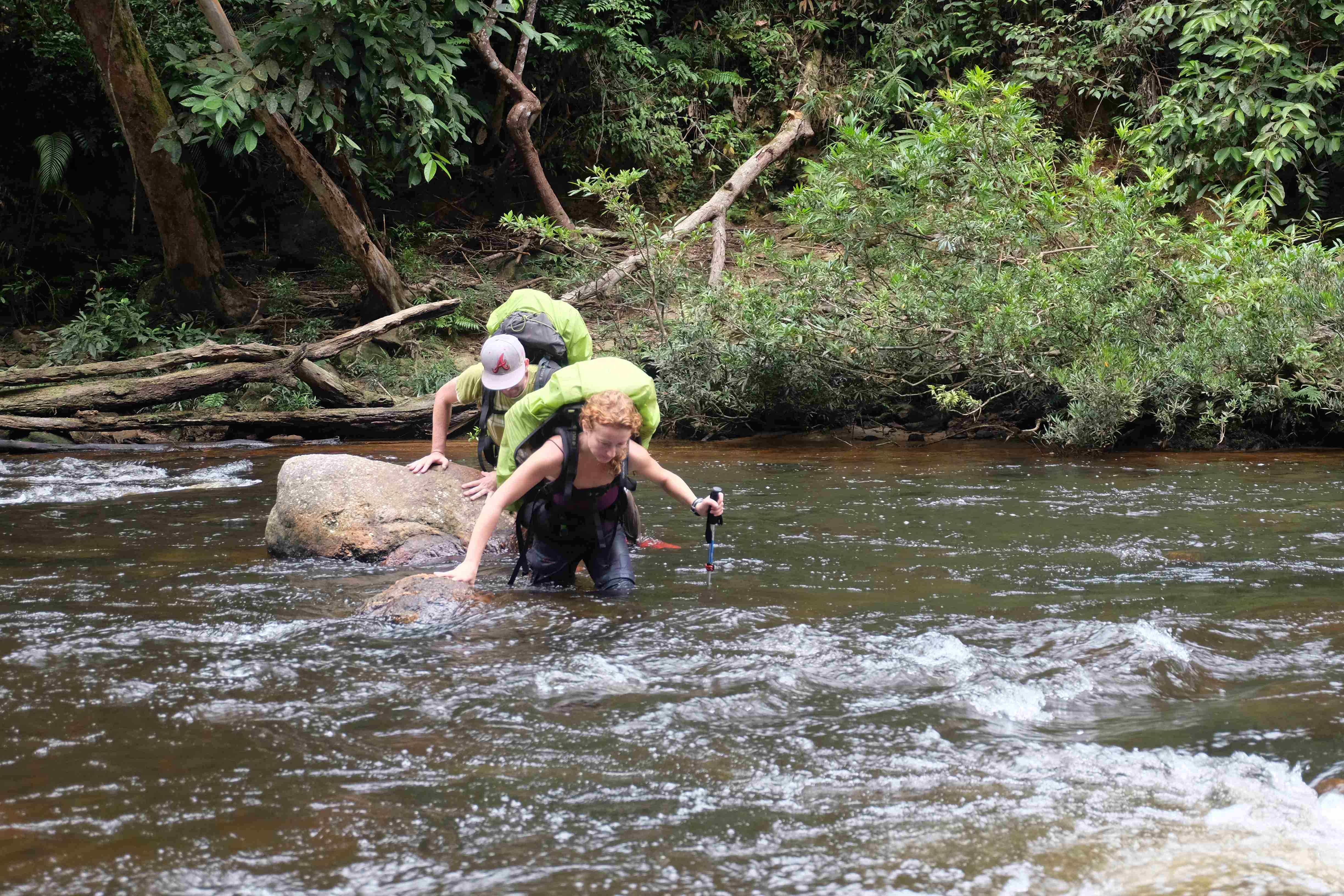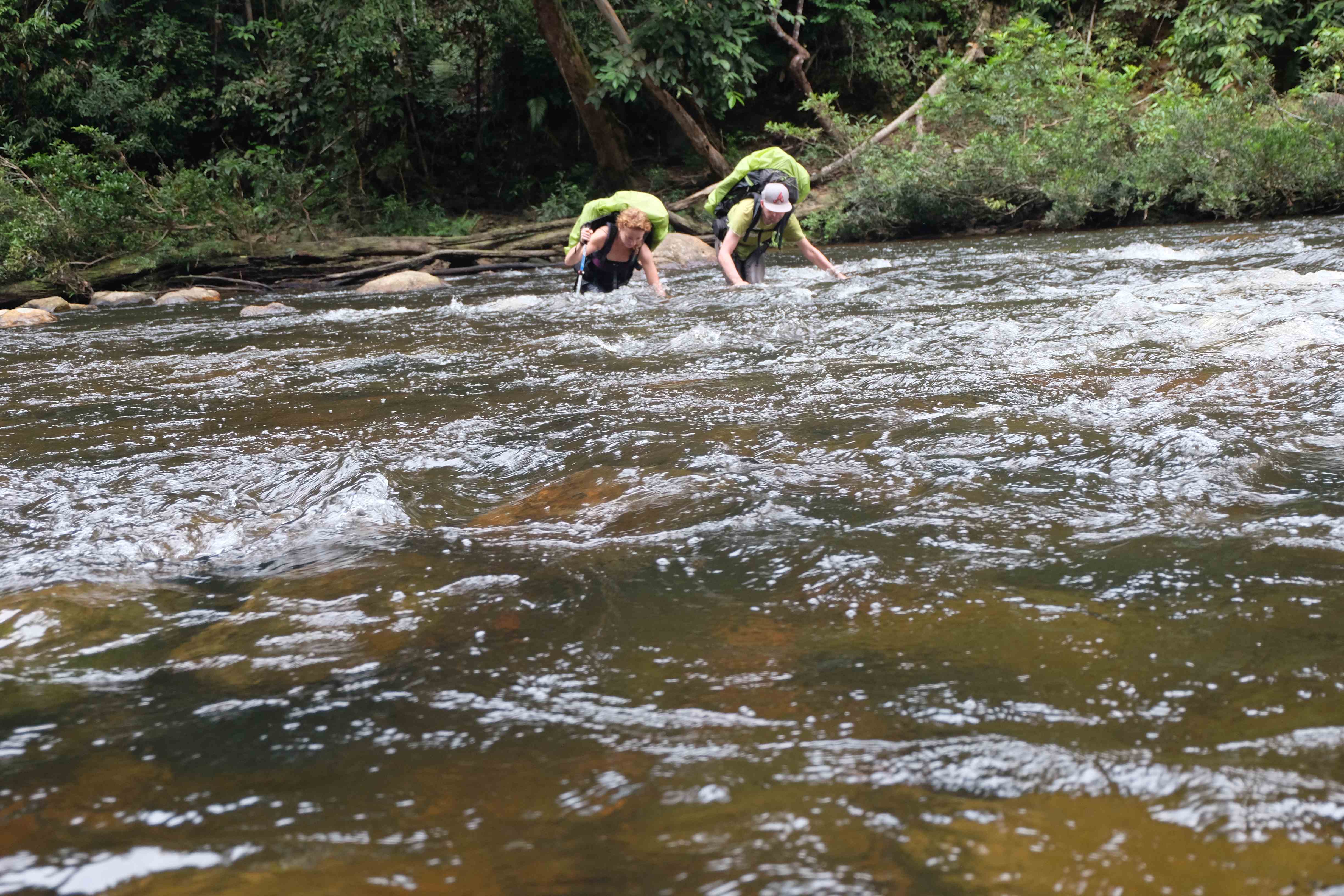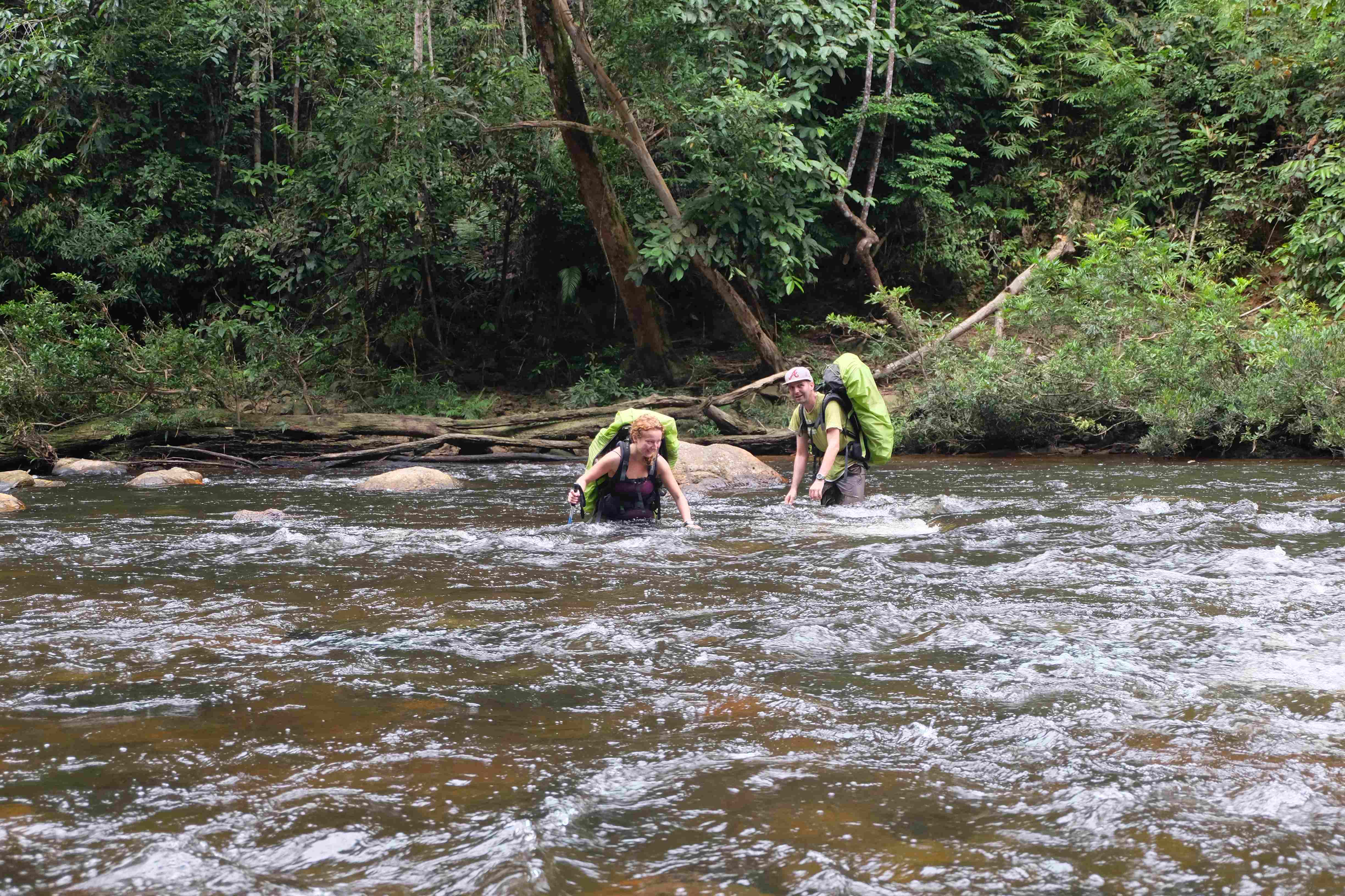 Pornim la drum! In dimineata urmatoare am lasat micul sat la poalele junglei pe nume Kuala Tahan in urma si am pornit spre culme. Ce ridicol suna: culmea unui doimiar… Dupa prima ora deja a fost clar pentru noi: am fost niste idioti! Culmea si muntele in sine poate ca sunt de o dificultate ridicola, altitudinea floare la ureche, insa jungla pe care trebuia sa o traversam in toata splendoarea si lungimea ei pentru a ajunge la acest munte: ucigatoare! Afirmatia anterioara cum ca dupa nici macar 5 minute in miscare esti pus sub un dus tropical si imbaiat nu este valabila pentru acest traseu. Aici sunt alte practici: esti pus sub o cascada si udat cu apa fierbinte si sarata in timp ce se sufla pe tine cu aer fiert cu o umiditate de 90%. Intre timp ti se ataseaza niste ventuze la incheieturile picioarelor care iti iau sange pe gratis: asa numitele lipitori (engl. Leech) care ti se strecoara neobservate in sosete si pantofi si iti sug sangele pana explodeaza de pline ce sunt. Aceasta este insa abia incalzirea. Acum abia treaba devine serioasa: cand esti mai usor si nu mai ai de carat atatia litri de sange cu tine pentru ca lipitorile te-au ajutat, incepi sa te antrenezi pentru urmatoarele jocuri olimpice la disciplina de obstacole. Antrenamentul insa intotdeauna trebuie sa fie mai dur si mai solicitant decat proba in sine. Cum reusesti acest lucru in jungla? Iata reteta: se iau trunchiuri de copaci cu toate diametrele posibile, se plaseaza diagonal pe carare, se aduc doi idioti precum Rafi si Ina care se cred Rambo 2 si au dorit sa parcurga acest traseu si se observa cum acestia trebuie sa sara la fiecare 10 metri peste copaci. Datorita diametrelor adesea enorm de mari ale trunchiurilor, antrenamentul a fost unul combinat: nu doar pentru proba de obstacole ci si pentru cea de gimnastica la sol, exercitiul cel mai des efectuat fiind sfoara.:-) Dupa ce s-au absolvit aceste exercitii de incepatori trebuie ridicata dificultatea antrenamentului, la urma urmelor doar vrem sa devenim Rambo, nu? Deci apare “ceva” noroi. Cand spun „ceva” ma refer de fapt la o cantitate suficienta pentru a face fericita intreaga populatie de elefanti de pe continentul asiatic si a-i oferi zilnic ocazia de a se imbaia si tavali prin noroi. Ca sa nu te poti plange ca trebuie sa ai pe tine tot timpul haine murdare de namol ti se ofera posibilitatea de a le spala in traversarile de rau care te asteapta pe traseu. Aspiranti naivi la titlul de Rambo ca si mine, care au fost de parere ca este floare la ureche sa treci raurile din jungla descult aveau sa afle ca s-au inselat amarnic: cu rucsacul plin, cu apa pana in talie si cu niste curenti infernali este un calvar sa atingi malul opus. Mai mult decat atat, esti plin de basici la picioare pentru ca bocancii nu ti s-au uscat niciodata pe parcursul traseului si in toate aceste zile i-ai incaltat uzi, acestia frecandu-se de pielea calcaielor si a talpilor. Credeti ca aici s-a terminat totul? Atunci ati uitat de hainele ude care nu reuseau sa se usuce niciodata peste noapte din cauza umiditatii excesive, astfel incat dimineata te asteptau ude leoarca. Ah da, si putoarea pe care noi o emanam deja, care se pare ca a inceput sa functioneze pe post de substanta anti-tantari… pana si pentru ei a fost prea mult! 🙂 Si bineinteles, cireasa de pe tort: partea de catarat si escaladat! Doar trebuie sa ajungi cumva la cei 2000m din jungla de la nivelul marii. Din pacate nu pe o poteca de drumetie, asa cum ne-am imaginat noi, ci practic intr-o singura zi si intr-o bucata, totul deodata pe stanci aproape verticale, tragandu-te in sus si ajutandu-te de sfori fixate pe peretii muntelui, de data aceasta facand sfoara – nu doar o data – pe vertical si bineinteles repetand toate acestea la nesfarsit pentru ca inainte de a ajunge pe culme ai urcat si coborat enspe dealuri si alte culmi. Pe scurt: am escaladat un doimiar insa cu vreo 5000m diferenta de nivel. Probabil l-am escaladat pe cel mai greu din lume, indiferent de cat de ridicol suna. Am vazut si experimentat pe piele proprie suficienta jungla incat sa nu ne fie dor de aceasta pentru o buuuuuuna bucata de timp, nu am devenit Rambo ci niste fiinte chinuite de basici si rani la picioare si la spate care abia mai pot sa mearga de durere… insa am reusit sa ne parcurgem traseul in timpul record si eroic de 5 zile. Prima si ultima data! 7 zile sunt probabil un timp suportabil pentru acest traseu, insa daca vrei sa savurezi totul, sa ai timp sa faci pauze, sa faci poze si din cand in cand sa iti usuci hainele in soare trebuie sa ai 9-10 zile la dispozitie. Aici va lasam pozele care ne-au documentat chinul. Nu va lasati furati sau inselati de zamabetul nostru sau frumusetea peisajului: a fost o tortura in adevaratul sens al cuvantului! 🙂