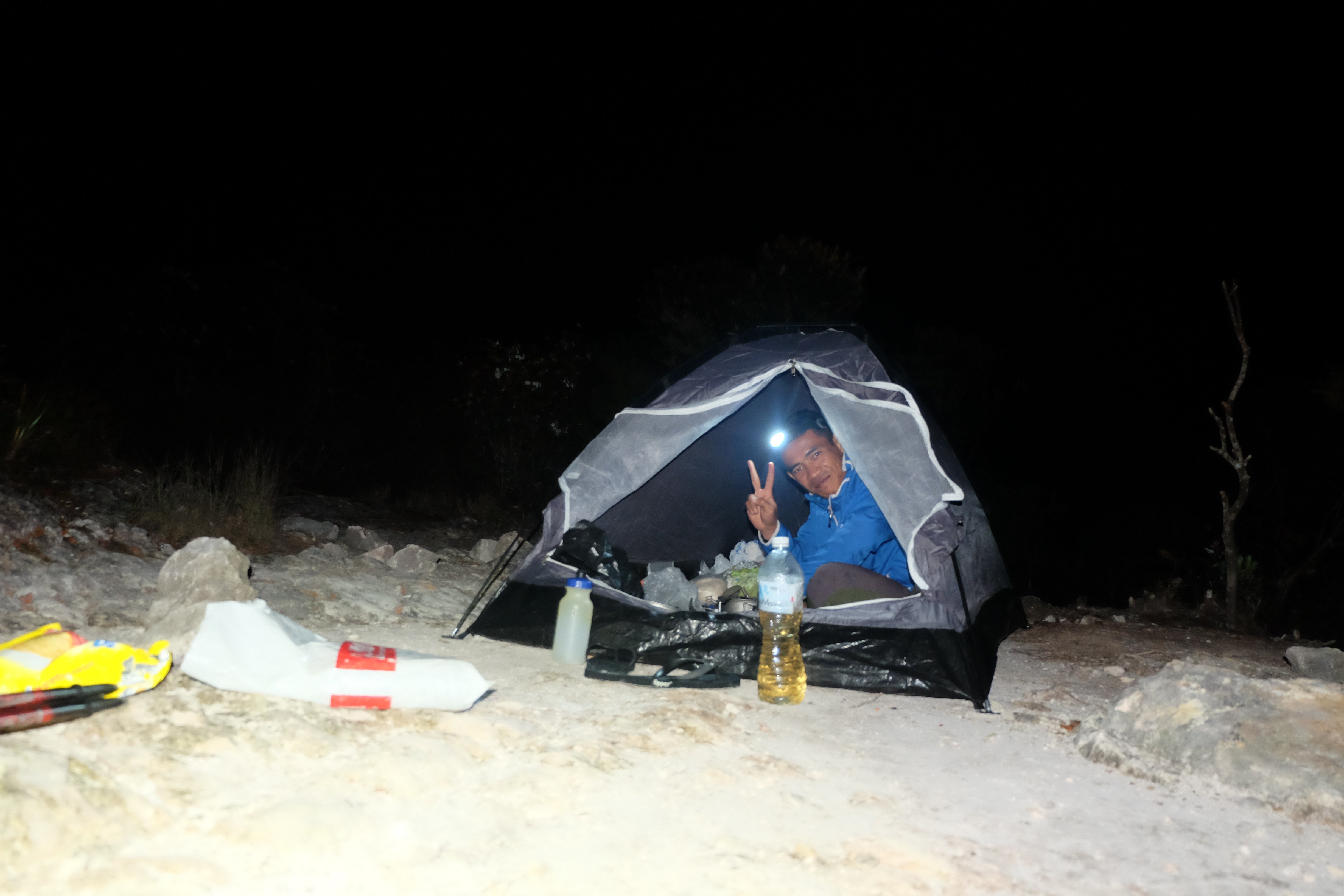 Dupa aceste activitati tipice pentru un „homo touristicus“ am decis insa ca noi de fapt vrem sa facem pe „homo Rambo” si sa cunoastem partea dura, hardcore a junglei, sa patrundem de-a dreptul in ea pana in adancuri si sa petrecem innoptam acolo cu toate boarfele (respectiv cort si mancare). Ce traseu mai potrivit pentru un asemenea proiect decat cel mai inalt varf al peninsulei: Gunung Tahan care are altitudinea ridicola de 2183m. O plimbare … si un pic de gust de jungla (ne-am zis noi ca doi idioti in sinea noastra!) Foarte siguri pe noi si constienti de forma noastra fizica si de rezistenta noastra am ras pe seama tuturor agentiilor si organizatorilor de trasee care le ofereau acest traseu de 110 km turistilor in 7 zile si care reactionau foarte indignati si surprinsi la dorinta noastra de a-l parcurge in doar 5 zile. „Astia in mod sigur nu au fost niciodata pe un munte” ne-am gandit noi… sunt doar 2000m amarati, haideti odata! Barul de apres-ski din Saas Fee este aproape la aceeasi altitudine! 🙂 Noi venim din patria Alpilor, avem experienta la 8000m, suntem foarte sportivi, am reusit Zürich-Geneva intr-o zi cu bicicleta, Zürich-Romania in 12… pentru noi va fi floare la ureche acest traseu. De fapt nici nu am avea nevoie de ghid, ne-am decis sa il luam doar pentru ca este vorba de jungla deasa si de un traseu nu totdeauna foarte bine marcat. Bineinteles ca am gasit foarte repede un ghid suficient de nebun sa accepte propunerea noastra de a parcurge totul in 5 zile. Pentru cei si mai nebuni: o data pe an se organizeaza o cursa aici, un fel de ultra-maraton in care se poate parcurge aceasta distanta in mai putin de 24 de ore! Zis si facut: 2 homo Rambo si un ghid merg la cumparaturi – avem nevoie de provizii si de un cort. Va imaginati deja muzica de actiune din fundal si pe Silvester Stallone care isi pregateste intregul arsenal de lupta? Cam asa a aratat aceasta etapa la noi :-):